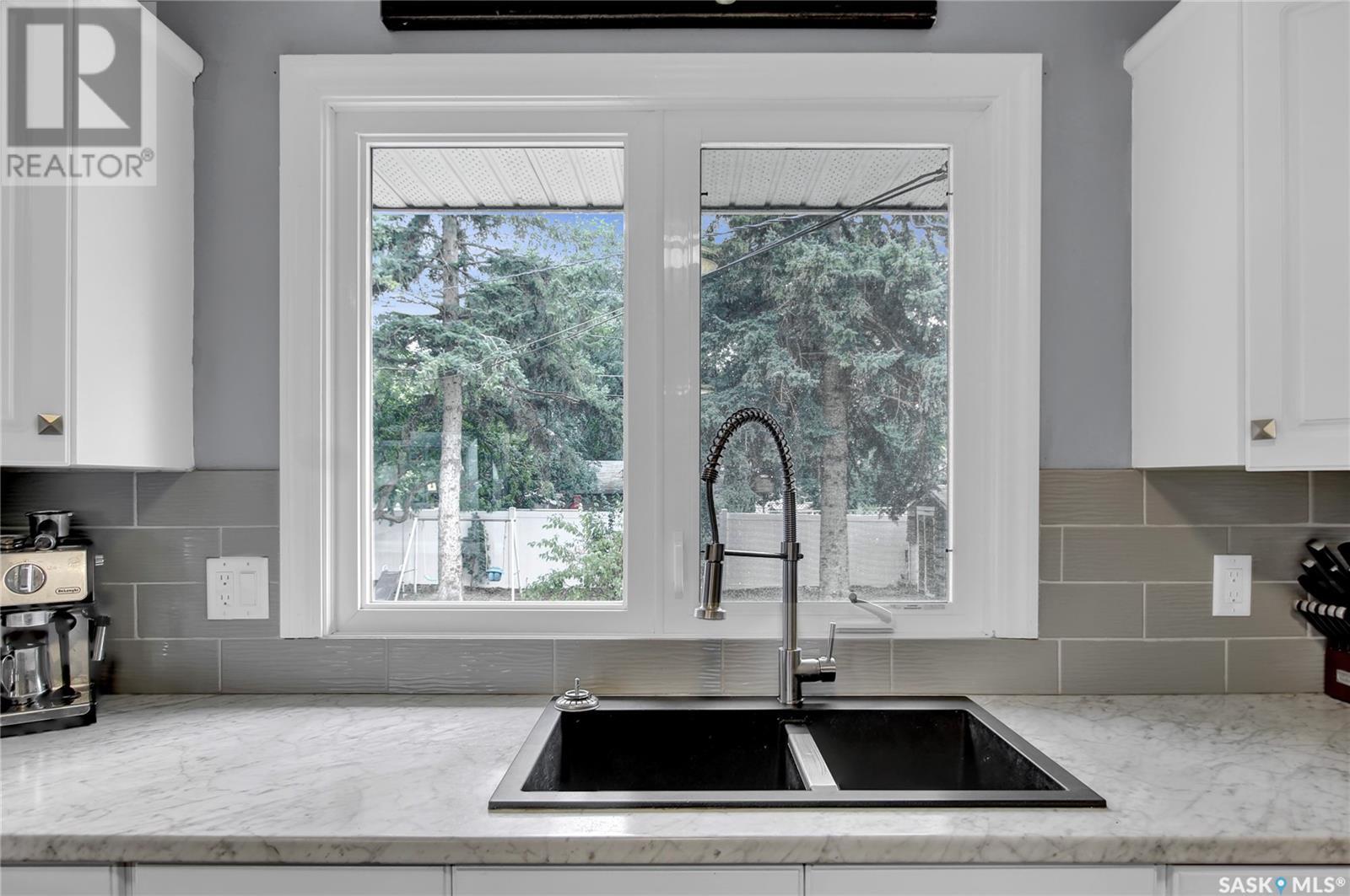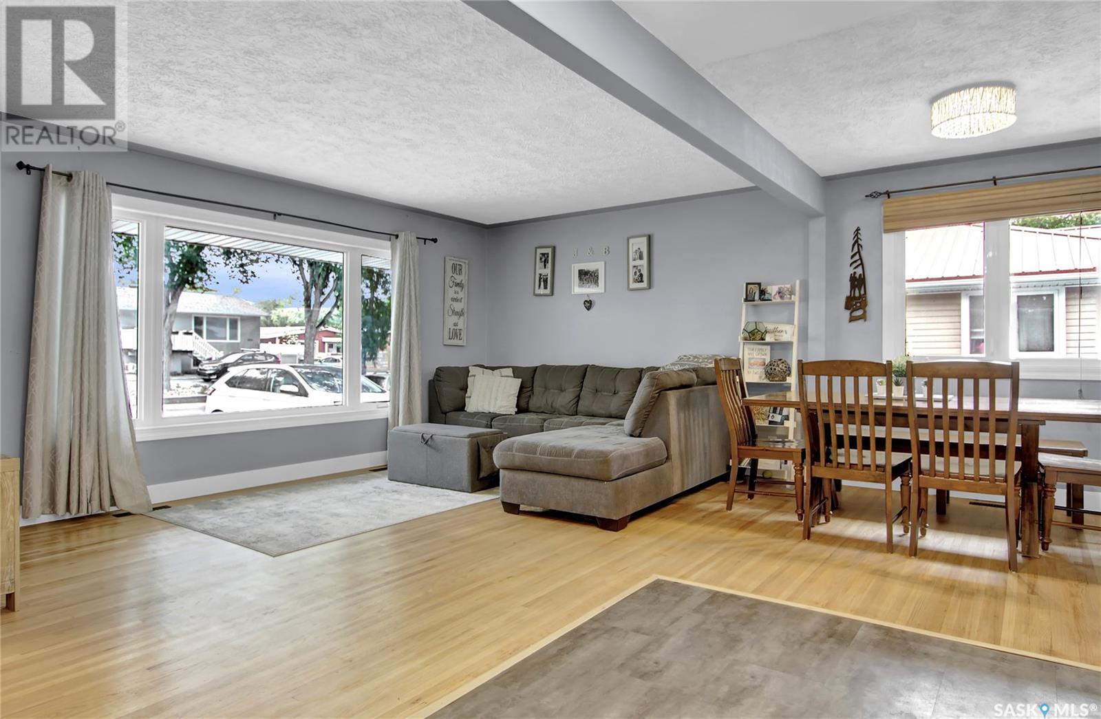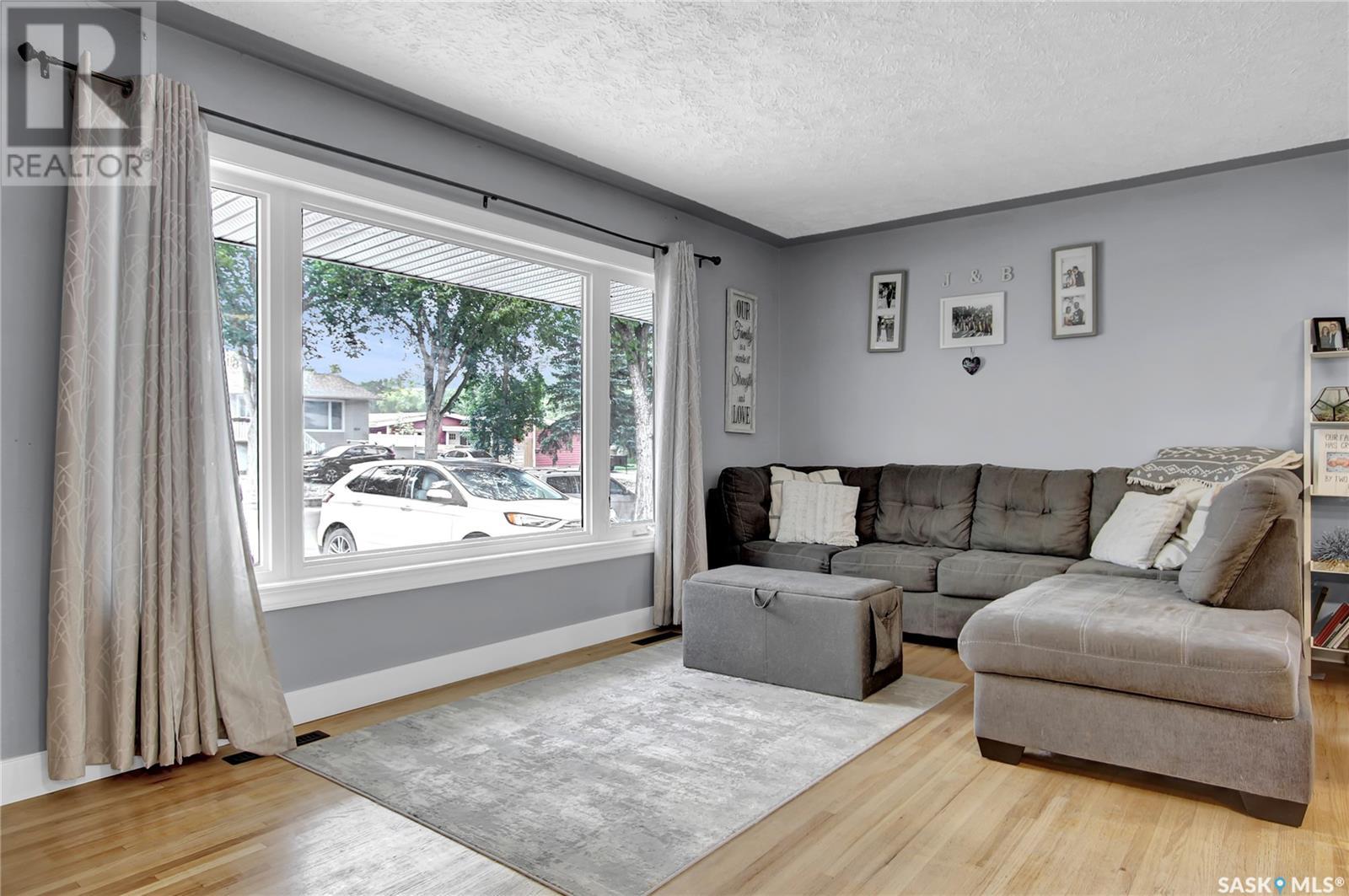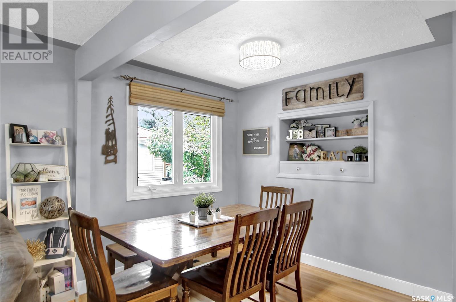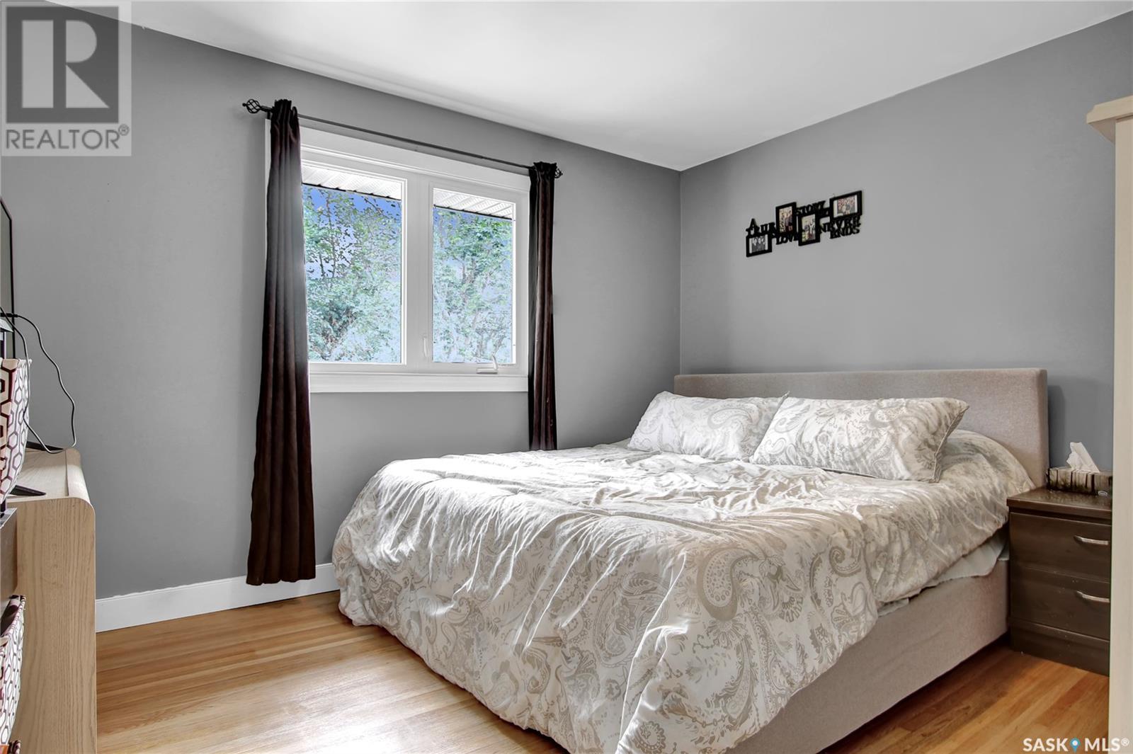 Welcome to 1809 Dufferin Road. Great South end location within walking distance to elementary school, close to U of Regina and all South end amenities. Great street appeal with the low maintenance siding, newer shingles, large front step, updated front door & most windows. The main floor has been opened up to a great room style layout. Hardwood floors thru most of main floor. Living and dining rooms are spacious. Kitchen has been updated with white cabinets, newer counter tops, tile back splash, black granite sink and stainless steel appliances. Views of backyard from kitchen. There are 3 bedrooms on the main level, all with hardwood floors. Interior doors, trim, plumbing & hardware have been upgraded. The bathroom has been renovated with large vanity with granite top, taps, toilet and tile surround to soaker tub. The basement is developed with a large rec room, bedroom (window may not meet egress), and storage area. Laundry is located in utility room. Spacious backyard with some newer pvc fencing, grass, patio and shed for extra storage. Good concrete driveway can accommodate 2 vehicles. Truly a great place to call home. Book your showing today!! (id:22211)