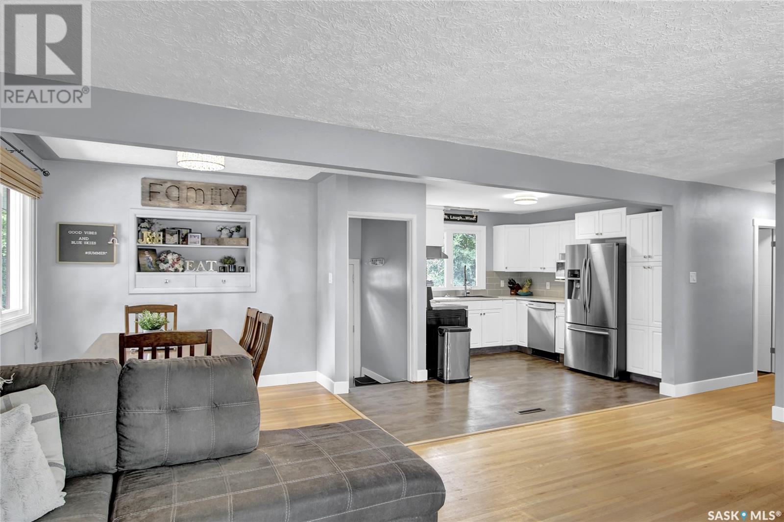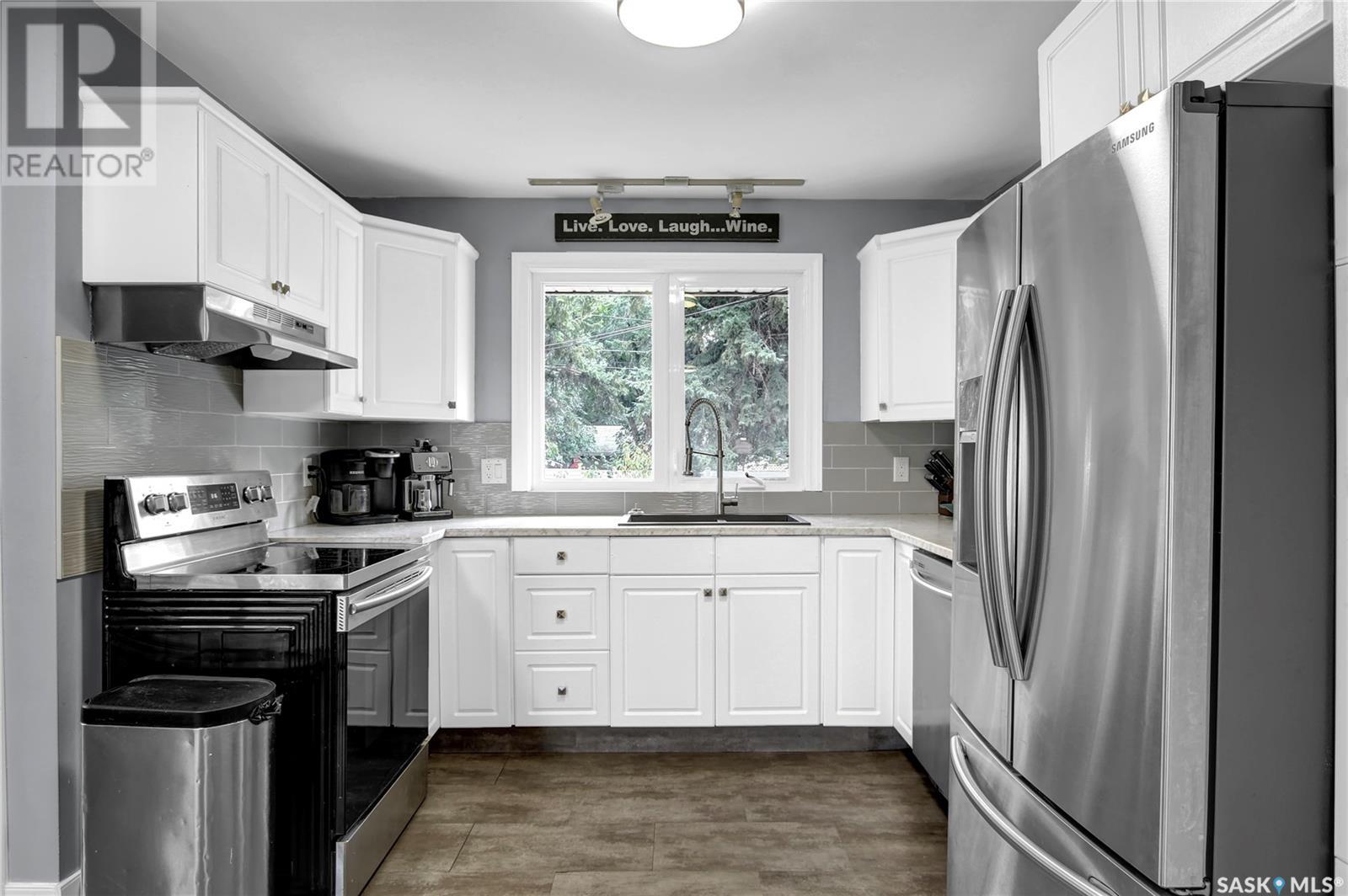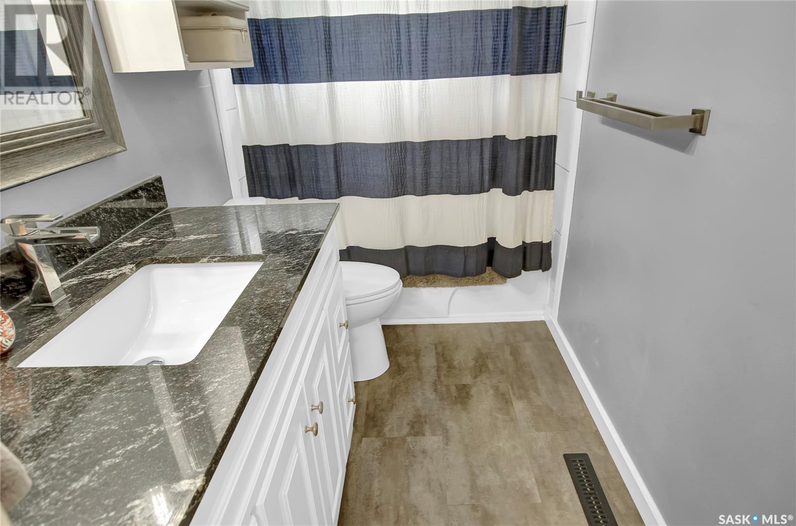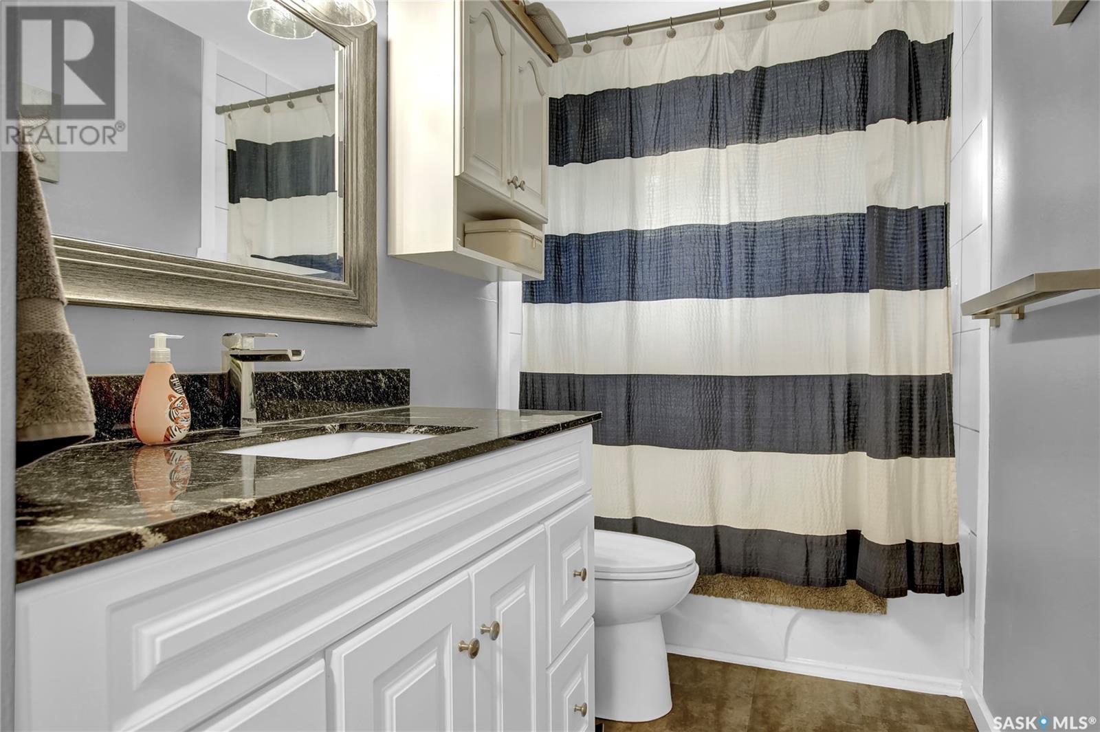Welcome to 1809 Dufferin Road. Great South end location within walking distance to elementary school, close to U of Regina and all South end amenities. Great street appeal with the low maintenance siding, newer shingles, large front step, updated front door & most windows. The main floor has been opened up to a great room style layout. Hardwood floors thru most of main floor. Living and dining rooms are spacious. Kitchen has been updated with white cabinets, newer counter tops, tile back splash, black granite sink and stainless steel appliances. Views of backyard from kitchen. There are 3 bedrooms on the main level, all with hardwood floors. Interior doors, trim, plumbing & hardware have been upgraded. The bathroom has been renovated with large vanity with granite top, taps, toilet and tile surround to soaker tub. The basement is developed with a large rec room, bedroom (window may not meet egress), and storage area. Laundry is located in utility room. Spacious backyard with some newer pvc fencing, grass, patio and shed for extra storage. Good concrete driveway can accommodate 2 vehicles. Truly a great place to call home. Book your showing today!! (id:22211)