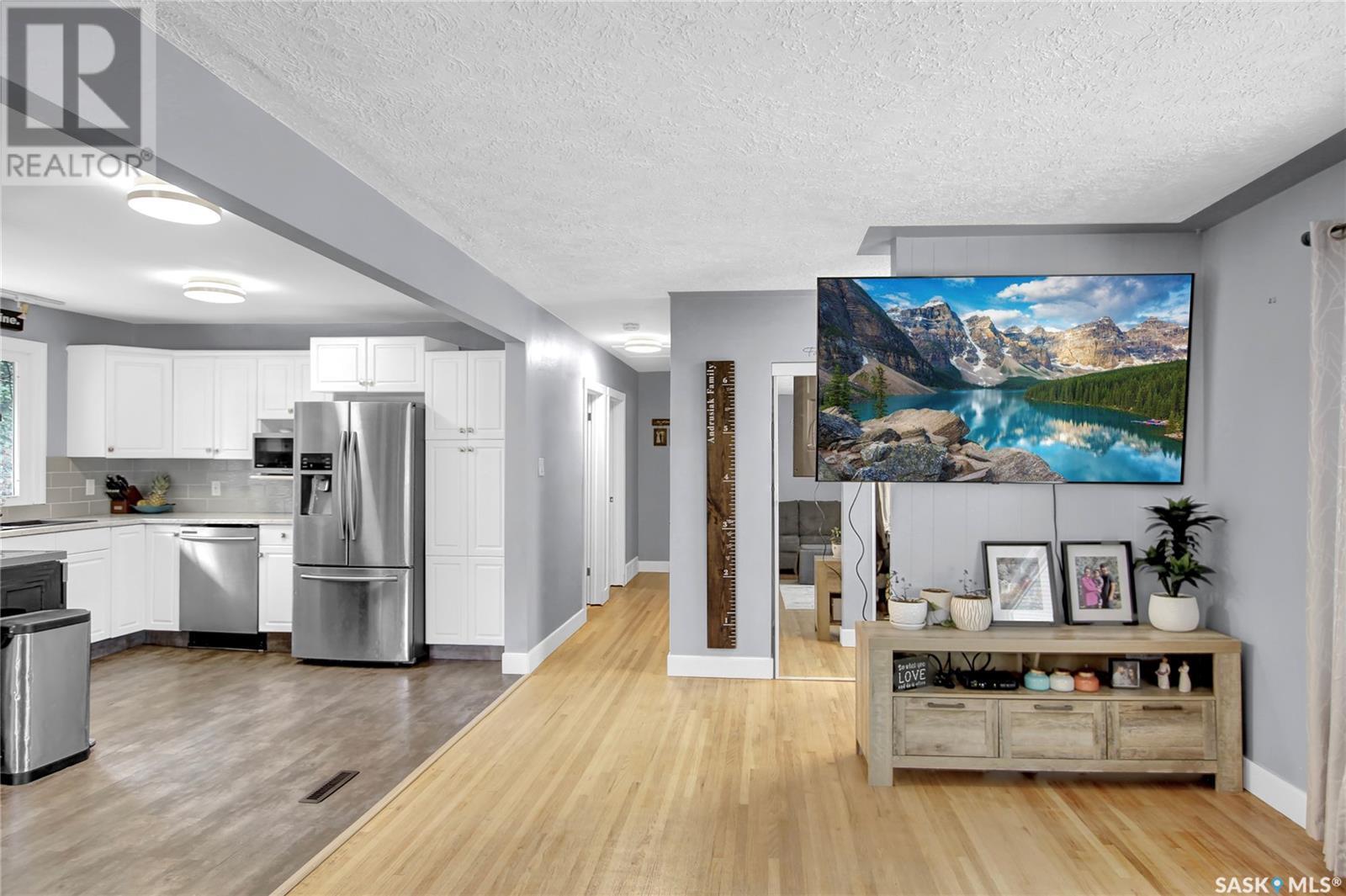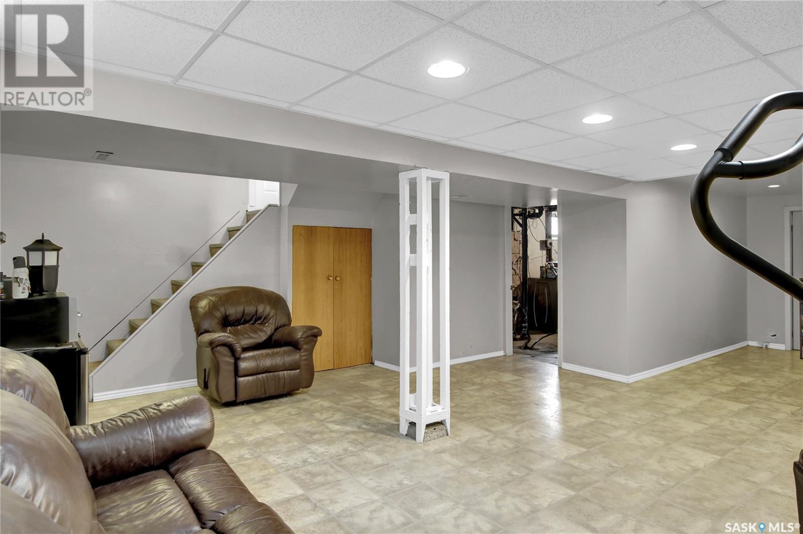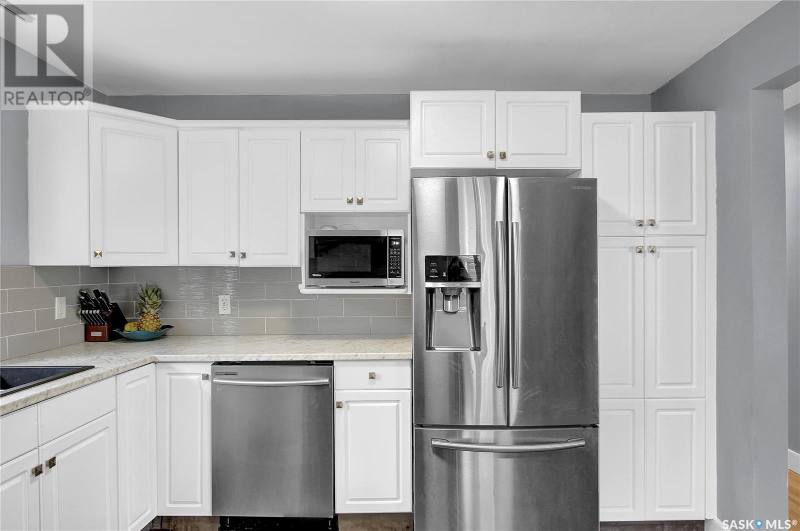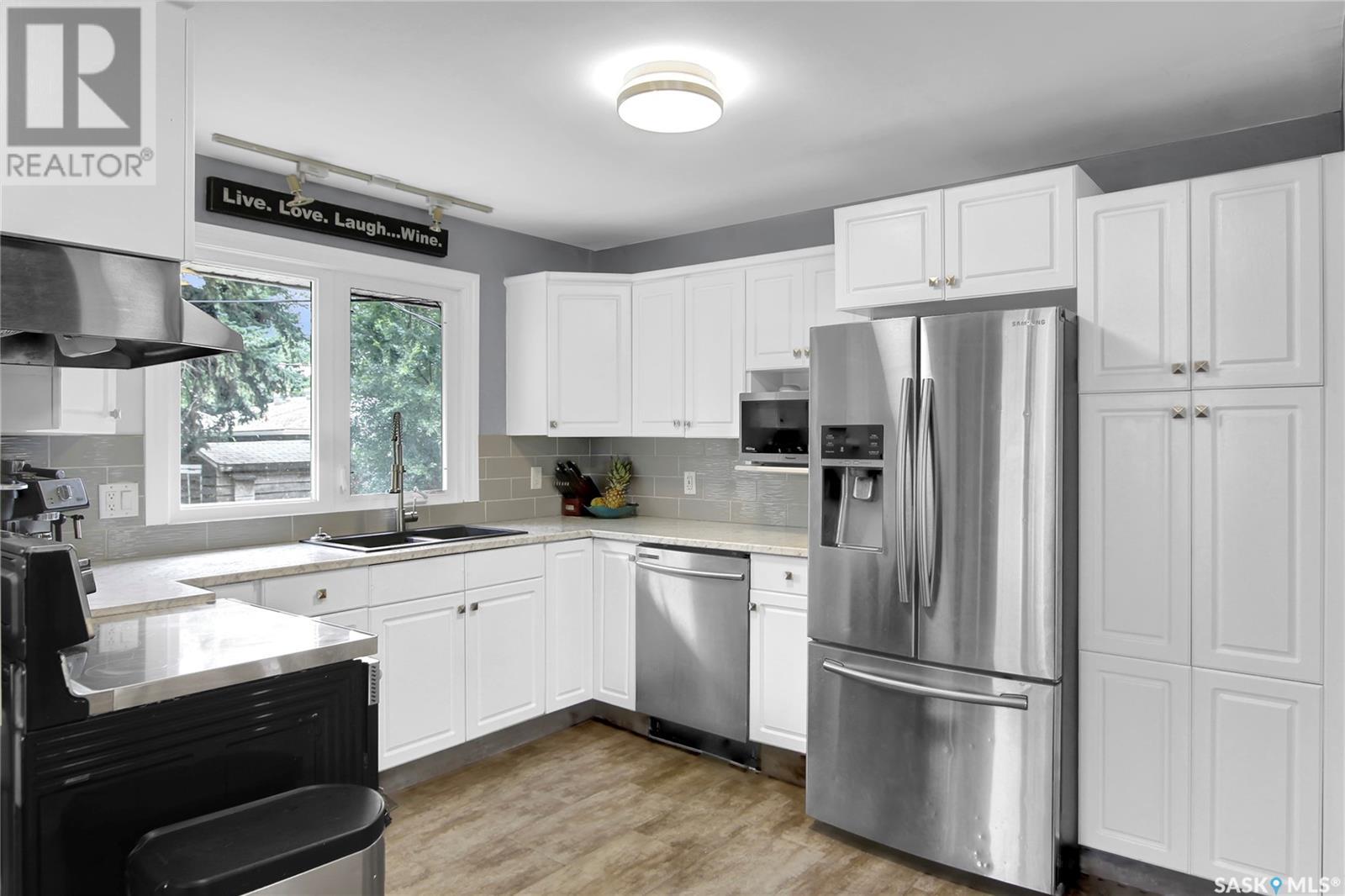 Welcome to 1809 Dufferin Road. Great South end location within walking distance to elementary school, close to U of Regina and all South end amenities. Great street appeal with the low maintenance siding, newer shingles, large front step, updated front door & most windows. The main floor has been opened up to a great room style layout. Hardwood floors thru most of main floor. Living and dining rooms are spacious. Kitchen has been updated with white cabinets, newer counter tops, tile back splash, black granite sink and stainless steel appliances. Views of backyard from kitchen. There are 3 bedrooms on the main level, all with hardwood floors. Interior doors, trim, plumbing & hardware have been upgraded. The bathroom has been renovated with large vanity with granite top, taps, toilet and tile surround to soaker tub. The basement is developed with a large rec room, bedroom (window may not meet egress), and storage area. Laundry is located in utility room. Spacious backyard with some newer pvc fencing, grass, patio and shed for extra storage. Good concrete driveway can accommodate 2 vehicles. Truly a great place to call home. Book your showing today!! (id:22211)
