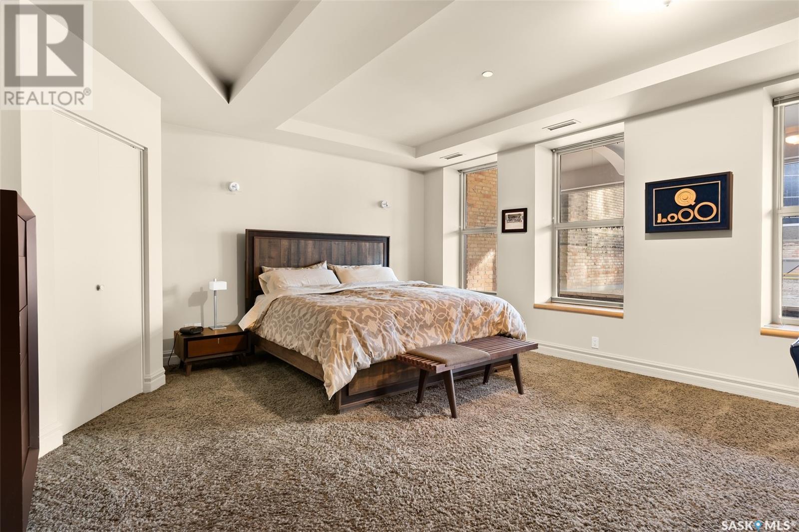 This Executive loft style condo in The Northern Bank building is in a historic building and one of the most epic locations right in the center of downtown! Walking into this unit from the elevator you find yourself walking into 2532 square feet of open and airy space. The private elevator doors spill out onto an open concept kitchen dining and living room with a theater room to boot. The living is modest in this 3 bedroom, 3 bathroom condo but will not disappoint. The primary has a massive walk in closet and 5 piece accessible ensuite. While the 2nd bedroom has its own 3 piece bathroom as well. Another room at the front of the unit doubles as an office but is plenty spacious. Along with storage and laundry this property has an exclusive use to a roof top patio on the adjacent building and 2 parking stalls in the heated underground parkade. This home can be your urban escape if that is the lifestyle you are looking for! Please contact the listing agent to answer any questions that you may have or to book a private showing of this unit. (id:22211)