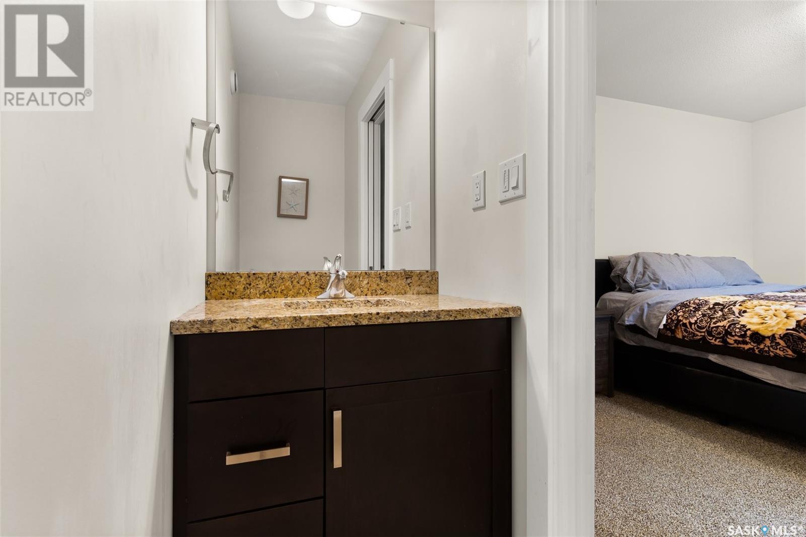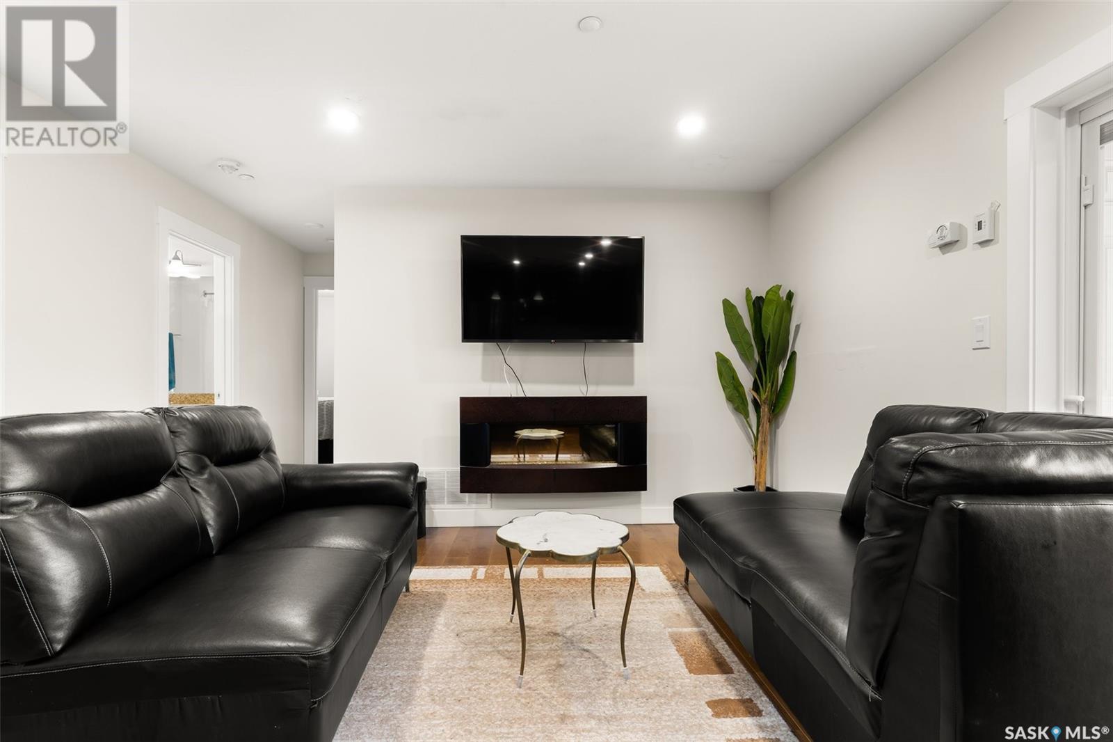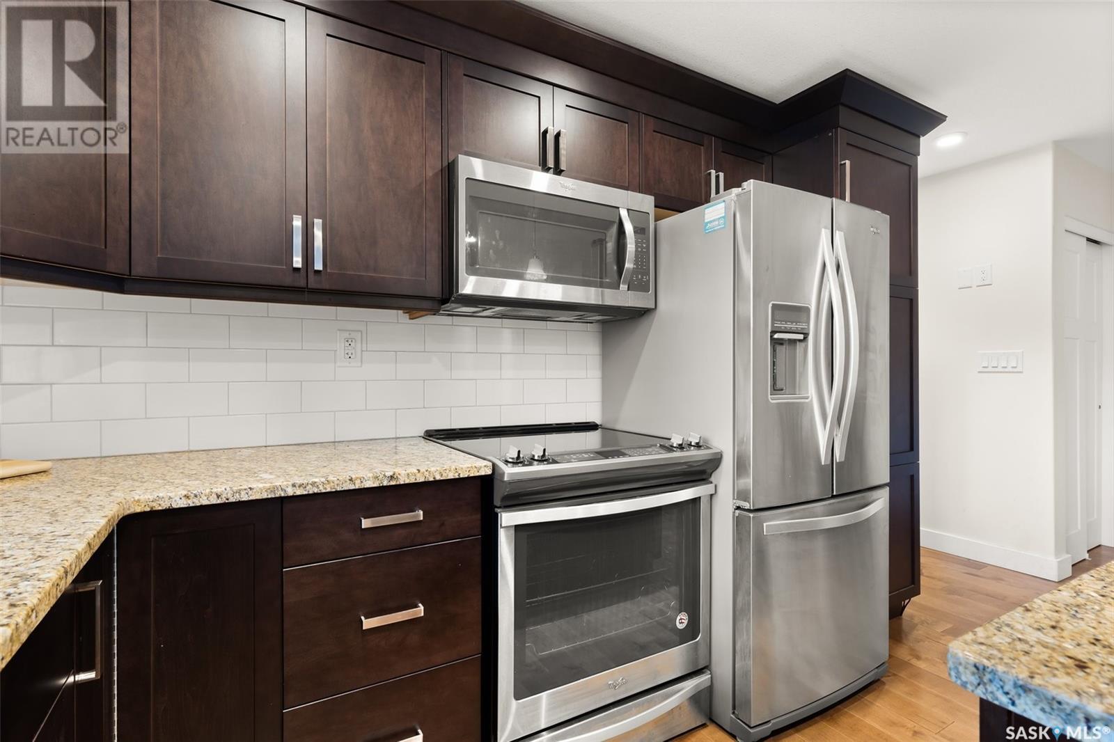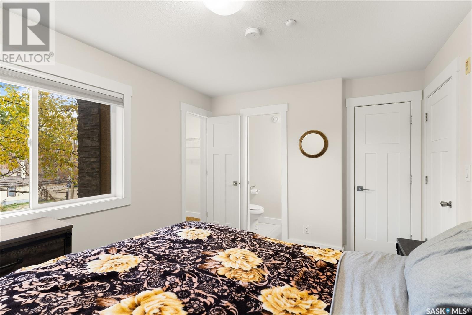 Upscale 2 bedroom, 2 bath condo located in the Cathedral neighbourhood! #303 is spacious and a great space for entertaining with its open concept floor plan. Hardwood flooring flows through the living room, dining area, kitchen and hallway. The kitchen includes ample cabinet space, a pantry for added storage, granite counters, tiled backsplash, under cabinet lighting and stainless-steel appliances. The east facing living room is bright and features an electric fireplace. Patio doors open to a good-sized balcony with a large utility/storage room. The laundry room is conveniently equipped with stacking washer and dryer, and cabinets for tucking away cleaning supplies. The main bathroom has a large vanity with granite counter top and tile flooring for easy cleaning. The primary bedroom boasts a half bath with granite counter top, tile flooring and space saving pocket door. The walk in closet is very generous in size and could be further customized for all your clothing. The second bedroom is a great size and the cozy carpet is nice to set your toes on in the morning. The Borgata on Rae is an attractive condominium with elevator access, secure front entrance, and is wheel chair accessible. (id:22211)