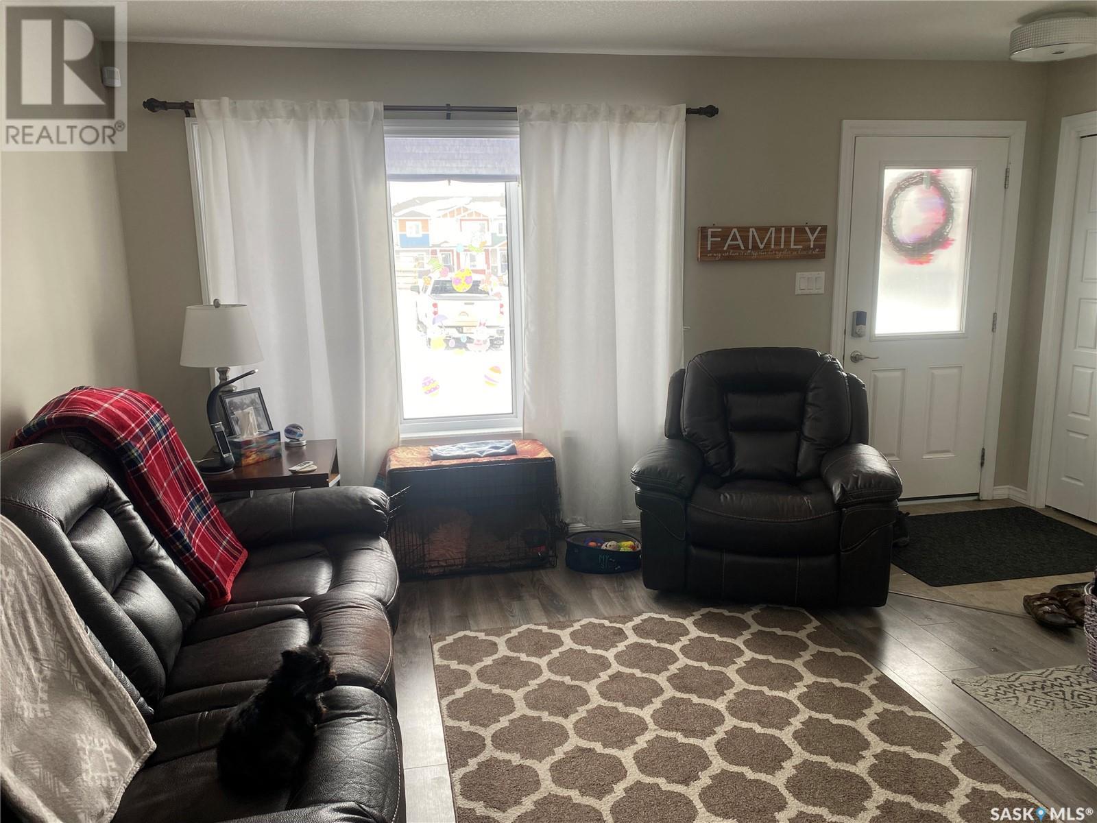 Caturra in the Park is located in Glencairn adjacent to Stewart Russell Park. It has easy access to Downtown Regina, the East End shopping and amenities. This end unit has only one common neighbour & additional windows for a bright open concept floor plan with laminate flooring throughout the main floor. The living room has a large picture window and it flows seamlessly into the kitchen with room for a dining table. The kitchen has lots of espresso cabinets, stainless steel appliances and completing the main level is a 2 piece powder room. On the second floor there are 3 bedrooms and 2 full bathrooms. The primary bedroom has a walk-in closet and a 4 piece ensuite. The basement is includes 3 piece bathroom roughed-in plumbing, laundry area, an air exchanger, humidifier & a hi-eff. furnace. The fenced rear yard has a patio with low maintenance artificial turf & an outside gate. Some additional features of this home include: Air Conditioning, LED lights, pot lights, extra wide staircases, Nest thermostat, security alarm and stainless fridge, stove, dishw & micro range hood, washer & dryer. This unit comes with two electrified, exclusive use, parking stalls right in front of the unit and there is lots of visitor parking. Condo fees include: Exterior Building/Common Area Maintenance, Building Insurance, Lawn Care, Snow Removal, Garbage and Reserve Fund Contributions. The window treatments & fireplace are included, see SA. See listing attachments for builder's brochure. SOLD (id:22211)