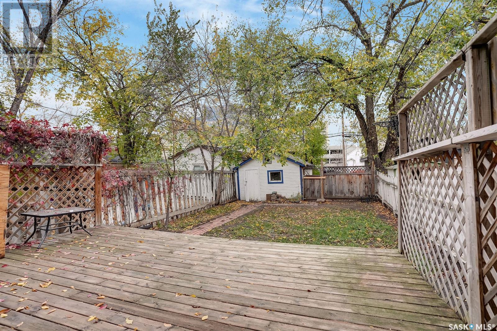 This great 2 1/2 story character home is situated across from the new ywca that is being built. Upon entering the front porch you'll enter a bright foyer with wide plank hardwood leading to the open plan living room & dining area with garden doors to the huge deck & yard that includes a single detached garage. The dinning area has cute built-ins & leads through to the brand new kitchen with lots of cupboard space. Upstairs has 3 bedrooms & a bathroom with a vintage clawfoot tub. The 3rd floor is unfinished but offers the opportunity to be a study or another bedroom. The basement is unfinished but is dry and allows for easy inspection. A 4 inch abs sewer line was installed in 2012 and is where the high-efficiency furnace is located. (id:22211)