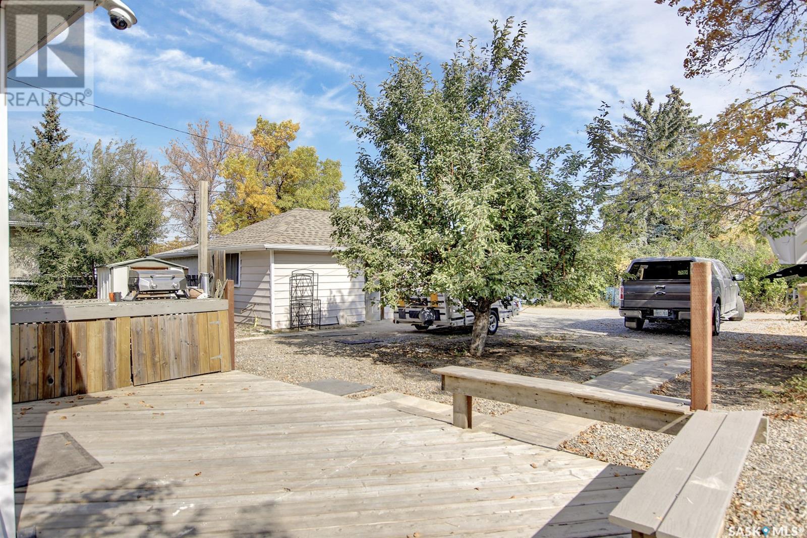 OPPORTUNITY KNOCKS with spacious open side lot included. Welcome to 2025 York Street, a charming property that offers perfect blend of comfort and possibility. This gem is located with easy access to Lewvan, downtown area, and just a stone's throw away from airport. The inviting front deck welcomes you and front yard is a blank canvas ready for you to make your own. The entryway is a generous size with a convenient closet, providing ample storage for belongings. The adjoining space could easily be a cozy reading nook or dining area. French doors lead to a spacious bedroom or den, with its own door to the oversized backyard. Imagine enjoying your morning coffee here, or turning it into your home office. The updated combination kitchen and eating area features abundant maple cabinetry on both sides and stainless steel appliances, including a fridge, stove, and built-in dishwasher. An eat-up breakfast bar opens to the living room with a second door leading to the front yard. Adjacent to the living room, you'll discover an oversized bedroom with numerous built-in drawers, ample counter space, closet and garden door that opens to backyard. The bathroom/laundry combination is both functional and stylish. It includes a tiled tub/shower combination, a new separate oversized tiled shower, and washer/dryer unit with cupboard space. Venturing upstairs, you'll find large bedroom/playroom area with its own two-piece bathroom. The basement houses all mechanical components and is great for storage plus provides access to crawl spaces from the two additions to the property. You'll also benefit from newer high-efficiency furnace and water heater systems, as well as an upgraded sewer line. The spacious backyard offers two decks, a single detached garage, and ample parking space, including room for RV. The massive side yard to the south presents an opportunity for potential expansion, whether it's another home or workshop. Call your agent today to view (id:22211)