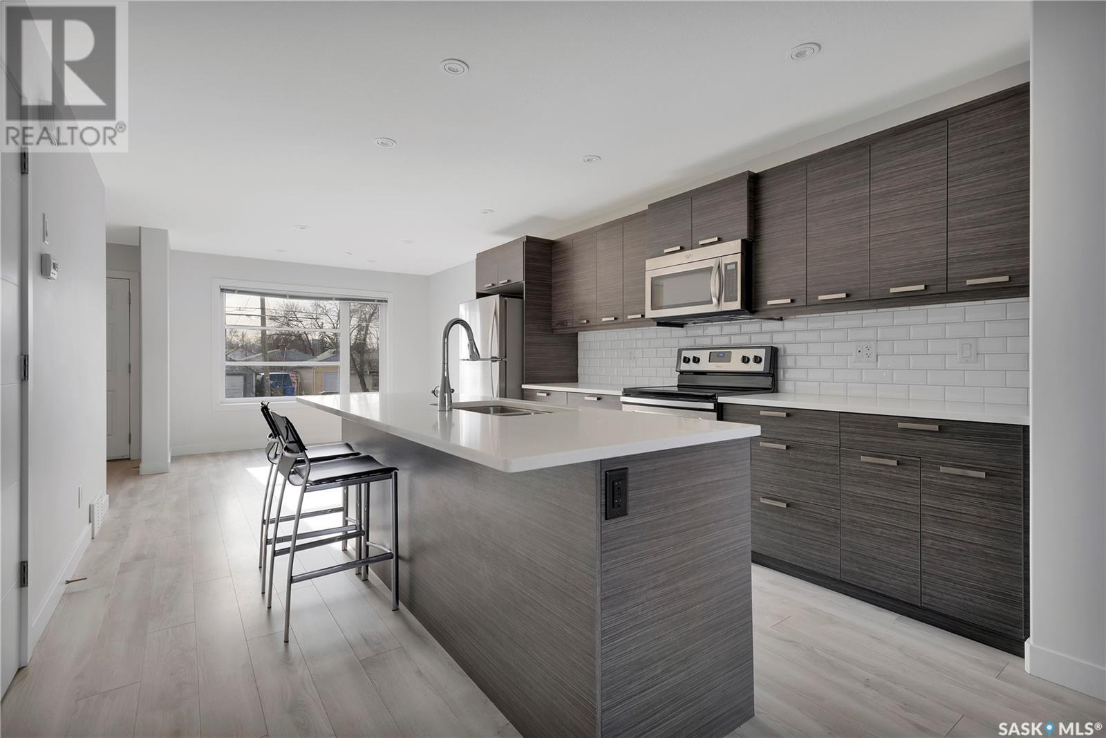 This stunning home is located in the heart of Broders Annex. It boasts two separate suites, offering an excellent income-generating opportunity. The upper suite features spacious rooms with abundant natural light pouring in through large windows. Its modern kitchen boasts dark cabinetry, a generous quartz island, tile backsplash, and stainless steel appliances. A well-lit living room with a gas fireplace, a convenient half bathroom, and ample closet space complete the main floor. Upstairs, the Primary suite includes a 3-piece ensuite with a walk-in closet, along with two additional bedrooms, a main bathroom, and a laundry area. The basement suite exudes coziness with its dark cabinets, quartz countertops, tile backsplash, and stainless steel appliances. It offers two bedrooms, a full bathroom, and a separate laundry area. The maintenance-free yard is partially fenced, providing ample parking space with easy alley access and potential for a future garage. 2058 Lindsay Street is conveniently situated within walking distance of various shopping and dining amenities. This is an ideal investment opportunity or the perfect place to call home for anyone looking for a mortgage helper. (id:22211)