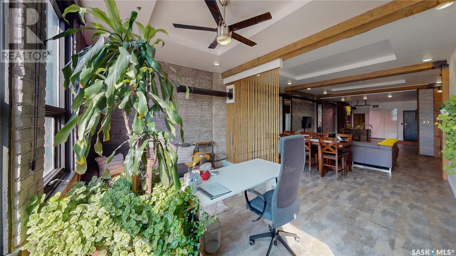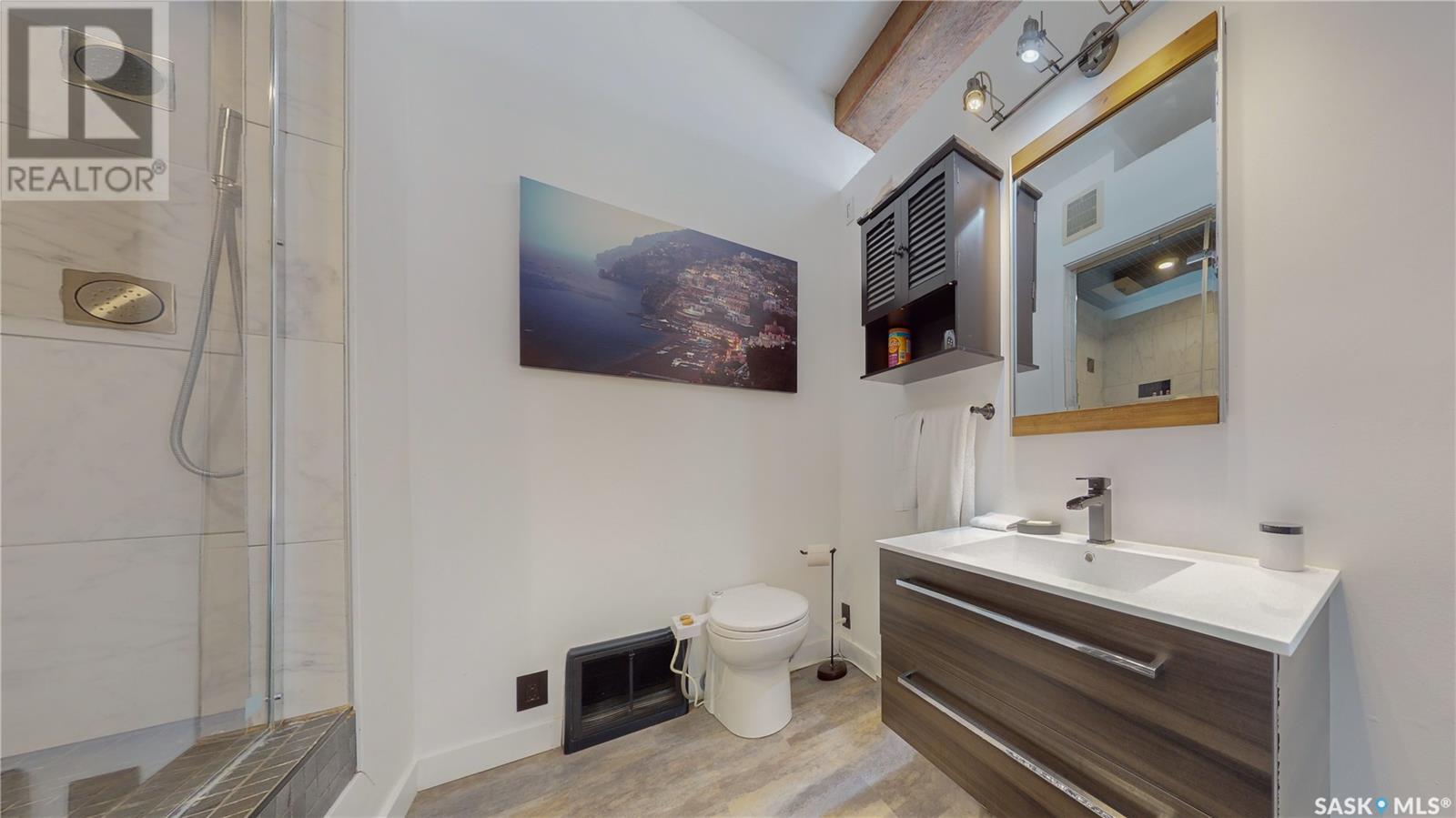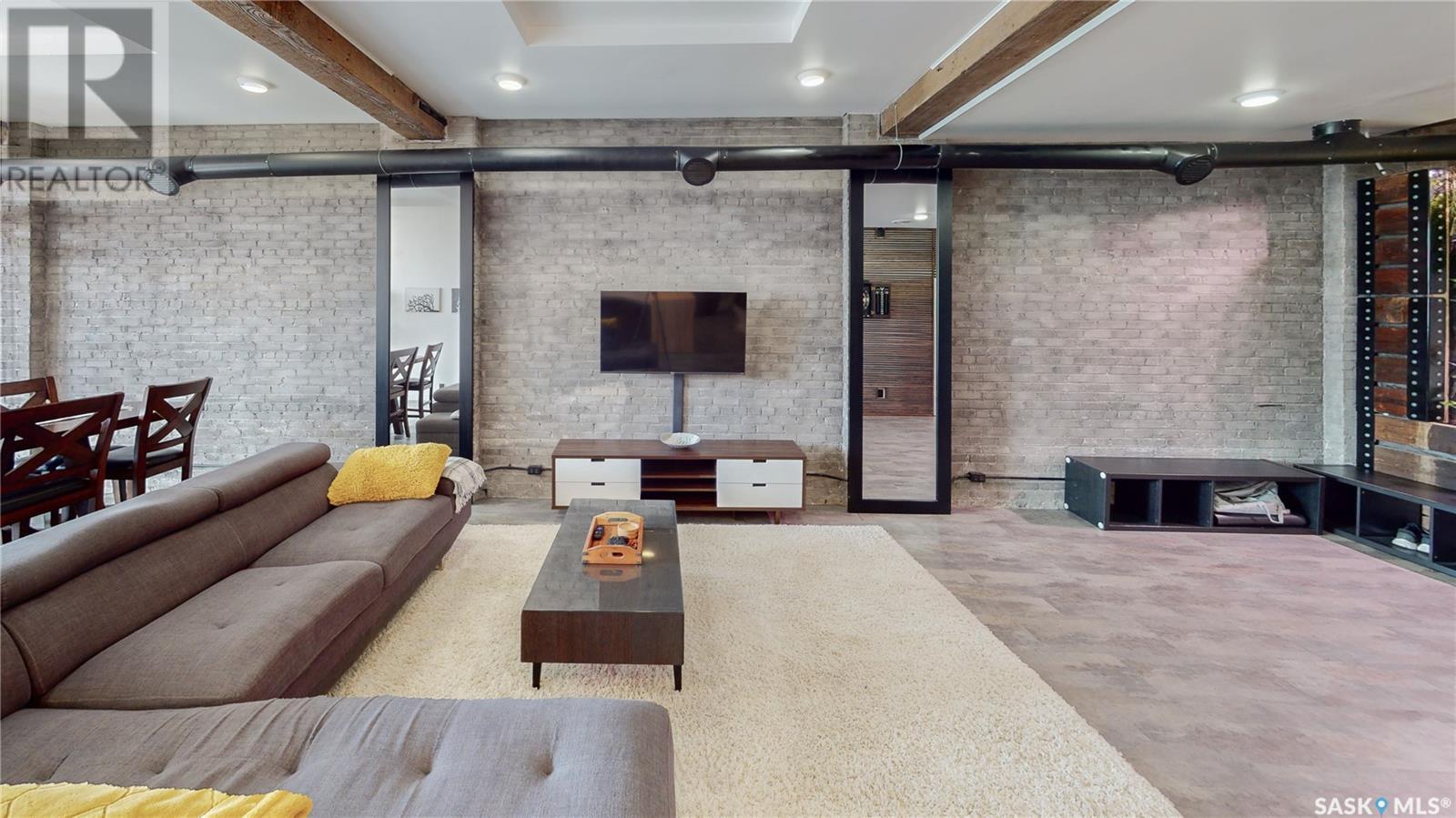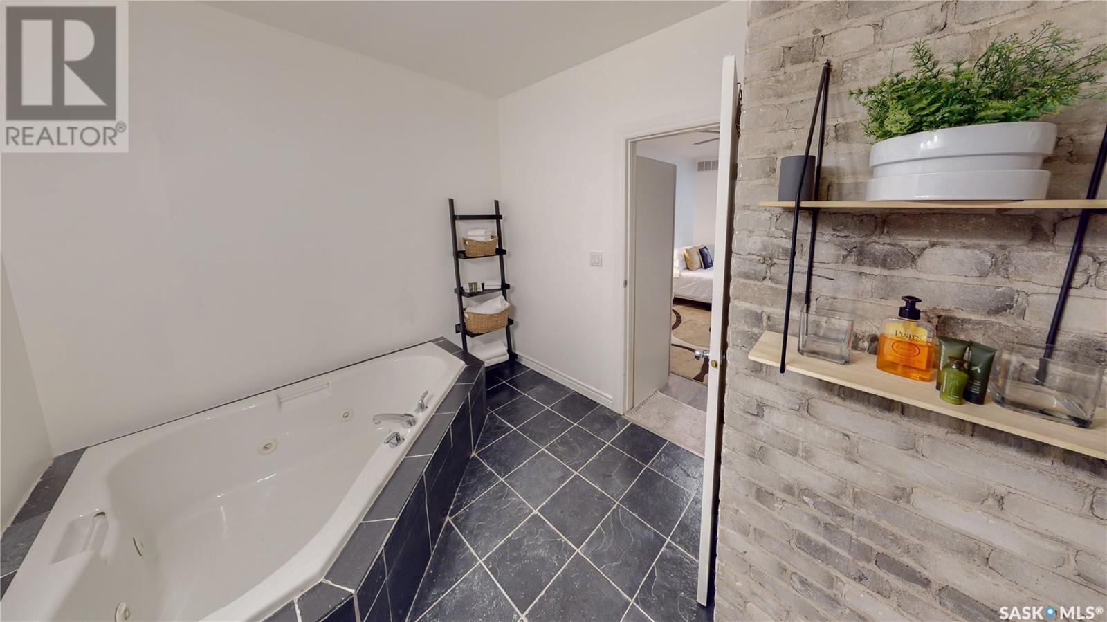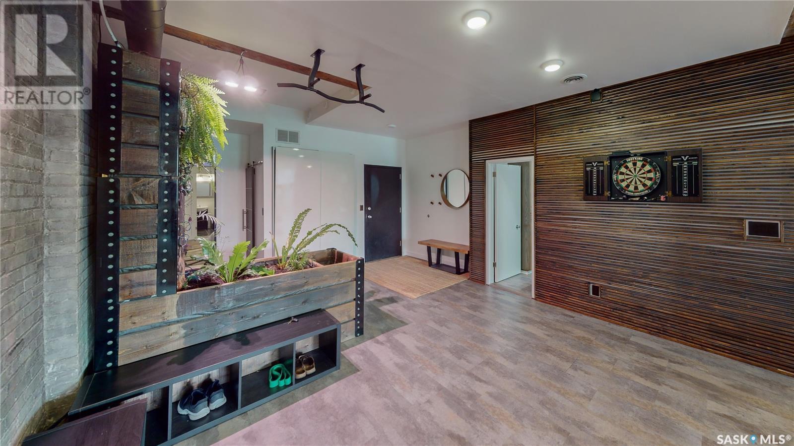 Welcome to unit 400 at 2128 Dewdney Ave in The Ackerman building! This 2 bed 3 bathroom, 1847 square foot fourth floor condo is located in Regina’s lively Warehouse district. You enter the fully furnished suite into the porch where a sitting area offers coat and shoe storage. One of the first things you see is a stunning vertical garden box with fully integrated lighting and watering system. Towards the back of the suite is the first bedroom with vinyl tile flooring, beautiful exposed brick and an auxiliary electrical heater. This bedroom also contains a dedicated entrance from the hallway. The 3 piece ensuite has a tile floor and a large corner jet tub. The main 3 piece bathroom is centrally located within the suite and has a tile shower, updated fixtures and a large vanity. The living room is open and bright with light filling the suite from large south facing windows. The original exposed beams and brick offer authentic warehouse condo feels. The kitchen has an abundance of cabinet storage. It's finished with concrete countertops, a waterfall butcher block, soft close cabinets/drawers, and LED under-lit floating shelves. New appliances include an induction cooktop with pot filler, stainless steel fridge, built in double oven, microwave and dishwasher. The laundry and utility room is neatly behind a door in the kitchen and includes the front load washer and dryer and has an updated gas furnace and water heater. The spacious dining area easily fits a large 8 person dining table. The office at the front of the unit is filled with light as the large windows look out to the cityscape. The primary bedroom is spacious enough for a king size bed and has two additional large south facing windows. The primary also contains a walk-in closet and a 3 piece ensuite with a large steam shower. Flexible possession date is available with option to continue executive rental ($2,350/mo) or renew Jan 1, 2024 (id:22211)