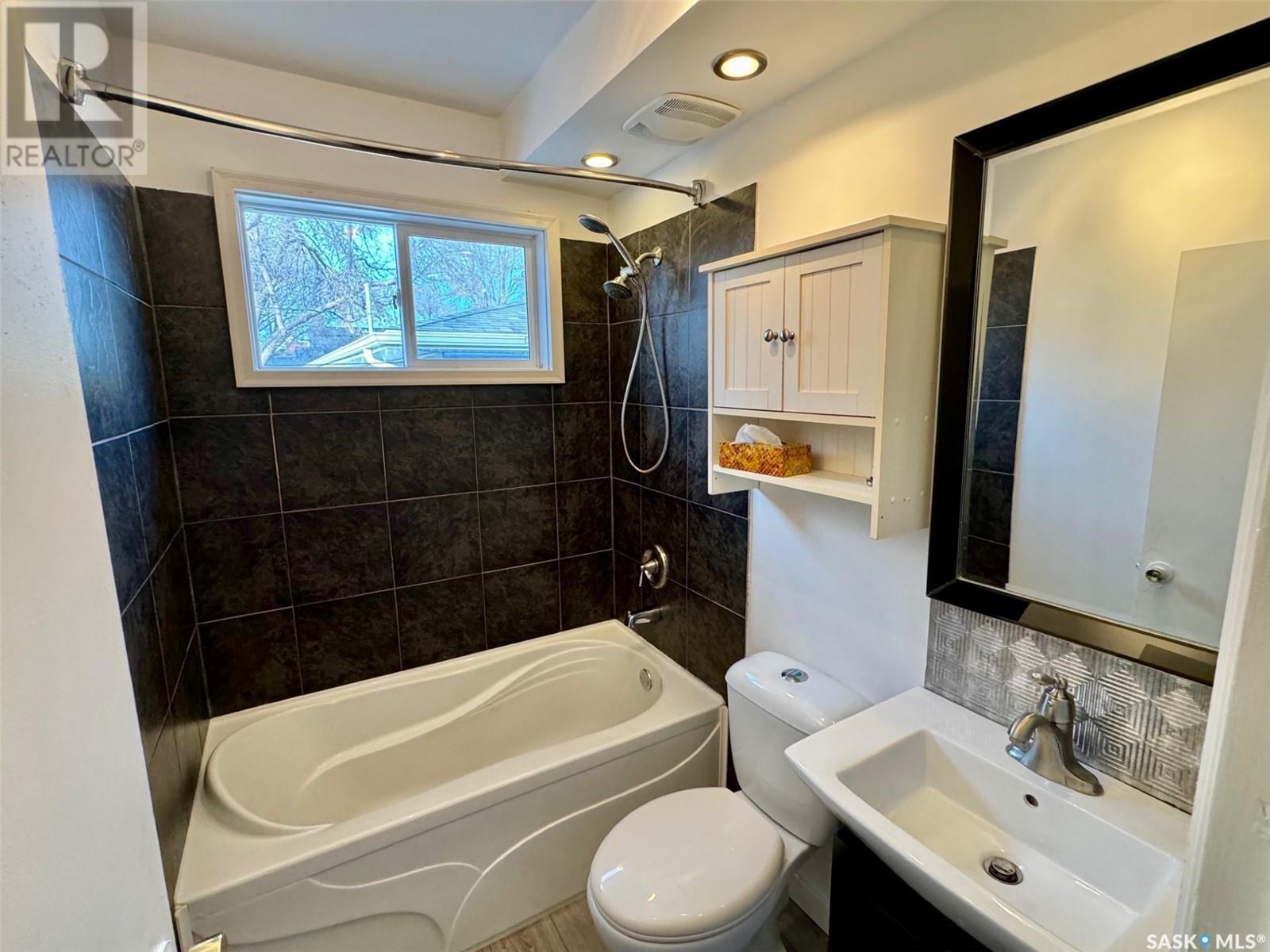 Step into the embrace of sophistication with this enchanting 3-bedroom bi-level residence, gracing the mature neighborhood of Broders Annex. A haven of comfort, this home seamlessly blends stylish living with a distinctive design. Dating back to 1957, this single-family dwelling spans an impressive 985 square feet, featuring two tastefully appointed 4-piece bathrooms and an accompanying single detached garage. Elegance meets functionality through a series of thoughtful upgrades, with highlights including rejuvenated shingles in 2012, select windows, an inviting deck, a high-efficiency furnace, modernized kitchen cupboards, upgraded bathrooms, refined flooring, and a fresh coat of paint throughout the interiors. Noteworthy attributes encompass French doors off the master suite, generously bathed in natural light, a resilient 100 amp panel, and a basement that exudes structural solidity. Discover a residence where timeless charm converges with modern conveniences—a testament to the art of refined living. (id:22211)