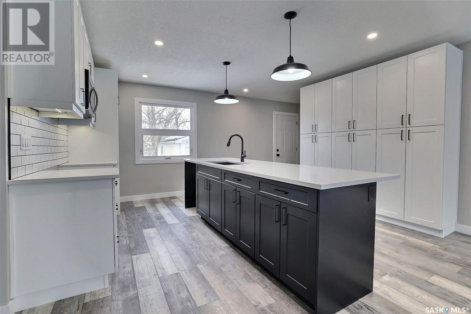 Comfortable and inviting decorated in light modern tones. Open main level floor plan allows a family to grow. Amazing kitchen has a 9’ island with quartz countertop and room for stools. Under cabinet lighting, new pot lights and custom subway tile backsplash enhance the modern feel. Check out the amount of storage with floor to ceiling cabinetry. Room for all your groceries and small appliances. Luxury vinyl plank throughout main level makes it easy to keep tidy. Completely updated bathroom with deep soaker tub and custom tile surround. All flooring, doors, trim, lighting, cabinetry on main level are new. Most of the plumbing and electrical have been updated. House has central air. Appliance package is available. Buyer can choose own appliances. Limitations apply. Ask your REALTOR® for full details. 3 spacious bedrooms in main hall. Completely updated main level 3 bedroom bungalow with additional living space in the lower level. Lower level has a giant family room, den, laundry, storage and a 3-piece bathroom. Bathroom is ready to be completed. Plumbing is in for shower, vanity and toilet. Lower level renovation can be negotiated for an extra cost for a completely move-in-ready home. Partially fenced yard with deck and grass area for kids. Heated single detached garage is ready for the home mechanic or handyman. Located on a quiet crescent location with only local traffic that allows children to ride bikes and play in front of their home. Park just down the street. School around the corner. (id:22211)