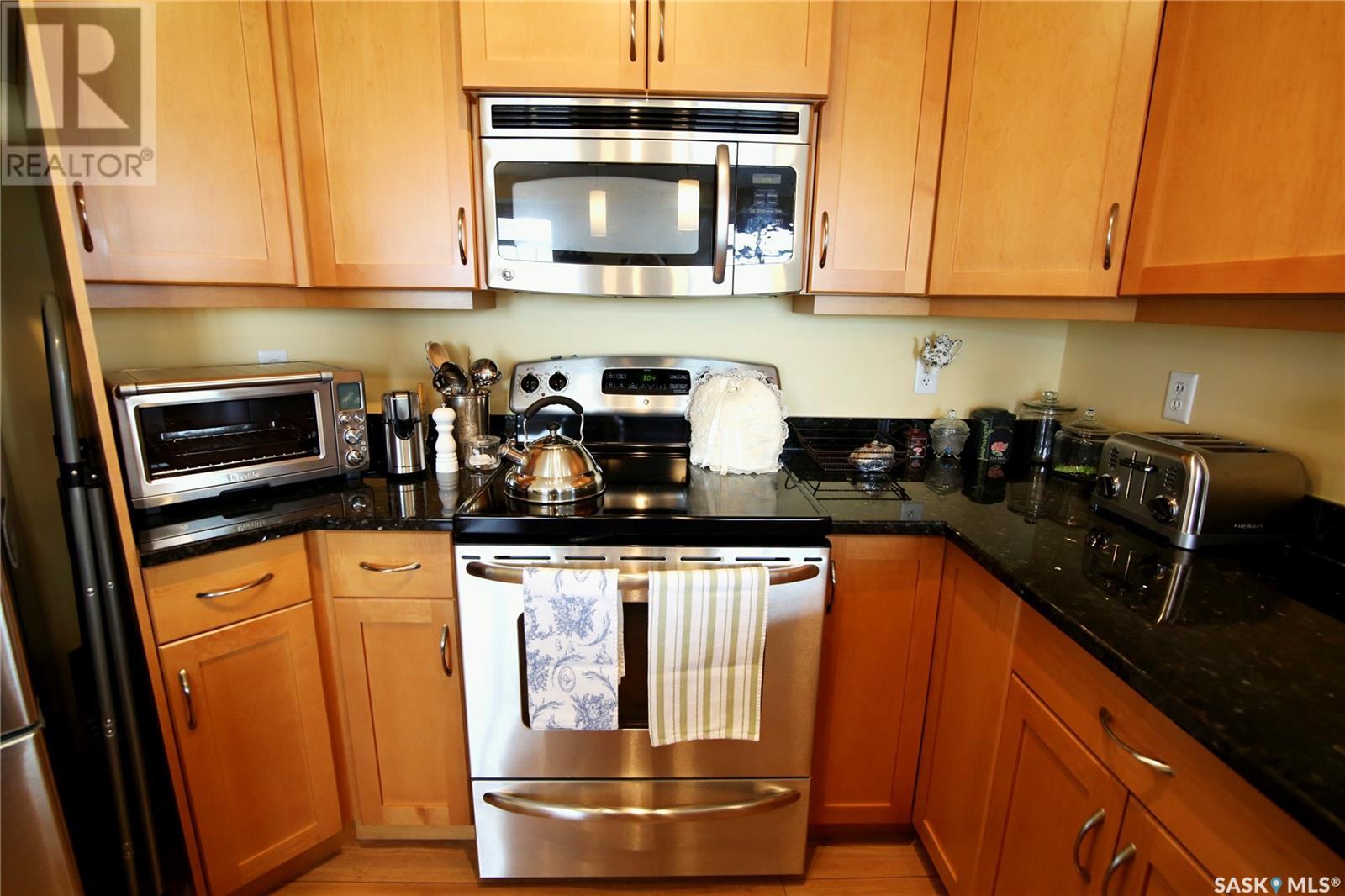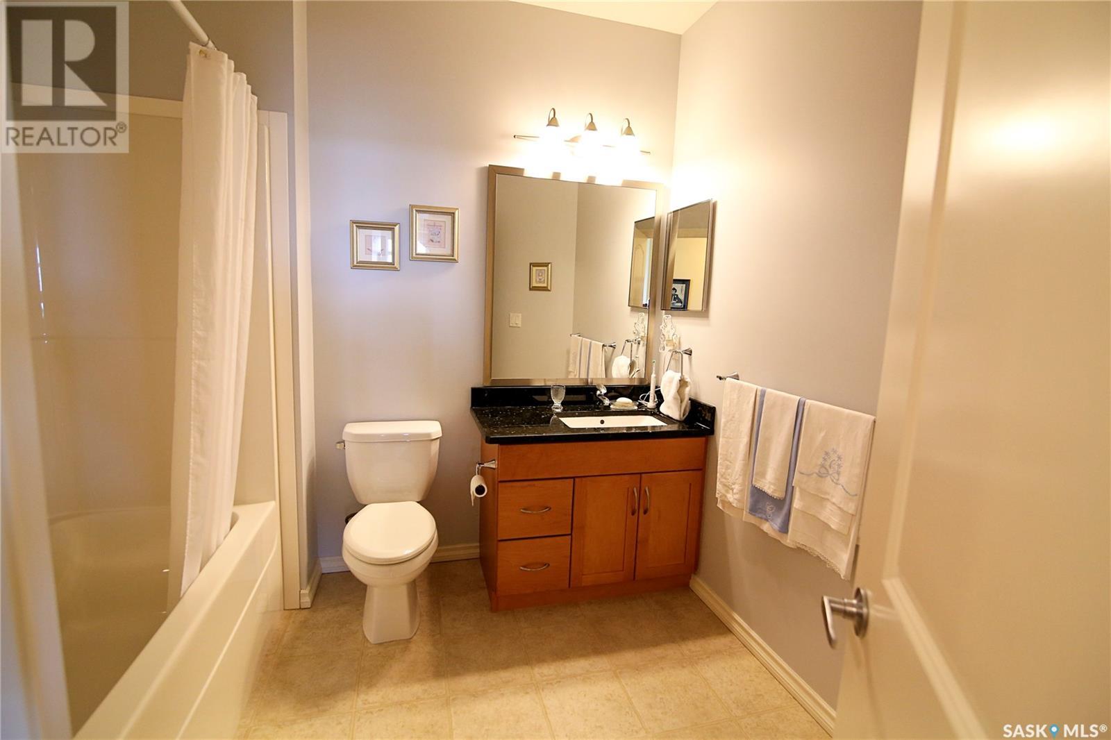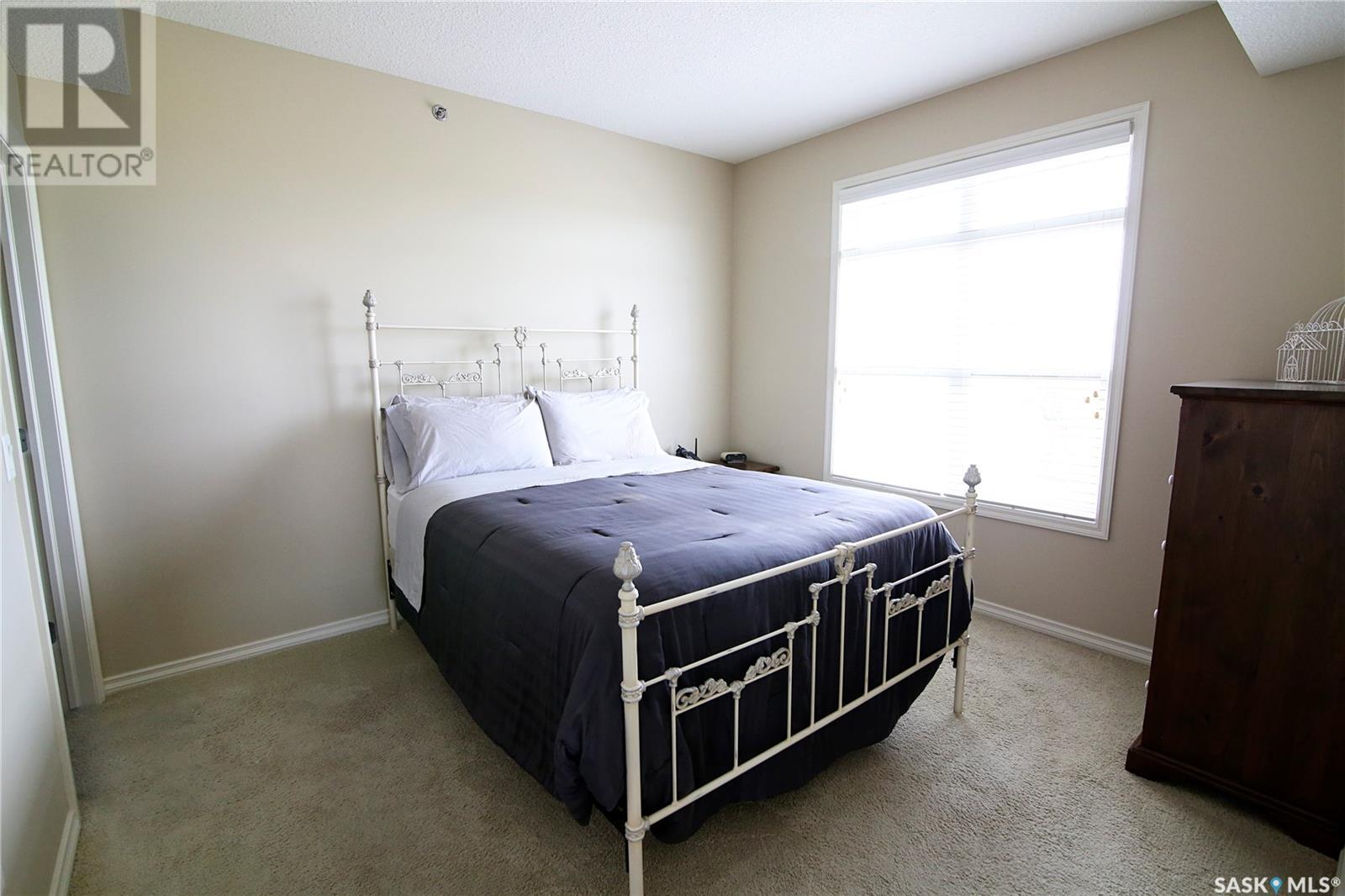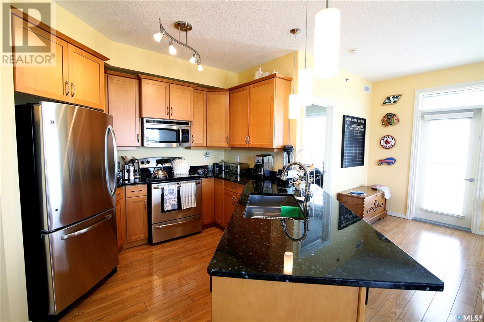 Wow! Are you looking for a great east end, top floor condo with underground parking? You've found it. This second owner home has been lovingly cared for and is ready and waiting for someone new to love it as well. This top floor, end unit is east facing and flooded with tons of natural light. Its super bright and sunny and very warm and inviting. There is a spacious foyer as well as a large laundry with room for extra storage. On one side is a large primary bedroom with its own deck with partial water views, as well as a large walk in closet and 3 pc ensuite. On the other end of this home is a good sized, 2nd bedroom with another walk in closet. The living space features a good sized kitchen with tons of maple cabinets and stunning black granite counters as well as a stainless steel full appliance package. The kitchen is open to a good sized diningroom and large livingroom with a garden door to the 2nd deck with a natural gas line for your grill. This complex has a great amenities/games room with a fantastic pool table. This suite comes with heated underground parking as well as a convenient storage locker. Riverbend Lakes is a great complex, close to all the east end shopping and restaurants. This homes owners have taken such great care of it and it truly needs to be seen to be appreciated. Don't miss out on this one! (id:22211)