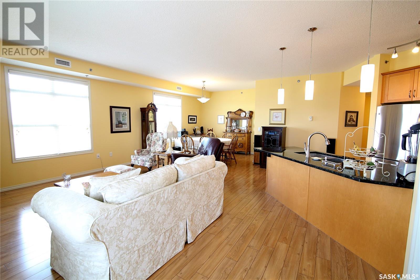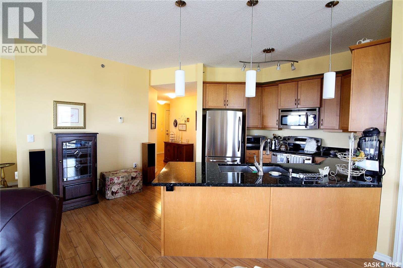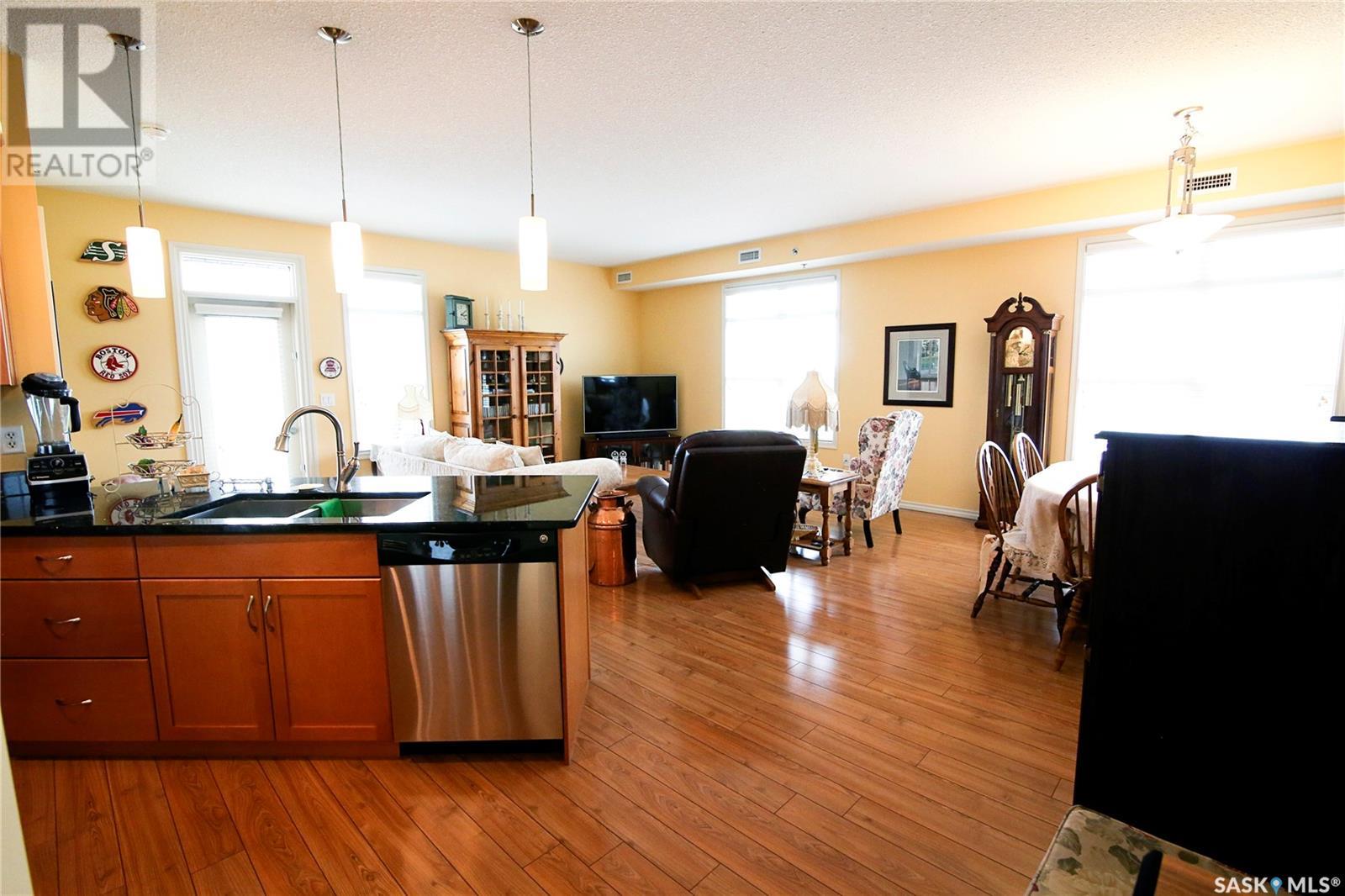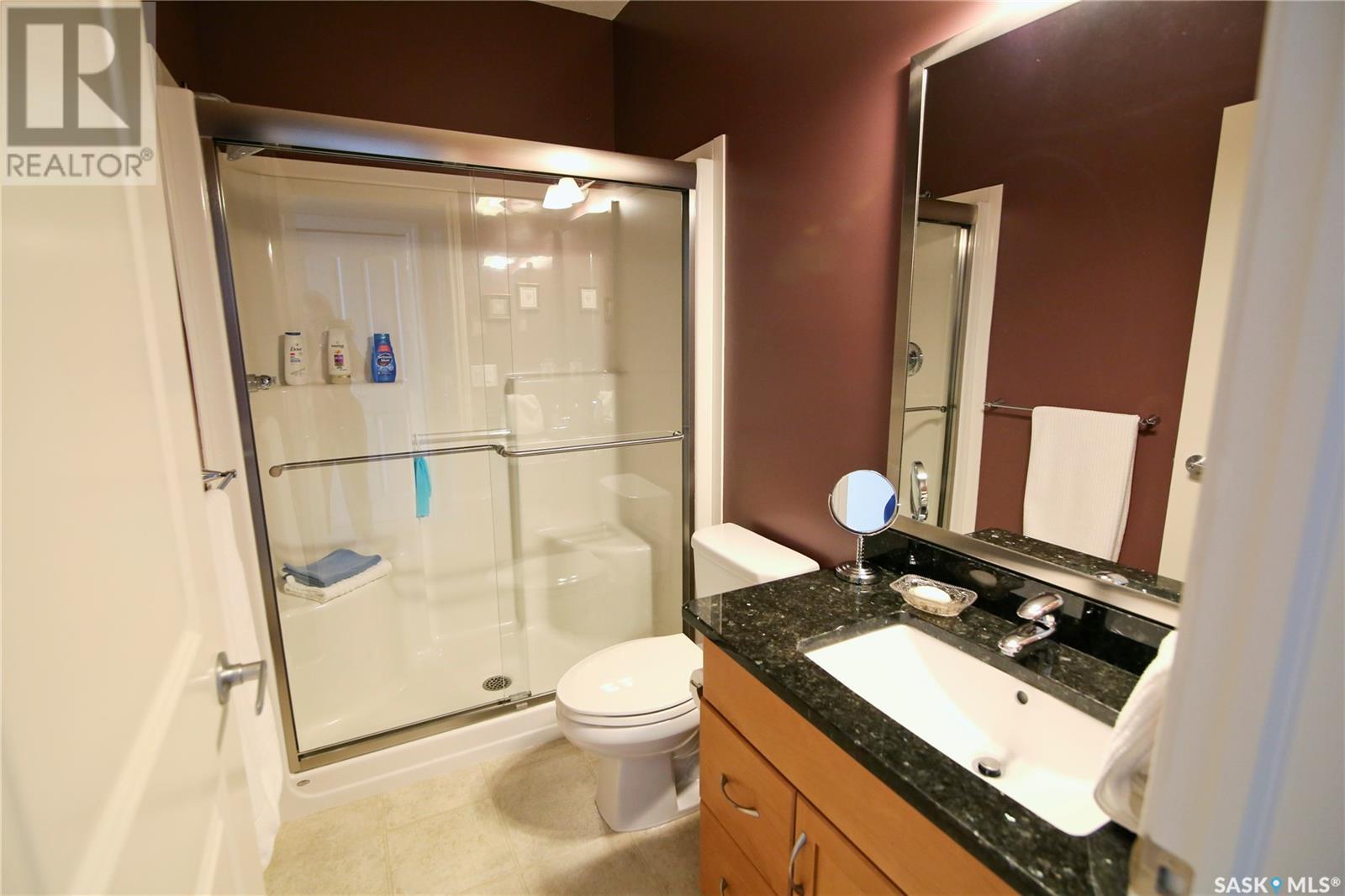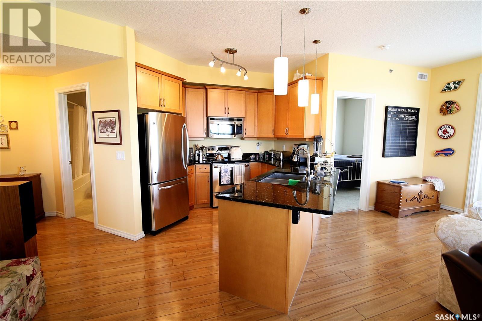 Wow! Are you looking for a great east end, top floor condo with underground parking? You've found it. This second owner home has been lovingly cared for and is ready and waiting for someone new to love it as well. This top floor, end unit is east facing and flooded with tons of natural light. Its super bright and sunny and very warm and inviting. There is a spacious foyer as well as a large laundry with room for extra storage. On one side is a large primary bedroom with its own deck with partial water views, as well as a large walk in closet and 3 pc ensuite. On the other end of this home is a good sized, 2nd bedroom with another walk in closet. The living space features a good sized kitchen with tons of maple cabinets and stunning black granite counters as well as a stainless steel full appliance package. The kitchen is open to a good sized diningroom and large livingroom with a garden door to the 2nd deck with a natural gas line for your grill. This complex has a great amenities/games room with a fantastic pool table. This suite comes with heated underground parking as well as a convenient storage locker. Riverbend Lakes is a great complex, close to all the east end shopping and restaurants. This homes owners have taken such great care of it and it truly needs to be seen to be appreciated. Don't miss out on this one! (id:22211)