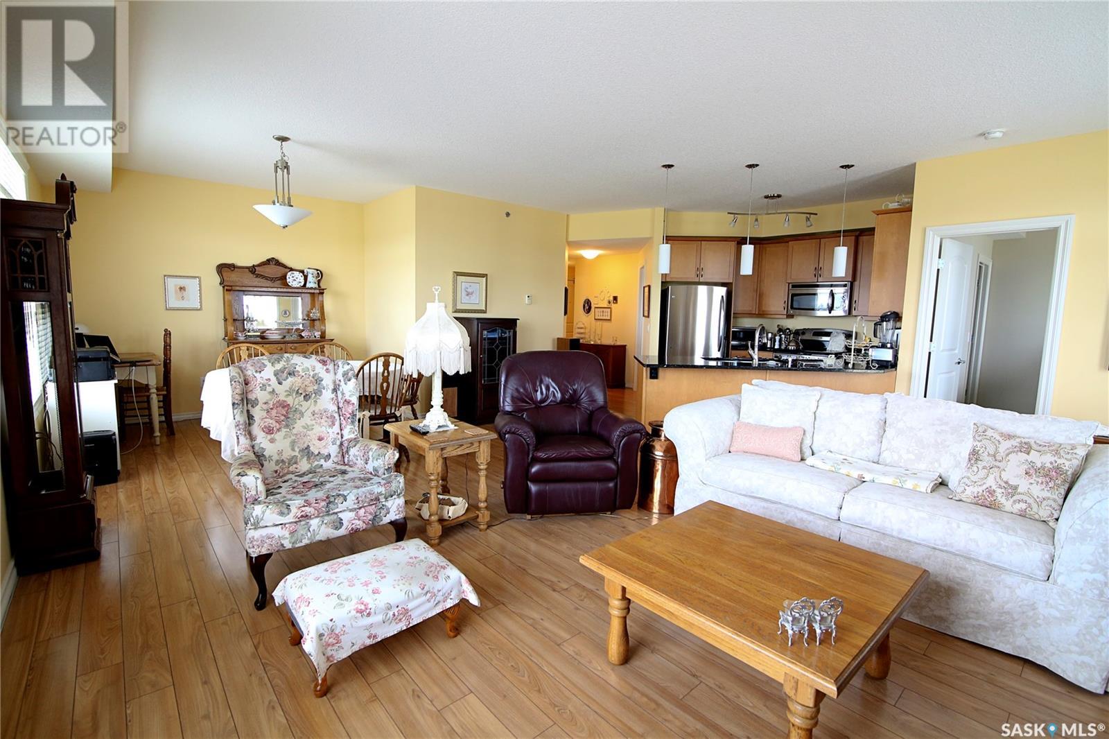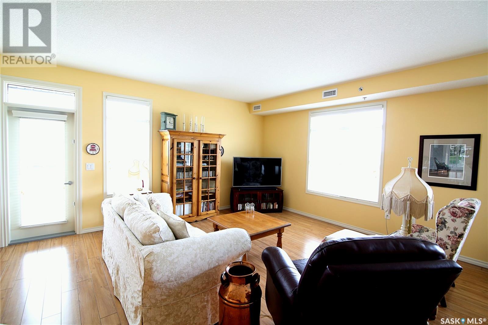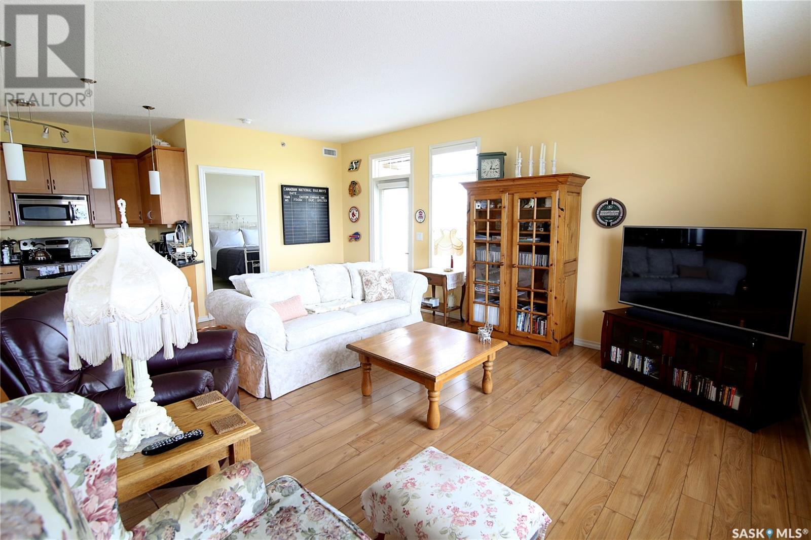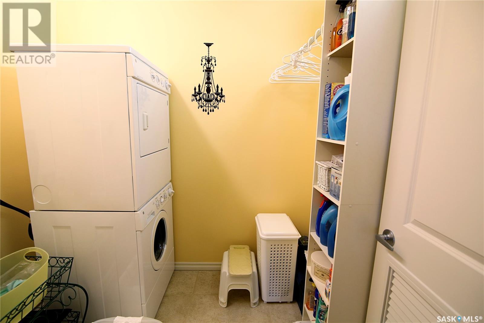 Wow! Are you looking for a great east end, top floor condo with underground parking? You've found it. This second owner home has been lovingly cared for and is ready and waiting for someone new to love it as well. This top floor, end unit is east facing and flooded with tons of natural light. Its super bright and sunny and very warm and inviting. There is a spacious foyer as well as a large laundry with room for extra storage. On one side is a large primary bedroom with its own deck with partial water views, as well as a large walk in closet and 3 pc ensuite. On the other end of this home is a good sized, 2nd bedroom with another walk in closet. The living space features a good sized kitchen with tons of maple cabinets and stunning black granite counters as well as a stainless steel full appliance package. The kitchen is open to a good sized diningroom and large livingroom with a garden door to the 2nd deck with a natural gas line for your grill. This complex has a great amenities/games room with a fantastic pool table. This suite comes with heated underground parking as well as a convenient storage locker. Riverbend Lakes is a great complex, close to all the east end shopping and restaurants. This homes owners have taken such great care of it and it truly needs to be seen to be appreciated. Don't miss out on this one! (id:22211)