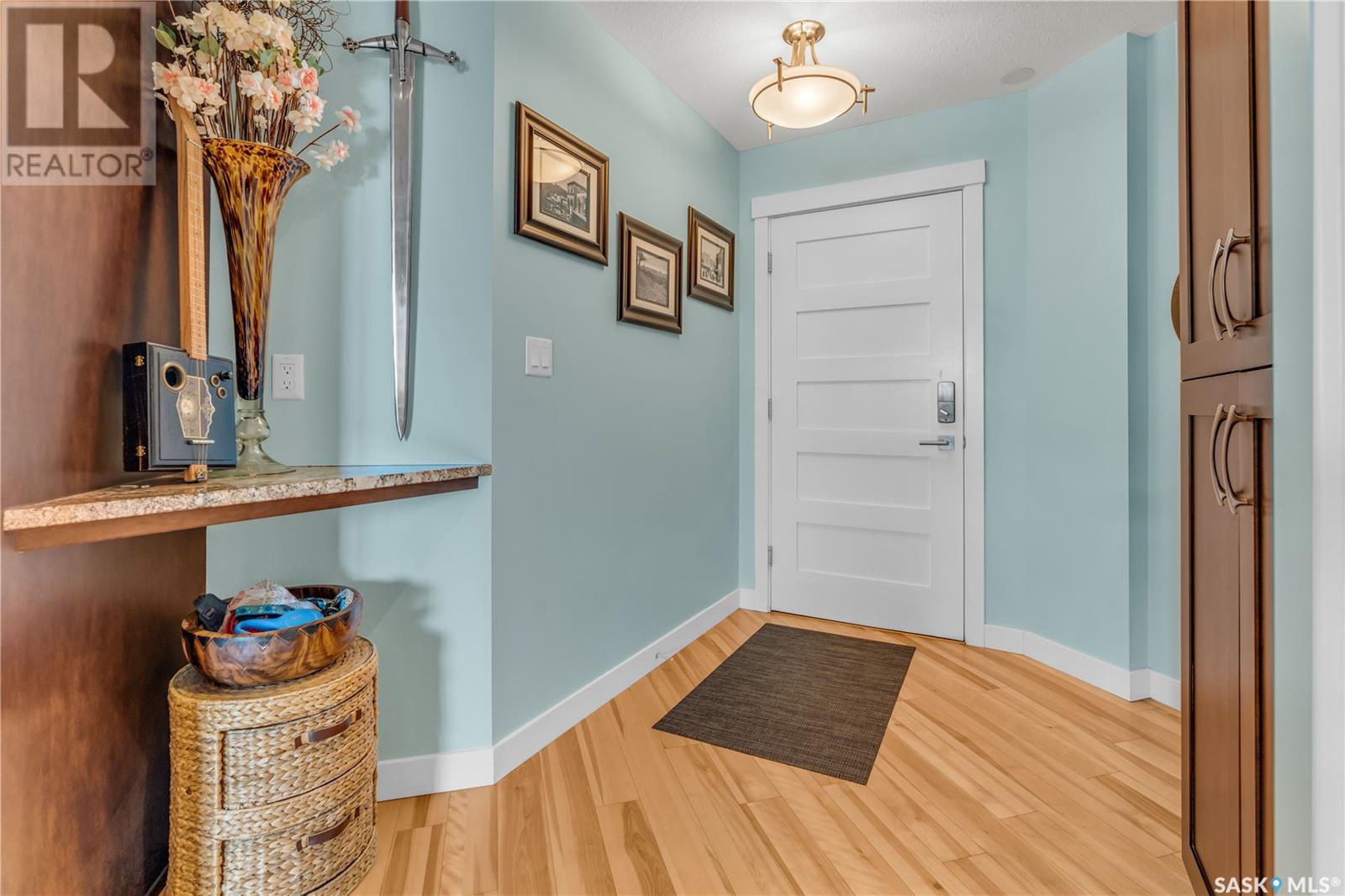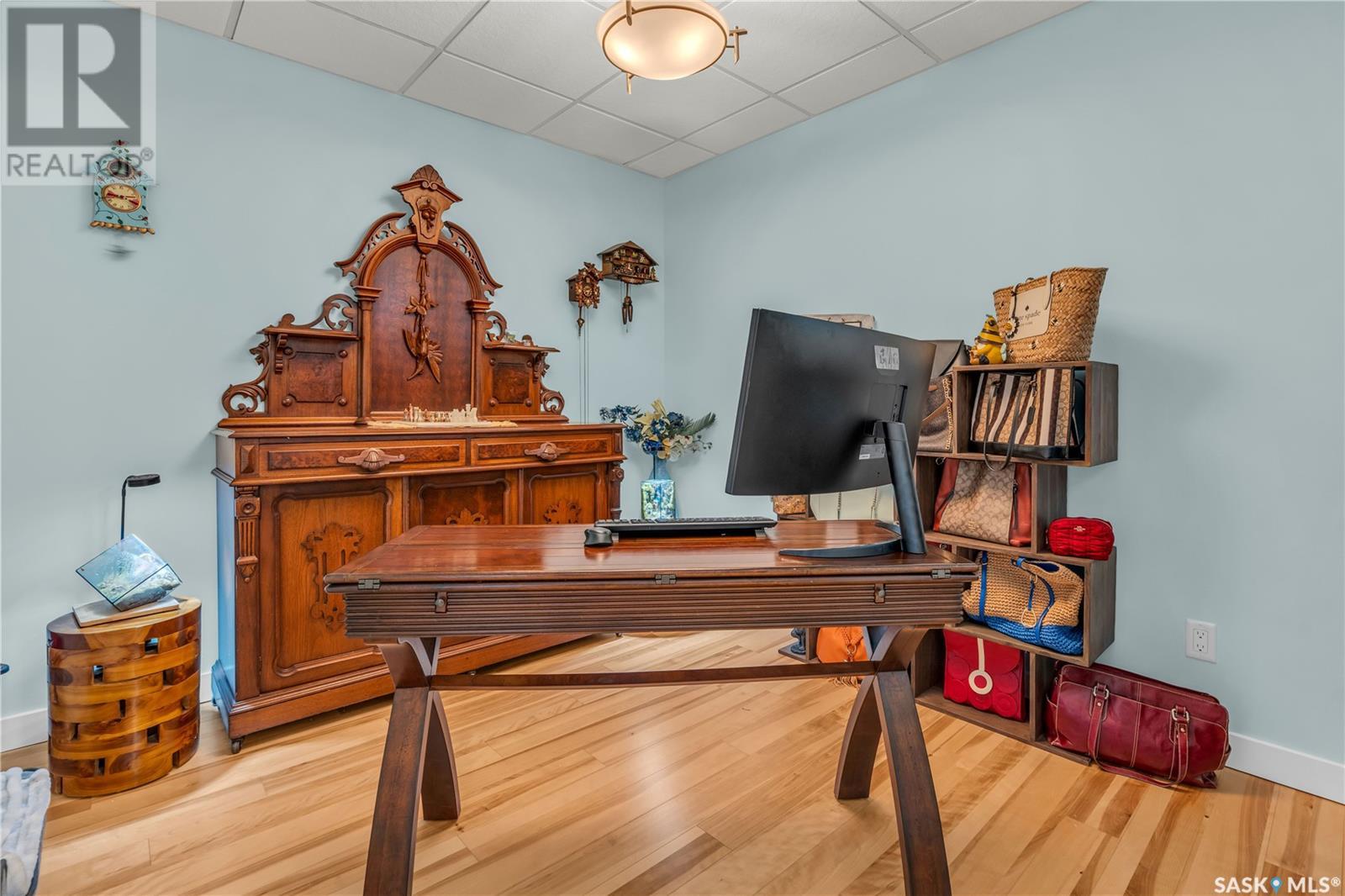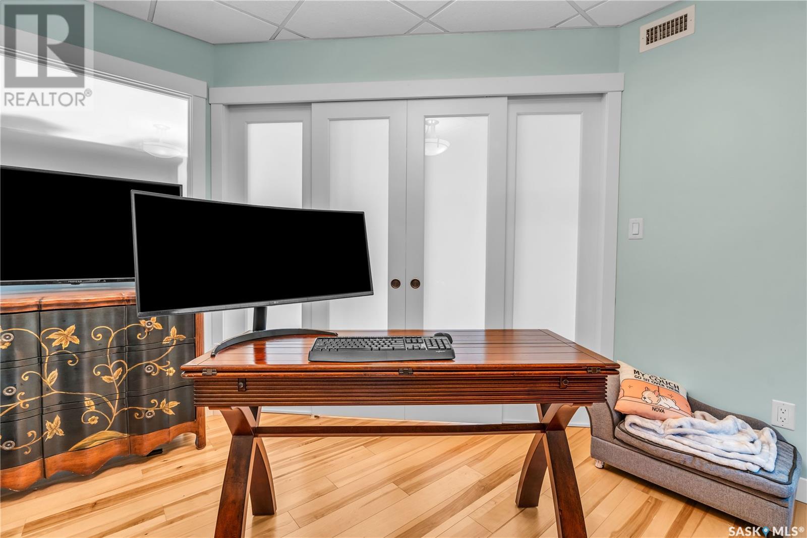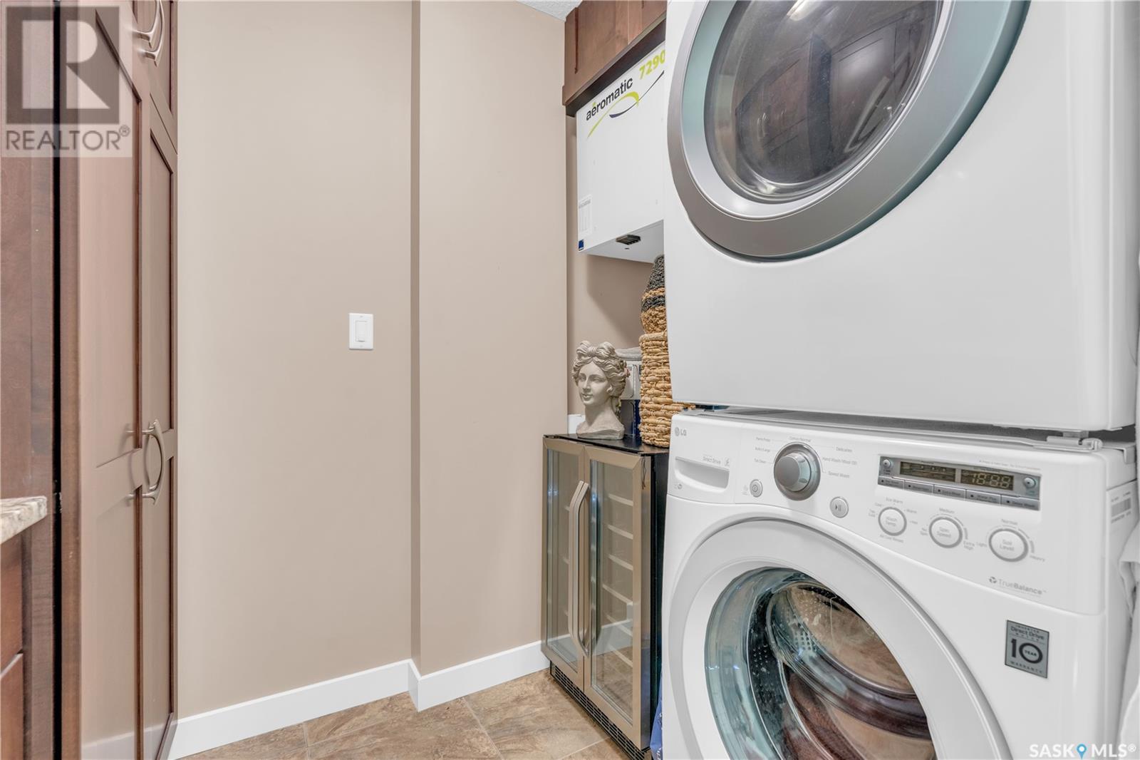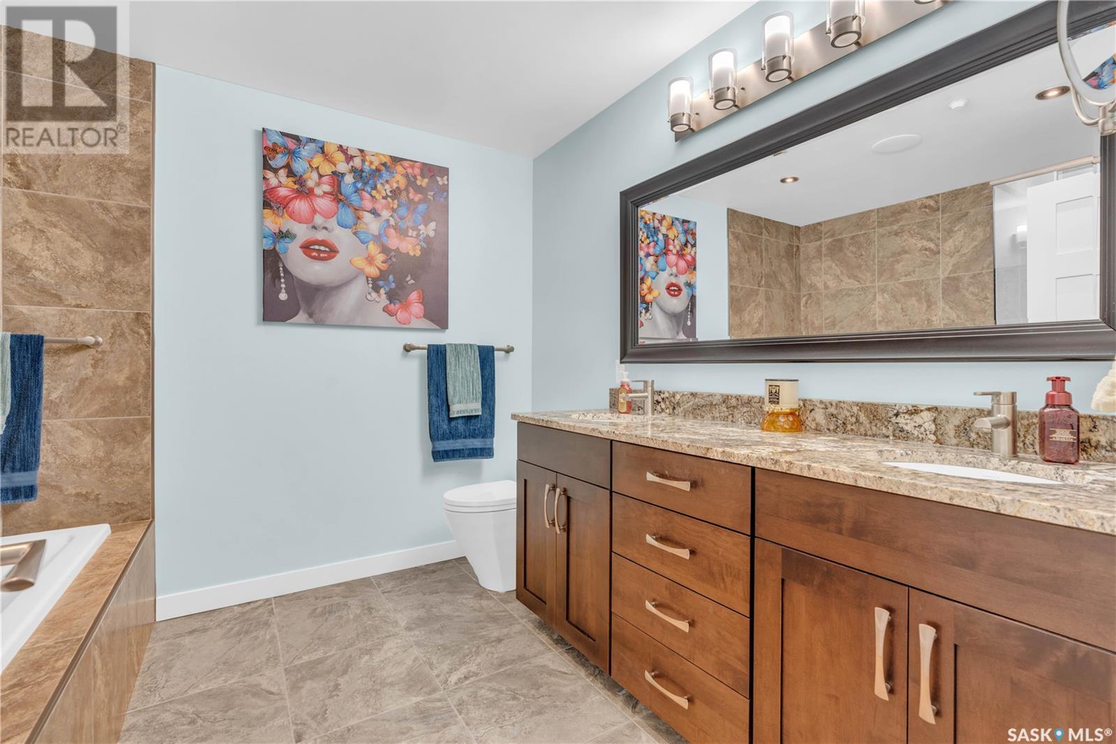 Welcome to 904 - 2300 Broad Street. This exceptional residence offers a unique living experience with stunning views of Wascana Lake and the beautifully treed old town. Enjoy the changing seasons from nearly floor-to-ceiling windows on three walls, without ever needing to pick up a leaf or shovel snow. Inside, the home impresses with blonde oak flooring and heated tile throughout. The chef’s kitchen features floor-to-ceiling cabinets, granite countertops, mahogany solid wood cabinetry, dual porcelain sinks, and high-end appliances. The master bedroom boasts a floor-to-ceiling window facing Wascana Park, a generous space, a walk-in closet, and mahogany built-in wardrobes. The luxurious ensuite bathroom includes a tiled shower with multiple shower heads, heated tile floors, a large granite countertop with dual sinks, and mahogany cabinets. Don’t miss the large soaker tub with a tile surround. The second bedroom, with two walls of floor-to-ceiling windows overlooking a century-old tree canopy, offers ample space and built-in mahogany wardrobes. The secondary bathroom features heated tile floors, granite countertops, and a corner shower. The laundry room is also elegantly designed with a granite countertop and mahogany cabinets. All blinds are remote-operated for automatic opening and closing, with blackout blinds in both bedrooms. The living space, the heart of this home, is enhanced by a sandstone three-sided fireplace and is surrounded by natural light. Built-in surround sound allows you to enjoy your favorite music or TV shows, whether you're relaxing in the soaker tub or in the living room. Additionally, an executive office/den is conveniently located just off the kitchen, featuring dual sliding doors. Comfort is further enhanced with an in-suite air exchange and humidity control system. The custom-tiled deck facing Wascana Park is perfect for enjoying your morning coffee while watching the sunrise. This property also includes two generous parking stalls! (id:22211)