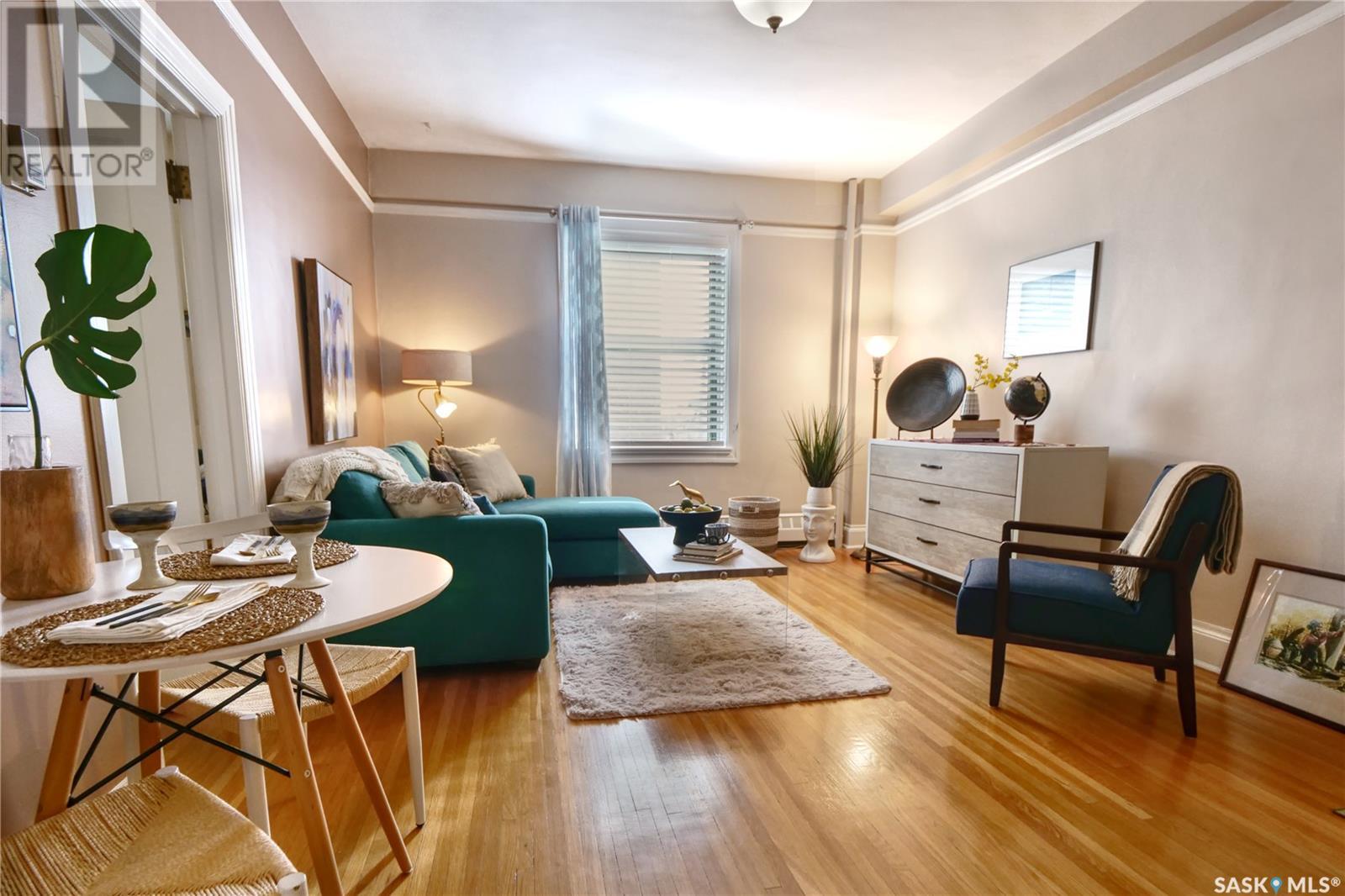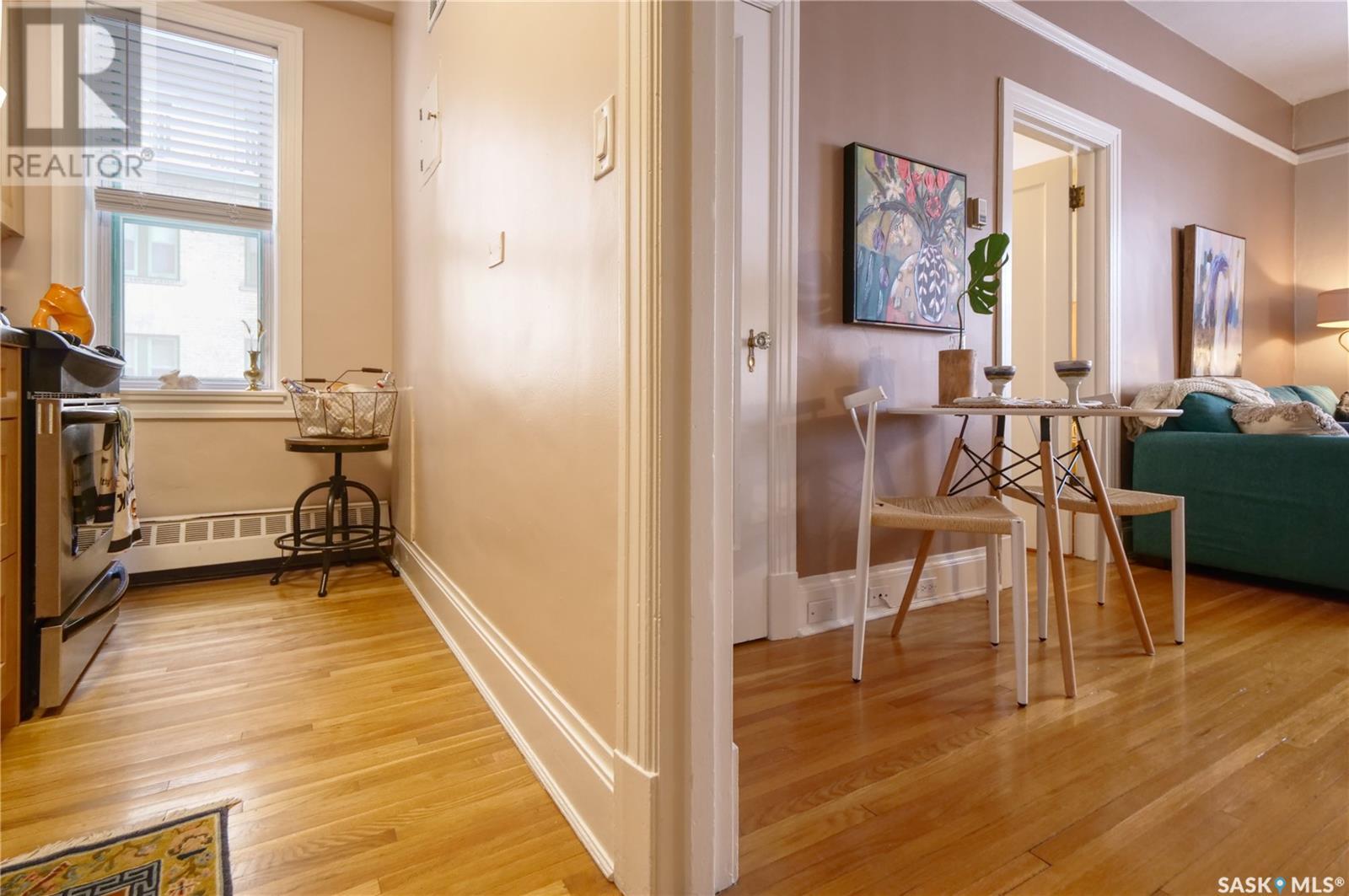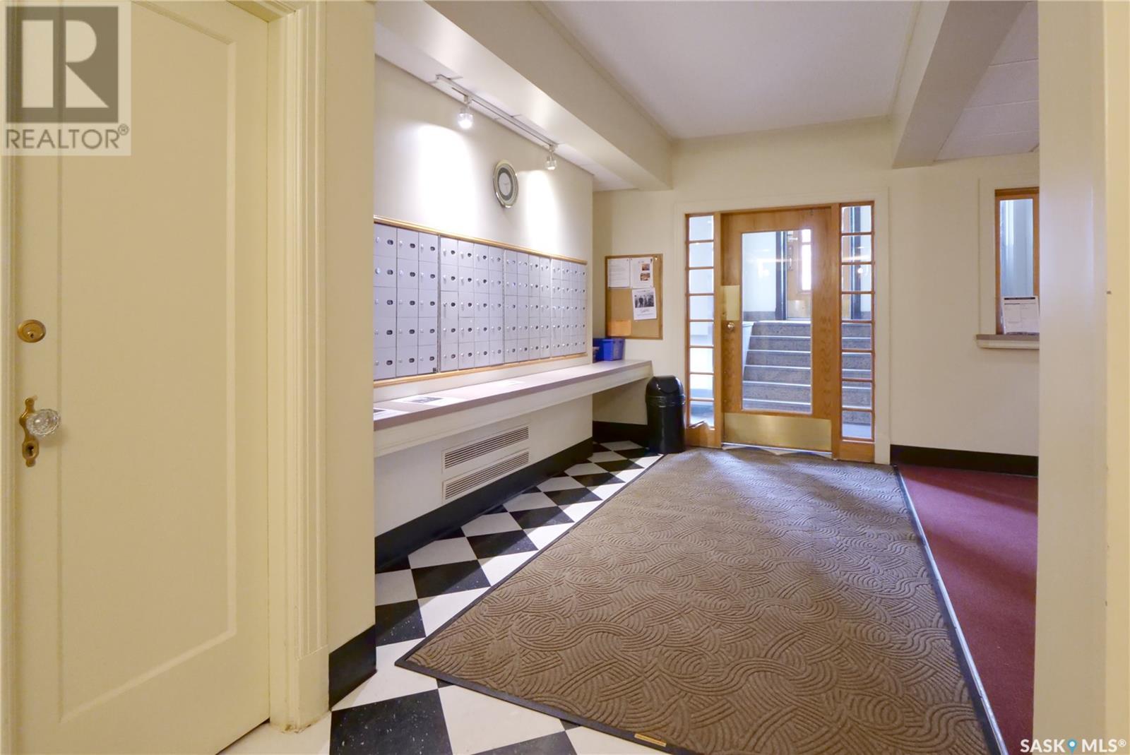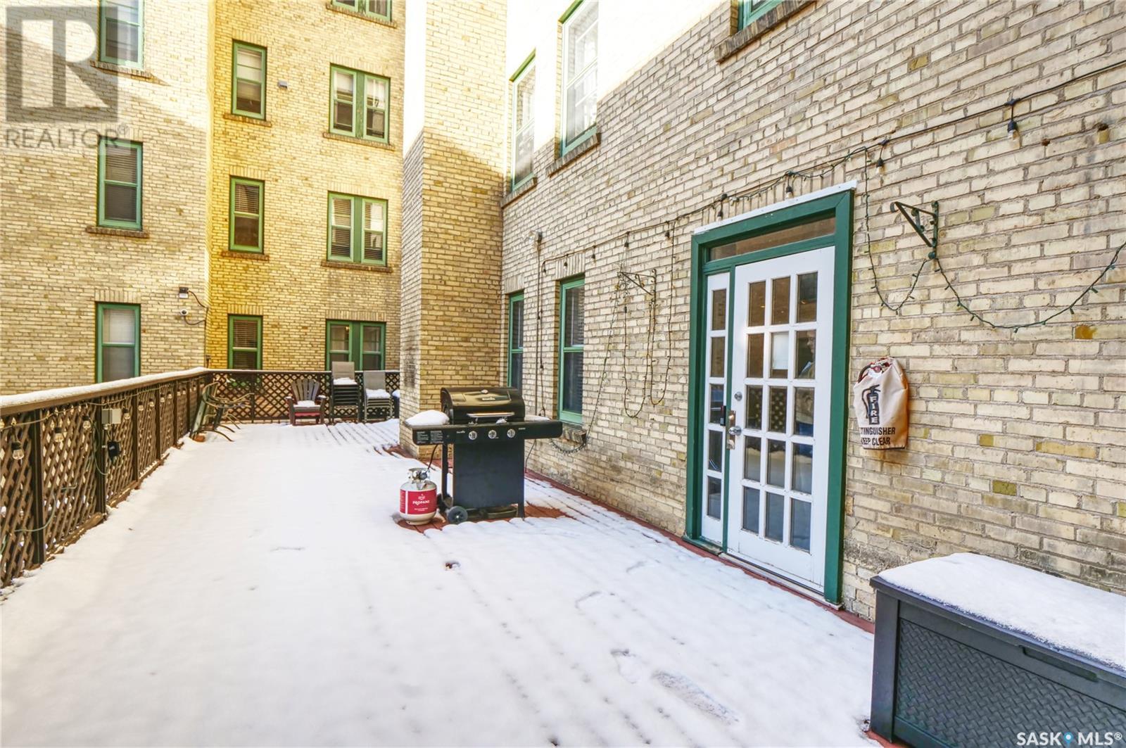 Welcome to The Balfour – an exceptional, historic art deco building in the heart of the city! The building's main gates open onto a manicured courtyard; a grand entrance and lobby; leading to the west wing where the elevator/staircase take you to the 2nd floor. Now,....the wow! Inside the condo, a sanctuary – bright, spacious living room (gorgeous hardwood floors, 12' ceilings, lg. windows), a perfectly designed galley kitchen (updated maple cabinetry, stainless appliances), a lovely bedroom, and a full updated bath (you’ll love the tiles!) presented with on-trend elements perfect for discerning Buyers! Life at the Balfour offers a large common area and outdoor patio w. gas BBQ (also available for rentals so entertain your guests in style); basement laundry, bike storage, storage locker, rental parking, beautifully maintained original style throughout! Great location: across from Victoria Park, downtown shops/dining/entertainment. Condo fees include: heat, water, reserve fund, exterior & interior maintenance, onsite building manager, landscaping, common insurance & more. Words fail to describe the ambiance of this must-see property. (id:22211)
