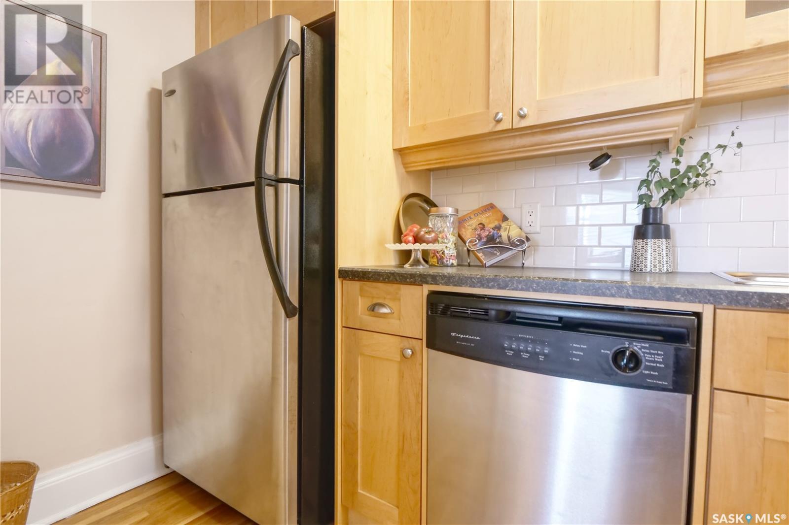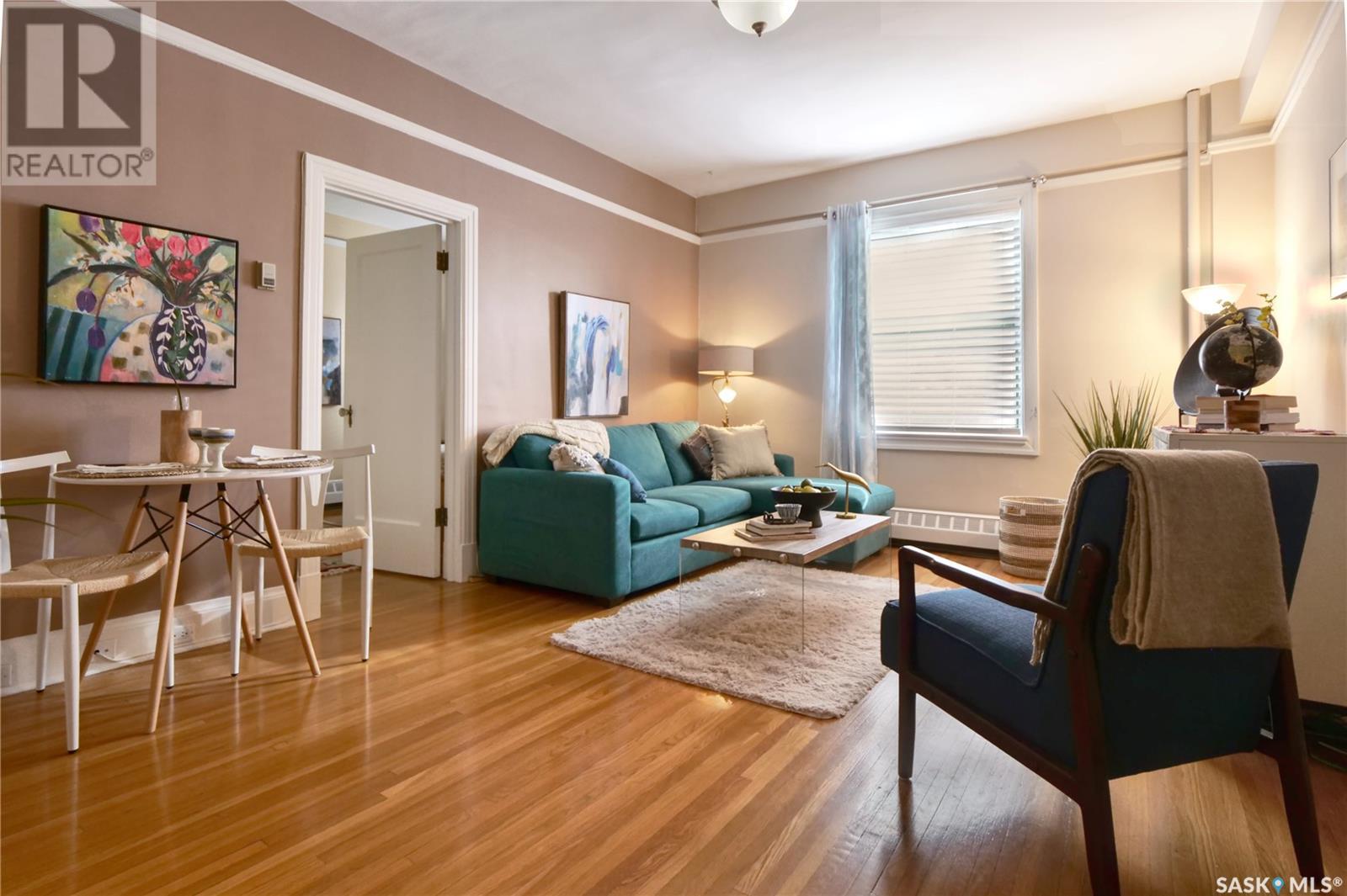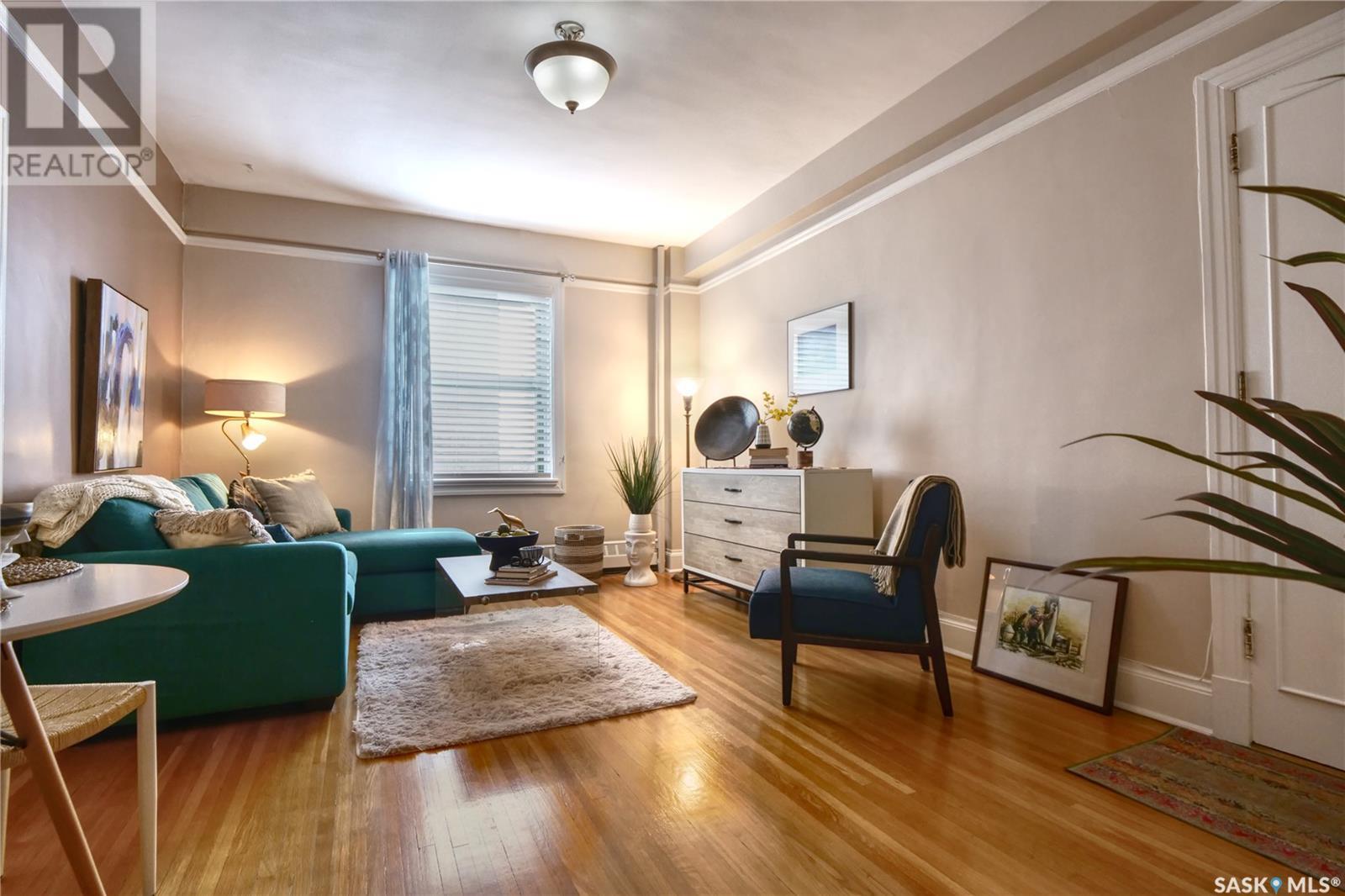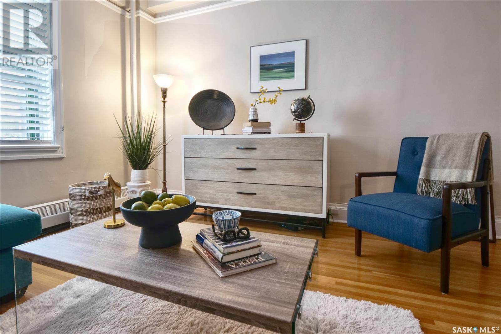 Welcome to The Balfour – an exceptional, historic art deco building in the heart of the city! The building's main gates open onto a manicured courtyard; a grand entrance and lobby; leading to the west wing where the elevator/staircase take you to the 2nd floor. Now,....the wow! Inside the condo, a sanctuary – bright, spacious living room (gorgeous hardwood floors, 12' ceilings, lg. windows), a perfectly designed galley kitchen (updated maple cabinetry, stainless appliances), a lovely bedroom, and a full updated bath (you’ll love the tiles!) presented with on-trend elements perfect for discerning Buyers! Life at the Balfour offers a large common area and outdoor patio w. gas BBQ (also available for rentals so entertain your guests in style); basement laundry, bike storage, storage locker, rental parking, beautifully maintained original style throughout! Great location: across from Victoria Park, downtown shops/dining/entertainment. Condo fees include: heat, water, reserve fund, exterior & interior maintenance, onsite building manager, landscaping, common insurance & more. Words fail to describe the ambiance of this must-see property. (id:22211)