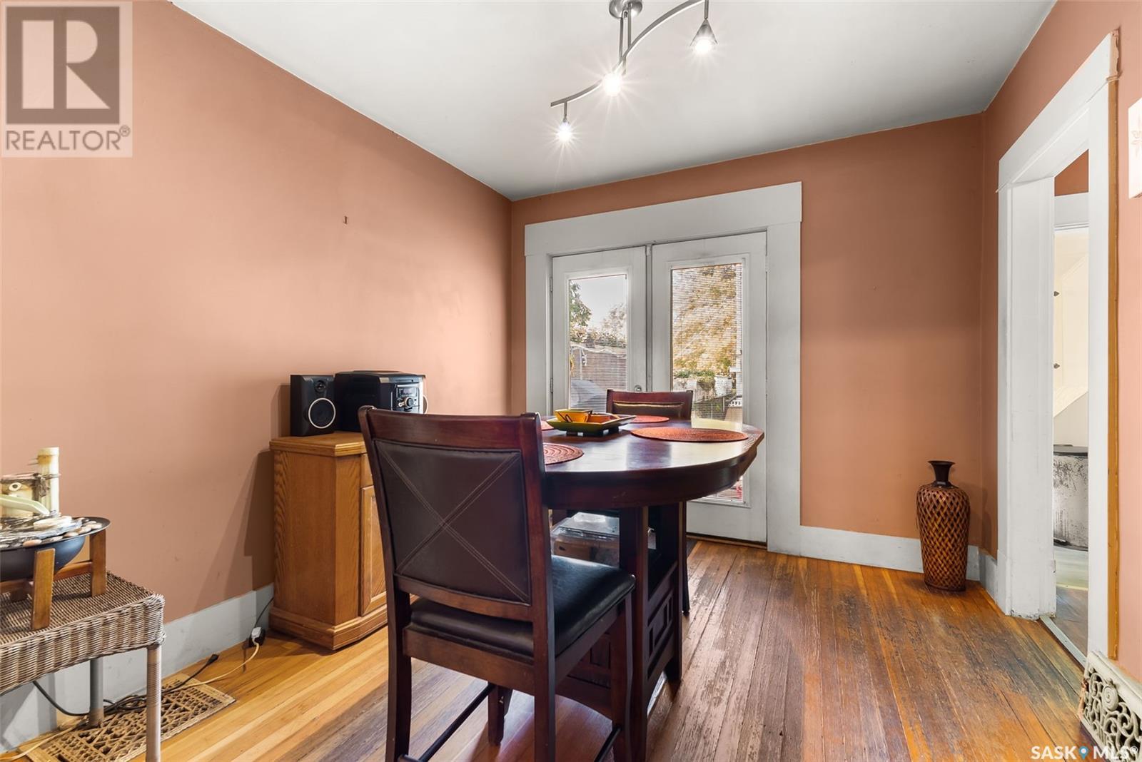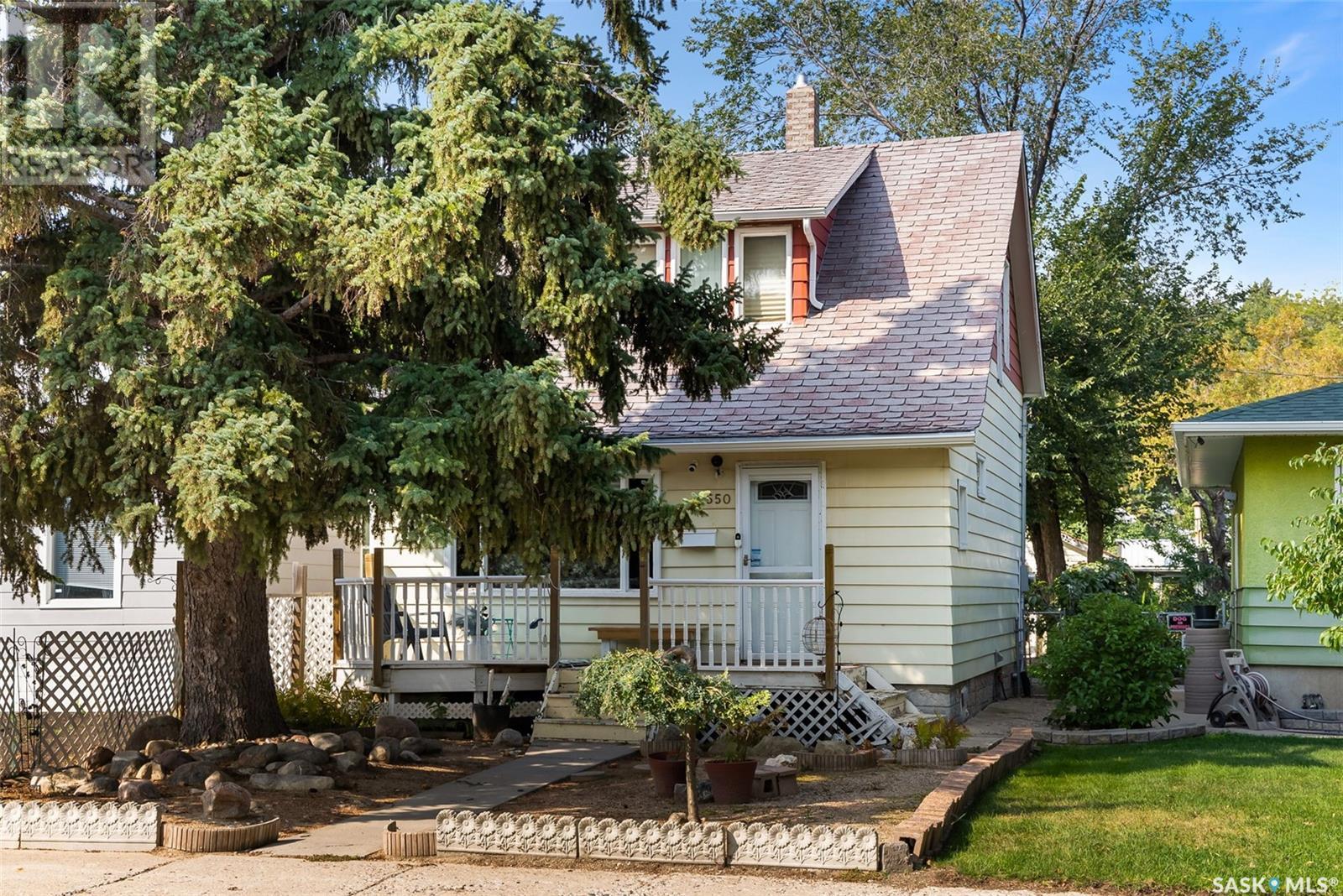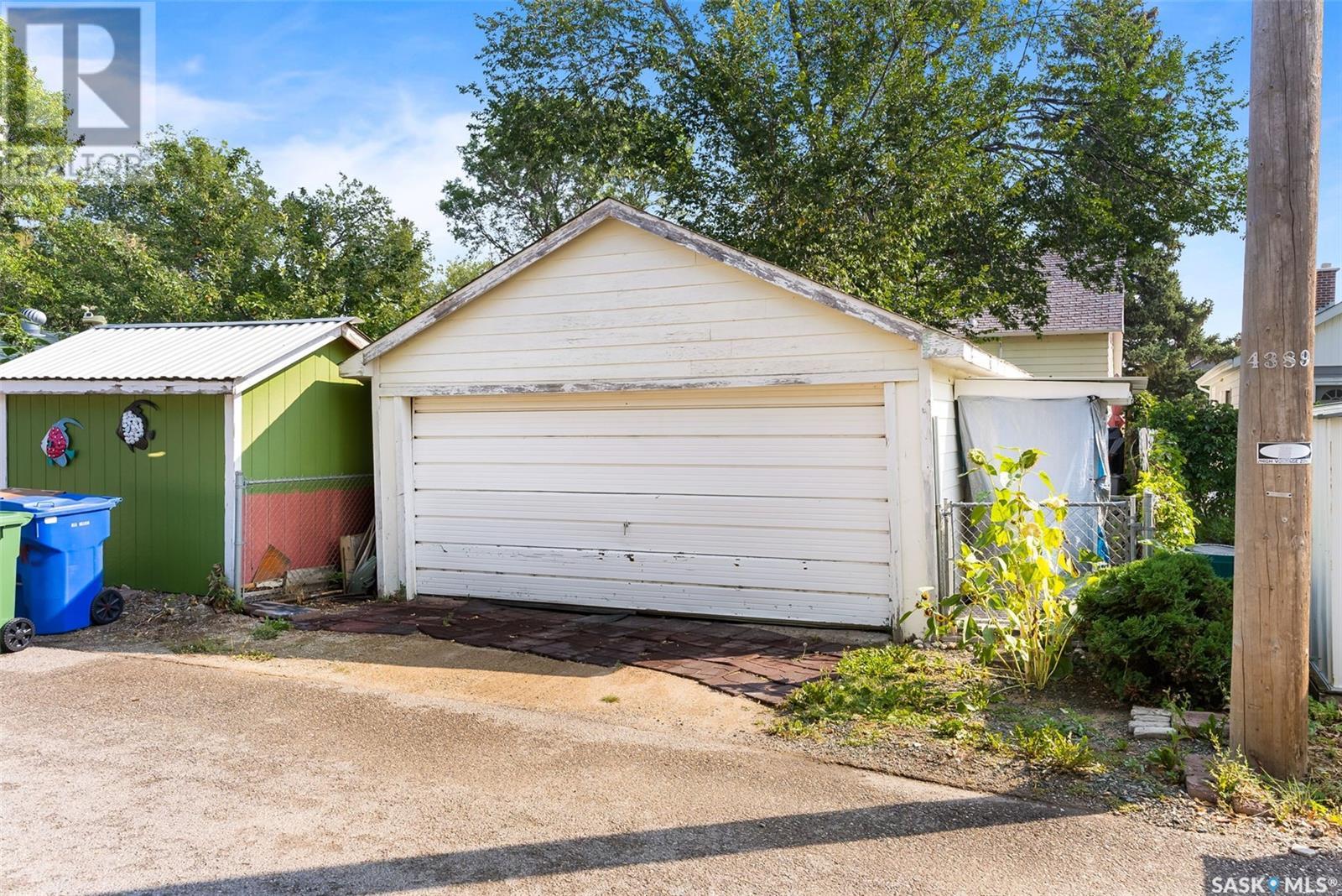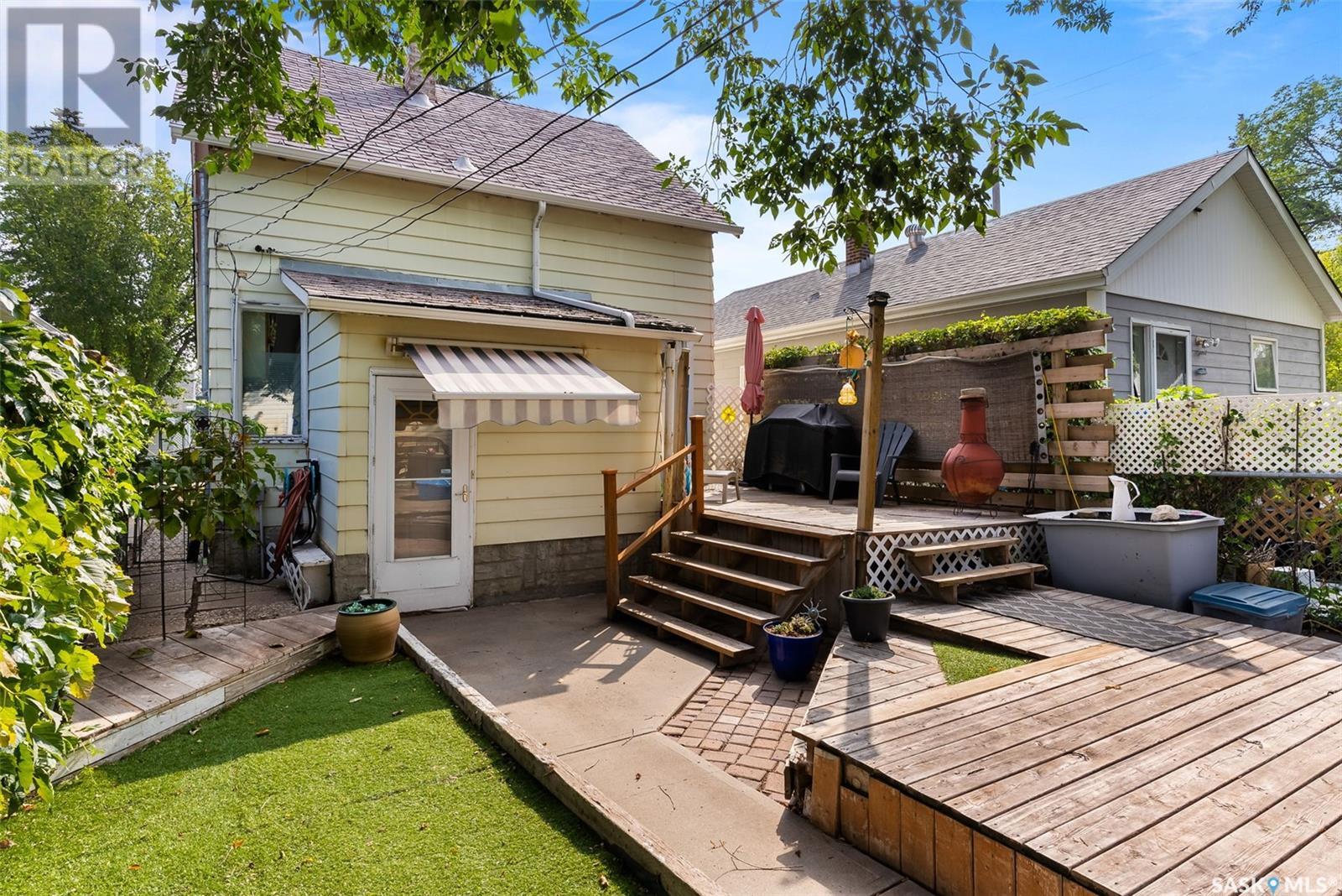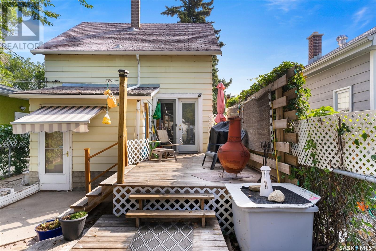 Welcome to this character home nestled in the desirable neighborhood of Arnhem Place! This home has plenty of potential with a bright main floor with large living room, kitchen with small prep room, great as a pantry or can be used for additional storage. Patio doors off of dining area lead you to maintenance free private backyard, complete with double garage and convenient alley access. Two bedrooms with vaulted ceilings and large windows, and a bathroom located on second floor. Basement is partially finished with a laundry area and a den with small window, which would make a great craft room or home office. Just steps away from Wascana Park and walking distance to many shopping and dining amenities! (id:22211)