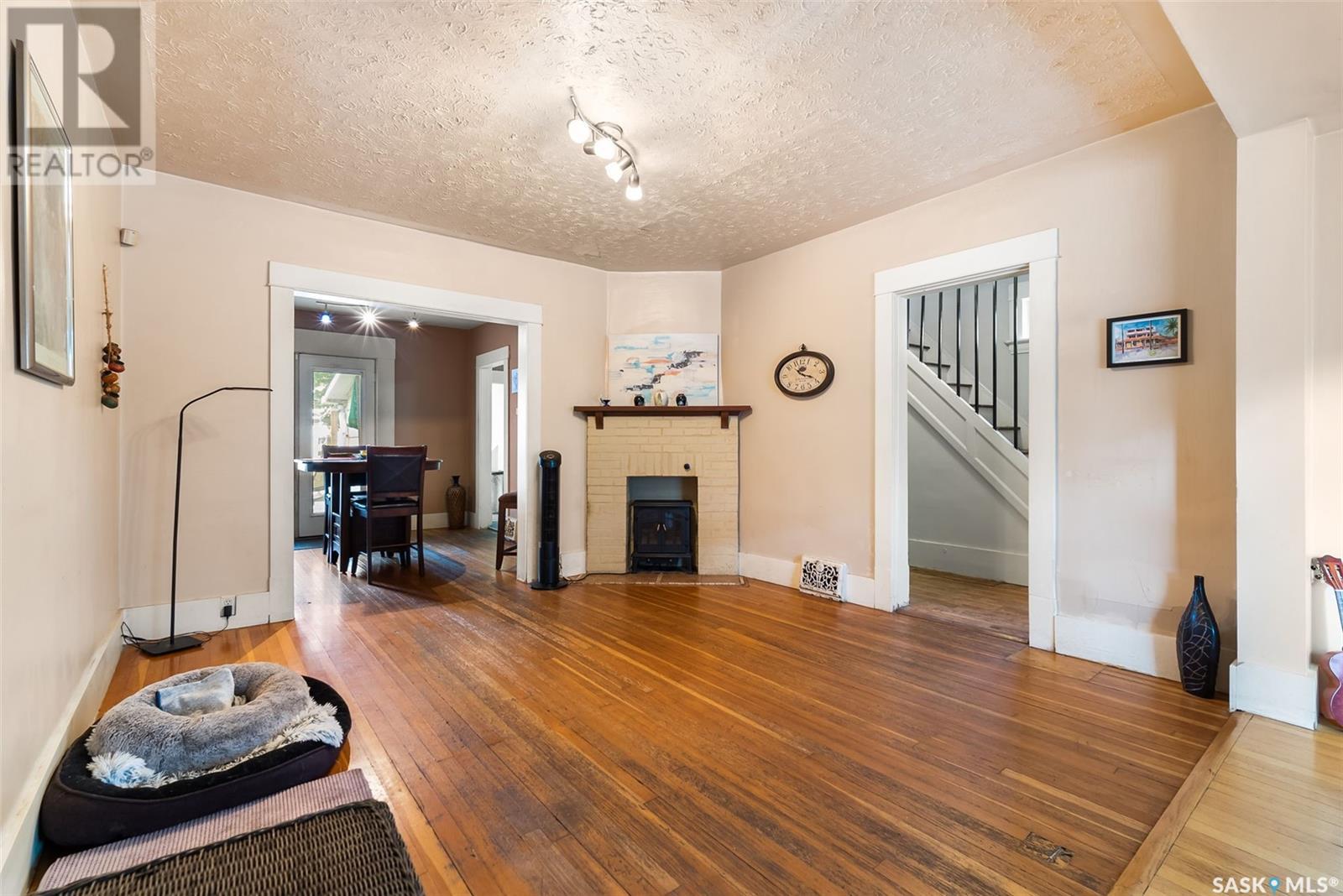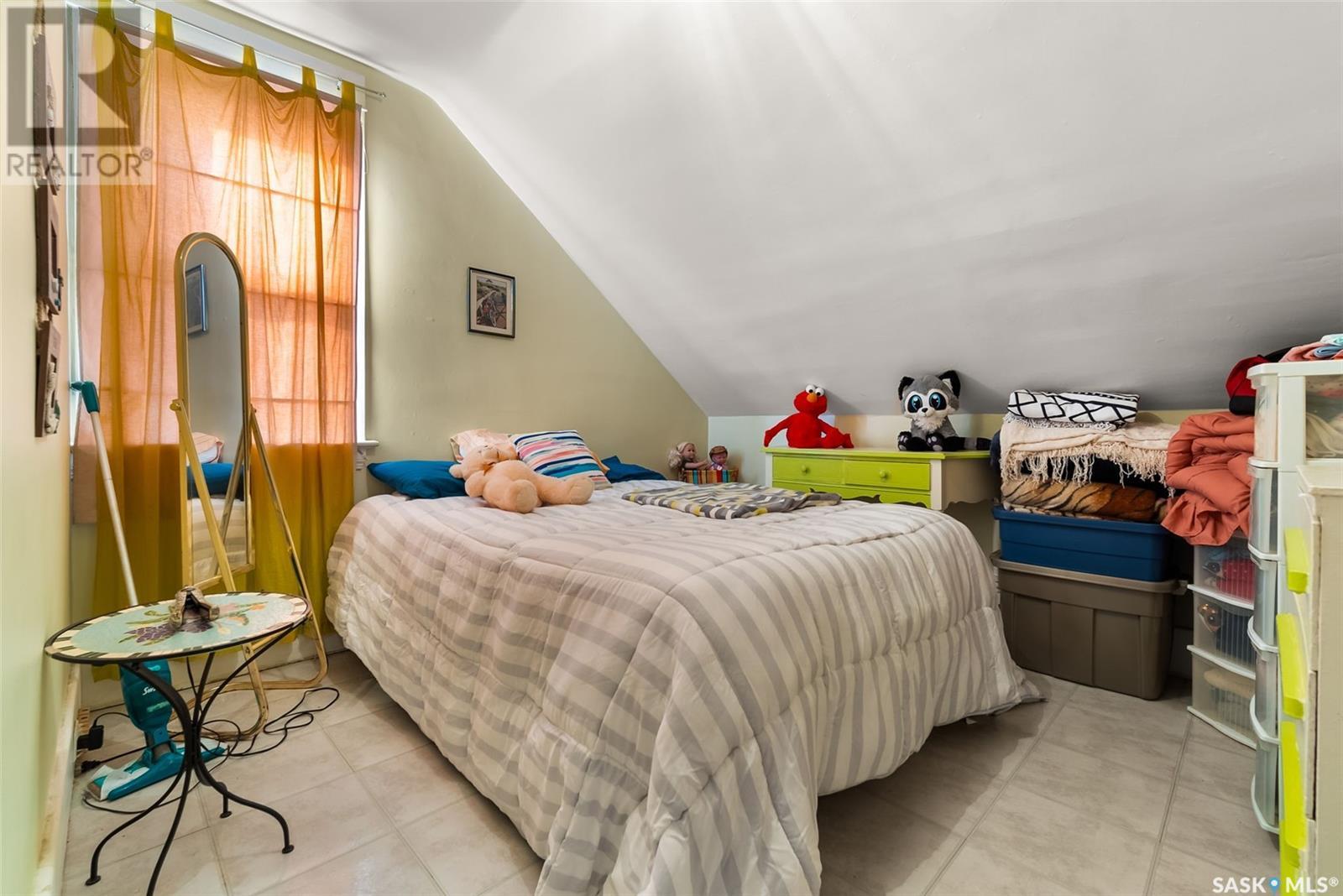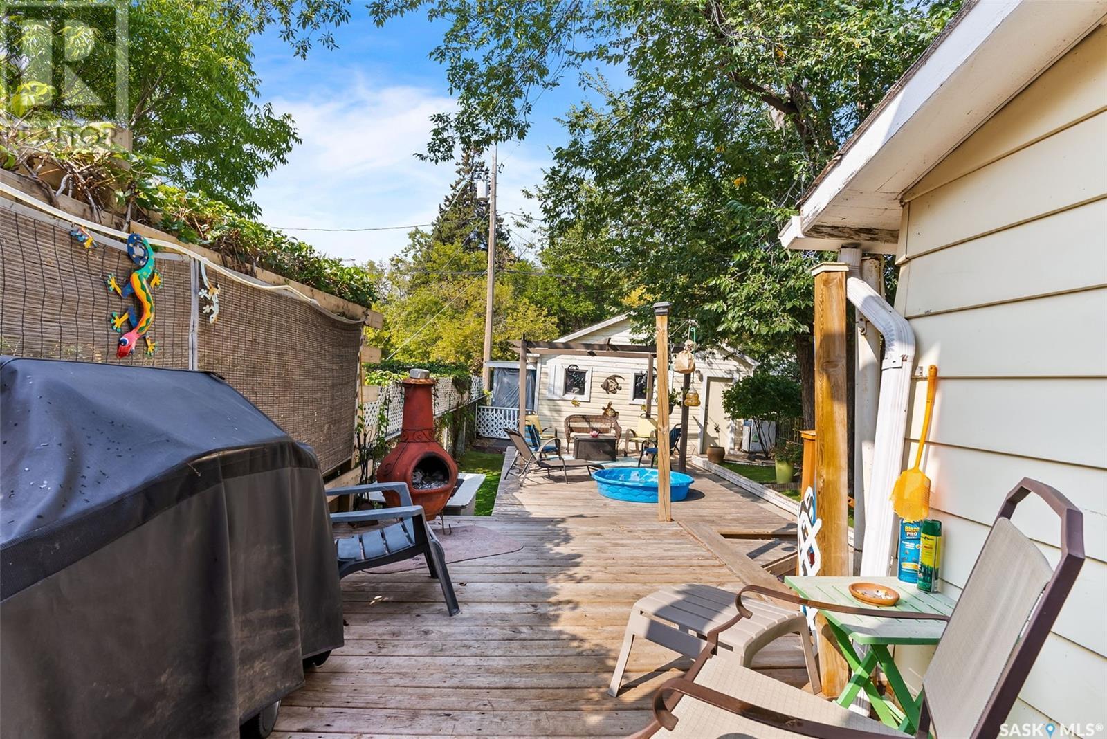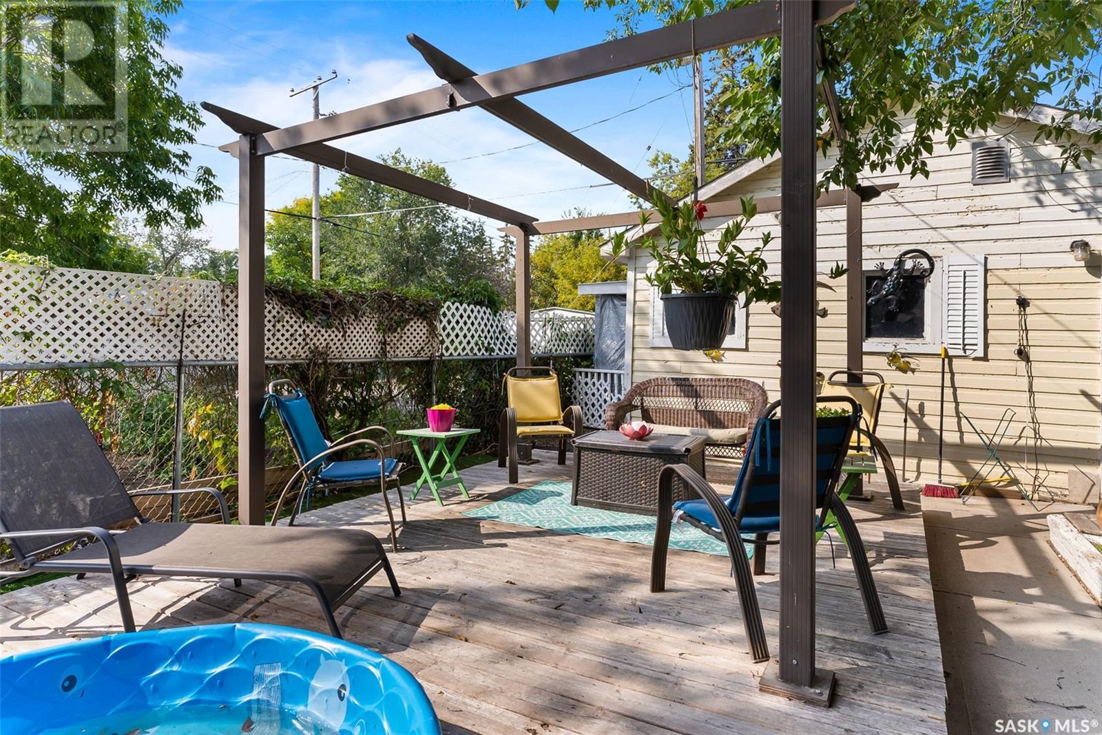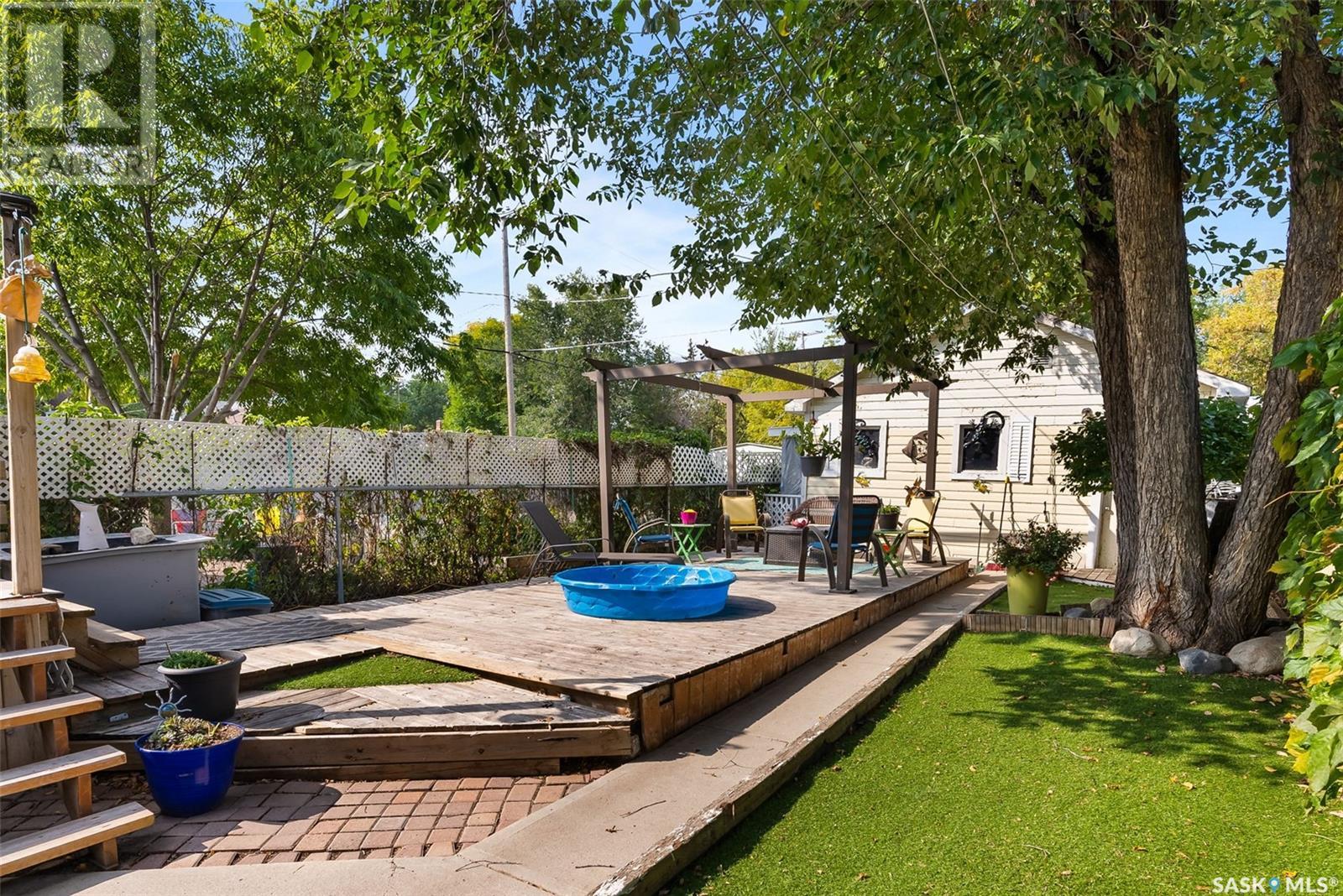 Welcome to this character home nestled in the desirable neighborhood of Arnhem Place! This home has plenty of potential with a bright main floor with large living room, kitchen with small prep room, great as a pantry or can be used for additional storage. Patio doors off of dining area lead you to maintenance free private backyard, complete with double garage and convenient alley access. Two bedrooms with vaulted ceilings and large windows, and a bathroom located on second floor. Basement is partially finished with a laundry area and a den with small window, which would make a great craft room or home office. Just steps away from Wascana Park and walking distance to many shopping and dining amenities! (id:22211)