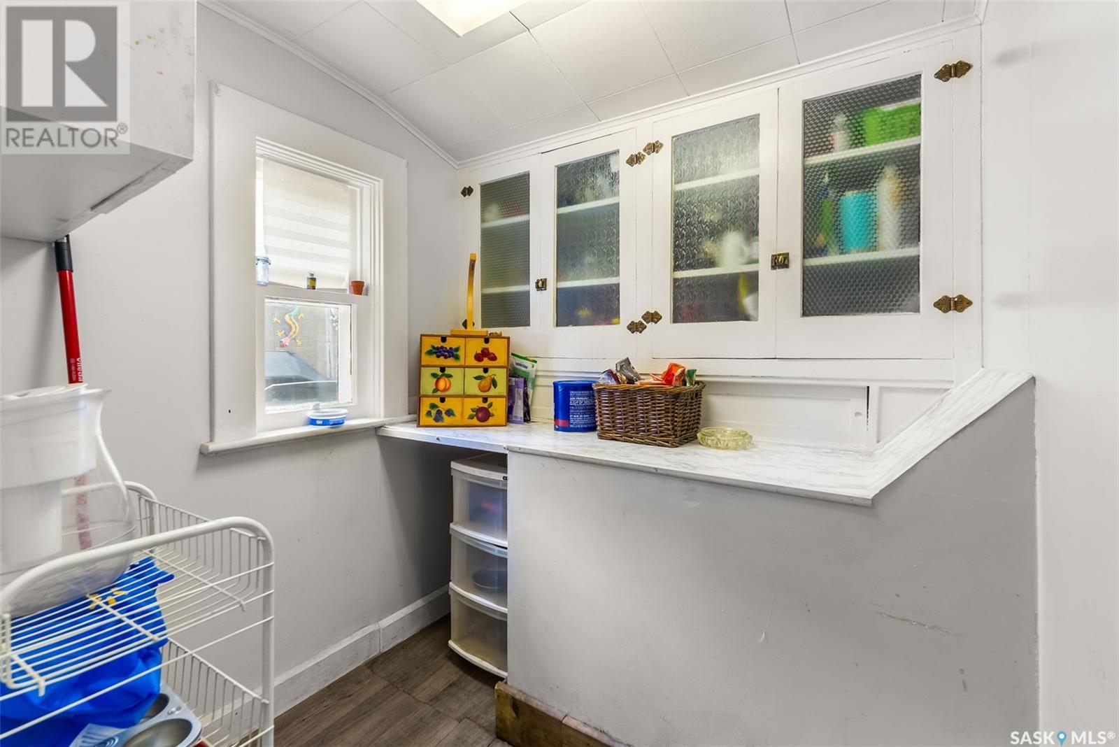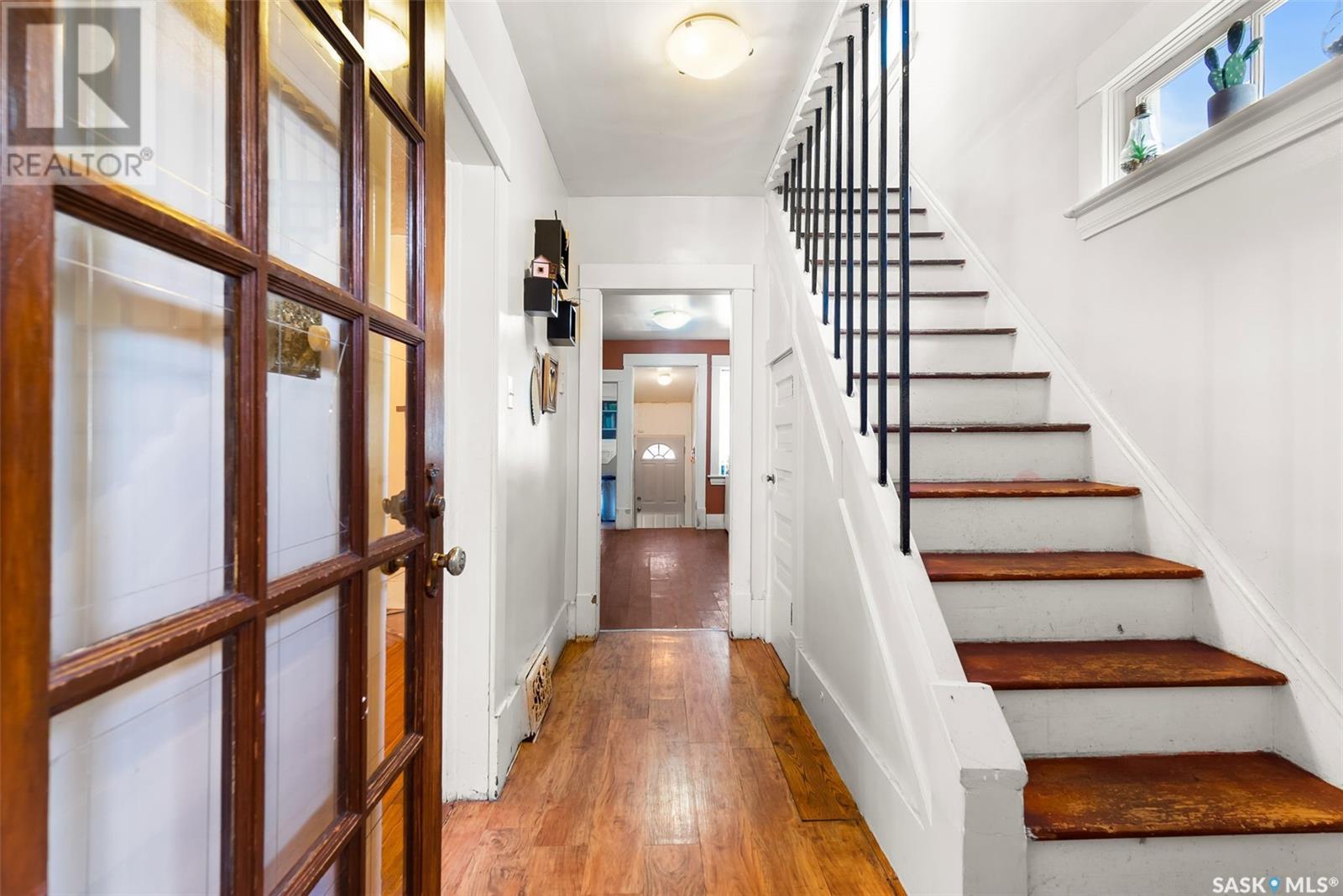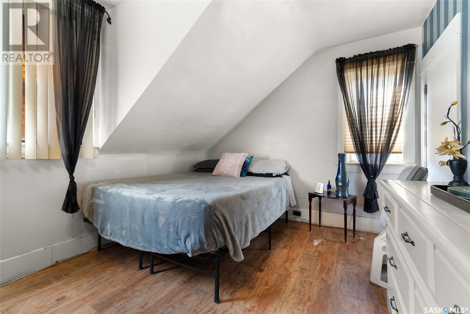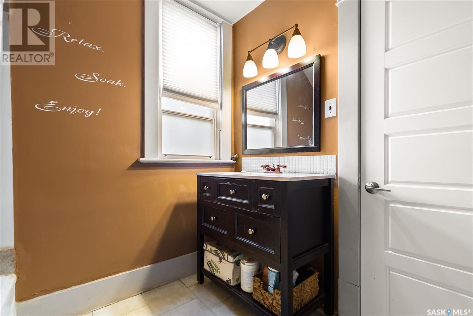 Welcome to this character home nestled in the desirable neighborhood of Arnhem Place! This home has plenty of potential with a bright main floor with large living room, kitchen with small prep room, great as a pantry or can be used for additional storage. Patio doors off of dining area lead you to maintenance free private backyard, complete with double garage and convenient alley access. Two bedrooms with vaulted ceilings and large windows, and a bathroom located on second floor. Basement is partially finished with a laundry area and a den with small window, which would make a great craft room or home office. Just steps away from Wascana Park and walking distance to many shopping and dining amenities! (id:22211)