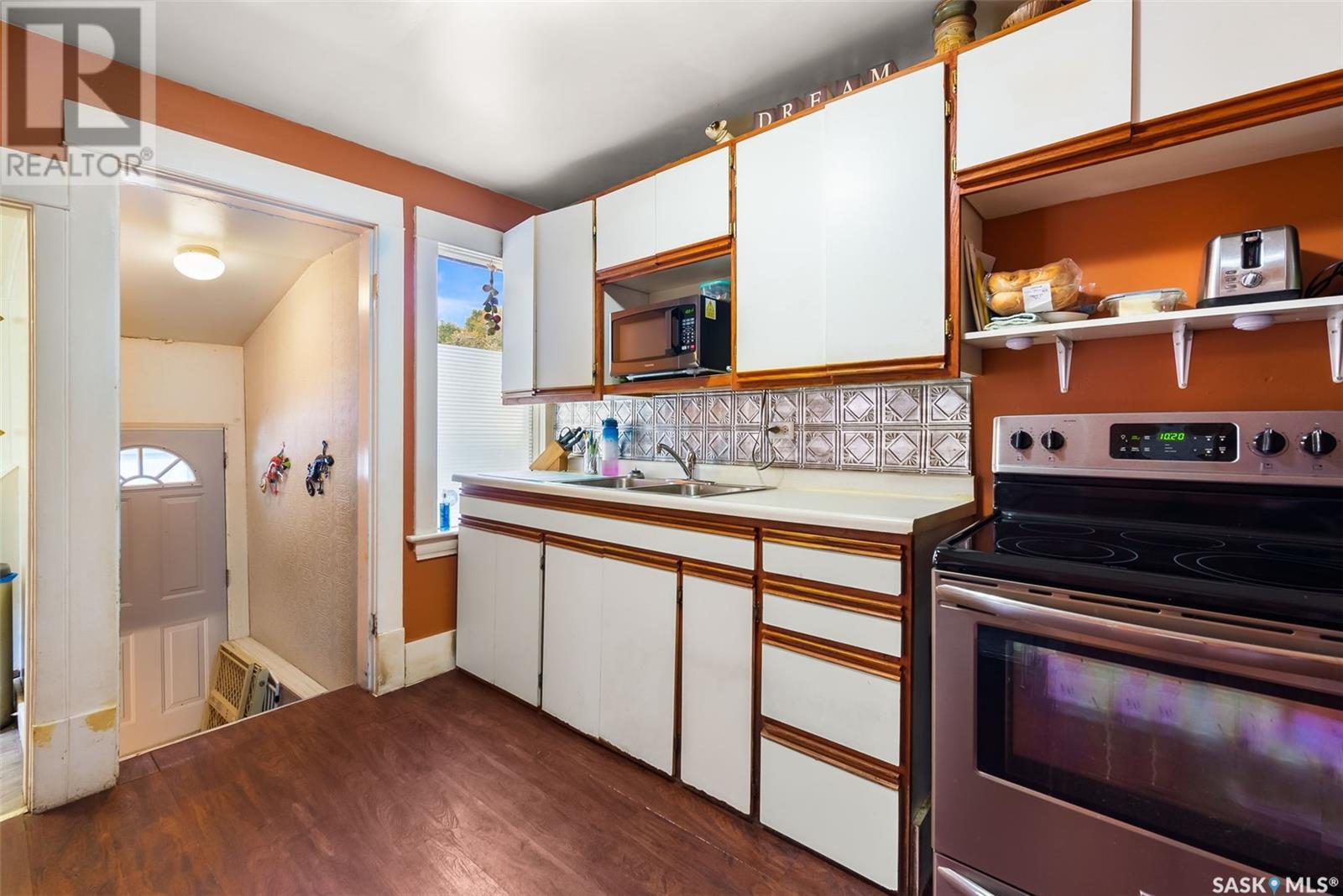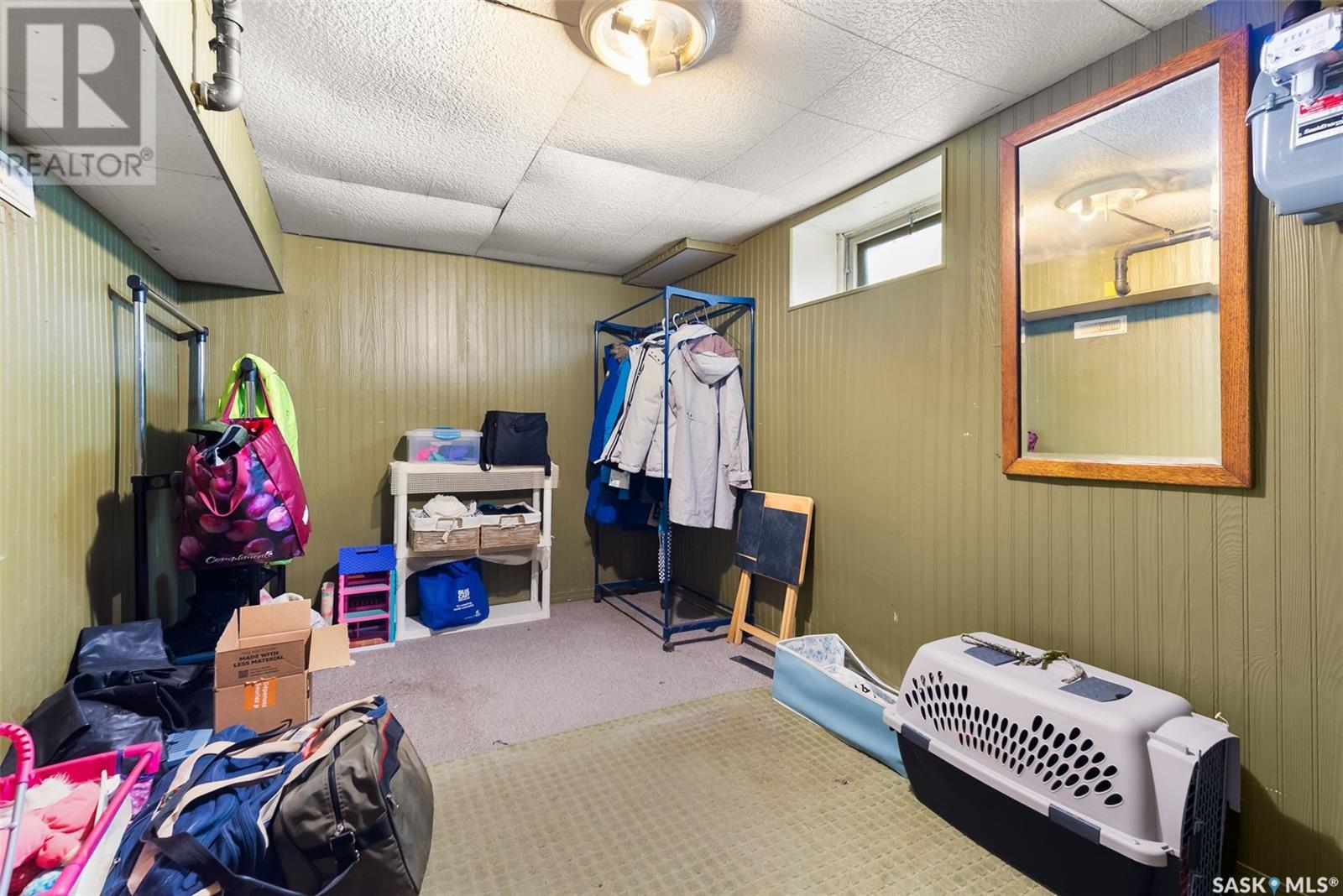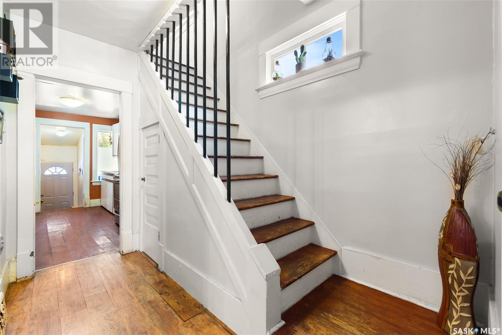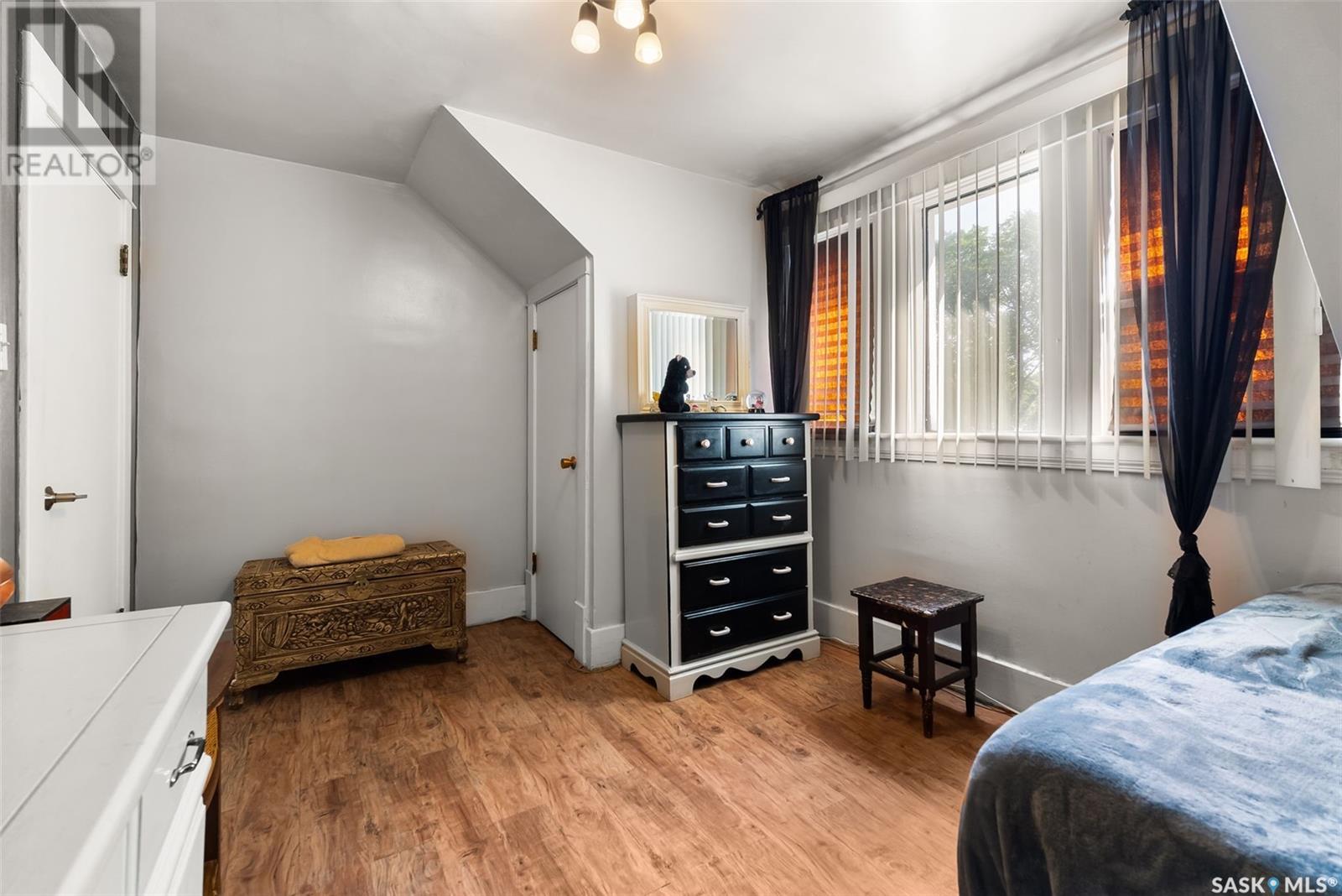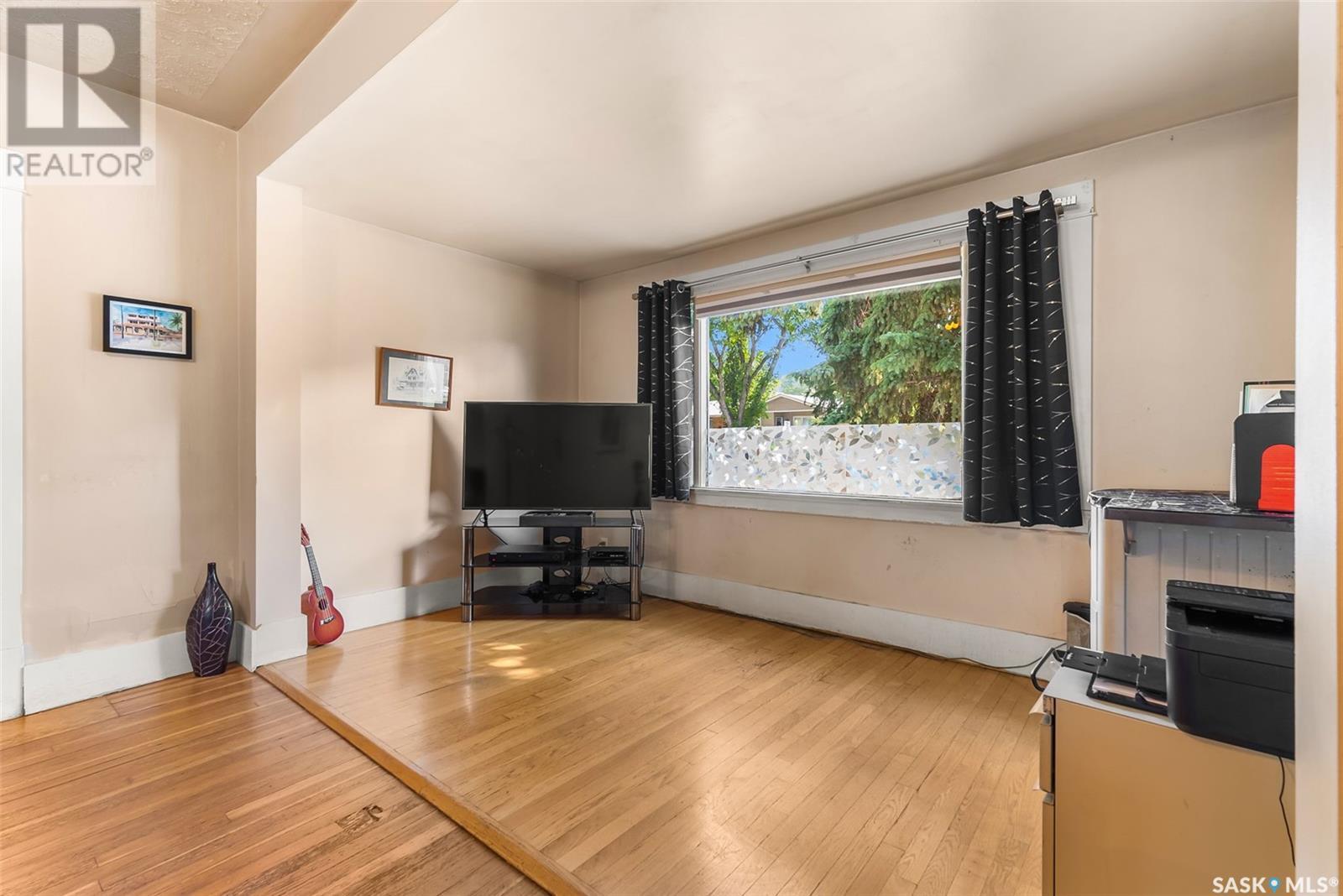 Welcome to this character home nestled in the desirable neighborhood of Arnhem Place! This home has plenty of potential with a bright main floor with large living room, kitchen with small prep room, great as a pantry or can be used for additional storage. Patio doors off of dining area lead you to maintenance free private backyard, complete with double garage and convenient alley access. Two bedrooms with vaulted ceilings and large windows, and a bathroom located on second floor. Basement is partially finished with a laundry area and a den with small window, which would make a great craft room or home office. Just steps away from Wascana Park and walking distance to many shopping and dining amenities! (id:22211)