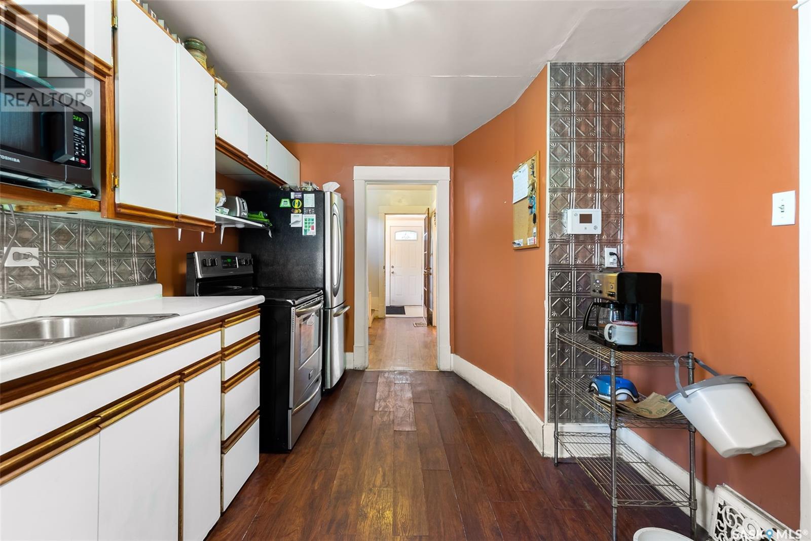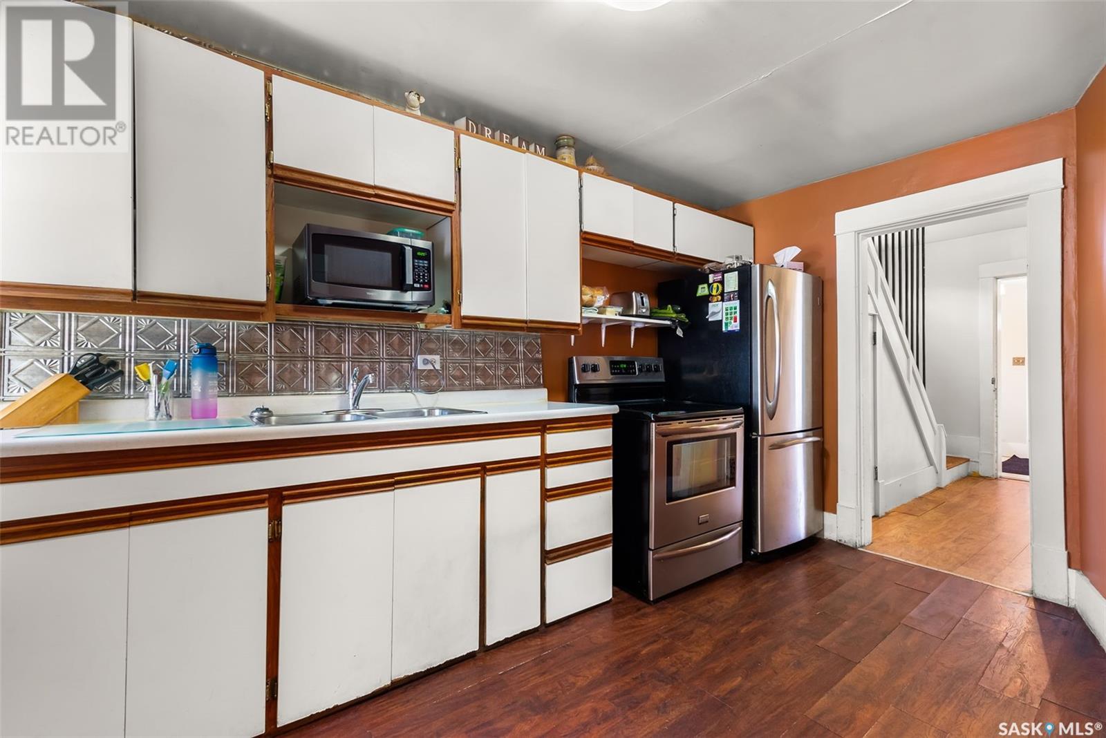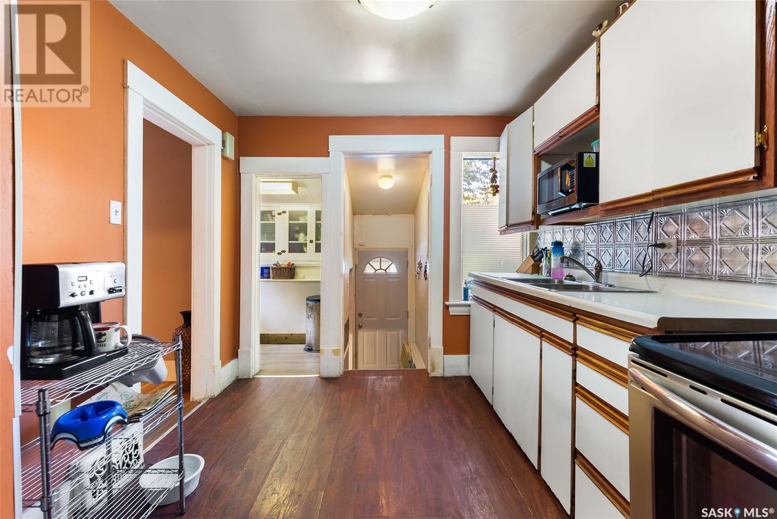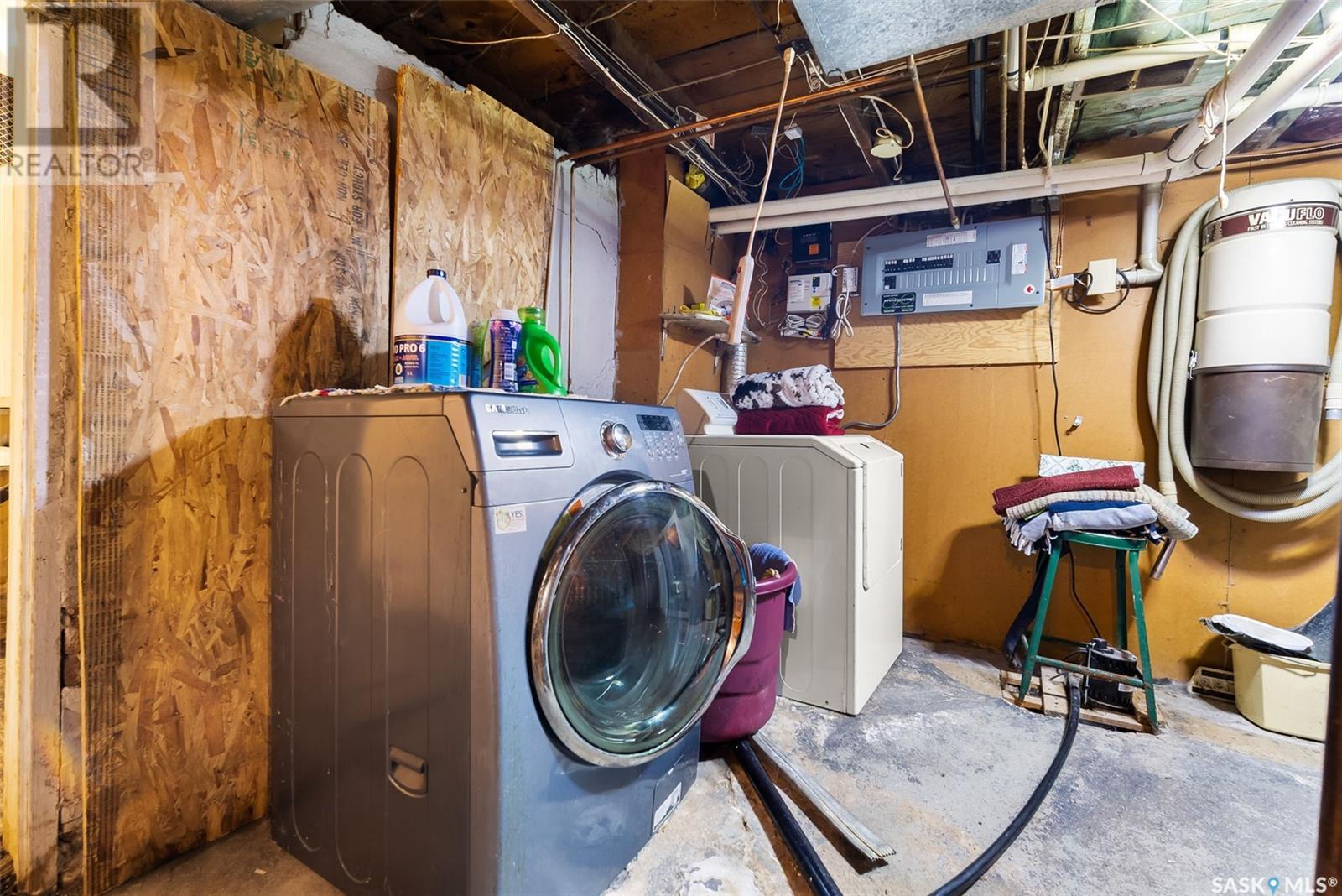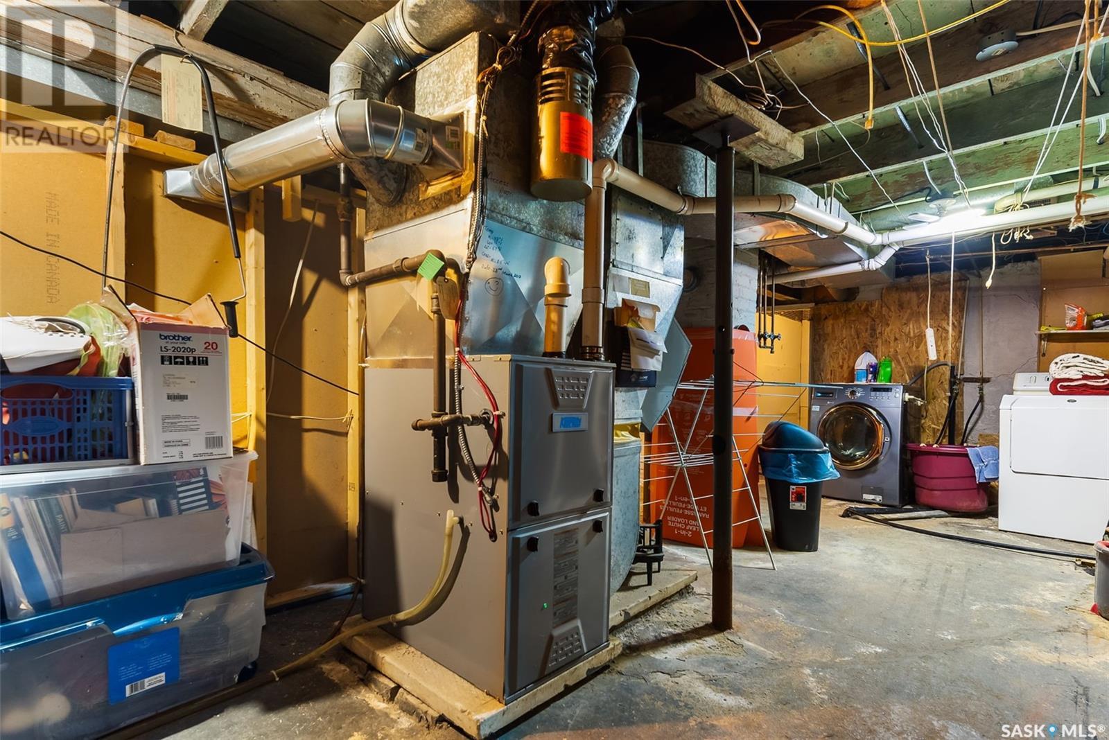 Welcome to this character home nestled in the desirable neighborhood of Arnhem Place! This home has plenty of potential with a bright main floor with large living room, kitchen with small prep room, great as a pantry or can be used for additional storage. Patio doors off of dining area lead you to maintenance free private backyard, complete with double garage and convenient alley access. Two bedrooms with vaulted ceilings and large windows, and a bathroom located on second floor. Basement is partially finished with a laundry area and a den with small window, which would make a great craft room or home office. Just steps away from Wascana Park and walking distance to many shopping and dining amenities! (id:22211)