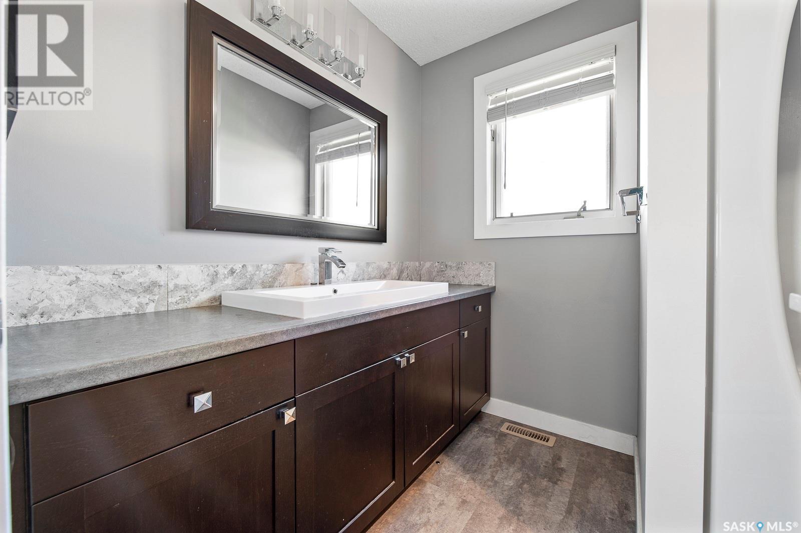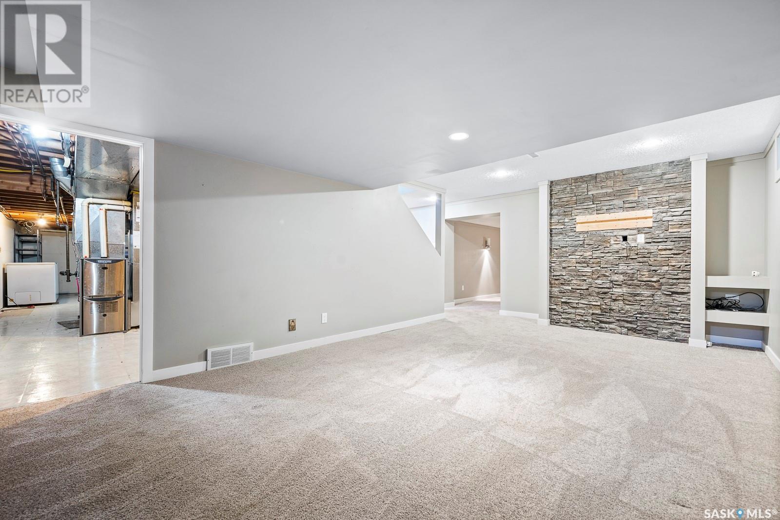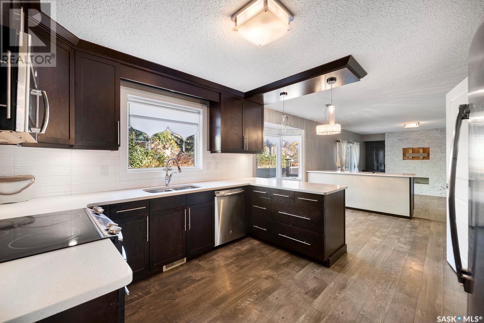Welcome to 27 Jupp Place,located in the quite bay of Albert Park. Walking distance to local school and amenities. Beautiful front exterior of the home redone with stone/hardi board siding, modern lights and ceramic doorstep. Kitchen features an abundance of new cappuccino colored maple cabinets/crown moldings with undermount sink/quartz countertops and modern white ceramic backsplash, large eating/work island, 2 pantry's, pendant lighting & chandelier over eating area, stainless appliances. window over kitchen sink and large bow window in eating area all overlooking backyard. Kitchen overlooks large family room with new white stacked stone feature wall with mapleside cabinets, ceramic tile wall with overhead pot lighting & patio doors to deck/nat gas BBQ Hookup. Spacious formal dining room with laminate flooring, large window and is open to spacious living room with large bay window with white stacked stone feature wall/2 maple side cabinets. Main floor laundry room with cabinetry just off the kitchen area & a 2 pc upgraded bathroom complete the main level. Cappuccino stained maple railing/glass inserts to upper level featuring 4 bedrooms.Primary bedroom comes with 3 pc ensuite. There is a 4 pc main bathroom to complete the upper level. Gorgeous modern basement featuring family room with stacked stone feature wall/tv wall mount & 2 side shelves, large games room with 5 modern wall sconces, beautiful 2 pc bathroom with large maple vanity with stacked stone backsplash, modern wet bar with stacked stone features & maple cabinetry & very large storage room. Call today to book your private showing! (id:22211)