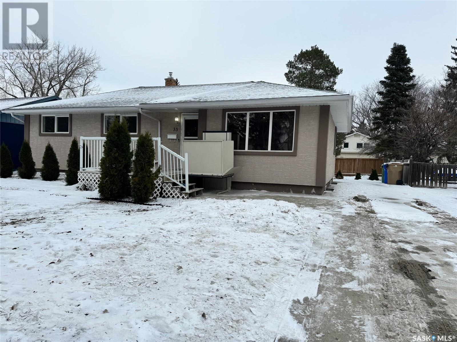 Welcome to 33 Scott Street, located on a quiet street that is one block away from Marion McVetty Elementary School and close to the University of Regina, Wascana Park, Wascana Rehabilitation Centre, and many amenities. This 5 bedroom, 2 bathroom bungalow offers a functional main floor, floorplan with a spacious living room, dining area, kitchen with 3 bedrooms, and an updated bathroom. The basement offers a great mortgage helper non-regulation basement suite that has a living area, kitchen/dining, a 3pc bathroom and 2 bedrooms. There is a shared laundry room area in the utility room. Updates include but are not limited to: shingles, windows, high efficiency furnace with air conditioner (1 year old), main floor fridge/stove (approx.. 2 years old), exterior stucco is approx. 8 years old, and the driveway was replaced approx. 10 years ago. There is a lovely large back yard area that is partially fenced and includes a shed. Don’t miss this great opportunity to purchase this great home. (id:22211)