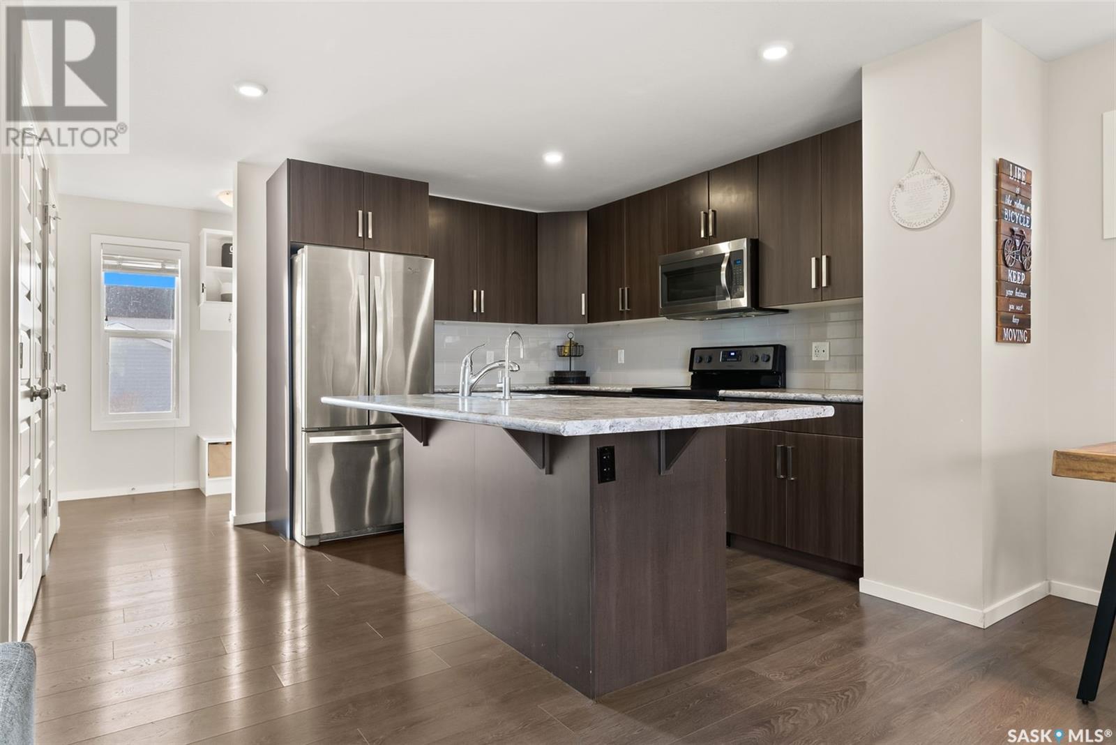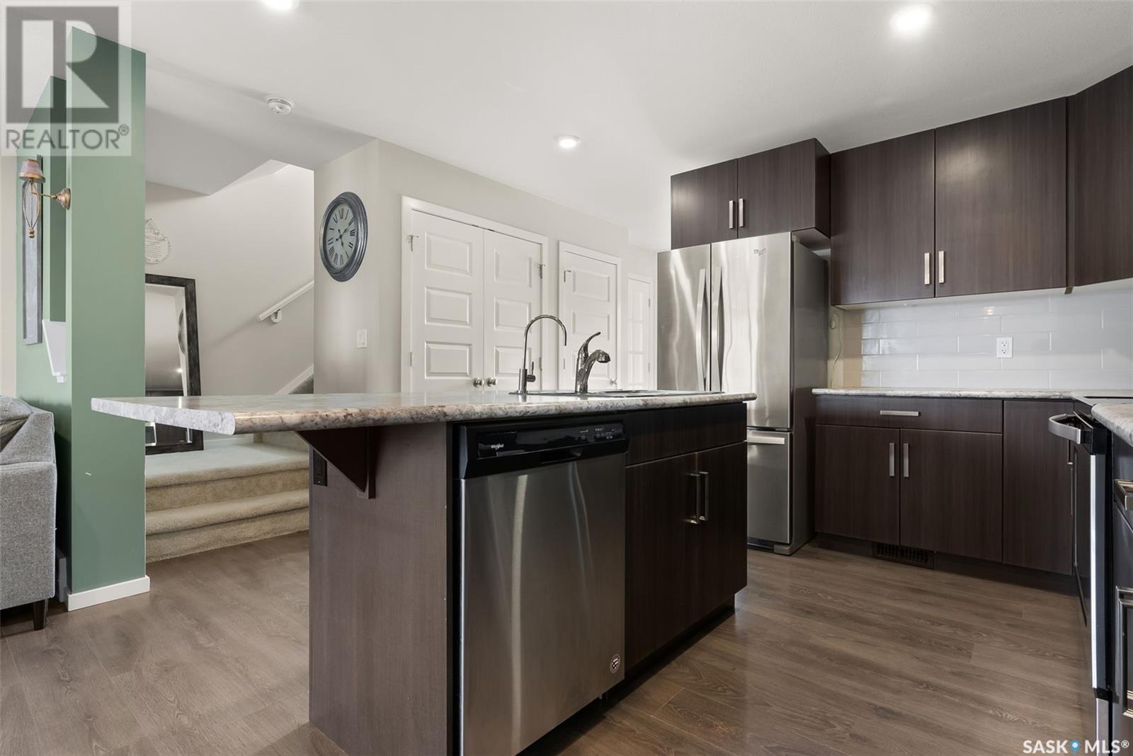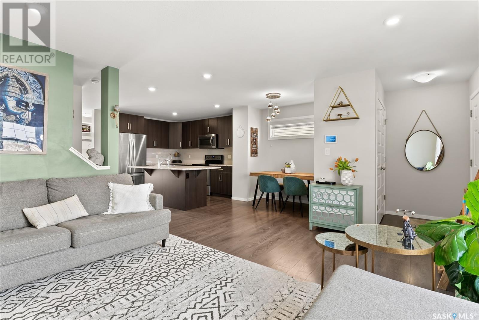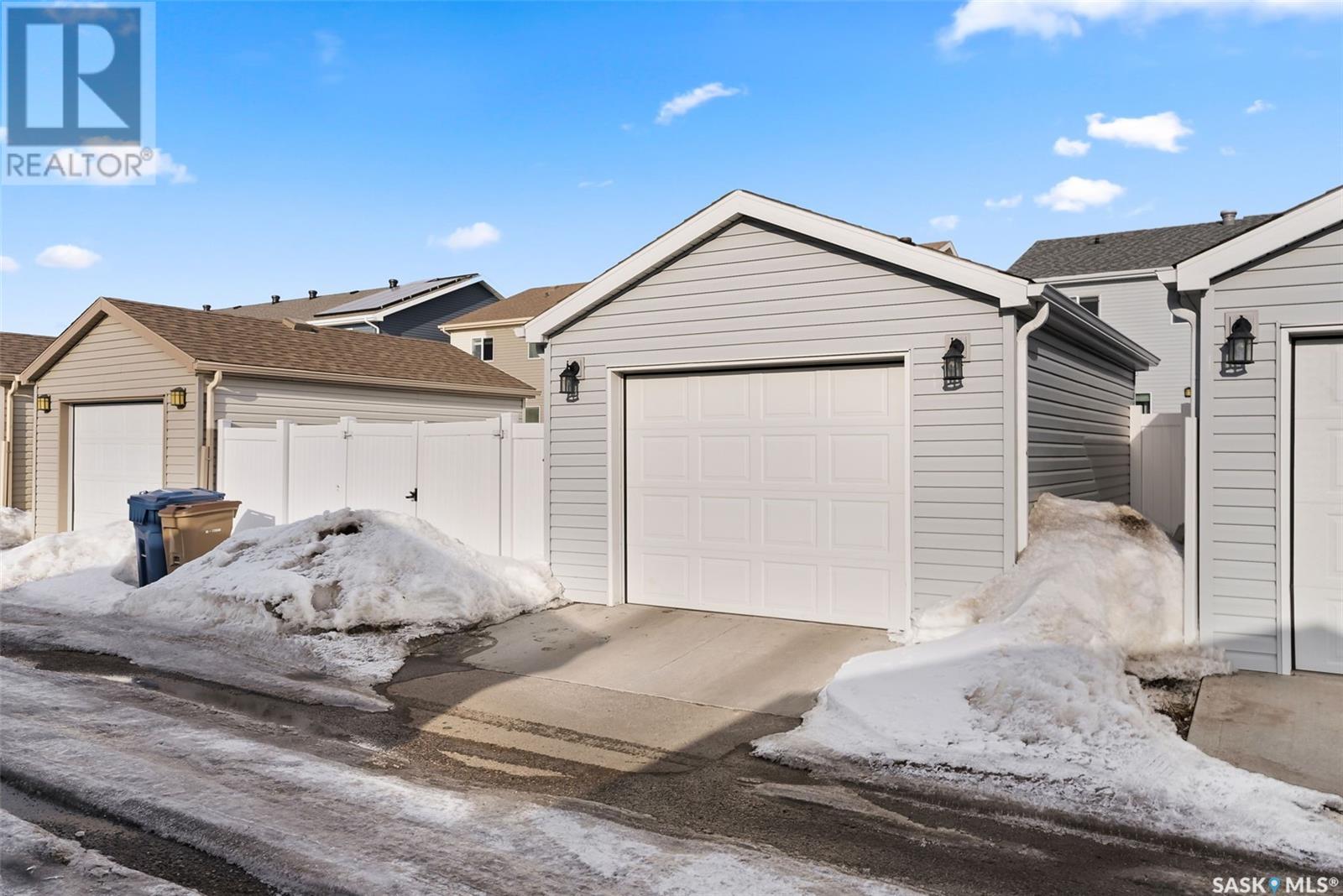 Located in Regina’s Greens on Gardiner neighbourhood, kitty-corner to Wascana Plains and St. Elizabeth School, playgrounds and tobogganing hill, this eye-catching two storey home has great street appeal and is move-in ready. With 1,280 sq. ft. of living space, this two storey townhouse has 3 bedrooms and 4 bathrooms plus a single detached garage with back alley access. The main floor is an open concept layout with laminate flooring that flows throughout the entire floor. The kitchen is a generous size with a large island, stainless steel appeals and nicely tiled backsplash. There is a mudroom with a built-in bench off the back entrance along with a 2 pc bathroom. The plush carpets run upstairs and throughout all 3 bedrooms. The primary bedroom features a walk-in closet and 4 pc ensuite with tiled flooring. There is another 4 pc bathroom and linen closet that complete the second level. The basement has been developed into a huge living space currently being used as an air bnb with bright white walls, dark concrete floors, and a 4 pc bathroom. The laundry room is in the mechanical room, with some additional storage. The yard is fully fenced, with access to your garage. Contact your real estate agent today to book your showing! (id:22211)