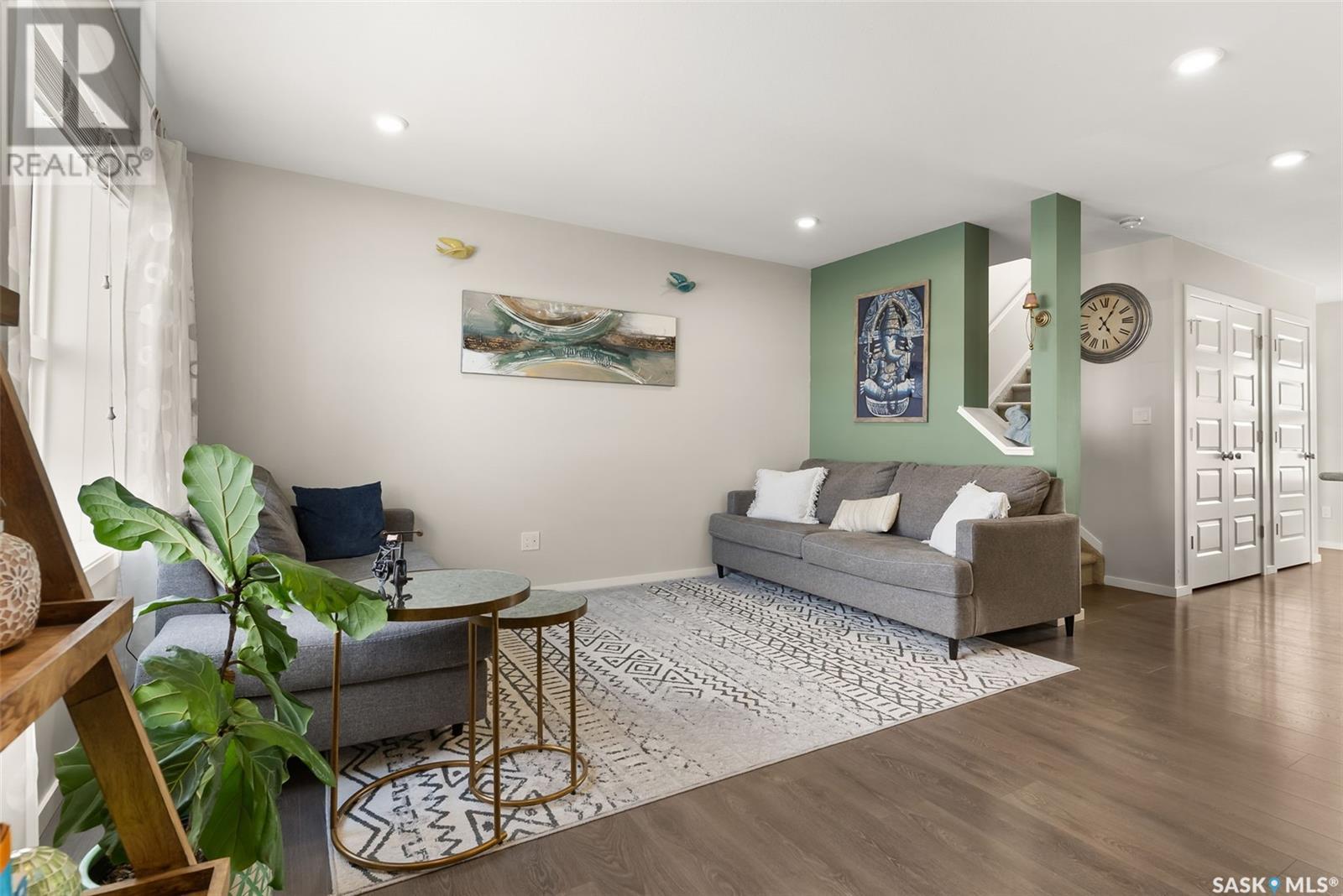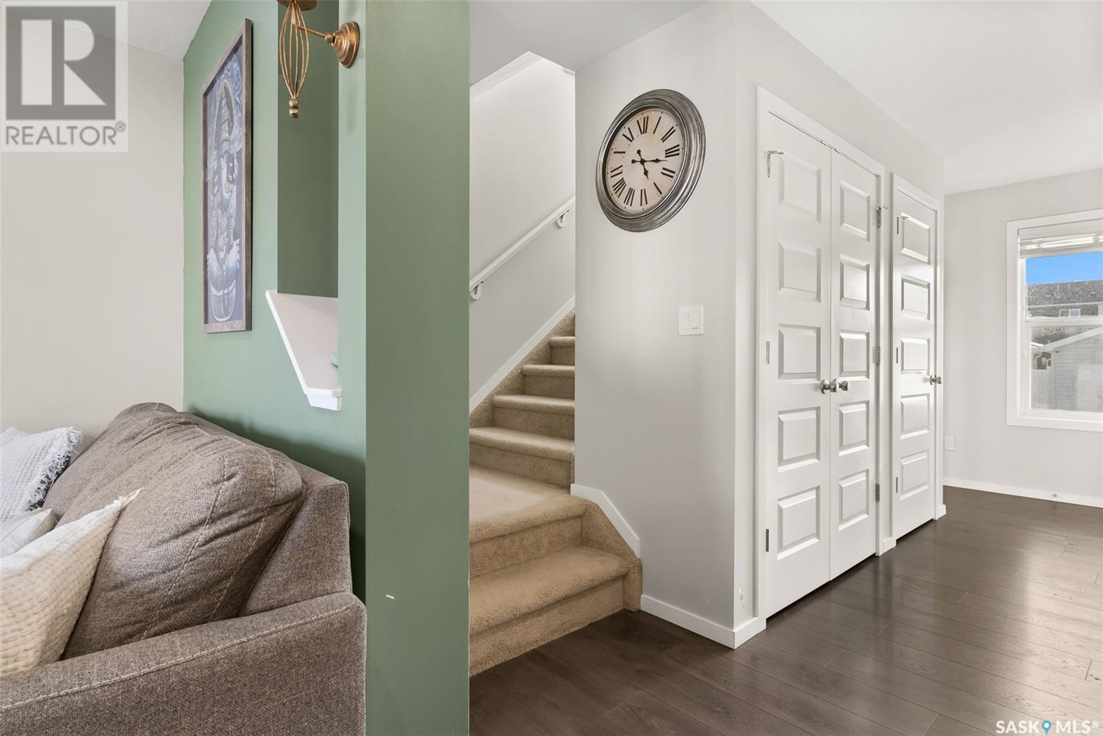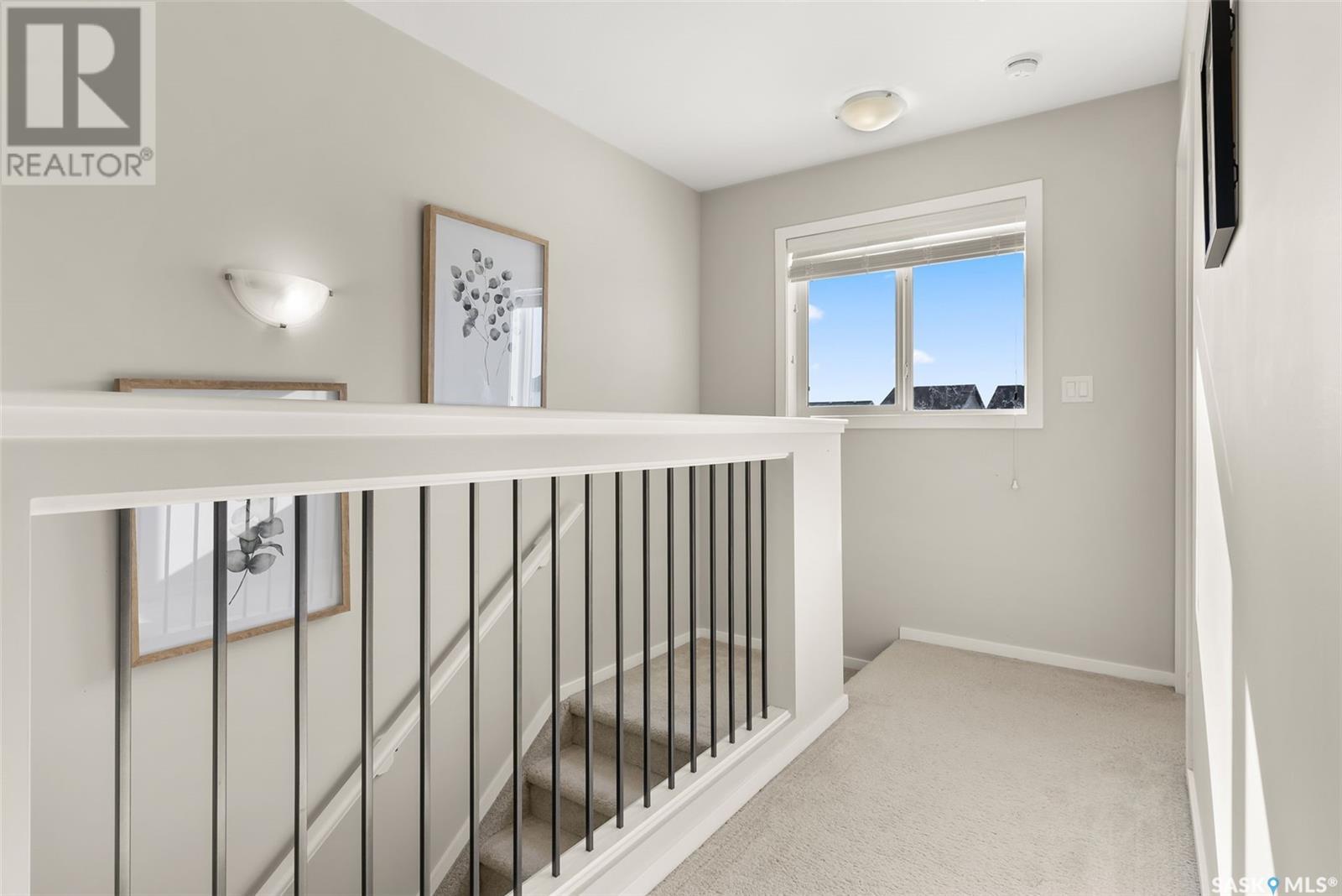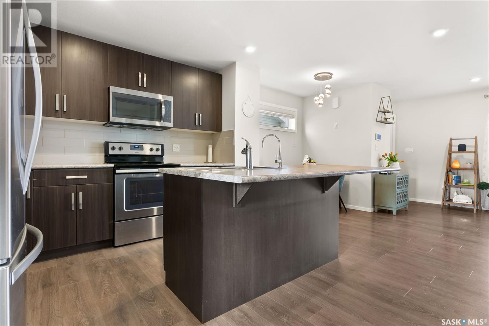 Located in Regina’s Greens on Gardiner neighbourhood, kitty-corner to Wascana Plains and St. Elizabeth School, playgrounds and tobogganing hill, this eye-catching two storey home has great street appeal and is move-in ready. With 1,280 sq. ft. of living space, this two storey townhouse has 3 bedrooms and 4 bathrooms plus a single detached garage with back alley access. The main floor is an open concept layout with laminate flooring that flows throughout the entire floor. The kitchen is a generous size with a large island, stainless steel appeals and nicely tiled backsplash. There is a mudroom with a built-in bench off the back entrance along with a 2 pc bathroom. The plush carpets run upstairs and throughout all 3 bedrooms. The primary bedroom features a walk-in closet and 4 pc ensuite with tiled flooring. There is another 4 pc bathroom and linen closet that complete the second level. The basement has been developed into a huge living space currently being used as an air bnb with bright white walls, dark concrete floors, and a 4 pc bathroom. The laundry room is in the mechanical room, with some additional storage. The yard is fully fenced, with access to your garage. Contact your real estate agent today to book your showing! (id:22211)