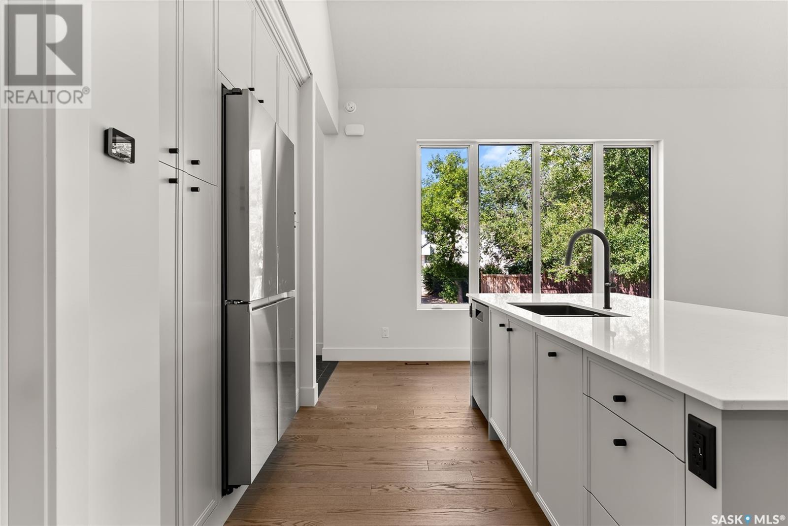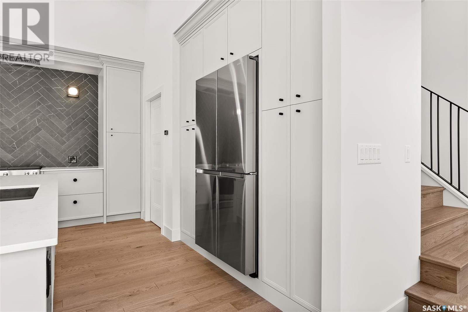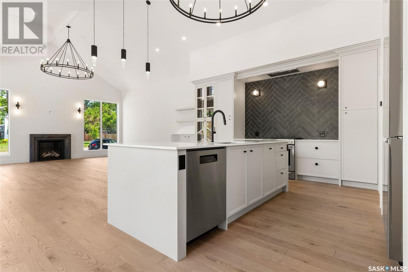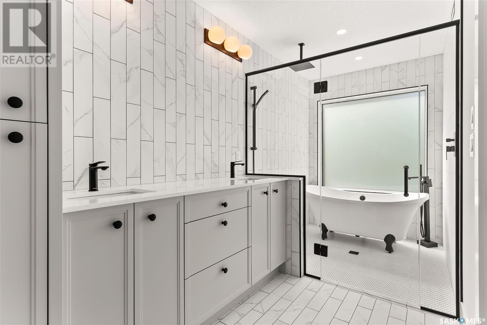 This modern custom build by Encora Developments is one-of-a-kind! The stunning monochrome street appeal in the desirable south end location of Lakeview wows you instantly! Upon entry, the foyer with modern black herringbone tile leads you to the open plan kitchen, dining & living room. The vaulted ceilings, floor to ceiling windows, 60" chandeliers & gas fireplace in the living room overlooks the dining area with built in wine racks & entertainment area. The kitchen combines functionality with luxurious design elements & features floor-to-ceiling cabinetry, large island with an under-mount sink and dishwasher, gas stove and built-in hood fan and an abundance of workspace and cabinets. The built-in fridge/freezer offers the option for an extra beverage fridge or freezer & a built-in water dispenser. The walk-through Butler’s pantry has a built-in microwave, 2nd dishwasher and sink. Additionally, there is floor to ceiling cupboards that can be used as a mudroom or pantry, & main floor laundry. There is direct entry to the oversized 28x21 attached insulated garage with a sliding door to the potential courtyard/patio area. The main floor office & 2 piece bathroom completes this floor. Upstairs, there are 3 bedrooms. The primary bedroom is spacious, bright & includes a walk-in closet, built-in closets & drawers. The ensuite has double sinks, cabinets and a walk-in glass shower area with 2 showers. There is also a stand-alone claw-foot tub and a water closet for added privacy. The other 2 bedrooms are a good size & the 4 piece bathroom completes this floor. This 2 1/2 storey has a fantastic bonus room with pot lights and plenty of windows. The basement has RIP for an additional bathroom, large windows, and is insulated. The exterior walls are built on piles. This home cannot be built from new at this price & offers a unique blend of modern features, luxurious finishes, and a mature south location for executives seeking a comfortable and low-maintenance lifestyle. (id:22211)