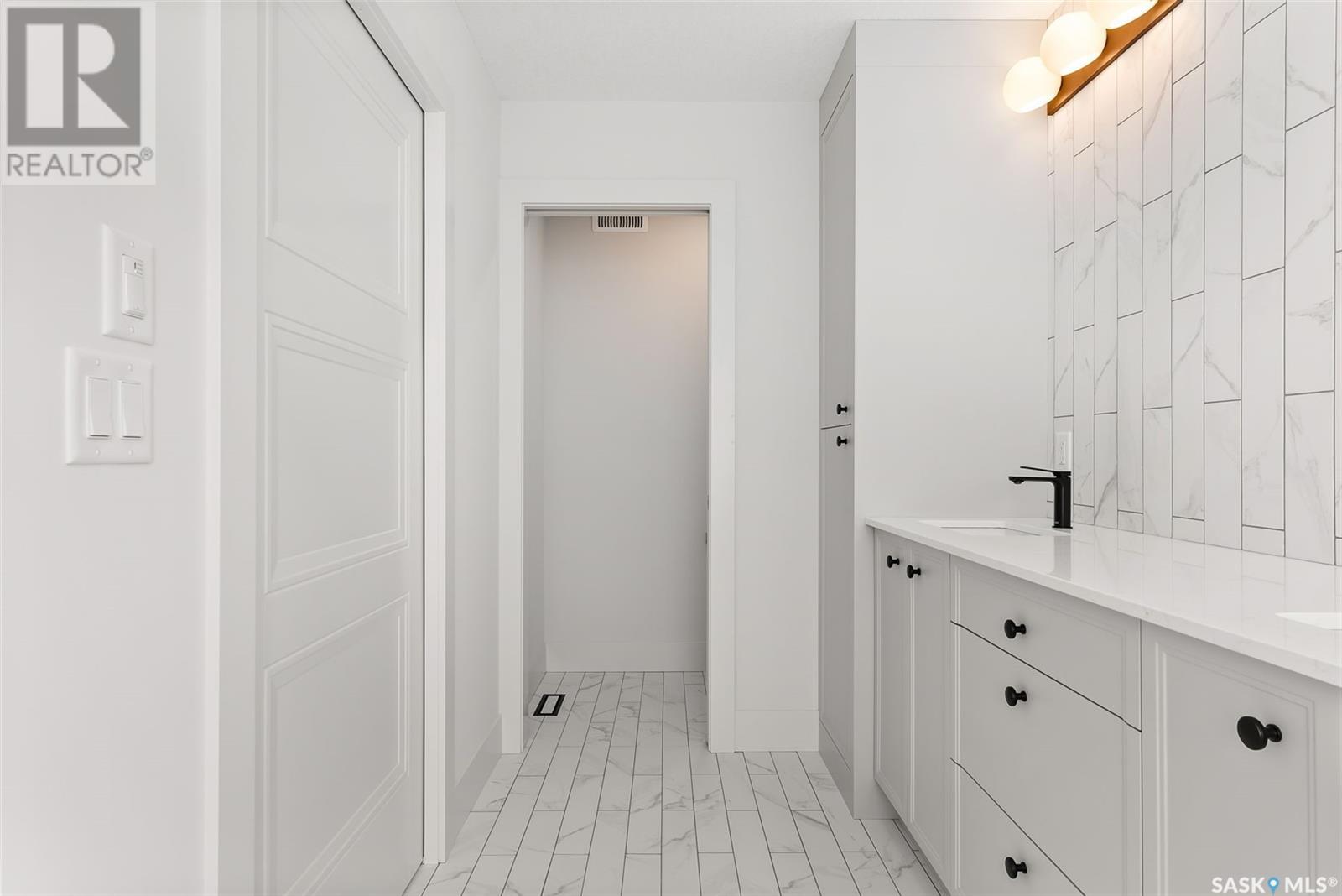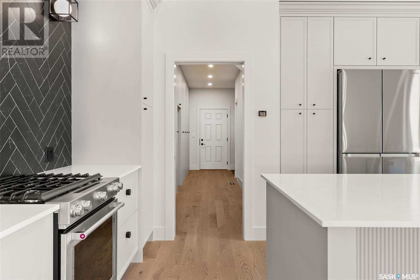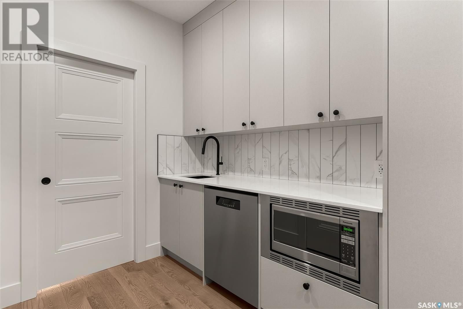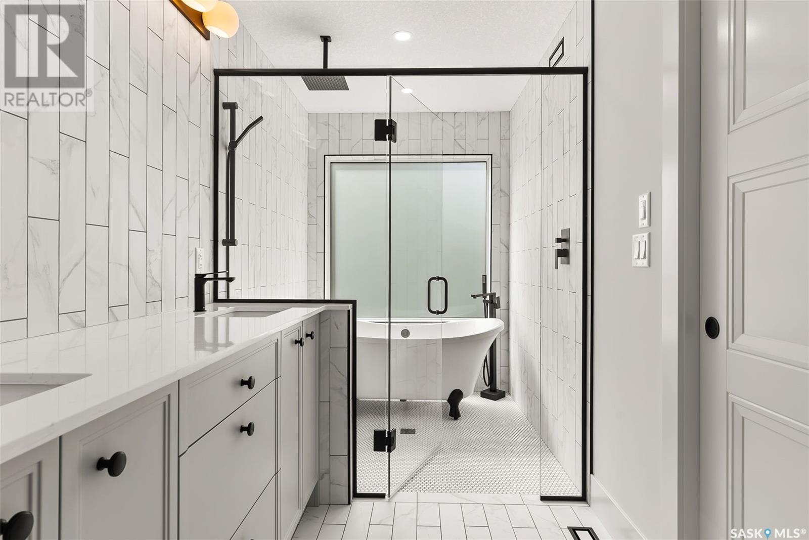 This modern custom build by Encora Developments is one-of-a-kind! The stunning monochrome street appeal in the desirable south end location of Lakeview wows you instantly! Upon entry, the foyer with modern black herringbone tile leads you to the open plan kitchen, dining & living room. The vaulted ceilings, floor to ceiling windows, 60" chandeliers & gas fireplace in the living room overlooks the dining area with built in wine racks & entertainment area. The kitchen combines functionality with luxurious design elements & features floor-to-ceiling cabinetry, large island with an under-mount sink and dishwasher, gas stove and built-in hood fan and an abundance of workspace and cabinets. The built-in fridge/freezer offers the option for an extra beverage fridge or freezer & a built-in water dispenser. The walk-through Butler’s pantry has a built-in microwave, 2nd dishwasher and sink. Additionally, there is floor to ceiling cupboards that can be used as a mudroom or pantry, & main floor laundry. There is direct entry to the oversized 28x21 attached insulated garage with a sliding door to the potential courtyard/patio area. The main floor office & 2 piece bathroom completes this floor. Upstairs, there are 3 bedrooms. The primary bedroom is spacious, bright & includes a walk-in closet, built-in closets & drawers. The ensuite has double sinks, cabinets and a walk-in glass shower area with 2 showers. There is also a stand-alone claw-foot tub and a water closet for added privacy. The other 2 bedrooms are a good size & the 4 piece bathroom completes this floor. This 2 1/2 storey has a fantastic bonus room with pot lights and plenty of windows. The basement has RIP for an additional bathroom, large windows, and is insulated. The exterior walls are built on piles. This home cannot be built from new at this price & offers a unique blend of modern features, luxurious finishes, and a mature south location for executives seeking a comfortable and low-maintenance lifestyle. (id:22211)