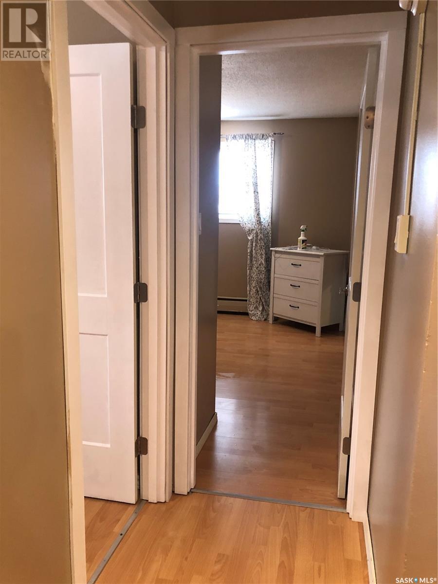 Welcome to #5-365 Angus Street! An affordable condo in the family friendly neighborhood of Coronation Park! This condo has some recent updates including new laminate flooring, new picture window, paint, renovated 4pce bathroom and kitchen cabinets. The unit is 814sqft with two great sized bedrooms, a functional galley style kitchen, designated dining area and a large living room. The condo fees are reasonable and include water and heat, as well as a designated parking stall! The complex is clean and quiet and well maintained. There is shared laundry but also has the option to install in suite laundry facilities. There are grocery stores, convenience stores, shops & restaurants all within walking distance. This is a great first time home or a great investment property. (id:22211)