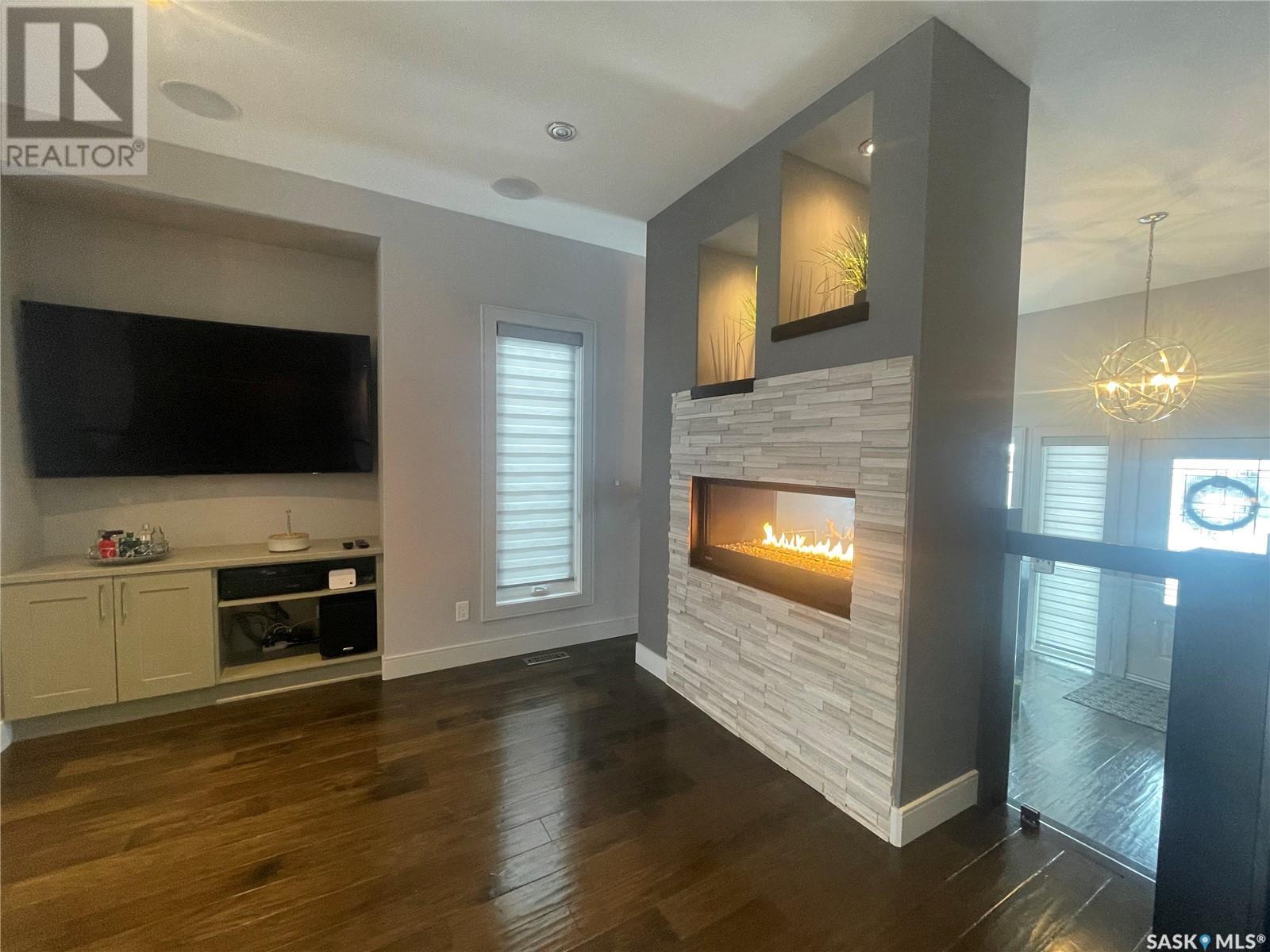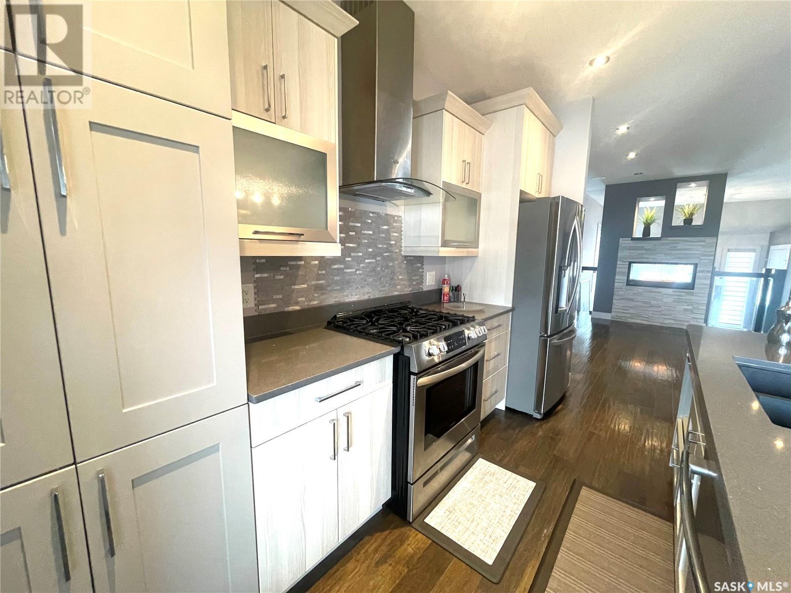 Welcome to 3605 Green creek Road in Greens on Gardiner! This beautiful 1524 sq ft Bungalow sits on 46 ft wide lot! As you enter, you are welcomed in to a bright foyer by engineered hardwood with inviting view of fire place and living room and entry to garage. This modern open concept home offers quartz countertops thought kitchen, laundry room and bathrooms and Bar. Living room is open to the spacious kitchen and dining area. Kitchen features spacious cabinets, quartz countertops, tile backsplash and chimney and stainless-steel appliances! The main floor features a large master bedroom with 5-pc ensuite with an air jetted tub with custom tiled shower and glass enclosure, double vanity and heated floor and spacious walk-in closet with built-in cabinets as well featured ceiling. In built sound system thought home! There are 2 additional good-sized bedrooms and a 4-piece bathroom and laundry room finish the main floor. The basement has 25 x 22 Rec Room and corner bar area, is perfect for family movie or party nights. The stunning basement has 1 more bedroom, a 4-piece bath, gym room, utility room and storage room. Gym room has rubber floor on place. There is covered deck and BBQ gas line hook up. There is 24 x 24 size garage. Backyard is fully fenced and landscaped. Play structure is included and there is a rubber sole in play structure area. This home was built to last with quality in mind. The foundation of this home is ICF and over and above that is steel beam construction which features a suspended floor truss system that is built roughly on 50 piles. This home will not disappoint! Please contact the sales agent for more information or to book a private showing of this home. (id:22211)
