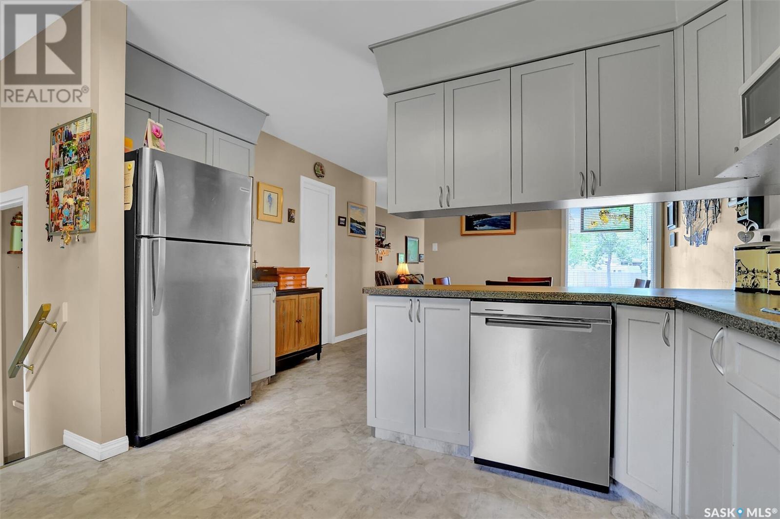 Welcome to 40 Krivel Crescent, a perfect home for that growing family in the desirable Normanview area. This home is situated on a quiet crescent, boasting an 11,399 sq ft pie shaped yard with a new chain link fence. There is plenty of grass, trees & shrubs, garden area and hidden paths for the kids. This 1,172 sqft bungalow has great street appeal with the large front windows, newer shingles and attached garage measuring 21’ x 13’ 6”. It features 3 bedrooms up, one down that doesn’t meet egress window standards along with 3 bathrooms. The kitchen is great with plenty of cabinets and counter space & a large window looking out into your own private backyard. There is a walk-in pantry and large eating area conveniently located right off the kitchen. The living room is a good size and features a large picture window looking out onto the quiet crescent. From here enter into the hallway and you’ll find 3 good size bedrooms, a 4 piece bathroom and updated 1/2 bath ensuite off the primary bedroom featuring a huge picture window. The basement has a large open rec-room where you can create two seating areas. With a good size bedroom & 3 piece bathroom this makes it a perfect place for a guest to stay when visiting. The utility room is a good size and offers plenty of storage with a separate cold storage room perfect for all your gardening needs. Located near all north end amenities and bussing for the French Immersion program at Ecole Elsie Mironuck School. Other value added items include: A/C, fridge, stove, washer, dryer, built-in dishwasher, dual pane windows on the main in 2010, chain-link fence south and east side in August 2023. (id:22211)