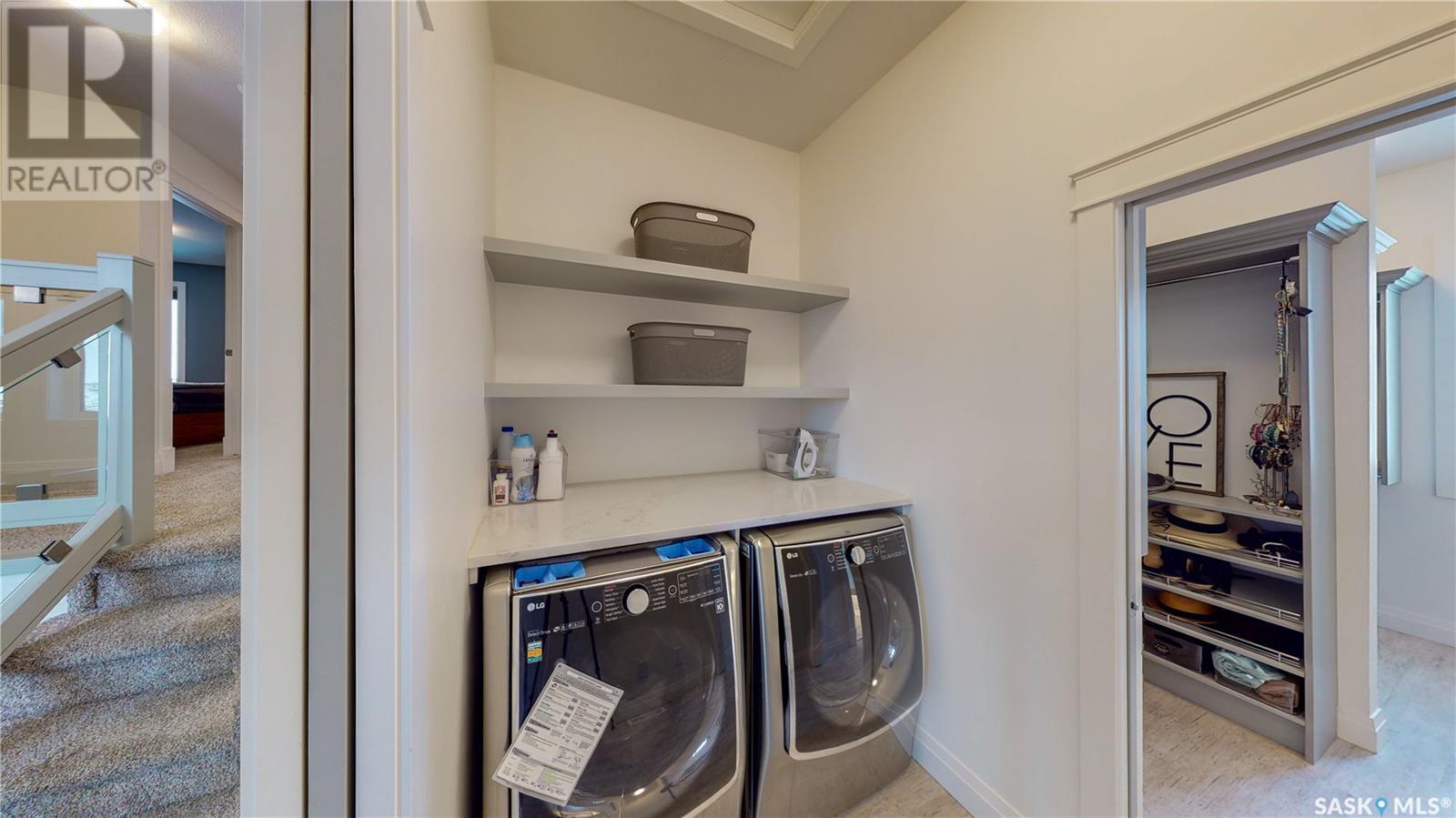 This 2,457 sqft, 3bd 3ba, 2 storey showhome was built by Gilroy Homes in 2018 in “The Creeks'' neighborhood. It sits on a generous lot with completed front landscaping and a fenced in backyard on a quiet crescent. The exterior of this home has an acrylic stucco and tile finish. You enter this home through the porch that has a walk-in closet and walk past the front office with sliding glass doors, a built-in desk and shelving. The living room has a modern look. Vinyl plank graces the floor, there is a built-in shelving unit with an electric fireplace and south facing windows. The main floor flows through the dining room that is adjacent to the patio doors that lead to the covered deck with composite decking. On the other side of the dining room is a large pantry. The kitchen features ceramic tile backsplash, quartz countertops, tons of storage, an island with a wooden waterfall countertop and an included fridge, built-in oven, gas stove top with hood fan, dishwasher, and microwave. Completing the main level is a 2 pc bathroom and spacious mudroom that is just inside the doors from the 26’x32’ heated and insulated triple garage that has a floor coating, a drain and a drive through door. At the top of the stairs is the primary bedroom with a drop ceiling. It has a well thought out 5 pc ensuite bathroom, the centerpiece of which is a glass and tile shower that has doors on both sides with easy access to matching walk-in closet areas and vanities, one of which has a backlit mirror and make-up area. The bathroom is completed with a jet tub and an electric fireplace area. The laundry room with included washer and dryer is connected to the walk-in closet for easy access. The top floor has an office space and 2 bedrooms that are separated by a bonus room. A 4 pc bathroom with tile accents, and a quartz countertop completes this floor. The basement is unfinished open for development! Other features are a 200 amp service, A/C, and a 3 zone heating system. (id:22211)