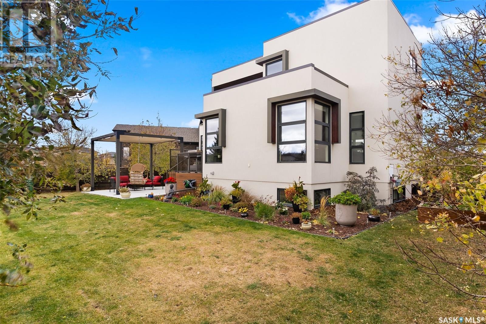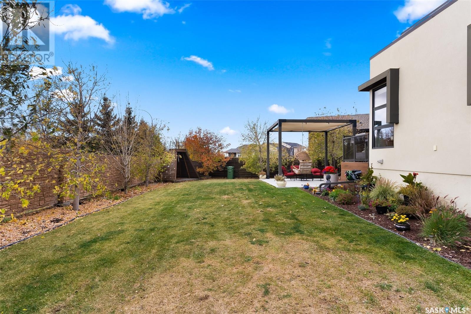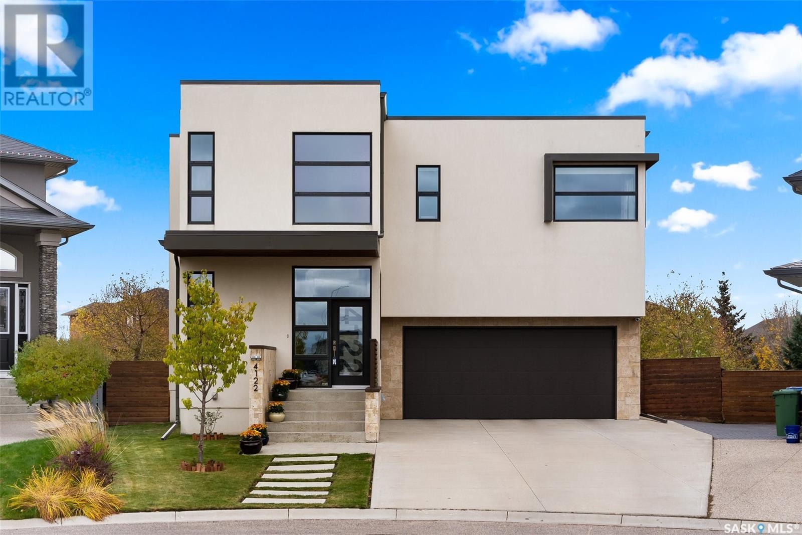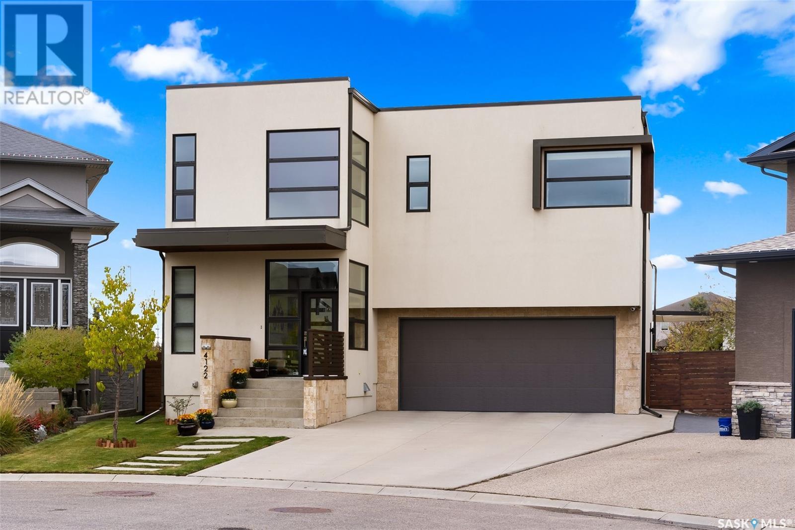 4122 Skinner Bay is nestled in the picturesque neighbourhood of Harbour Landing. This modern 2 story home boasts an impressive 2,120 square feet of living space, perfectly complemented by a 7,483 square foot south facing backyard. With 4 bedrooms and 4 bathrooms, this residence offers a perfect blend of comfort and modern style. As you step inside, you'll be greeted by an open and spacious atmosphere throughout the main floor. The soaring 10 foot ceiling and abundance of oversized windows fills the home with natural light, accentuating the stunning walnut flooring that graces the main floor living spaces. The heart of this home is the beautiful white kitchen, adorned with sleek quartz countertops and upgraded cabinets. It's designed to be the ideal space for family gatherings and entertaining, with its functional layout and modern finishes. Heading up to the second level, you'll discover the magnificent primary suite. This private sanctuary features a spacious walk in closet, a luxurious 5-piece ensuite, complete with double sinks, a soaker tub, a tiled shower.Two additional bedrooms and a well appointed 4 piece bathroom offer comfort and convenience for the whole family. The upper level is also home to an open office space and a cozy reading nook, perfect for work or relaxation. The fully finished lower level continues the high end finishes of the rest of the home and provides additional living space. Here, you'll find a spacious media room, a fourth bedroom, and a 3 piece bathroom. Step outside into the expansive backyard, where you'll find plenty of space for all your outdoor activities. A large deck, upper balcony, and patio area offer multiple spots for outdoor dining, relaxation, and entertaining. Lush, established trees and shrubs provide privacy and a touch of nature, all within the fully fenced yard. This house is an absolute must see, combining modern design, high end finishes, and a spacious layout that caters to both family life and entertainment. (id:22211)