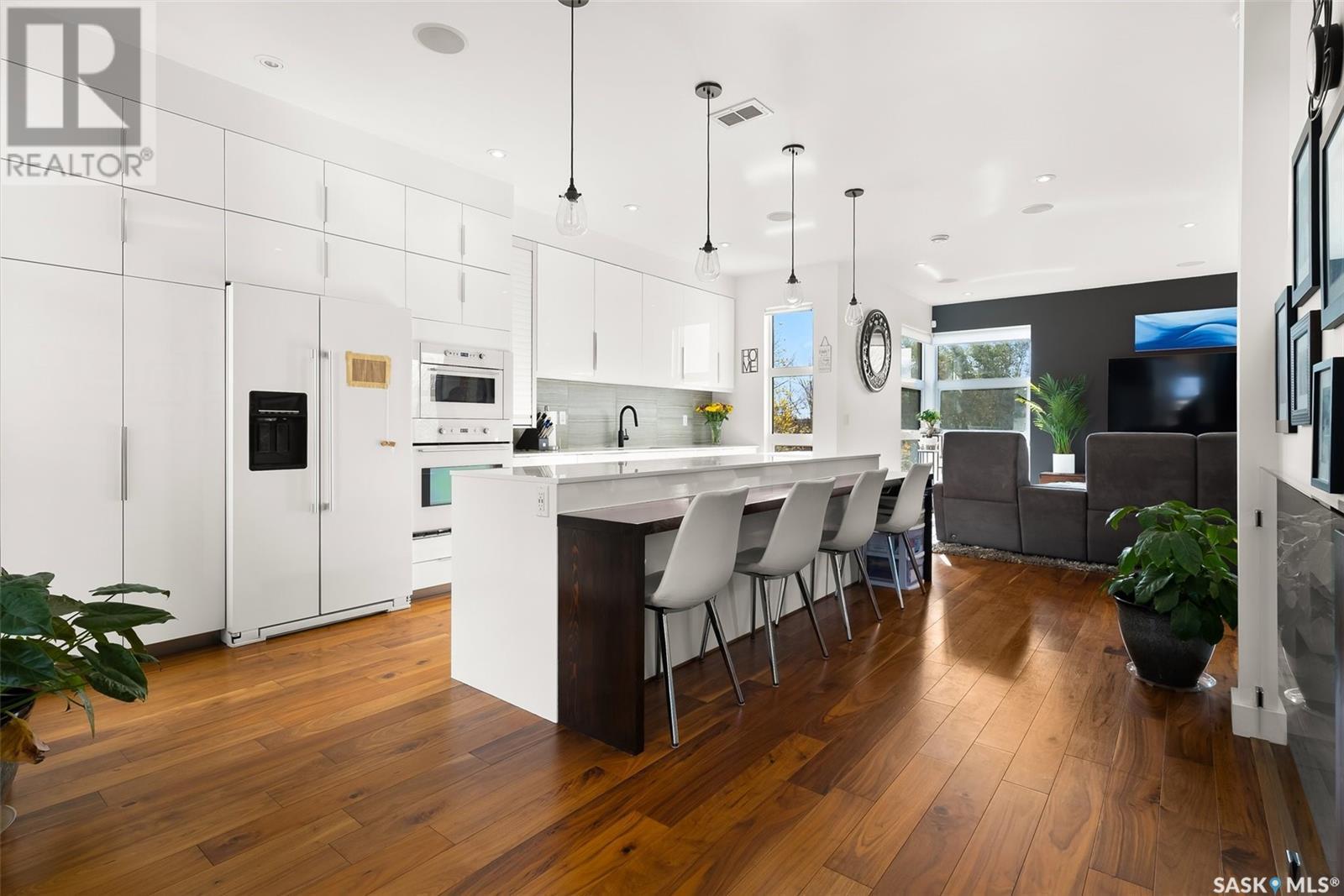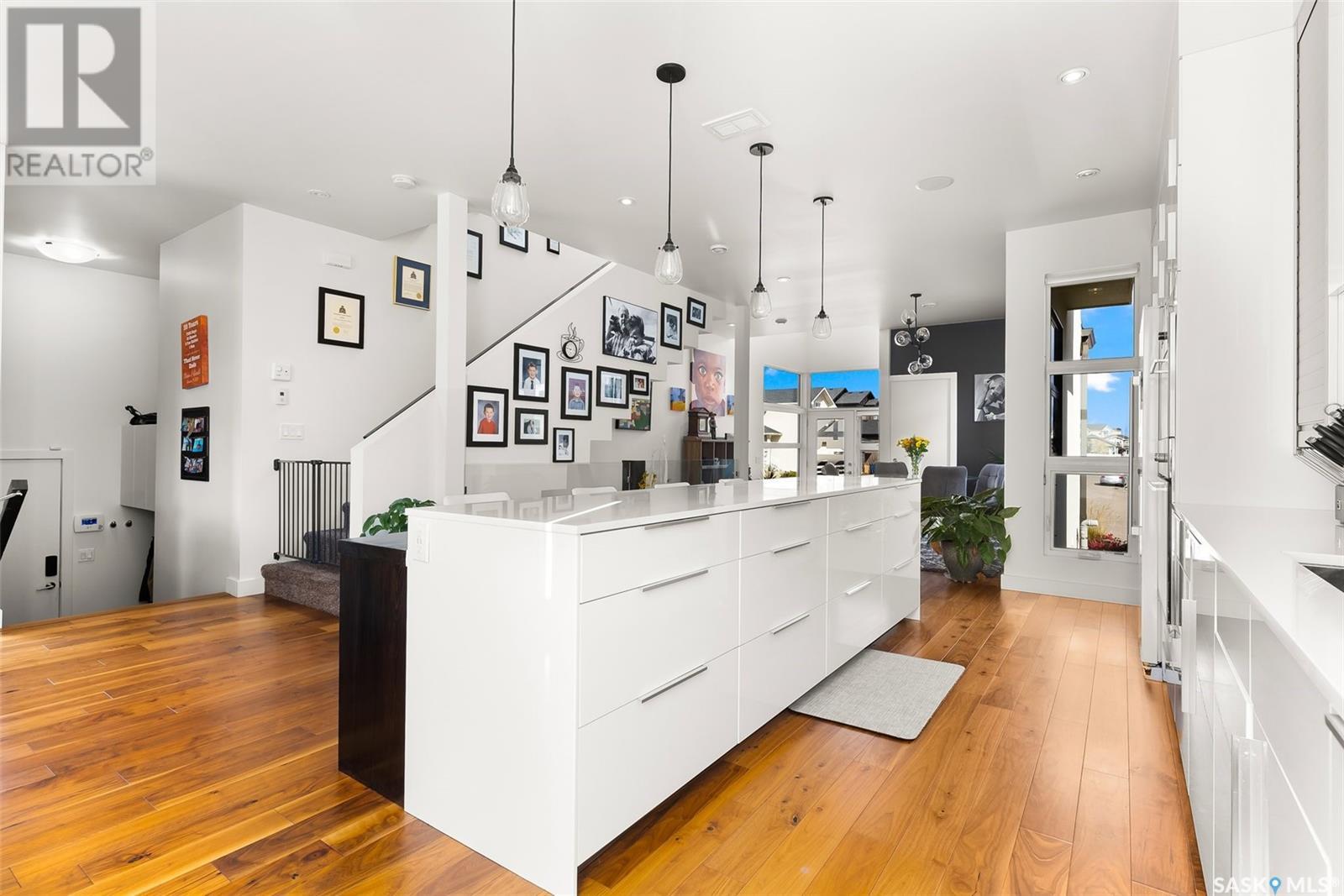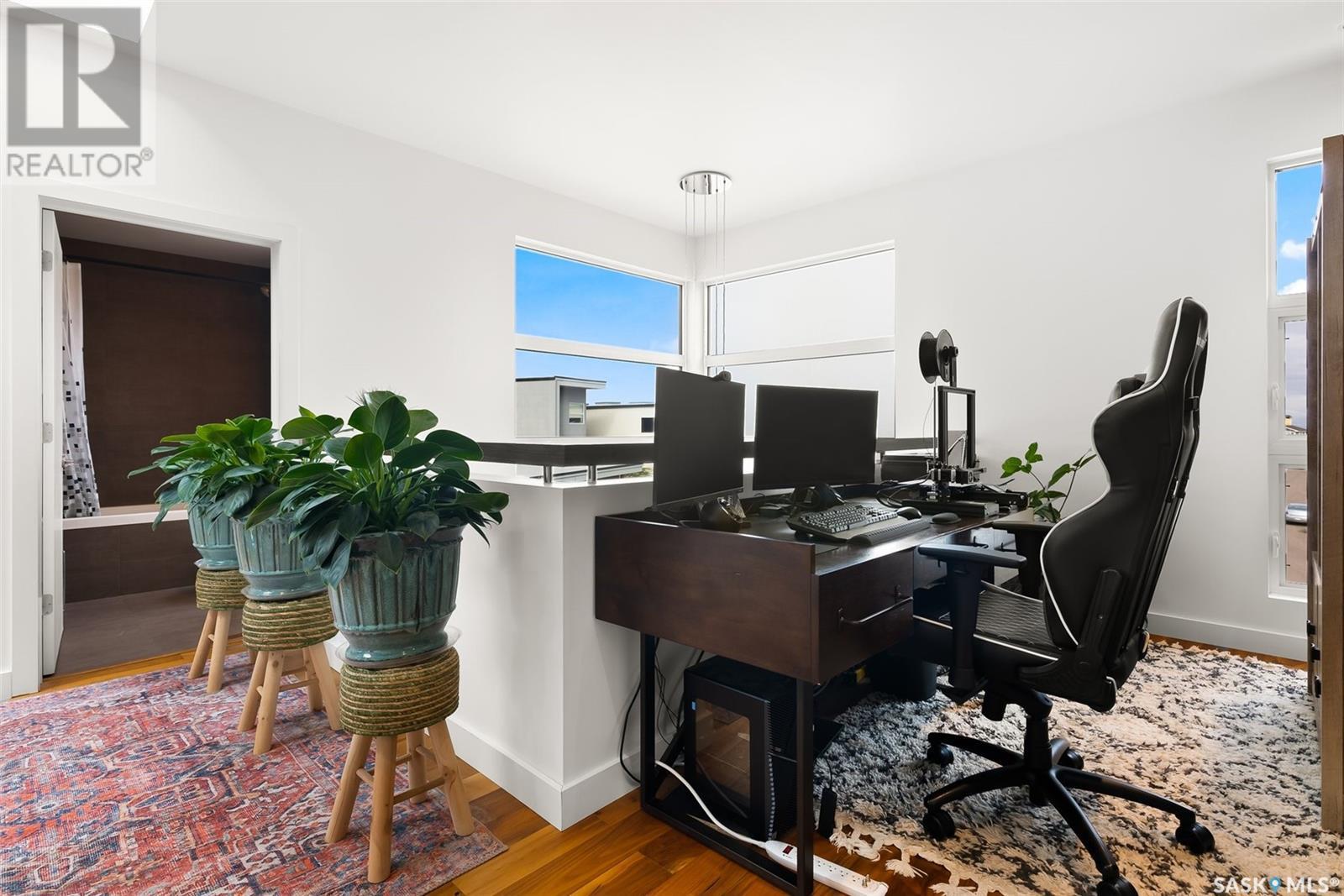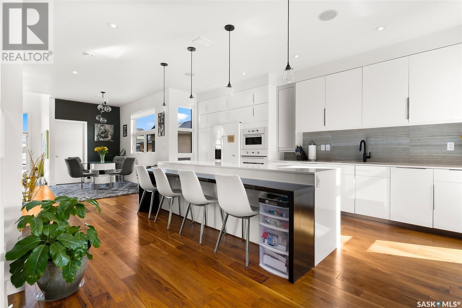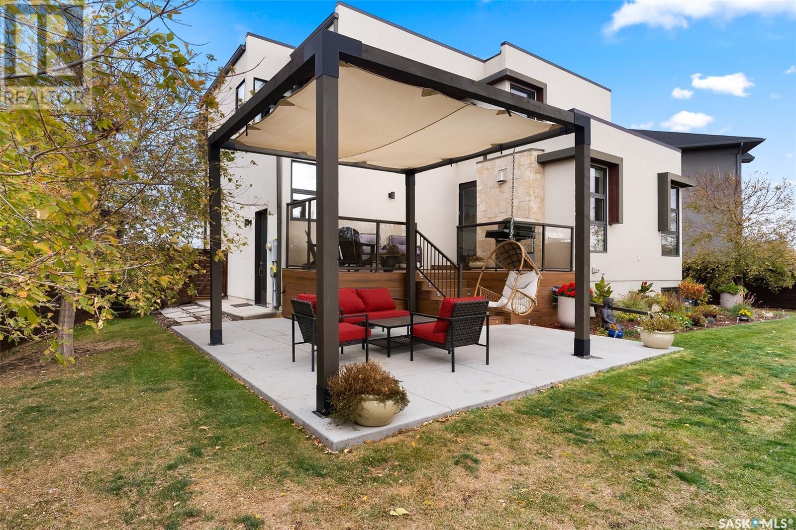 4122 Skinner Bay is nestled in the picturesque neighbourhood of Harbour Landing. This modern 2 story home boasts an impressive 2,120 square feet of living space, perfectly complemented by a 7,483 square foot south facing backyard. With 4 bedrooms and 4 bathrooms, this residence offers a perfect blend of comfort and modern style. As you step inside, you'll be greeted by an open and spacious atmosphere throughout the main floor. The soaring 10 foot ceiling and abundance of oversized windows fills the home with natural light, accentuating the stunning walnut flooring that graces the main floor living spaces. The heart of this home is the beautiful white kitchen, adorned with sleek quartz countertops and upgraded cabinets. It's designed to be the ideal space for family gatherings and entertaining, with its functional layout and modern finishes. Heading up to the second level, you'll discover the magnificent primary suite. This private sanctuary features a spacious walk in closet, a luxurious 5-piece ensuite, complete with double sinks, a soaker tub, a tiled shower.Two additional bedrooms and a well appointed 4 piece bathroom offer comfort and convenience for the whole family. The upper level is also home to an open office space and a cozy reading nook, perfect for work or relaxation. The fully finished lower level continues the high end finishes of the rest of the home and provides additional living space. Here, you'll find a spacious media room, a fourth bedroom, and a 3 piece bathroom. Step outside into the expansive backyard, where you'll find plenty of space for all your outdoor activities. A large deck, upper balcony, and patio area offer multiple spots for outdoor dining, relaxation, and entertaining. Lush, established trees and shrubs provide privacy and a touch of nature, all within the fully fenced yard. This house is an absolute must see, combining modern design, high end finishes, and a spacious layout that caters to both family life and entertainment. (id:22211)