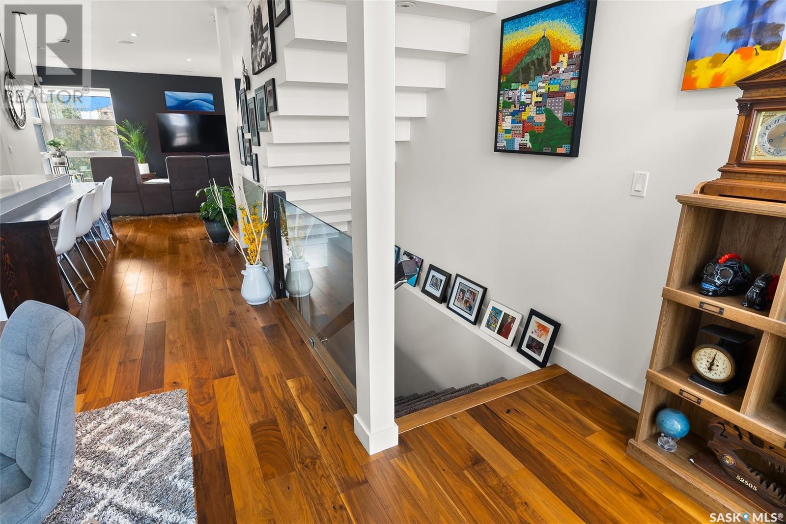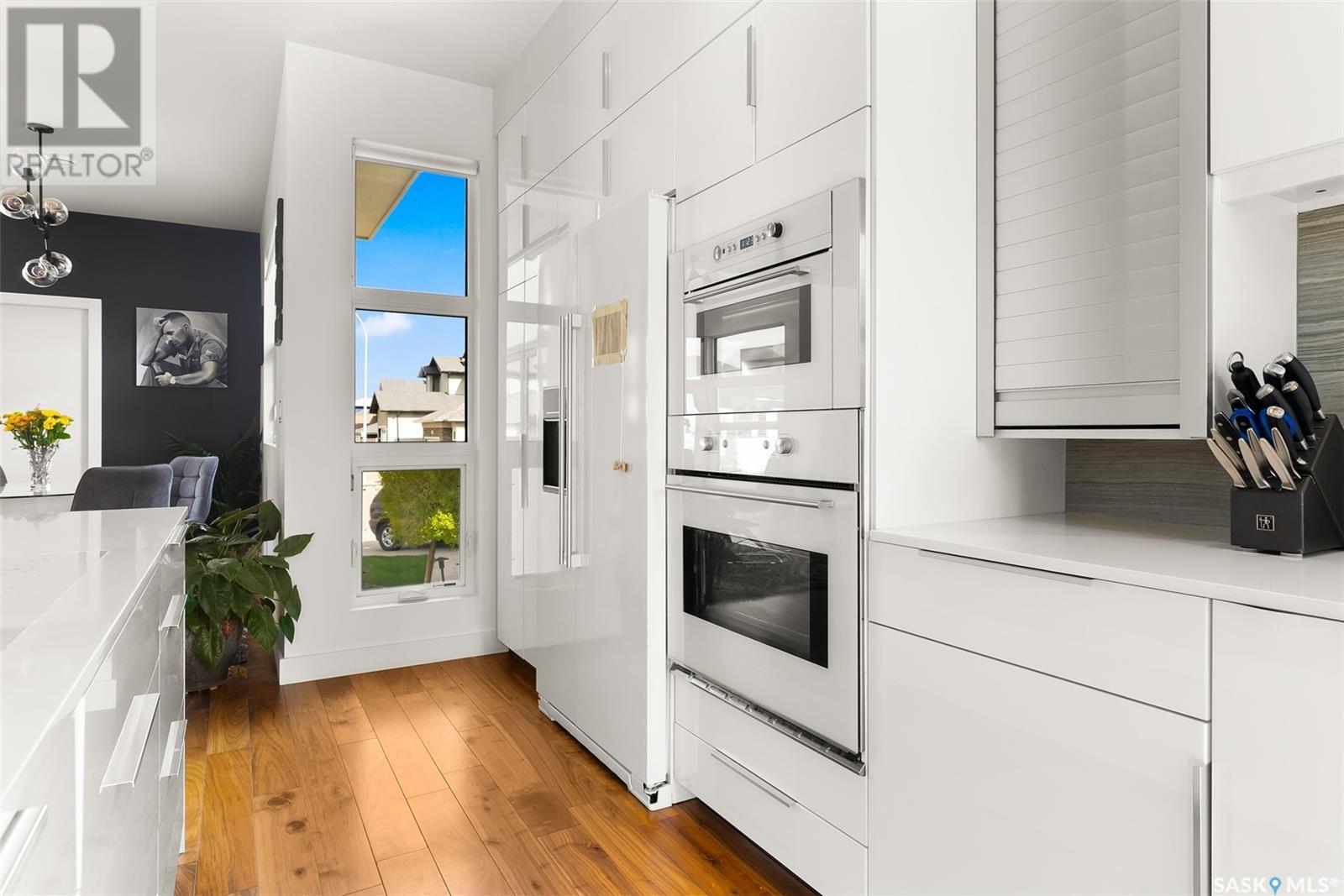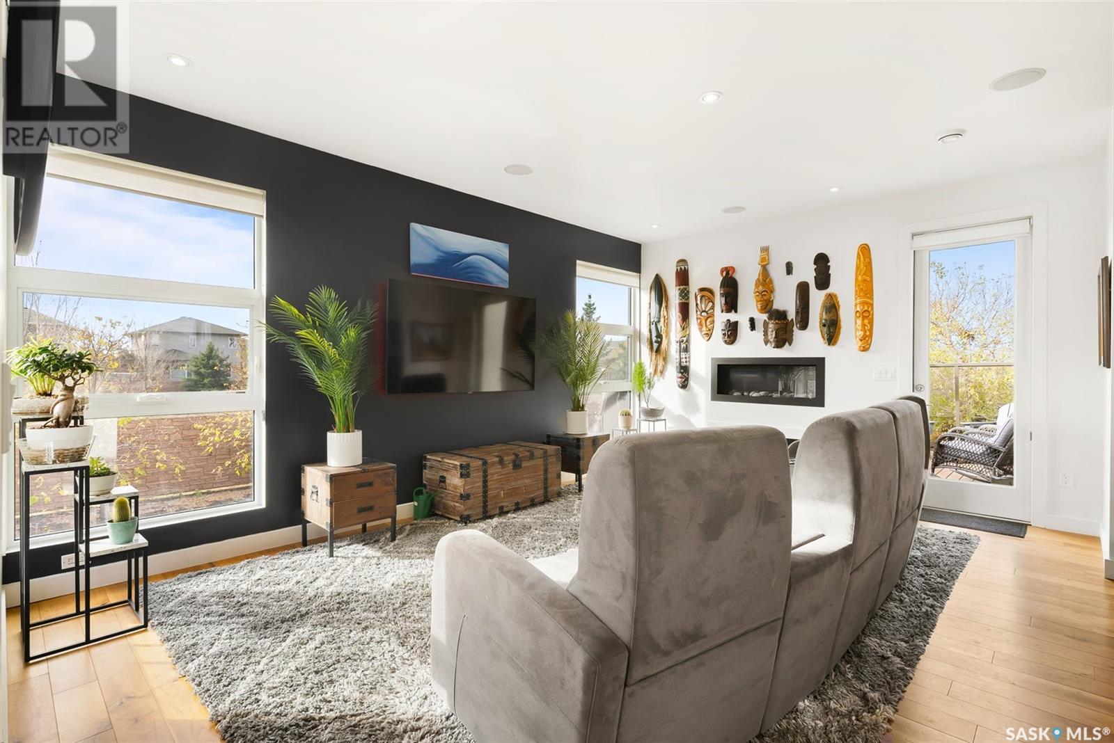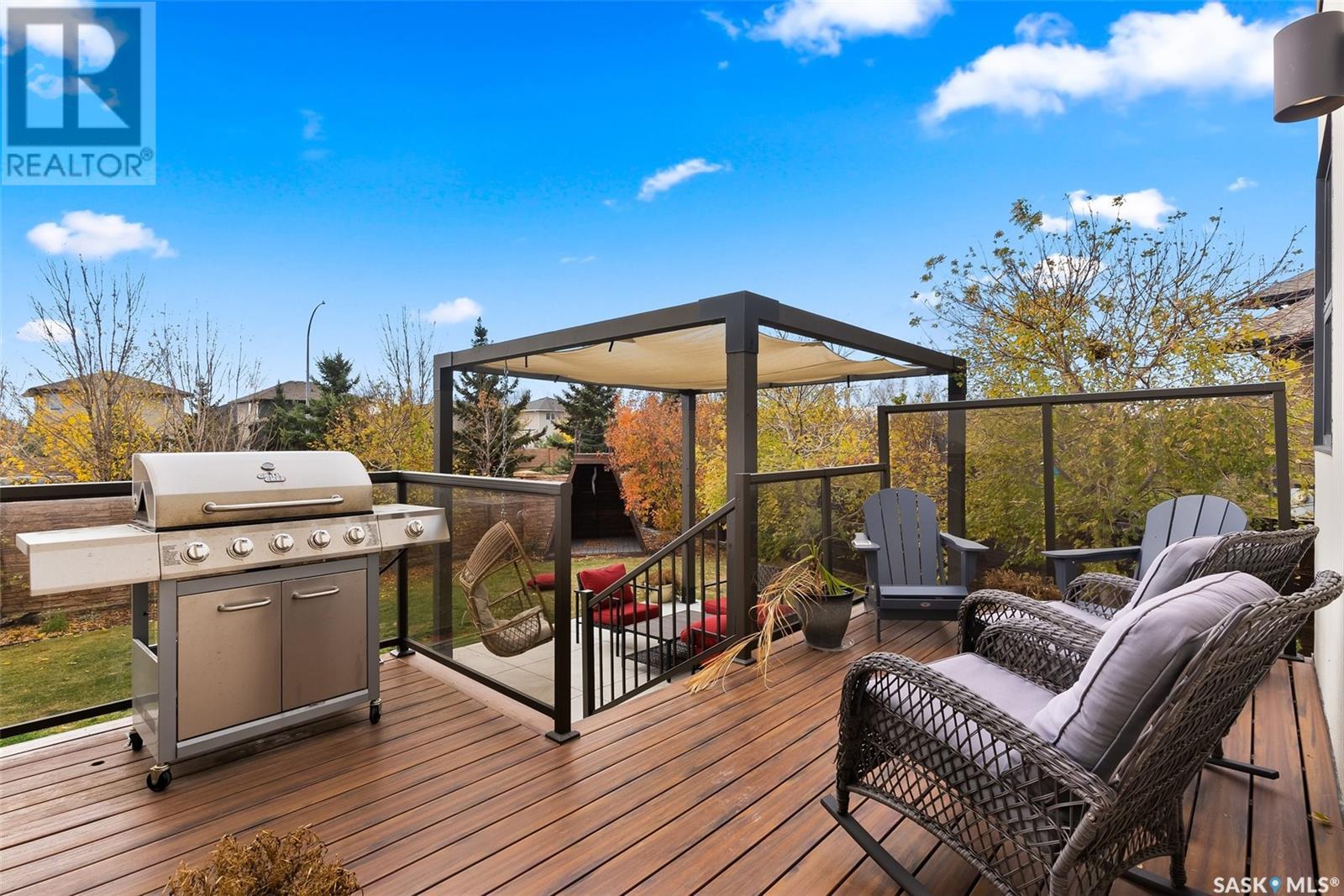 4122 Skinner Bay is nestled in the picturesque neighbourhood of Harbour Landing. This modern 2 story home boasts an impressive 2,120 square feet of living space, perfectly complemented by a 7,483 square foot south facing backyard. With 4 bedrooms and 4 bathrooms, this residence offers a perfect blend of comfort and modern style. As you step inside, you'll be greeted by an open and spacious atmosphere throughout the main floor. The soaring 10 foot ceiling and abundance of oversized windows fills the home with natural light, accentuating the stunning walnut flooring that graces the main floor living spaces. The heart of this home is the beautiful white kitchen, adorned with sleek quartz countertops and upgraded cabinets. It's designed to be the ideal space for family gatherings and entertaining, with its functional layout and modern finishes. Heading up to the second level, you'll discover the magnificent primary suite. This private sanctuary features a spacious walk in closet, a luxurious 5-piece ensuite, complete with double sinks, a soaker tub, a tiled shower.Two additional bedrooms and a well appointed 4 piece bathroom offer comfort and convenience for the whole family. The upper level is also home to an open office space and a cozy reading nook, perfect for work or relaxation. The fully finished lower level continues the high end finishes of the rest of the home and provides additional living space. Here, you'll find a spacious media room, a fourth bedroom, and a 3 piece bathroom. Step outside into the expansive backyard, where you'll find plenty of space for all your outdoor activities. A large deck, upper balcony, and patio area offer multiple spots for outdoor dining, relaxation, and entertaining. Lush, established trees and shrubs provide privacy and a touch of nature, all within the fully fenced yard. This house is an absolute must see, combining modern design, high end finishes, and a spacious layout that caters to both family life and entertainment. (id:22211)