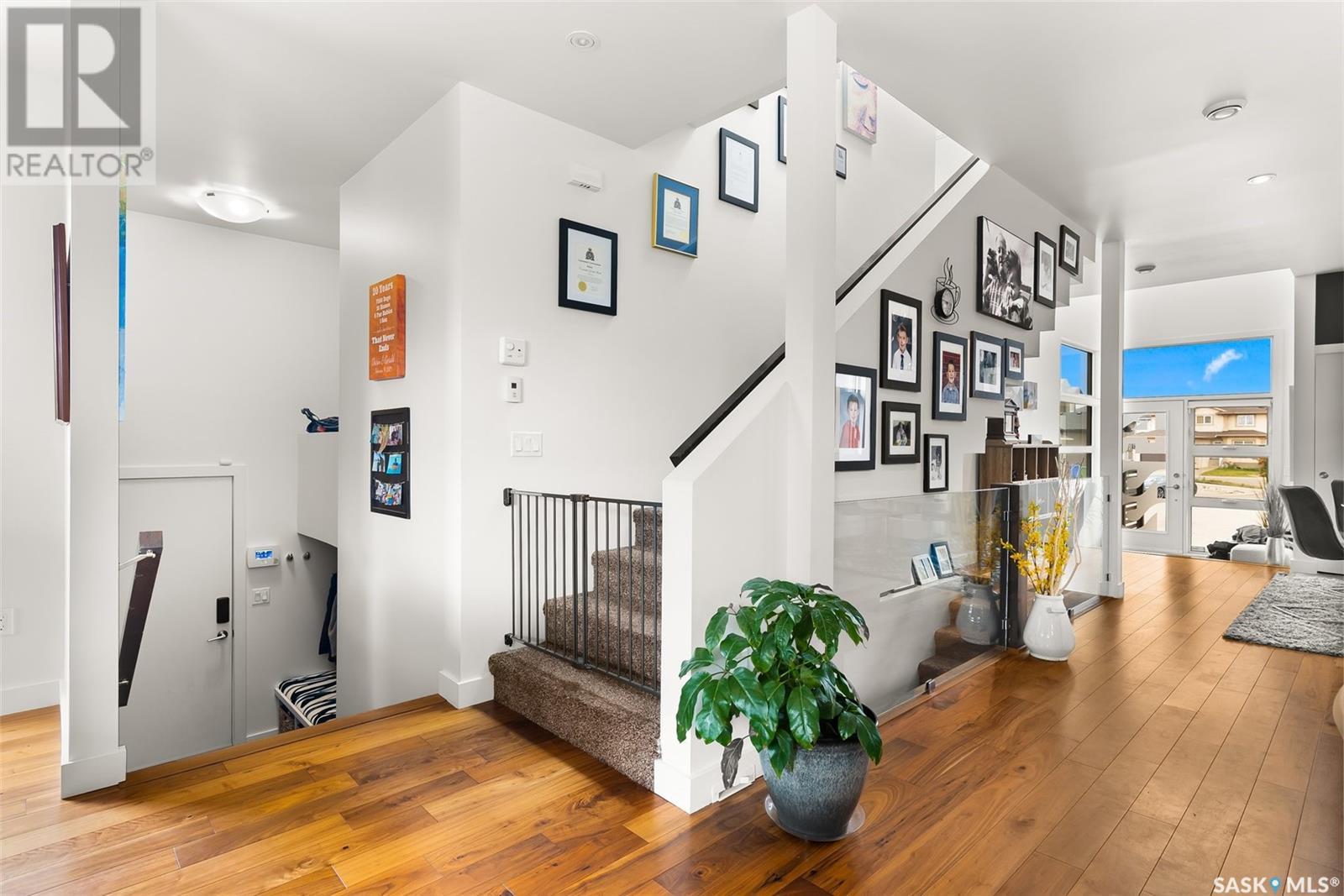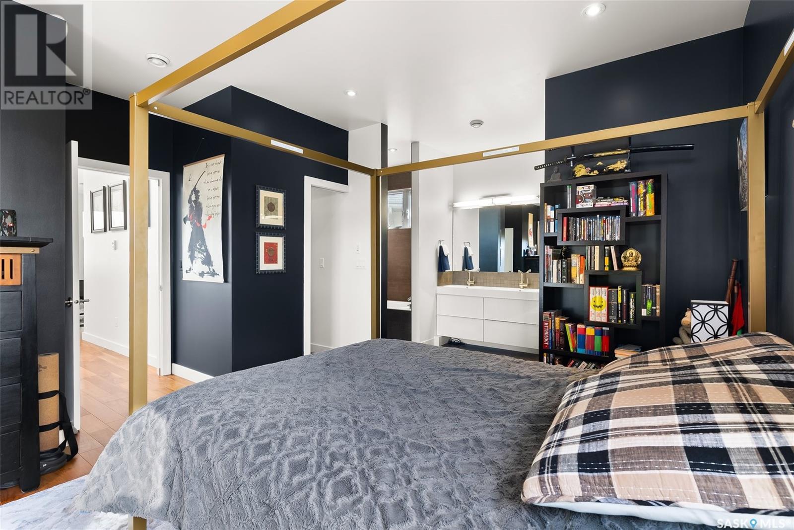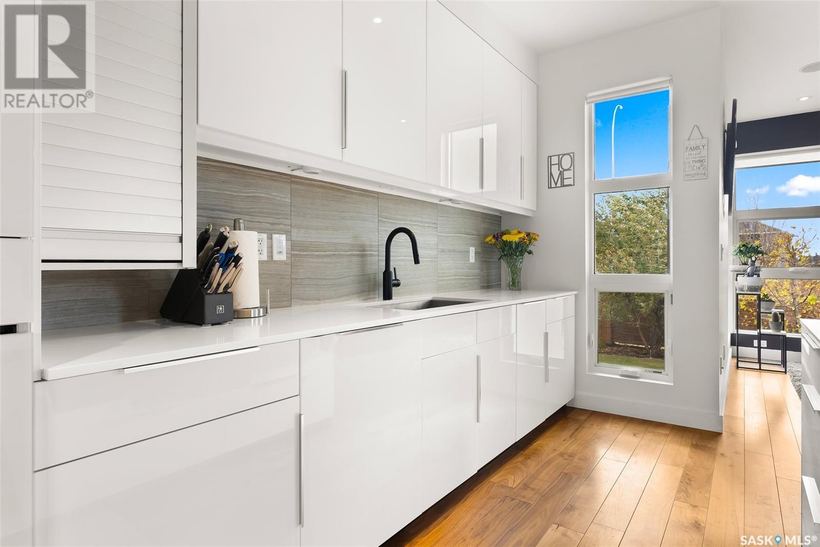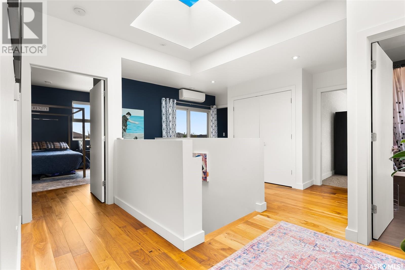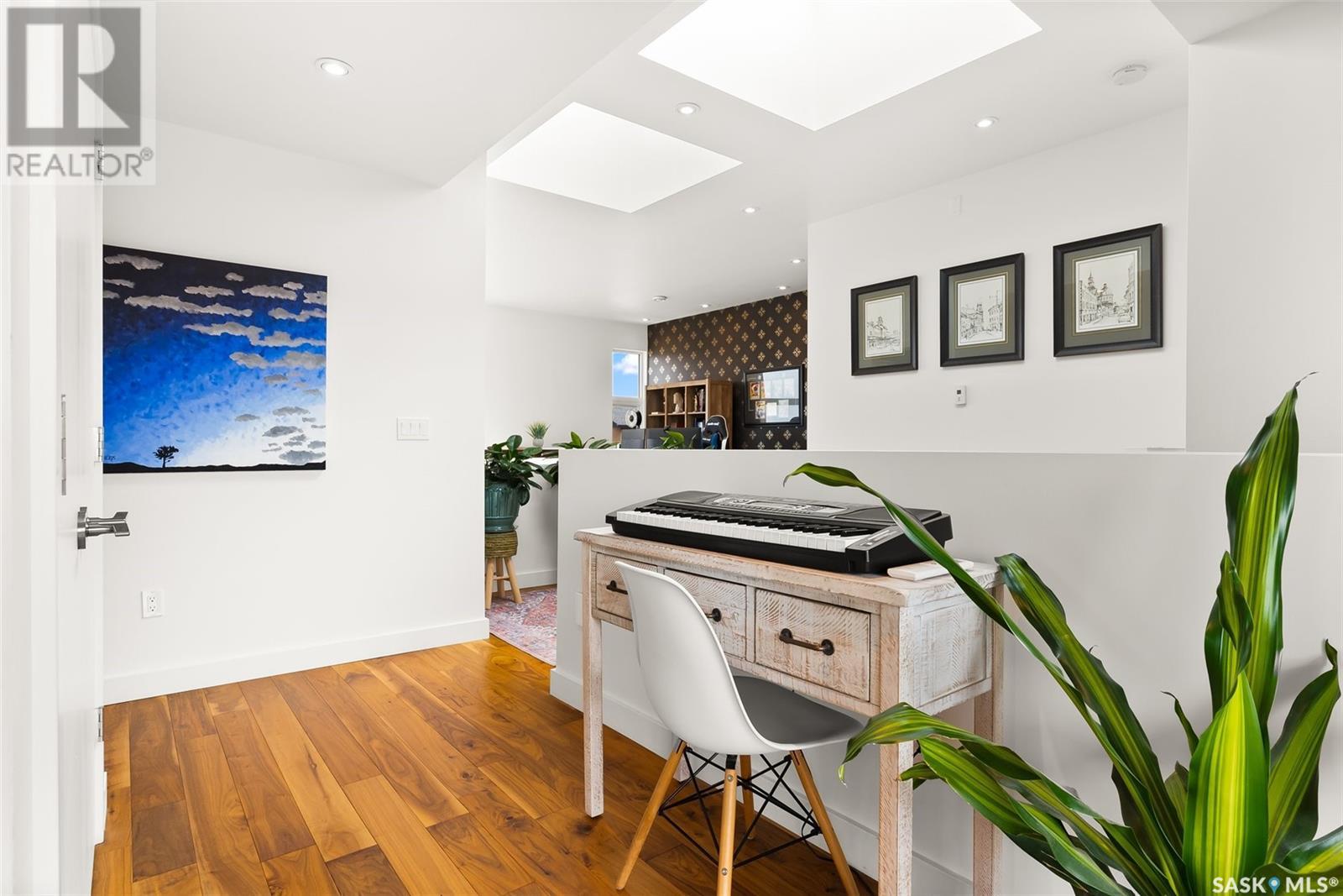 4122 Skinner Bay is nestled in the picturesque neighbourhood of Harbour Landing. This modern 2 story home boasts an impressive 2,120 square feet of living space, perfectly complemented by a 7,483 square foot south facing backyard. With 4 bedrooms and 4 bathrooms, this residence offers a perfect blend of comfort and modern style. As you step inside, you'll be greeted by an open and spacious atmosphere throughout the main floor. The soaring 10 foot ceiling and abundance of oversized windows fills the home with natural light, accentuating the stunning walnut flooring that graces the main floor living spaces. The heart of this home is the beautiful white kitchen, adorned with sleek quartz countertops and upgraded cabinets. It's designed to be the ideal space for family gatherings and entertaining, with its functional layout and modern finishes. Heading up to the second level, you'll discover the magnificent primary suite. This private sanctuary features a spacious walk in closet, a luxurious 5-piece ensuite, complete with double sinks, a soaker tub, a tiled shower.Two additional bedrooms and a well appointed 4 piece bathroom offer comfort and convenience for the whole family. The upper level is also home to an open office space and a cozy reading nook, perfect for work or relaxation. The fully finished lower level continues the high end finishes of the rest of the home and provides additional living space. Here, you'll find a spacious media room, a fourth bedroom, and a 3 piece bathroom. Step outside into the expansive backyard, where you'll find plenty of space for all your outdoor activities. A large deck, upper balcony, and patio area offer multiple spots for outdoor dining, relaxation, and entertaining. Lush, established trees and shrubs provide privacy and a touch of nature, all within the fully fenced yard. This house is an absolute must see, combining modern design, high end finishes, and a spacious layout that caters to both family life and entertainment. (id:22211)