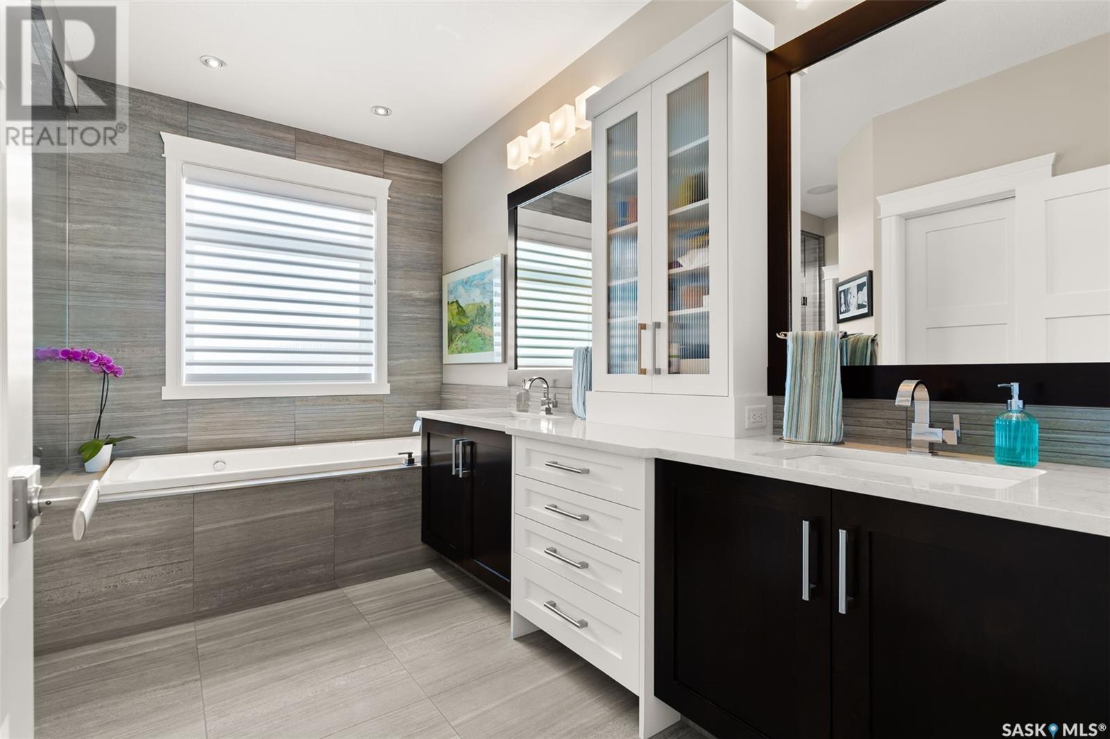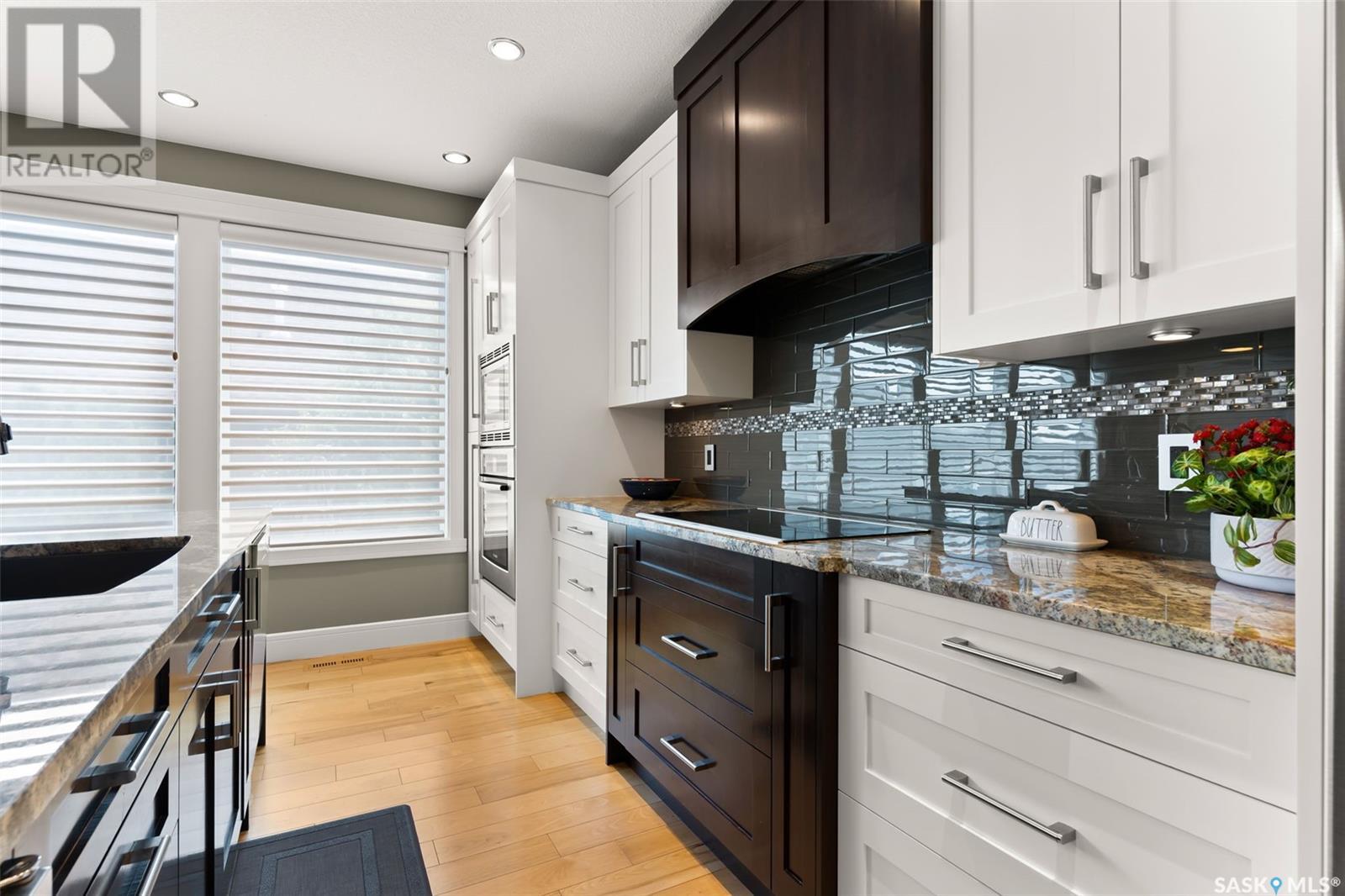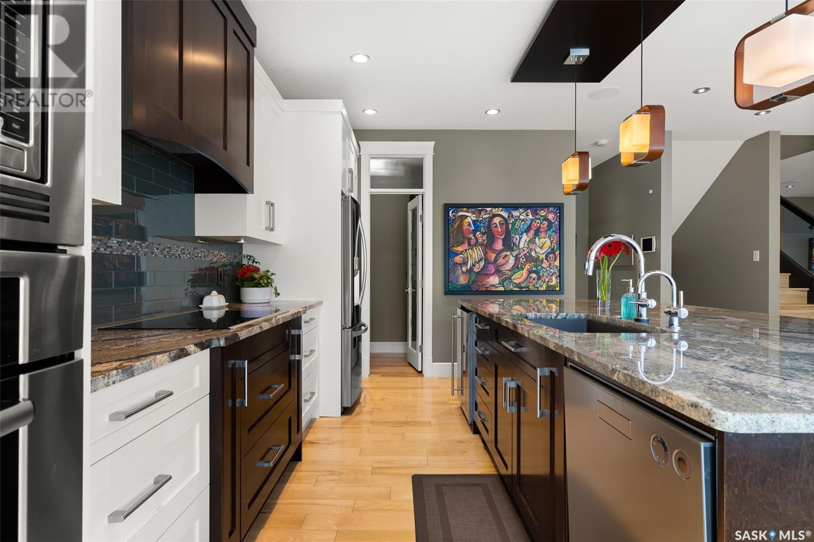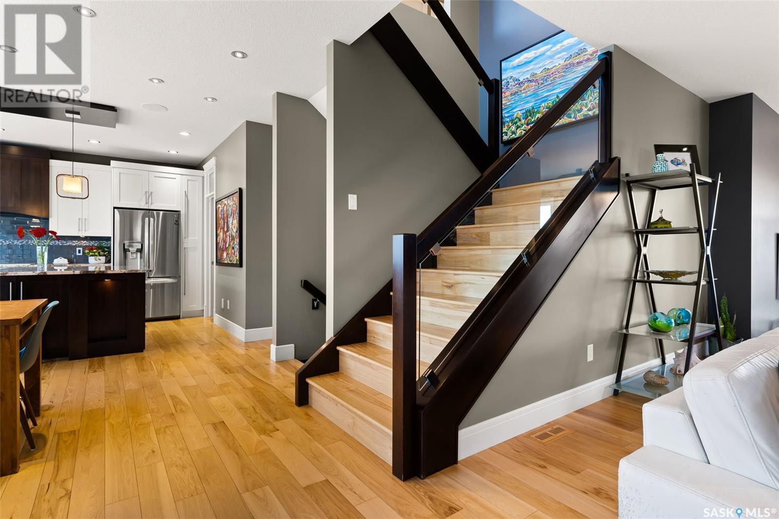 Don’t miss the opportunity to own this gorgeous custom built Ripplinger home situated on a large lot and quiet crescent. Upon entry you are welcomed into the spacious foyer. French doors lead into the main floor office. Steps up lead into the gorgeous open concept living space with Mirage hickory hardwood flooring. Living room features a gas fireplace with windows on two sides plus built in display case. Dining area bridges the living room and kitchen and allows access to the Suncoast screened in composite deck. Gorgeous kitchen features two toned custom cabinetry, granite counters, ceramic tile backsplash, built in oven, microwave and induction cooktop. Large island has plenty of space for eating & boasts attractive wood bulkhead, pendant lighting, beverage fridge, dishwasher & double silgranite sink with separate water tap. Handy butlers pantry offers prep sink, coffee station, shelving and pull out recycling. 2 pc powder room is located just off the kitchen. Steps down lead into a large mudroom with ample built in storage and provides access to the "wow" triple garage (tandem on one side) including car lift, TV, storage and floor drain. 2nd level features a bonus room with additional office space and 3 bedrooms. Master suite features walk in closets with organizers plus a spa like 5 pc ensuite complete with tiled shower with bench and jacuzzi soaker tub. Additonal full bath features double vanities, rain shower head and built in closet. Basement is an entertainers dream! Bright rec room features a projection screen, power blinds, surround sound + bar with beer keg system. 4th bedroom is currently being used as a home gym. Additonal 3 pc bath on this level features steam shower. Private, fully fenced backyard is professionally landscaped and features a stamped concrete patio, walkways, lush lawn, raised garden hot tub, and shed. Home is automated from your phone by Savant and features "celebright" lights. Ask your REALTOR® for a complete list of features. (id:22211)