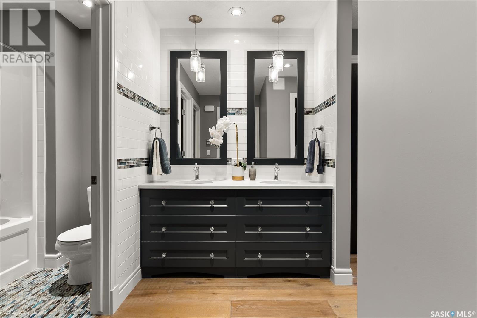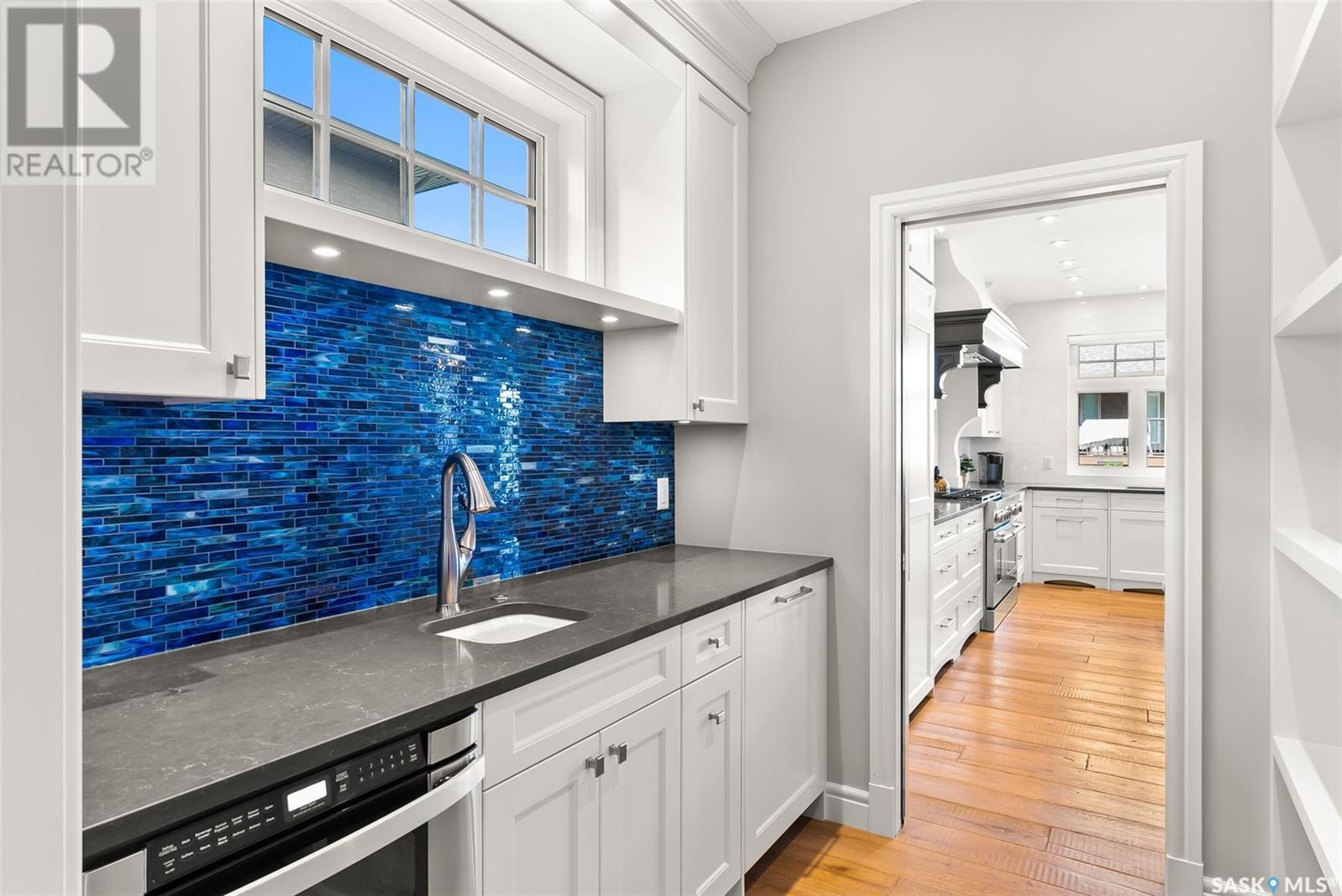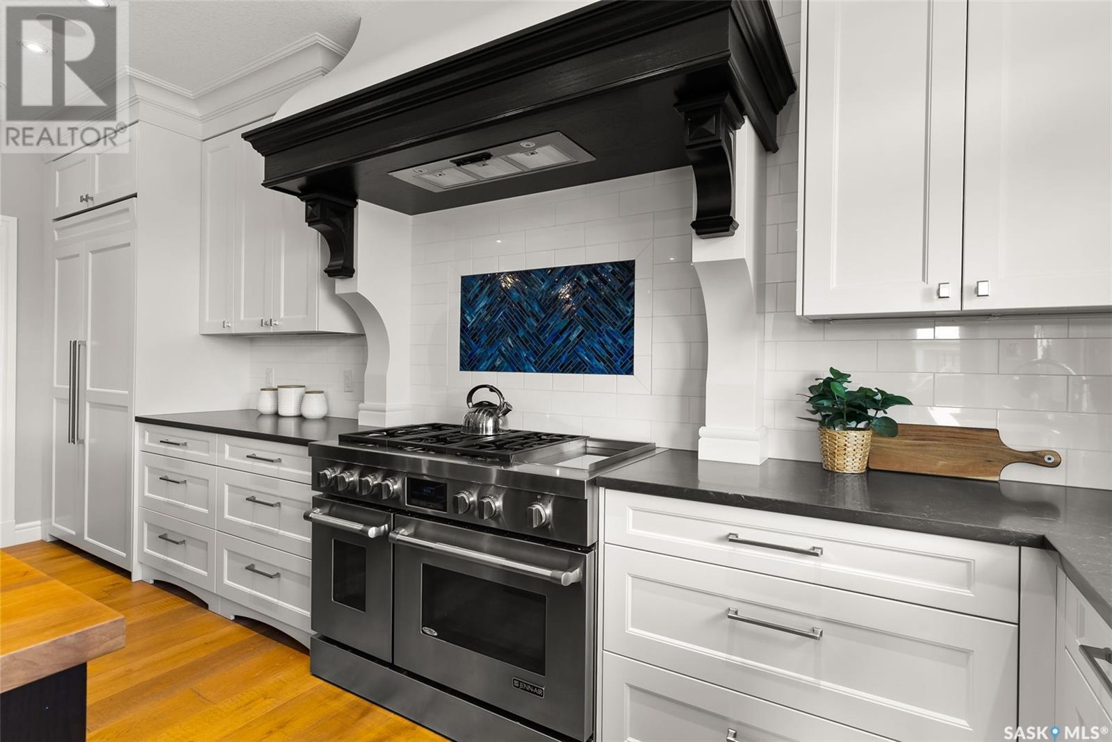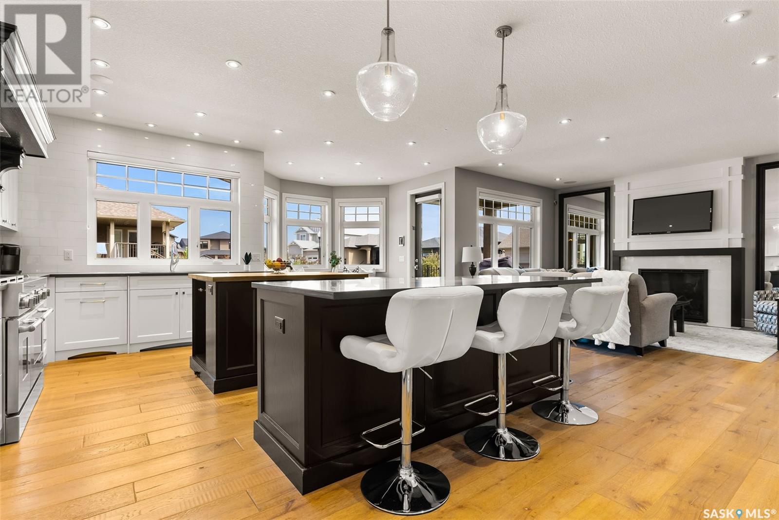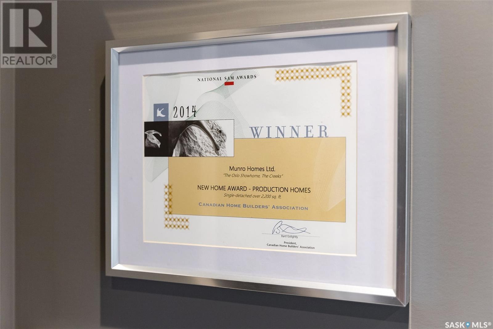 This incredible two storey former show home was meticulously crafted by Munro Homes and was awarded a Canadian Home Builders Association New Home Award for best single detached home over 2200 sqft in 2014. Outside you will love the intricate roof lines, acrylic stucco with tindal stone accents, and covered front porch. Step inside and you will fall in love with custom millwork and tall ceilings. The kitchen is a cook's dream with the 6 burner Jenn-Air gas stove, dual islands (with quartz and butcher block counters), built-in ovens, and the elegant tiled backsplash. Rick's Custom Cabinets did a beautiful job of the cabinetry throughout the home. The kitchen opens up the dining area with built-in bench seating and the living room with its gas fireplace. There is also a den/office off of the kitchen as well as a walk-thru pantry. Completing the main floor is a 2pc powder room and mudroom. Follow the hardwood stairs up the second level where you will find a bonus room. The primary bedroom features a separate nook that is perfect as a reading area or den. There is also a walk-in closet and a 5pc ensuite with heated tiled floors and a tiled shower. There are two additional bedrooms, a 5pc main bathroom, and laundry on the second level. The basement has been fully developed and has in-floor heat. You can entertain in the family room with a built-in bar/entertainment centre. The den would make a great fitness room and there is a 4th bedroom and full bathroom. This home is equipped with an elevator that accesses the basement, garage, main floor, and second floor. The double attached garage has 14ft ceilings and is insulated, drywalled, painted, and heated. In the backyard you can enjoy your composite deck, patio, and custom outdoor fireplace. Some additional features of this home include: handscraped hardwood flooring, a Control4 operations/audio system, gas bbq hookup, on demand hot water heater, built-in bureau cabinetry in the primary bedroom, and so much more. (id:22211)