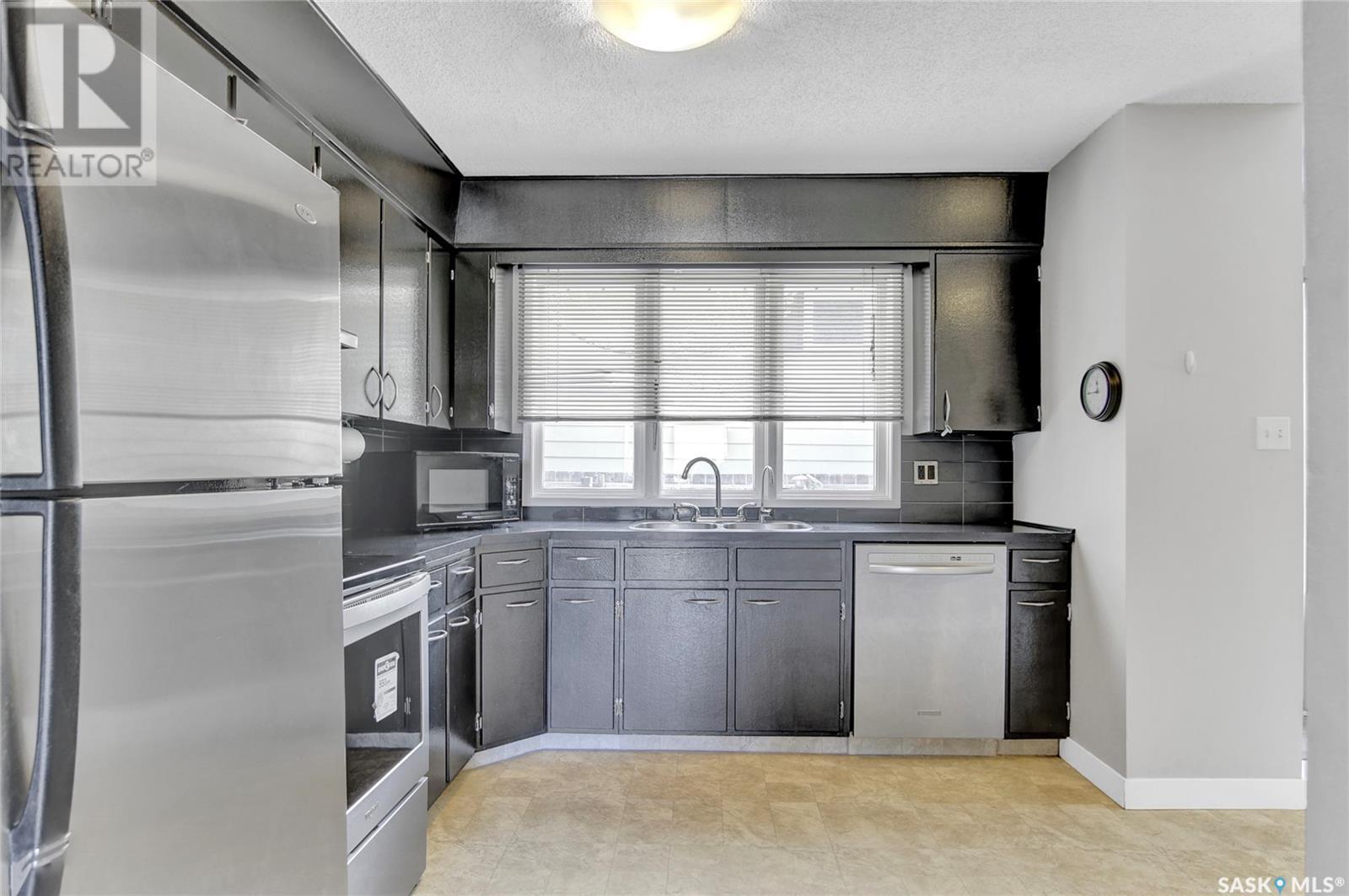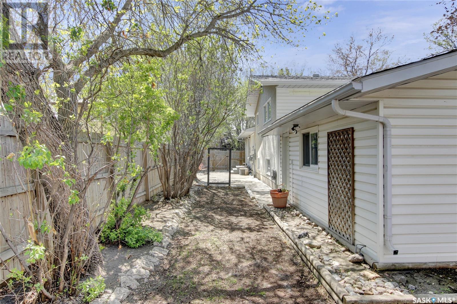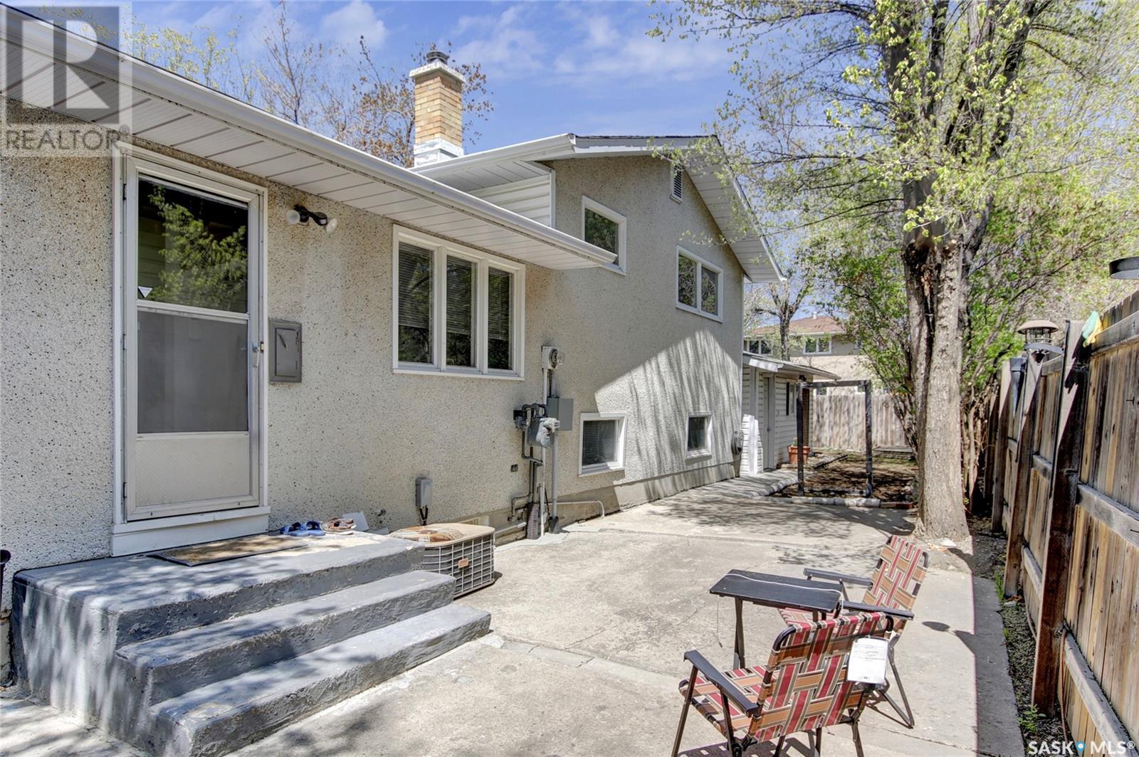 Lovely 4 level split with lots of room for a growing family located in Regina’s South end close to all trendy shopping, restaurants, coffee shops, library and more. Main level has eat-in kitchen with lots of cabinetry and endless counter space. Window over the dual stainless steel sink looks out to the fenced backyard with a patio and garden space. Morning coffee on your private patio for a peaceful start to your day or a weekend hideaway with a book. Enjoy a family barbecue or gardening in your own backyard retreat. Kitchen leads to the L-shaped dining room and living room. Built-in cabinets for additional storage in the dining room and a family-sized living room looks out to the neighbourhood park. Park has a splash park, water spray park, walking path, leisure centre and skating rink. Upper level offers 3 really good-sized bedrooms with the primary having a 2-piece en-suite. Main family bathroom has a tub with shower and newer flooring. One level down from the main level is a large family room with tall windows allowing lots of natural light. Bedroom with 2-piece en-suite and laundry room with extra storage space. Lower level is undeveloped and ready for your personal touch. With walls and flooring you could have a family games area, work out area, sewing or craft spot, work shop or maybe a dedicated kids area. Two elementary schools and two high schools within walking distance. University of Regina and Saskatchewan Polytechnic a bit further but still within walking distance. Easy access to the ring road makes for a quick drive anywhere in Regina. All appliances will remain. Easy to keep clean vinyl plank flooring in living room and dining room. Entire interior has a fresh coat of paint in a light modern tone. Shingles are 2 years old. Note - double garage is usable but not in top shape. Air conditioner needs freon gas. (id:22211)
