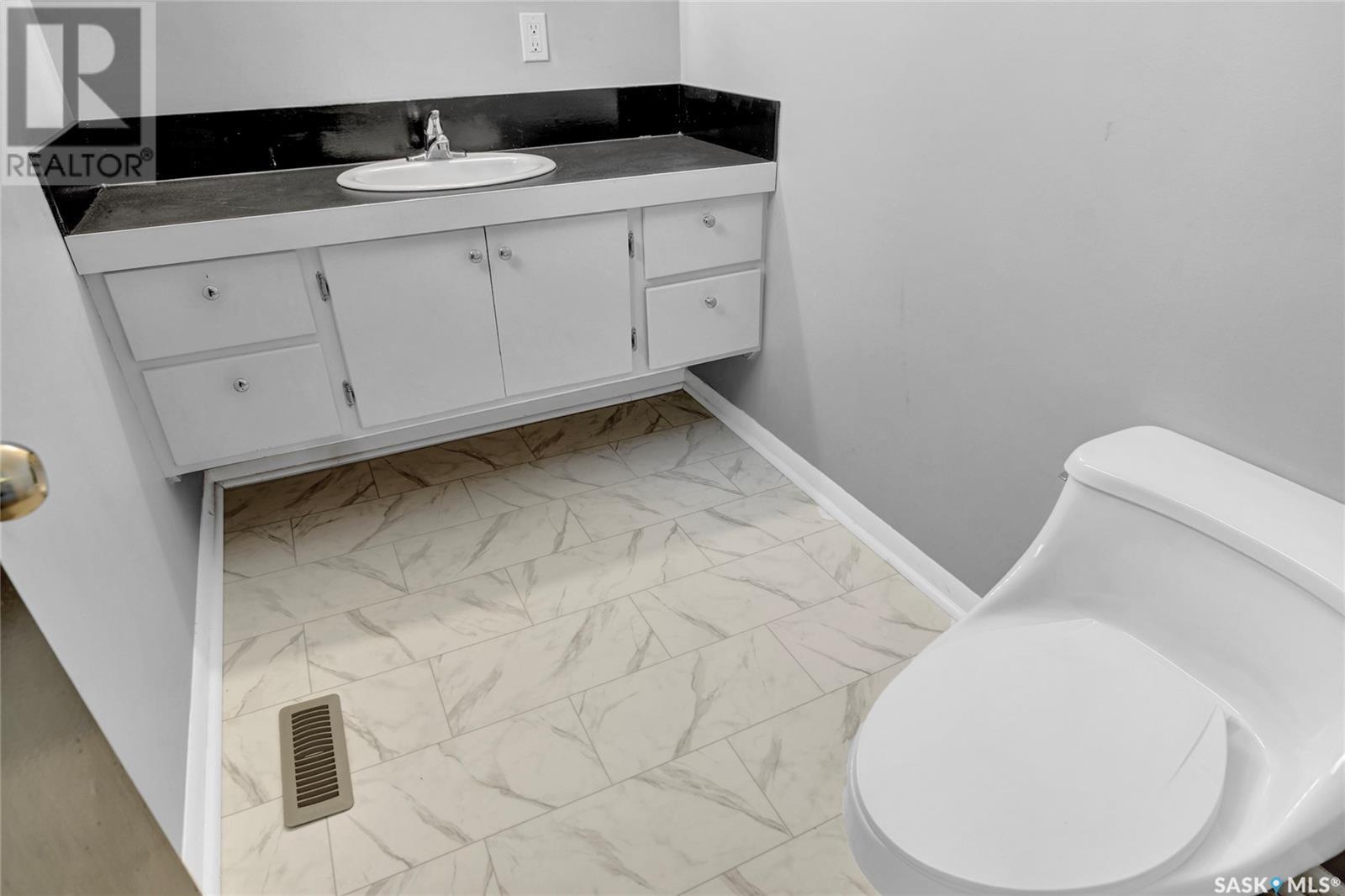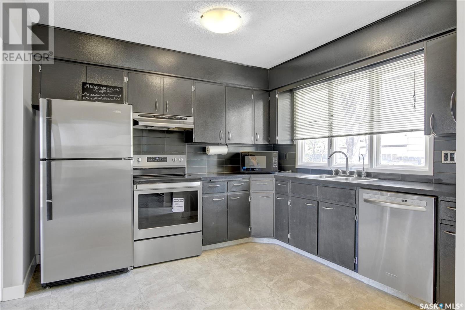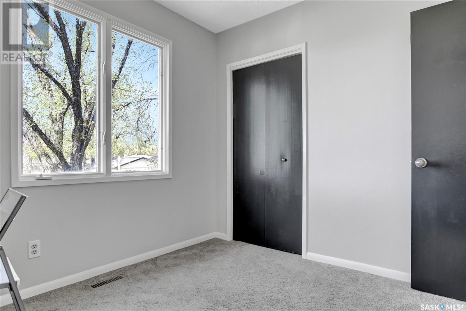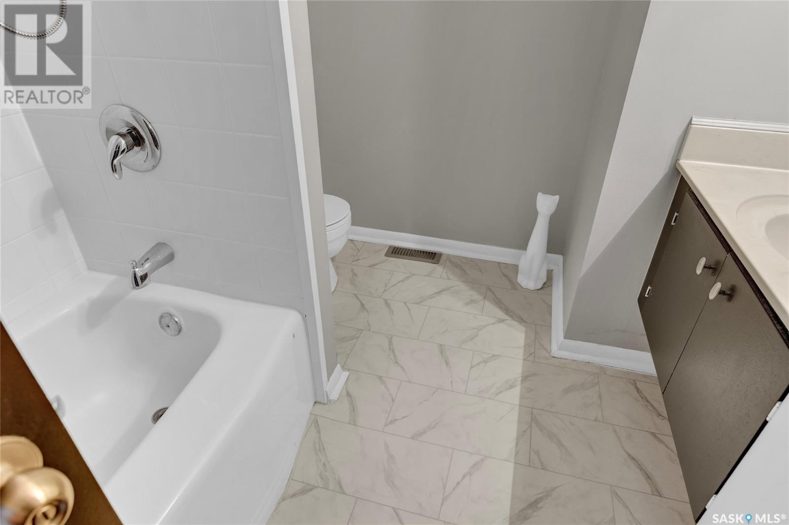 Lovely 4 level split with lots of room for a growing family located in Regina’s South end close to all trendy shopping, restaurants, coffee shops, library and more. Main level has eat-in kitchen with lots of cabinetry and endless counter space. Window over the dual stainless steel sink looks out to the fenced backyard with a patio and garden space. Morning coffee on your private patio for a peaceful start to your day or a weekend hideaway with a book. Enjoy a family barbecue or gardening in your own backyard retreat. Kitchen leads to the L-shaped dining room and living room. Built-in cabinets for additional storage in the dining room and a family-sized living room looks out to the neighbourhood park. Park has a splash park, water spray park, walking path, leisure centre and skating rink. Upper level offers 3 really good-sized bedrooms with the primary having a 2-piece en-suite. Main family bathroom has a tub with shower and newer flooring. One level down from the main level is a large family room with tall windows allowing lots of natural light. Bedroom with 2-piece en-suite and laundry room with extra storage space. Lower level is undeveloped and ready for your personal touch. With walls and flooring you could have a family games area, work out area, sewing or craft spot, work shop or maybe a dedicated kids area. Two elementary schools and two high schools within walking distance. University of Regina and Saskatchewan Polytechnic a bit further but still within walking distance. Easy access to the ring road makes for a quick drive anywhere in Regina. All appliances will remain. Easy to keep clean vinyl plank flooring in living room and dining room. Entire interior has a fresh coat of paint in a light modern tone. Shingles are 2 years old. Note - double garage is usable but not in top shape. Air conditioner needs freon gas. (id:22211)