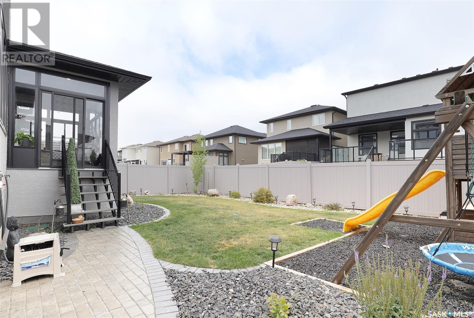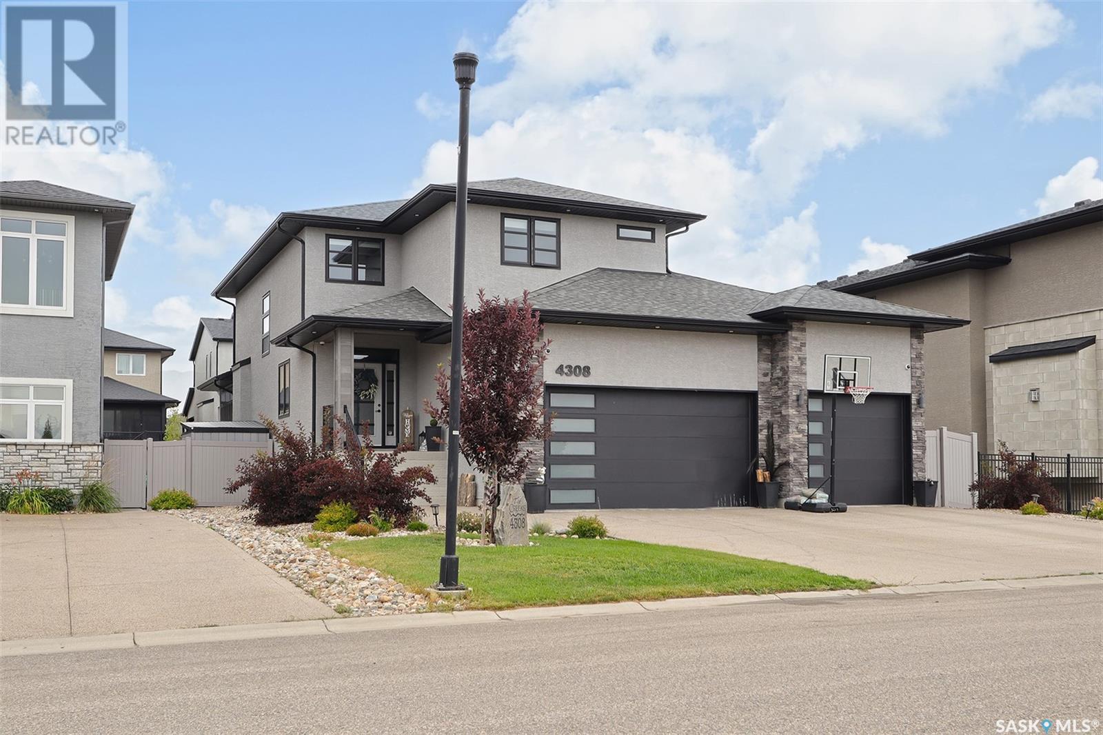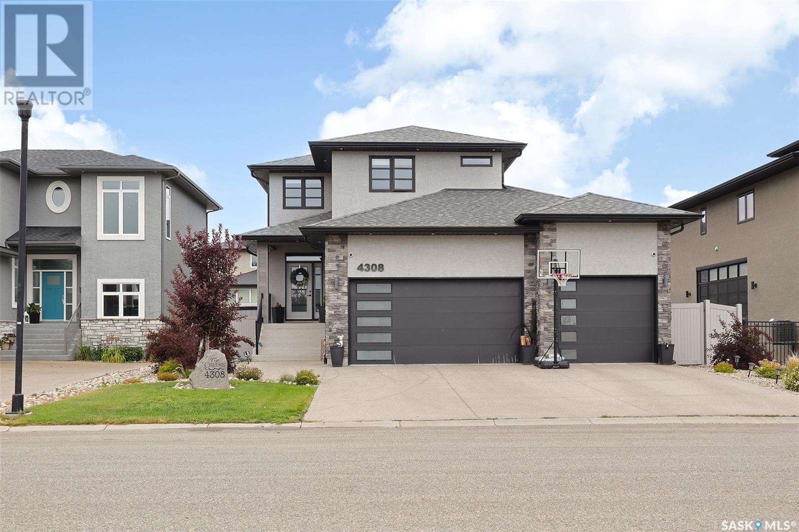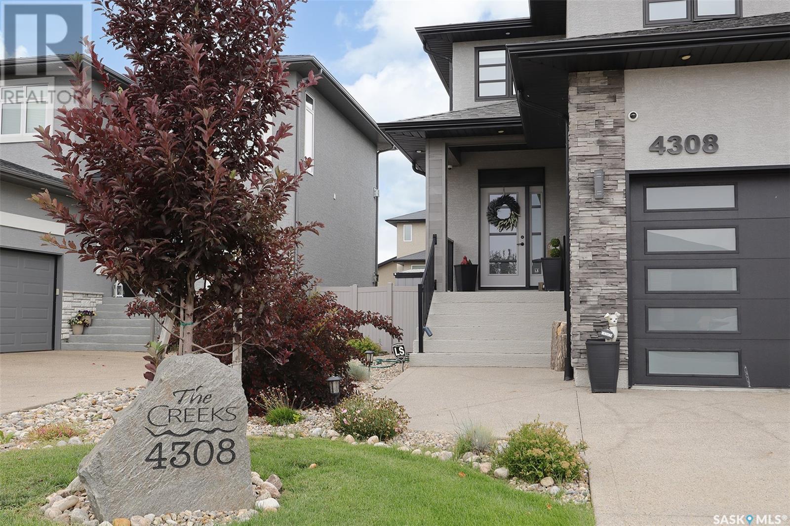 Welcome to 4308 Sage Drive located in Regina's prestigious area "The Creeks". This gorgeous custom built Fiorante home is loaded with high end features and loads of extras! Comfortable stylish luxury and a contemporary design perfect for families. Over 2200 sq ft boasting 5 bedrooms & 4 Baths. As you enter into the large foyer you are welcomed into this bright and beautiful stunning open concept floor plan. The main floor offers a see thru office in the front, 2 pc bath, mud room off the garage with laundry. Beautiful striking kitchen with upgraded stainless still appliances, Quartz counter tops with waterfall on the side of the island & back splash tile. Beautiful custom cabinets with flat doors, white interiors and adjustable shelves. Gas stove & hood fan, large corner pantry. Gorgeous corner dining area. The family room has a beautiful custom stone fireplace with shelving on either side. In addition to this space there is a 4 season sun room off the dining area, a wonderful calming space to sit back and relax. Upstairs there are 4 bedrooms, a large bonus room, beautiful master bedroom with a huge walk-in closet and spa like bathroom. The basement is totally finished with a large family room, bedroom and beautiful 3 pc bath, Large triple heated garage with rear door opening to a Pergola hot tub space and patio area for entertaining and cooking. Kids play structure included. This is a one owner home in immaculate condition with pride of ownership! Please call for your personal viewing today! (id:22211)