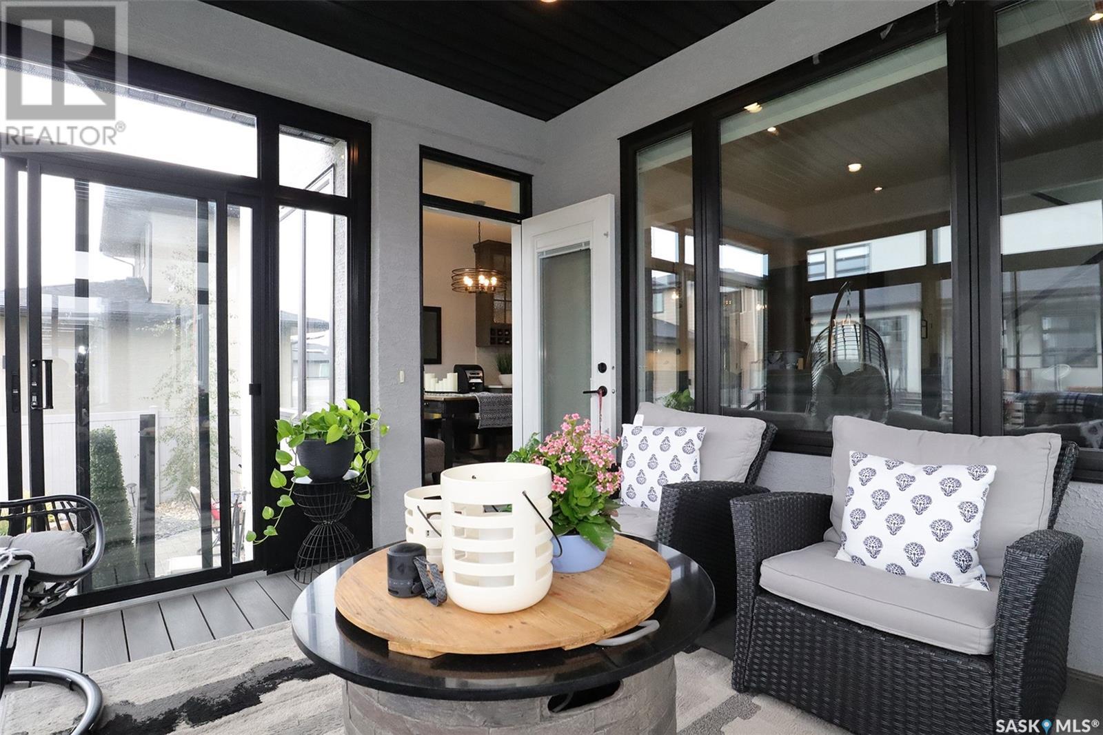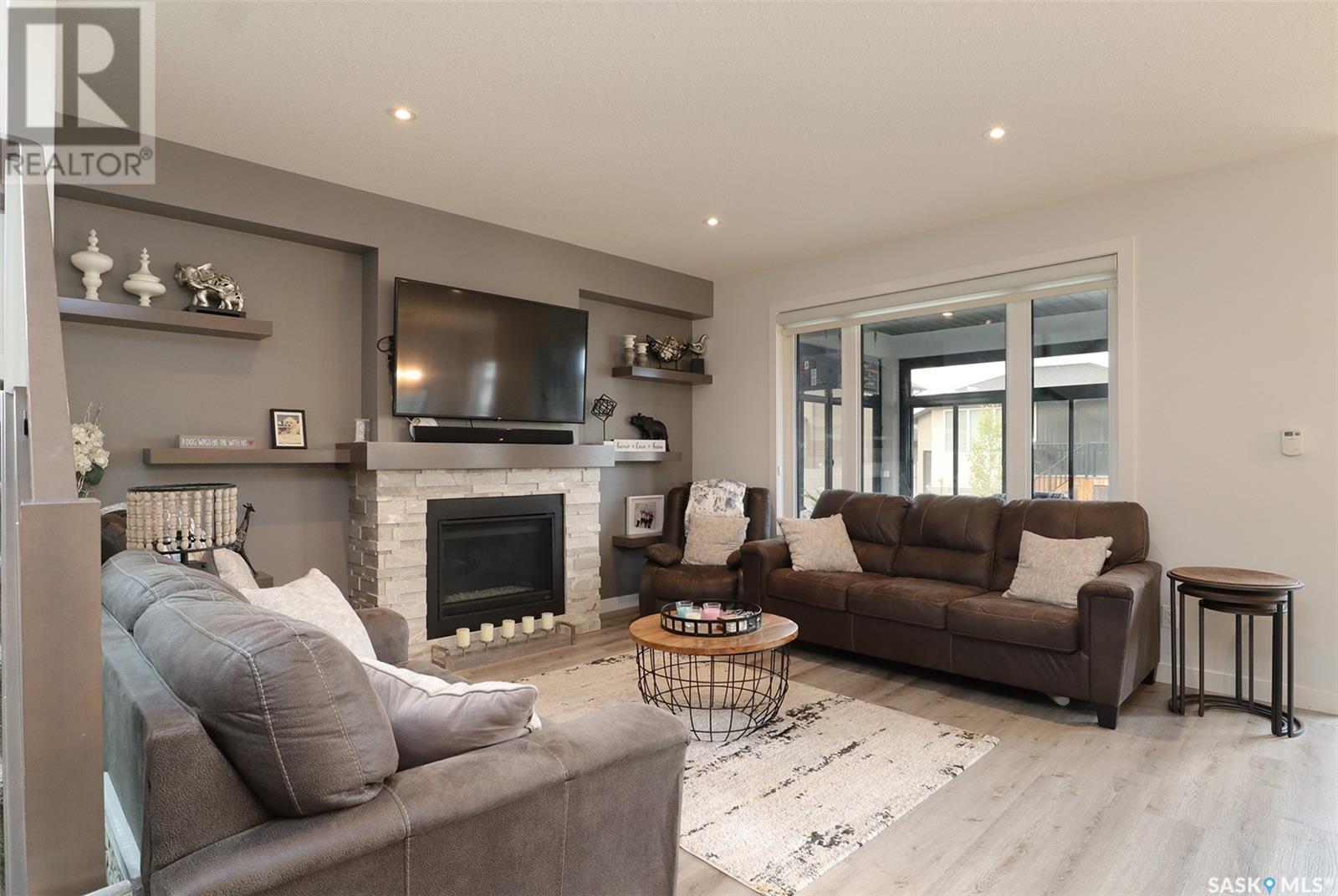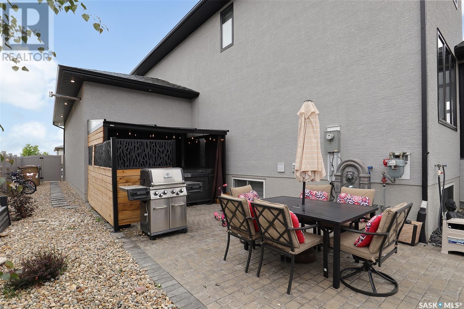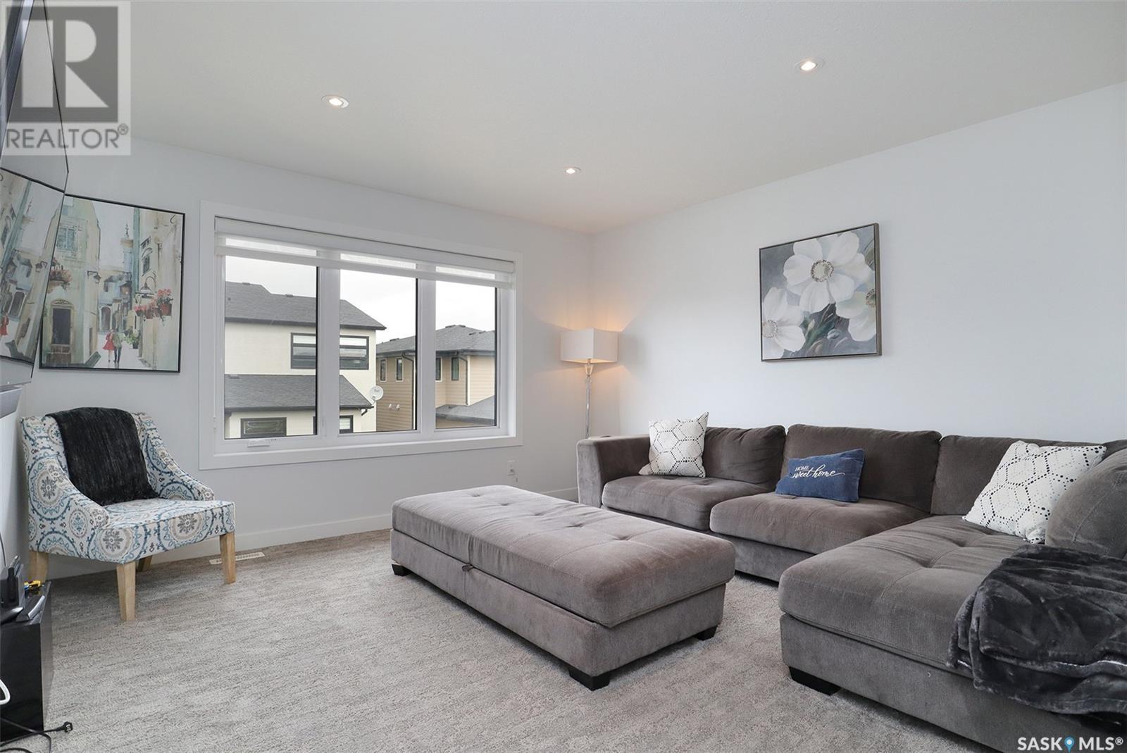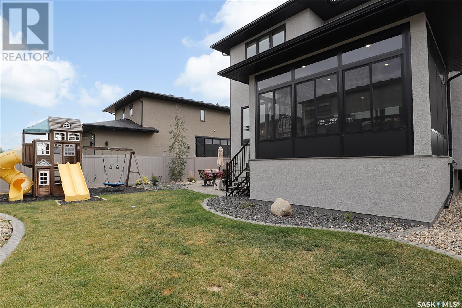 Welcome to 4308 Sage Drive located in Regina's prestigious area "The Creeks". This gorgeous custom built Fiorante home is loaded with high end features and loads of extras! Comfortable stylish luxury and a contemporary design perfect for families. Over 2200 sq ft boasting 5 bedrooms & 4 Baths. As you enter into the large foyer you are welcomed into this bright and beautiful stunning open concept floor plan. The main floor offers a see thru office in the front, 2 pc bath, mud room off the garage with laundry. Beautiful striking kitchen with upgraded stainless still appliances, Quartz counter tops with waterfall on the side of the island & back splash tile. Beautiful custom cabinets with flat doors, white interiors and adjustable shelves. Gas stove & hood fan, large corner pantry. Gorgeous corner dining area. The family room has a beautiful custom stone fireplace with shelving on either side. In addition to this space there is a 4 season sun room off the dining area, a wonderful calming space to sit back and relax. Upstairs there are 4 bedrooms, a large bonus room, beautiful master bedroom with a huge walk-in closet and spa like bathroom. The basement is totally finished with a large family room, bedroom and beautiful 3 pc bath, Large triple heated garage with rear door opening to a Pergola hot tub space and patio area for entertaining and cooking. Kids play structure included. This is a one owner home in immaculate condition with pride of ownership! Please call for your personal viewing today! (id:22211)