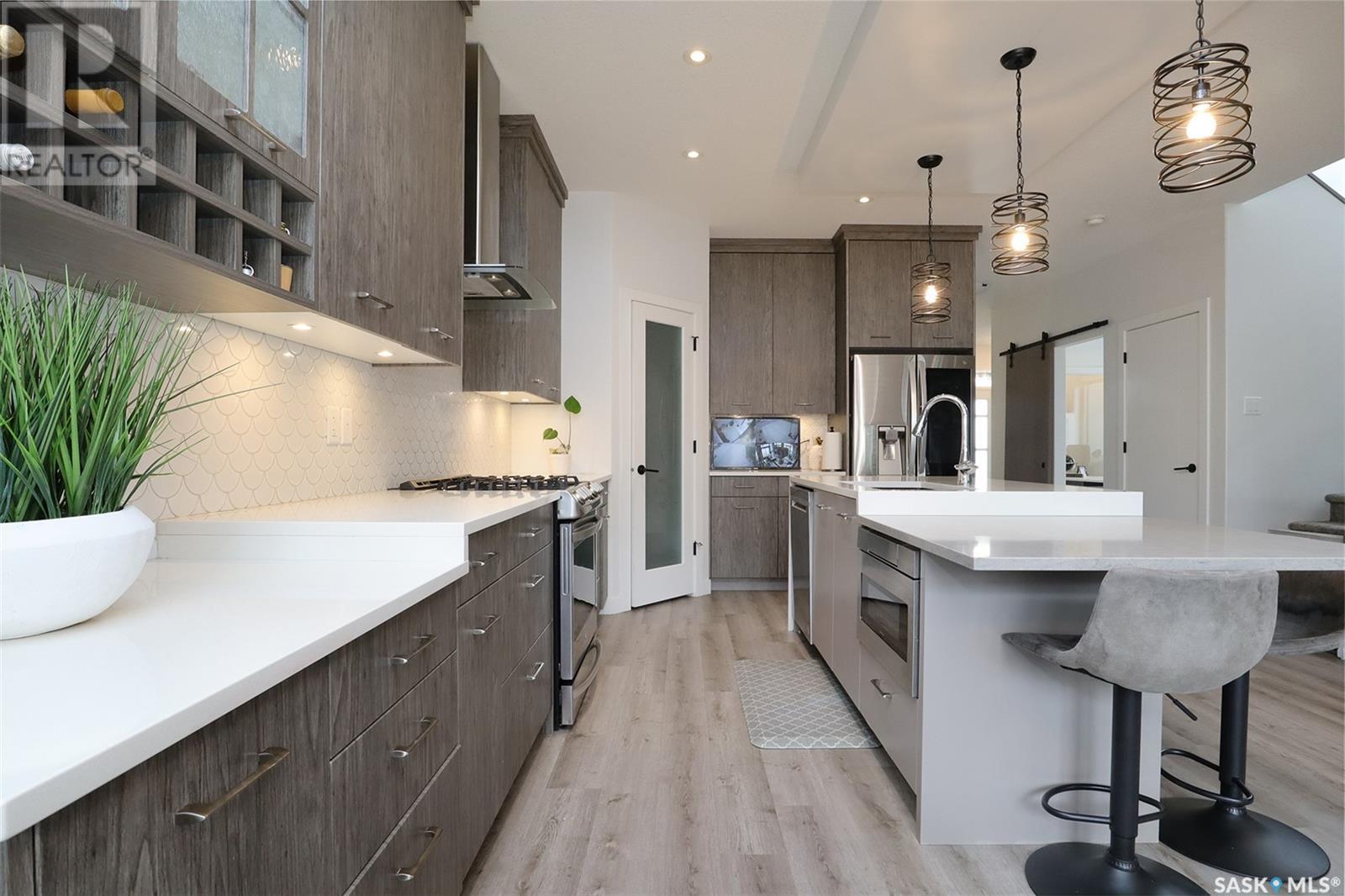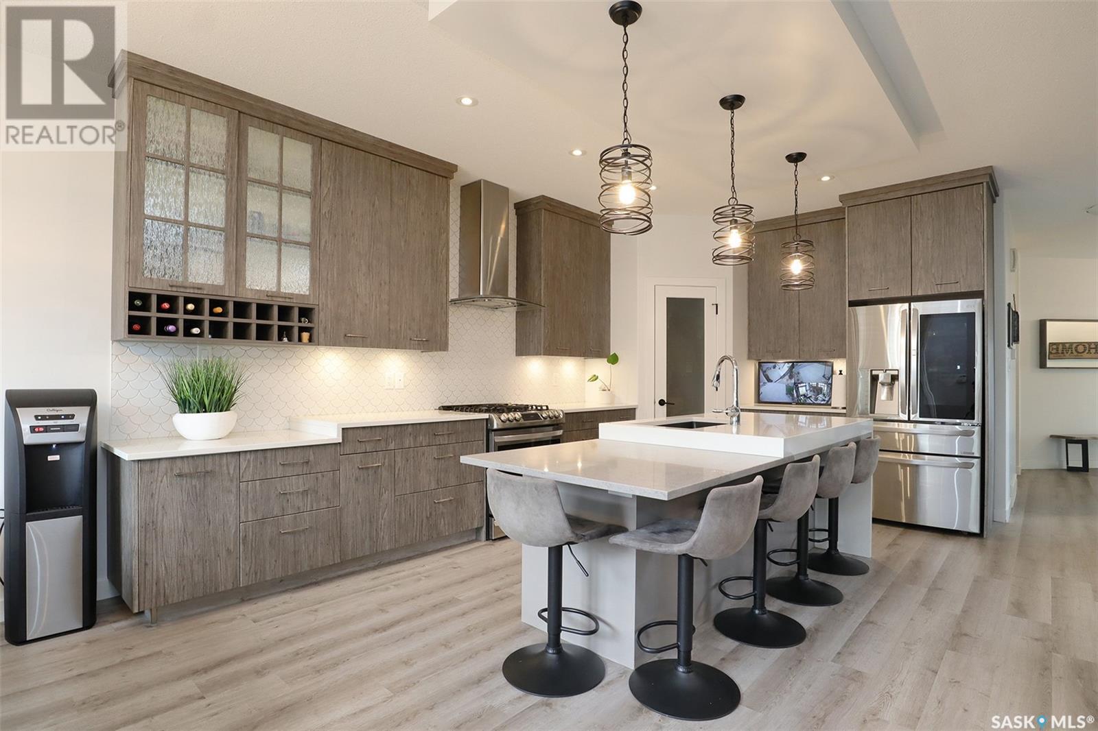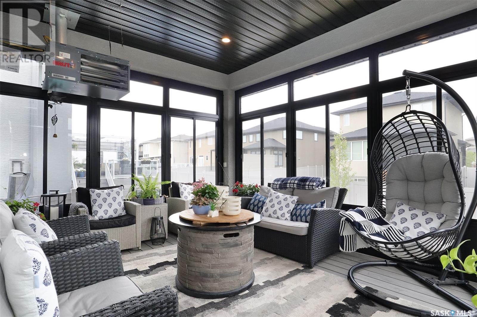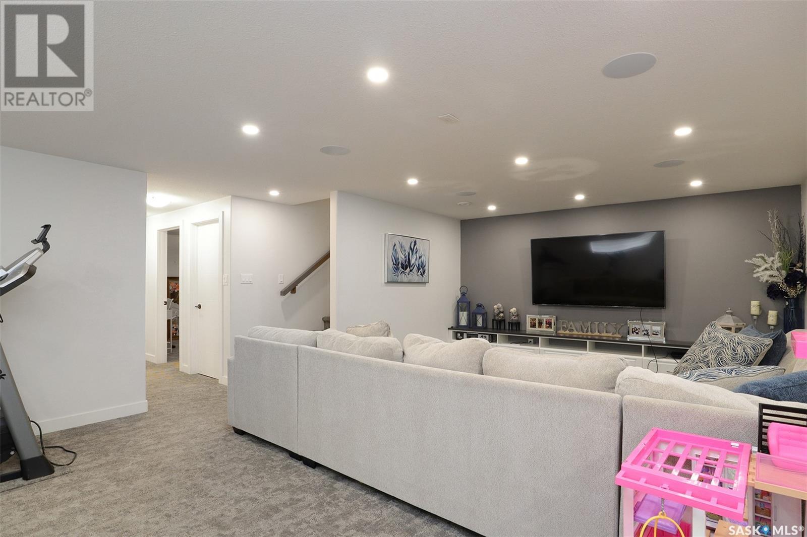 Welcome to 4308 Sage Drive located in Regina's prestigious area "The Creeks". This gorgeous custom built Fiorante home is loaded with high end features and loads of extras! Comfortable stylish luxury and a contemporary design perfect for families. Over 2200 sq ft boasting 5 bedrooms & 4 Baths. As you enter into the large foyer you are welcomed into this bright and beautiful stunning open concept floor plan. The main floor offers a see thru office in the front, 2 pc bath, mud room off the garage with laundry. Beautiful striking kitchen with upgraded stainless still appliances, Quartz counter tops with waterfall on the side of the island & back splash tile. Beautiful custom cabinets with flat doors, white interiors and adjustable shelves. Gas stove & hood fan, large corner pantry. Gorgeous corner dining area. The family room has a beautiful custom stone fireplace with shelving on either side. In addition to this space there is a 4 season sun room off the dining area, a wonderful calming space to sit back and relax. Upstairs there are 4 bedrooms, a large bonus room, beautiful master bedroom with a huge walk-in closet and spa like bathroom. The basement is totally finished with a large family room, bedroom and beautiful 3 pc bath, Large triple heated garage with rear door opening to a Pergola hot tub space and patio area for entertaining and cooking. Kids play structure included. This is a one owner home in immaculate condition with pride of ownership! Please call for your personal viewing today! (id:22211)