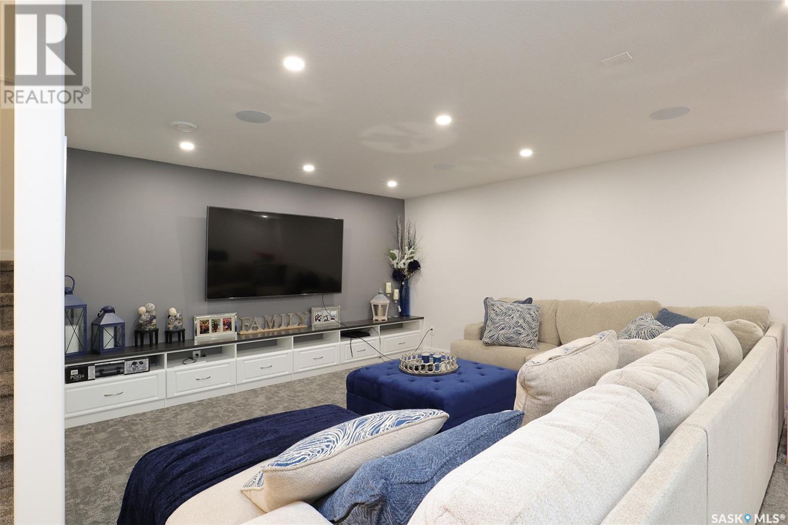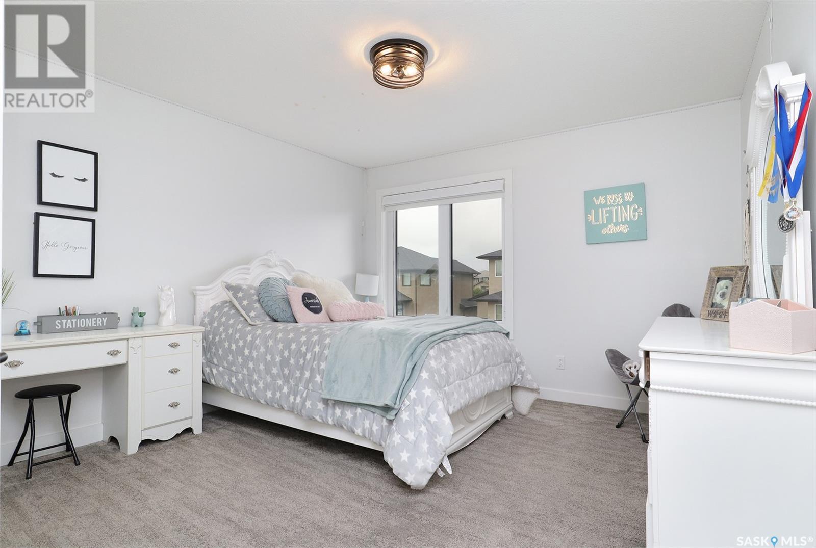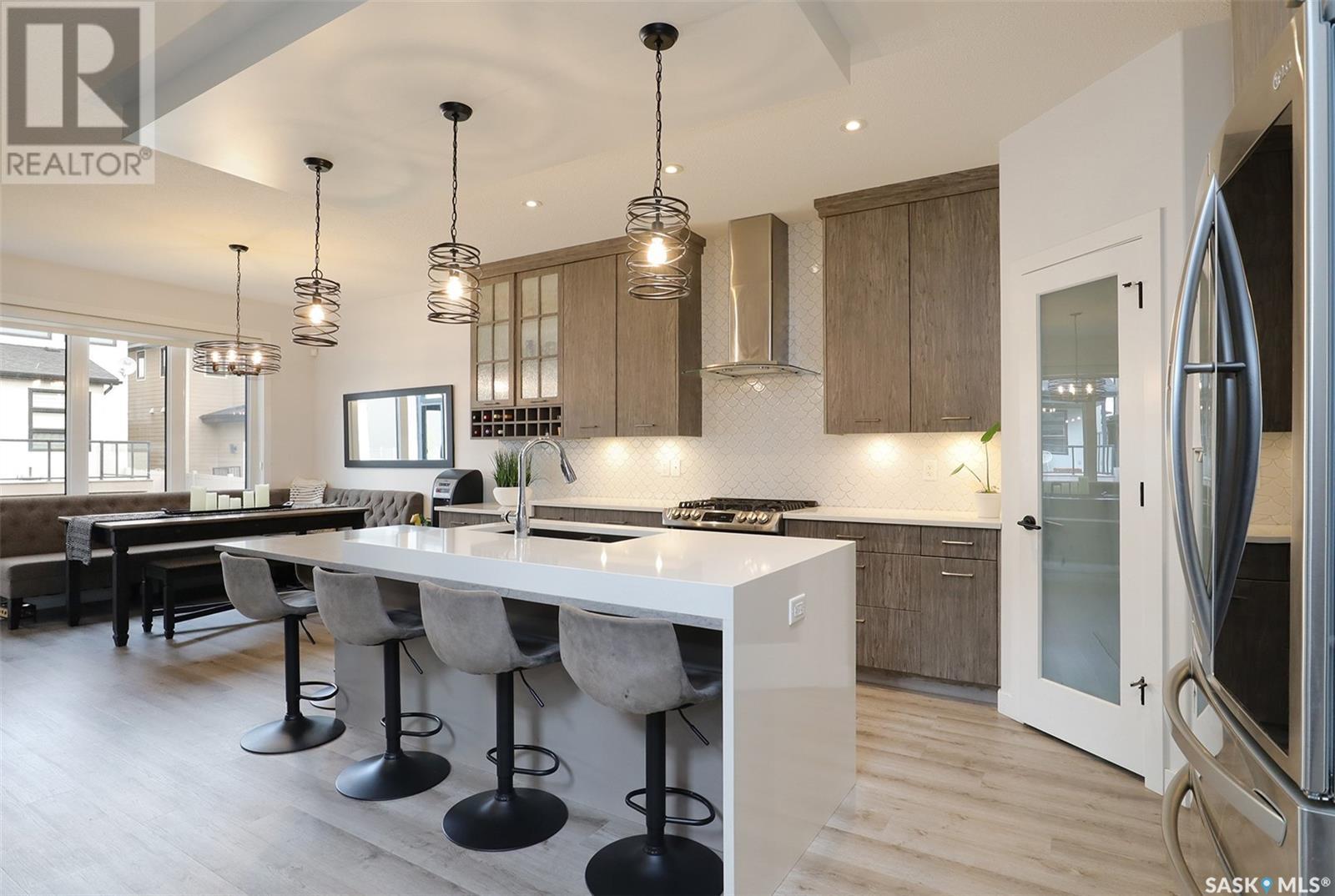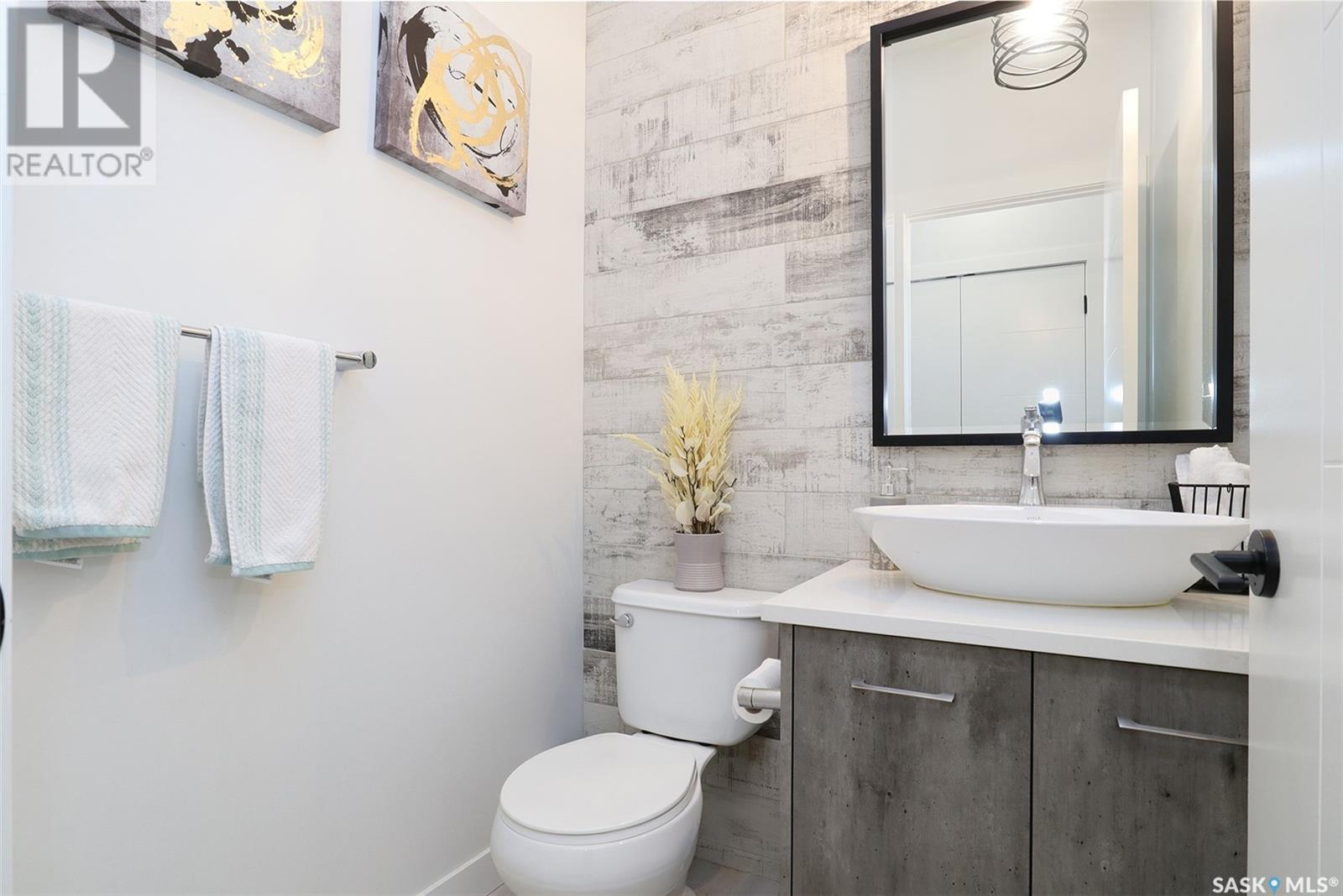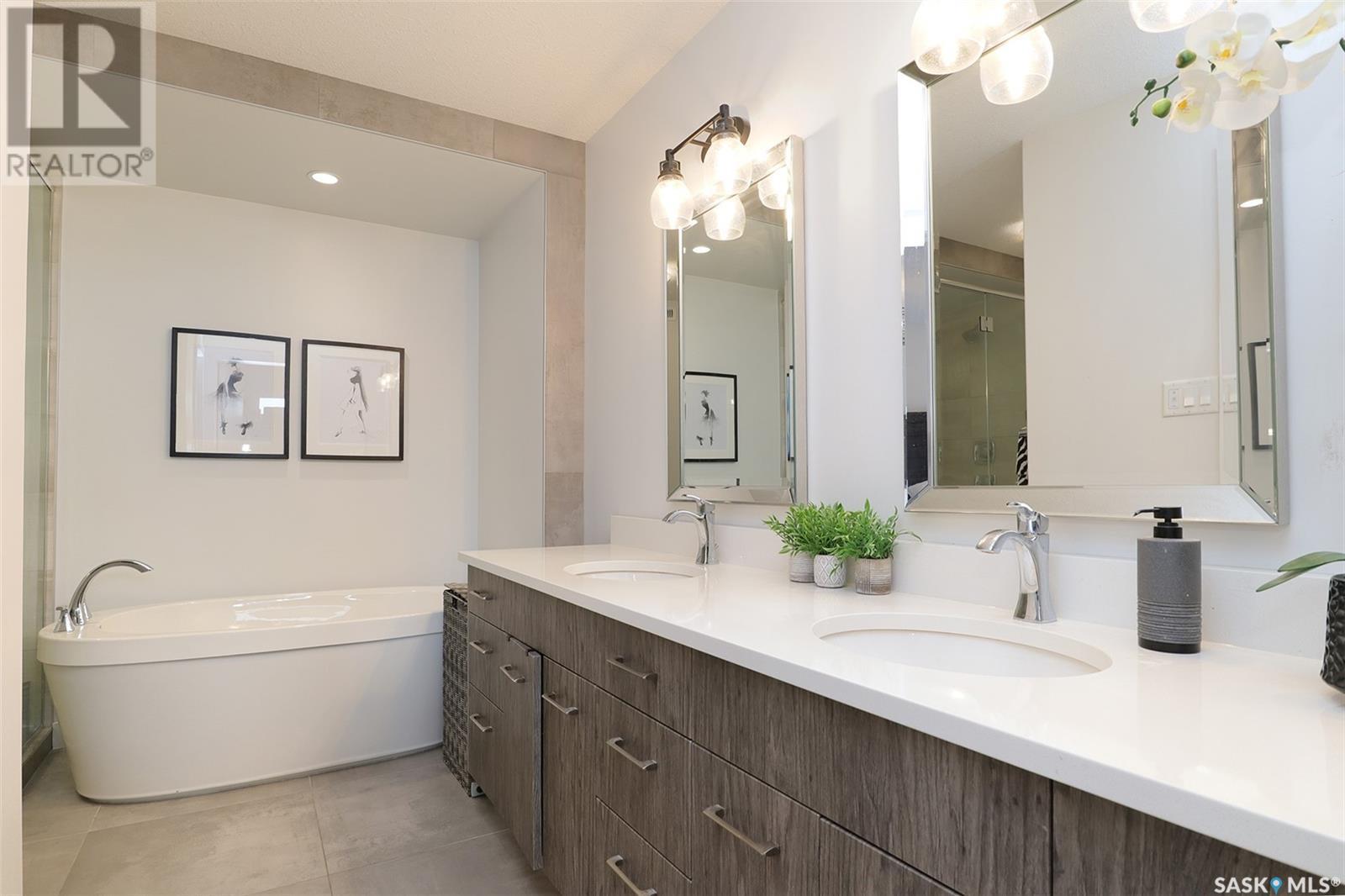 Welcome to 4308 Sage Drive located in Regina's prestigious area "The Creeks". This gorgeous custom built Fiorante home is loaded with high end features and loads of extras! Comfortable stylish luxury and a contemporary design perfect for families. Over 2200 sq ft boasting 5 bedrooms & 4 Baths. As you enter into the large foyer you are welcomed into this bright and beautiful stunning open concept floor plan. The main floor offers a see thru office in the front, 2 pc bath, mud room off the garage with laundry. Beautiful striking kitchen with upgraded stainless still appliances, Quartz counter tops with waterfall on the side of the island & back splash tile. Beautiful custom cabinets with flat doors, white interiors and adjustable shelves. Gas stove & hood fan, large corner pantry. Gorgeous corner dining area. The family room has a beautiful custom stone fireplace with shelving on either side. In addition to this space there is a 4 season sun room off the dining area, a wonderful calming space to sit back and relax. Upstairs there are 4 bedrooms, a large bonus room, beautiful master bedroom with a huge walk-in closet and spa like bathroom. The basement is totally finished with a large family room, bedroom and beautiful 3 pc bath, Large triple heated garage with rear door opening to a Pergola hot tub space and patio area for entertaining and cooking. Kids play structure included. This is a one owner home in immaculate condition with pride of ownership! Please call for your personal viewing today! (id:22211)
