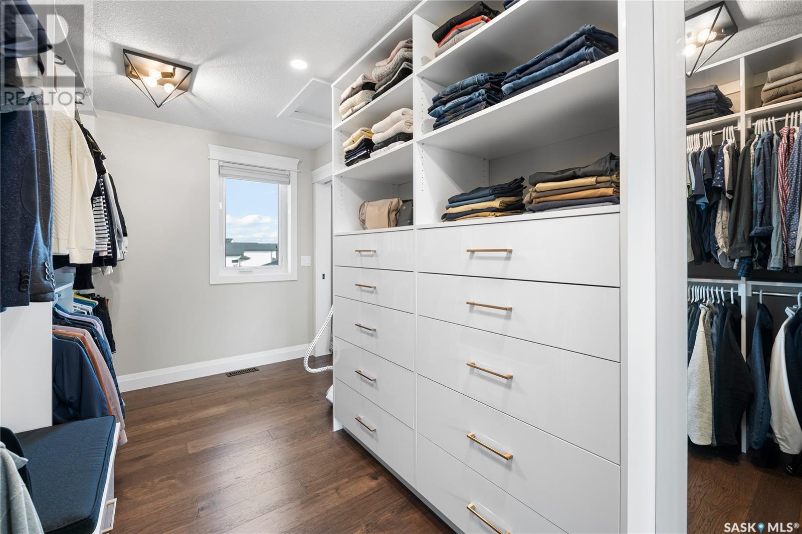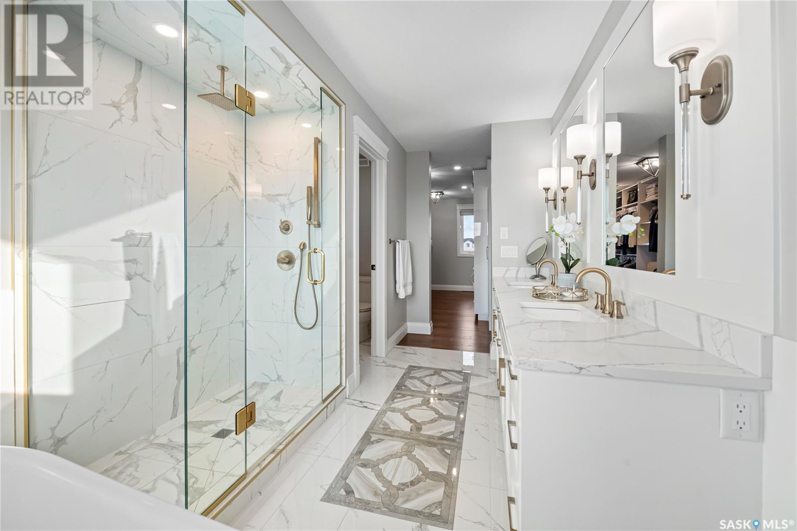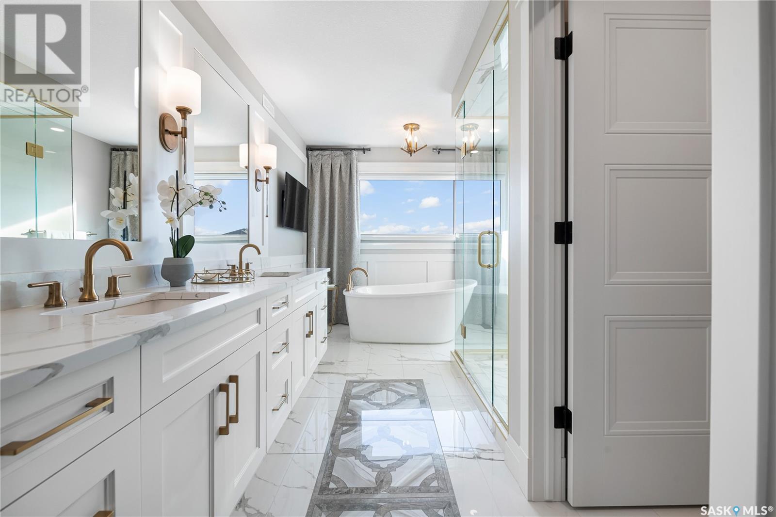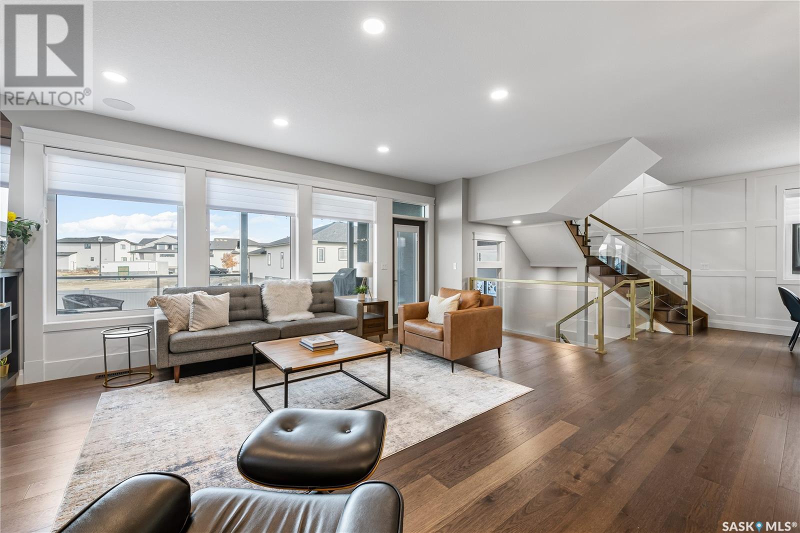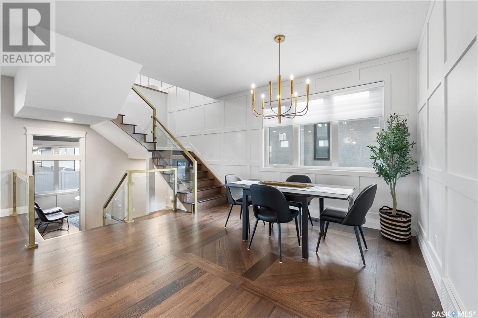 Welcome to 4527 Chuka Drive, an exquisite living experience featuring 4 bedrooms, 4 bathrooms, and so much more! Crafted by Ripplinger Homes, this home is a masterpiece of design and functionality. Nestled in the beautiful neighborhood of The Creeks, close to walking paths, parks, schools, and many other east end amenities! As you enter this home, you will notice the stunning engineered hardwood flooring that graces the entire main floor, providing both beauty and durability. The two-toned cabinetry in the kitchen, complemented by elegant gold hardware, creates a sense of timeless sophistication. The use of quartz countertops further enhances the luxurious feel of the space. For those who love to entertain, the butler's pantry is a dream come true, offering ample storage and preparation space. The high-end finishes throughout the property showcase a commitment to quality and attention to detail, making every corner a testament to exceptional craftsmanship. The open concept main living space allows for flawless family time or the perfect space for entertaining family and friends. Moving up to the primary bedroom you will find a spacious luxury suite, walk-in closet and true spa-like en-suite. 2 additional bedrooms complete the second level. The basement is fully finished with a recreation room, play room, 4 piece bathroom, and bedroom. There is an immaculate double attached heated garage with extra storage, as well as the beautifully landscaped yard and fully fenced backyard. This home is a must see! Contact the listing agent today for more information or for your private viewing. (id:22211)