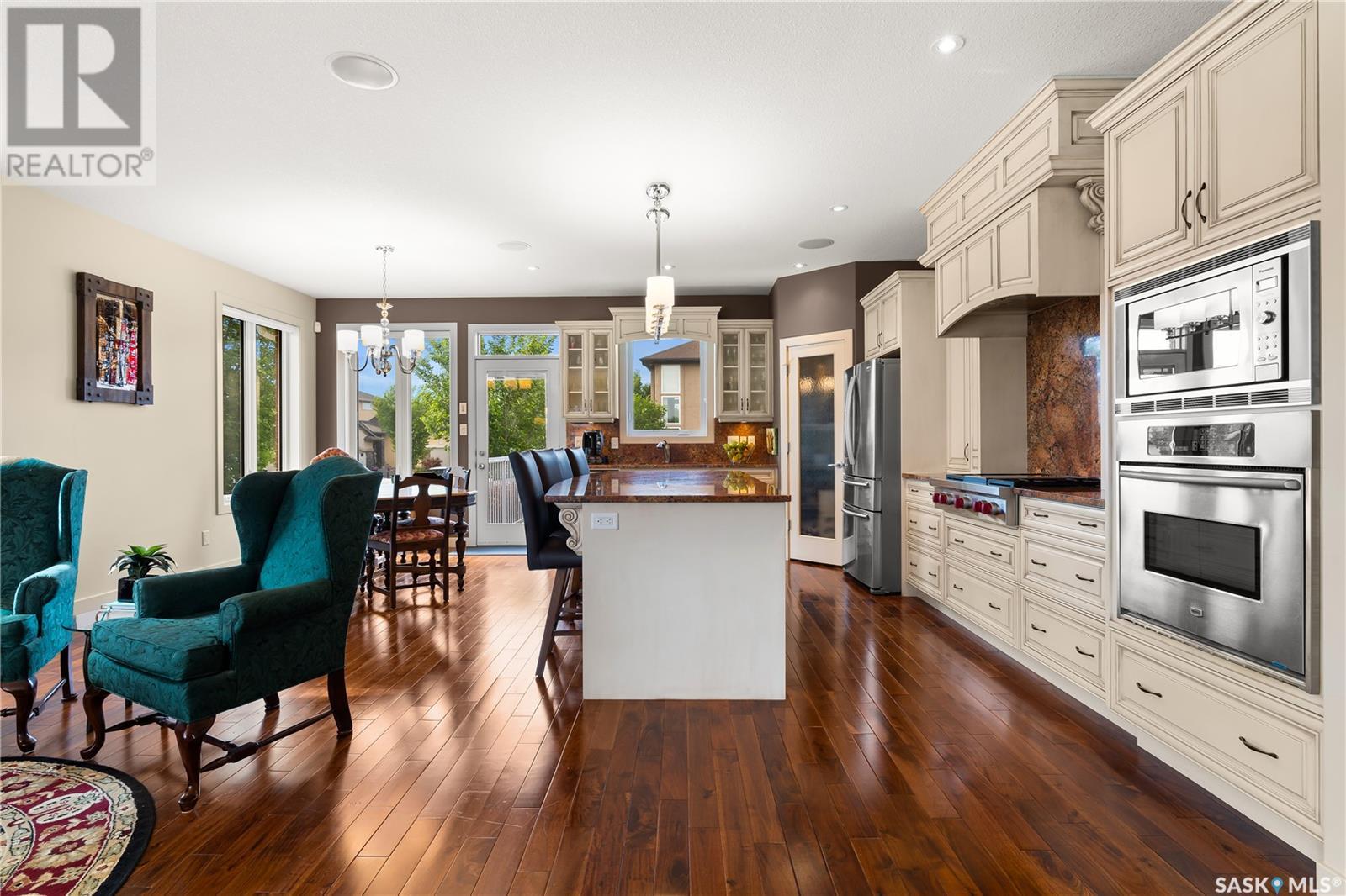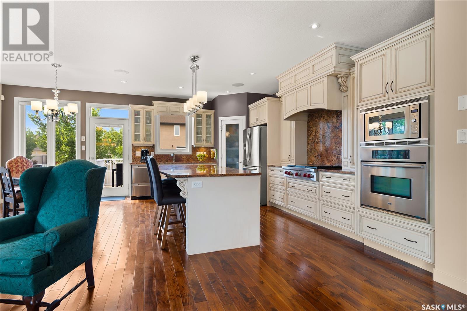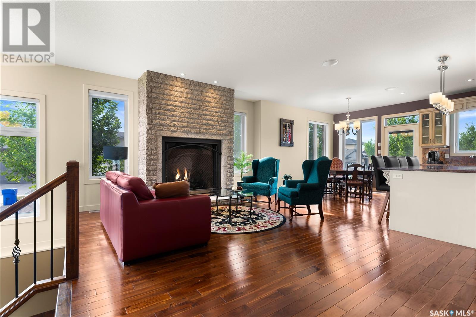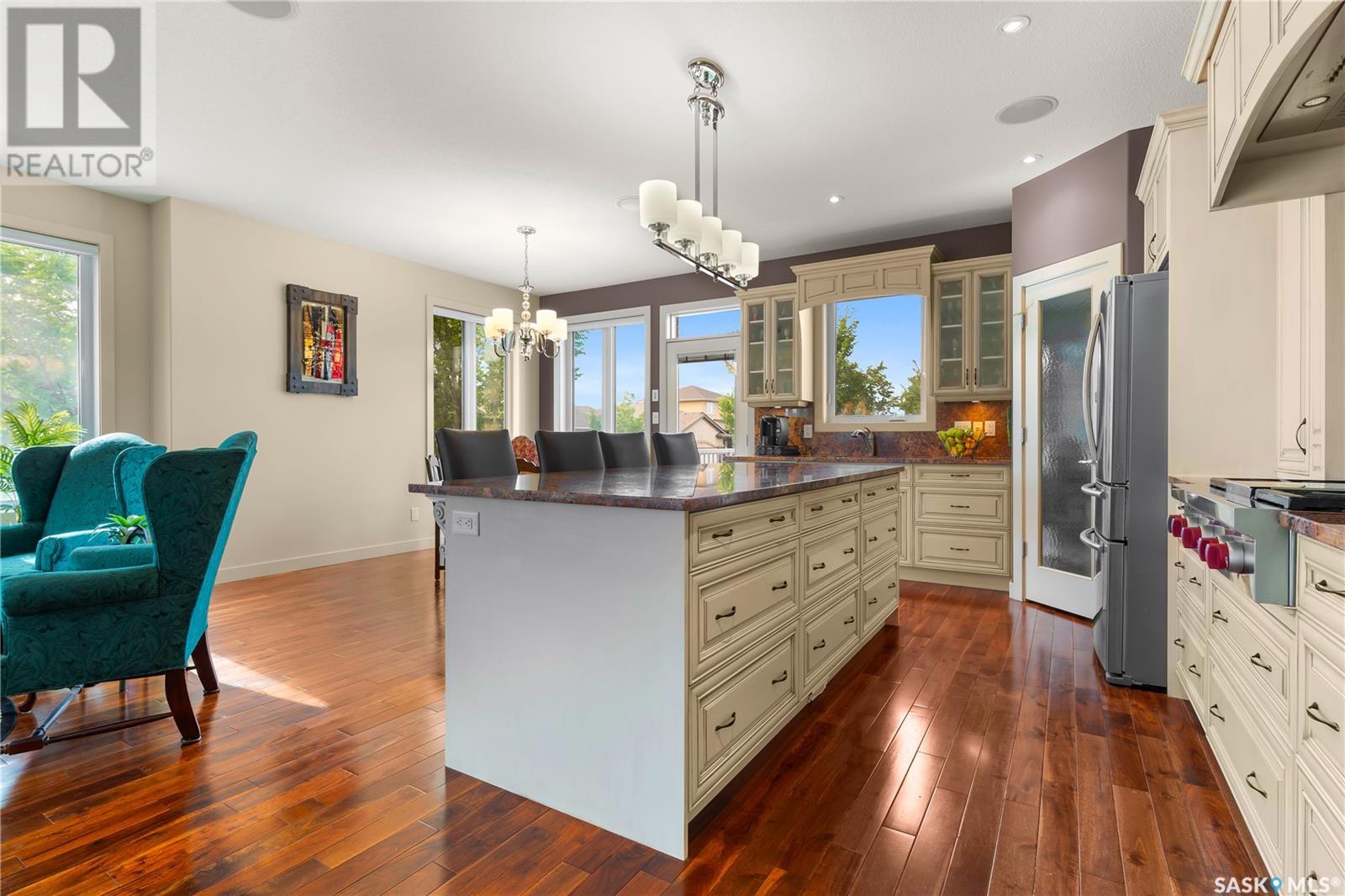 A rare opportunity to own a custom executive home in The Creeks built by Fiorante with all the bells and whistles! Stunning street appeal with a circular aggregate concrete driveway to the 1835 sq ft bungalow with a triple finished garage & oversized 8 ft front doors with Kocom intercom system & camera. Upon entry the spacious foyer gives you the first glimpse of this amazing home. The open plan of the kitchen, living room, & dining room is beautiful with tropical hardwood floors flowing throughout the space. The floor to ceiling Tyndall stone fireplace has one piece of polished Tyndall stone hearth and a unique 49x49 napoleon gas fire. The kitchen has antiqued cabinets, a huge island, granite countertops & backsplash, Wolf stove top, Fisher & Paykel dishwasher, & corner pantry. The dining area has a garden door leading to the Trex deck with aluminum railing and a beautifully landscaped yard with PVC fencing. There are 3 bedrooms up; the 2nd and 3rd bedrooms have been professionally converted into a walk-in dressing room and study which can easily be converted back to 2 bedrooms if desired. The primary bedroom has an impressive ensuite that includes a deep soaker tub with colored mood lighting, dual vanities, granite countertops, 5 ft custom tile & glass shower with river rock base, toilet & bidet. The walk in closet is conveniently located off the ensuite. The laundry room has an abundance of storage & leads to the triple car garage that is insulated, dry walled and painted. Control panels for audio are located in each room & there is a 6 zone multiple audio system, docking stations & the basement has an impressive 7.1 system. Down to the basement that was professionally finished by the builder, is a huge rec room, a phenomenal sound system, massive under stair storage, 2 further bedrooms, a large bathroom & a Texas sized mechanical room with HRV system. House was built on piles, upgraded Richardson’s lighting, Regina Drapery blinds throughout. (id:22211)