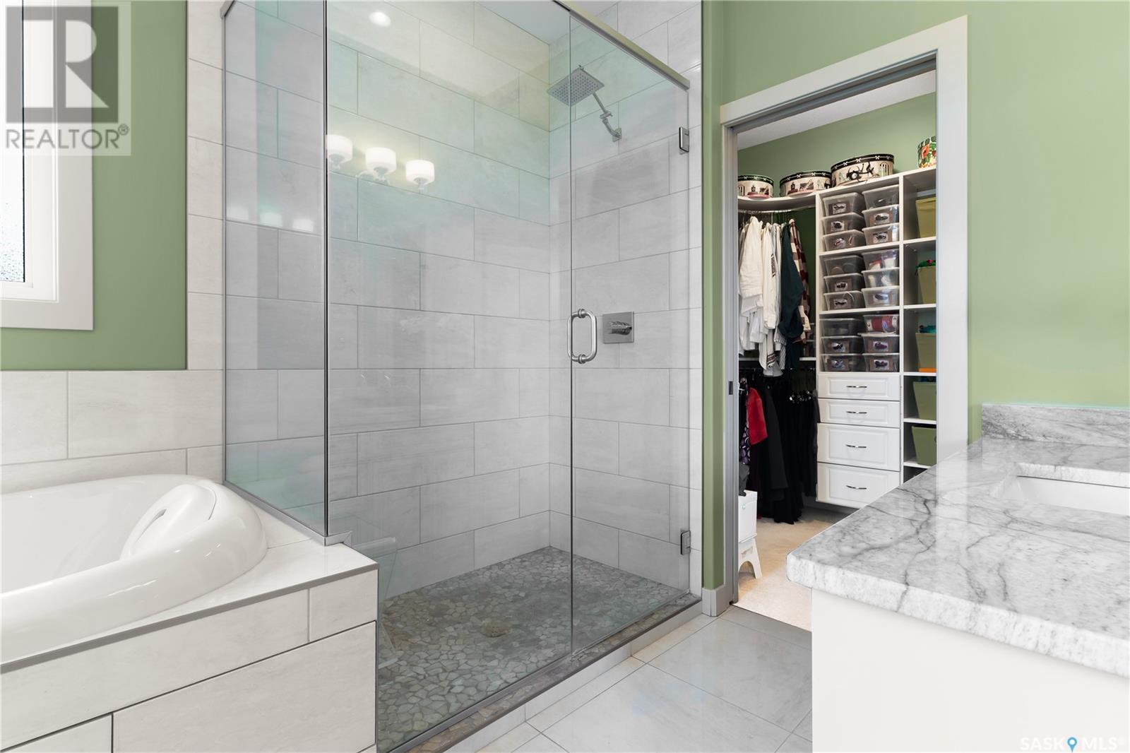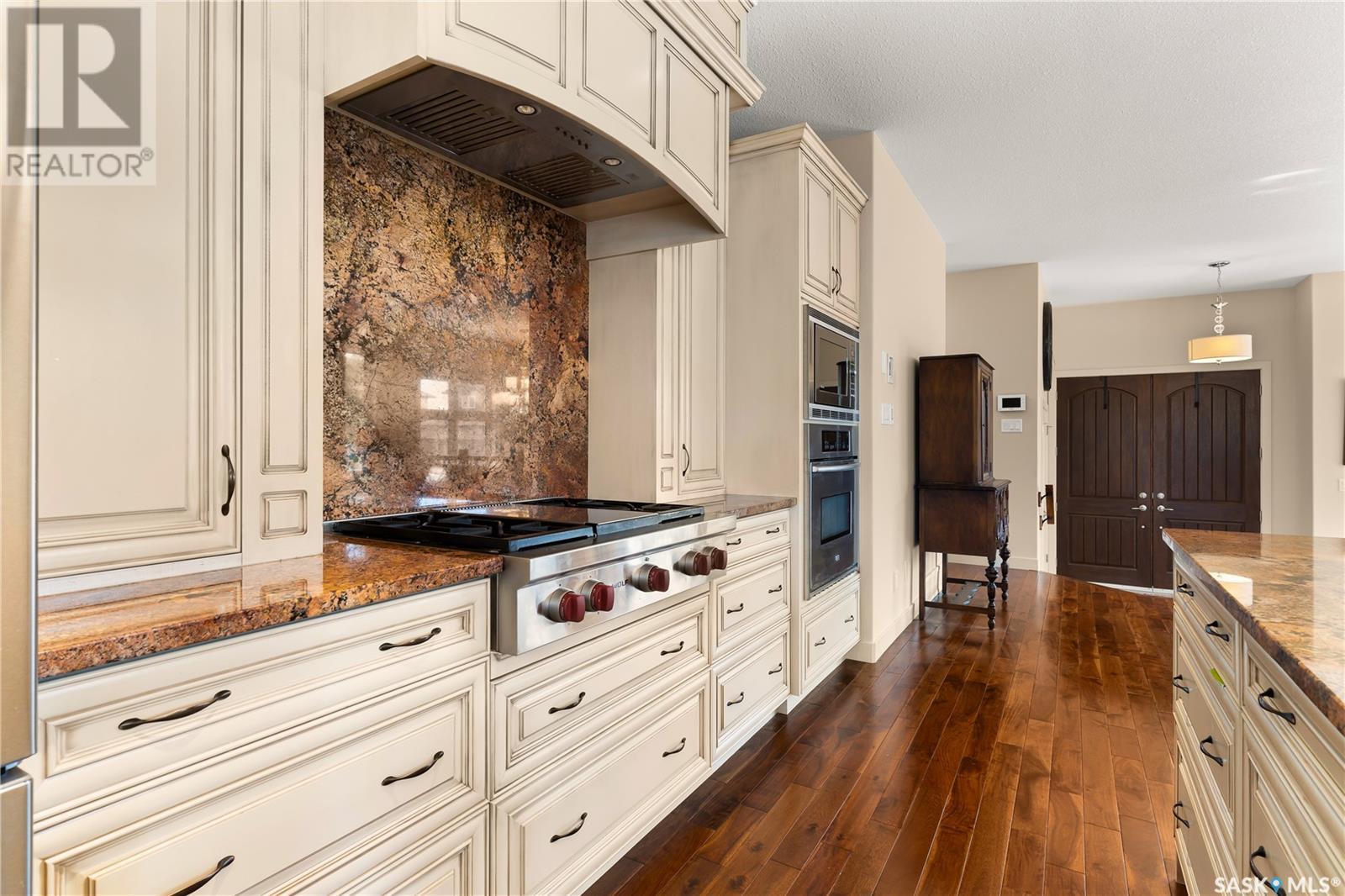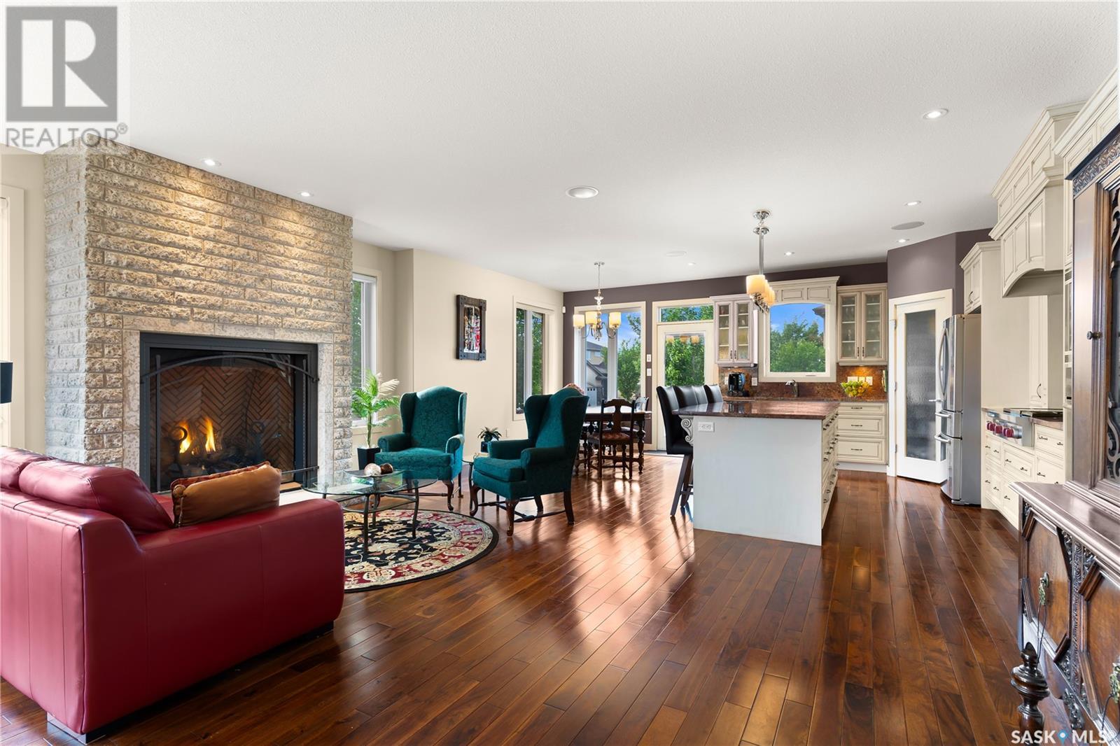 A rare opportunity to own a custom executive home in The Creeks built by Fiorante with all the bells and whistles! Stunning street appeal with a circular aggregate concrete driveway to the 1835 sq ft bungalow with a triple finished garage & oversized 8 ft front doors with Kocom intercom system & camera. Upon entry the spacious foyer gives you the first glimpse of this amazing home. The open plan of the kitchen, living room, & dining room is beautiful with tropical hardwood floors flowing throughout the space. The floor to ceiling Tyndall stone fireplace has one piece of polished Tyndall stone hearth and a unique 49x49 napoleon gas fire. The kitchen has antiqued cabinets, a huge island, granite countertops & backsplash, Wolf stove top, Fisher & Paykel dishwasher, & corner pantry. The dining area has a garden door leading to the Trex deck with aluminum railing and a beautifully landscaped yard with PVC fencing. There are 3 bedrooms up; the 2nd and 3rd bedrooms have been professionally converted into a walk-in dressing room and study which can easily be converted back to 2 bedrooms if desired. The primary bedroom has an impressive ensuite that includes a deep soaker tub with colored mood lighting, dual vanities, granite countertops, 5 ft custom tile & glass shower with river rock base, toilet & bidet. The walk in closet is conveniently located off the ensuite. The laundry room has an abundance of storage & leads to the triple car garage that is insulated, dry walled and painted. Control panels for audio are located in each room & there is a 6 zone multiple audio system, docking stations & the basement has an impressive 7.1 system. Down to the basement that was professionally finished by the builder, is a huge rec room, a phenomenal sound system, massive under stair storage, 2 further bedrooms, a large bathroom & a Texas sized mechanical room with HRV system. House was built on piles, upgraded Richardson’s lighting, Regina Drapery blinds throughout. (id:22211)