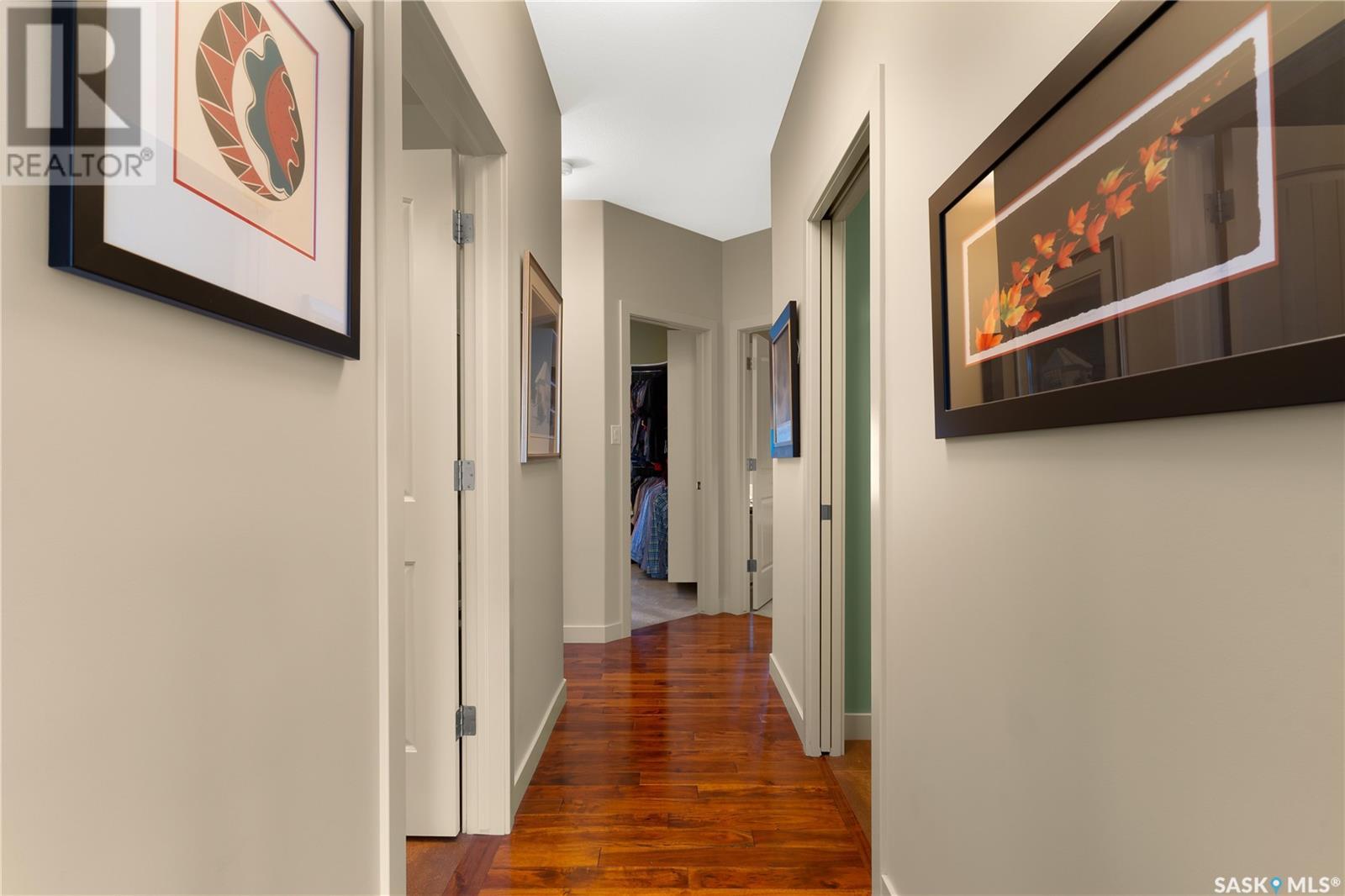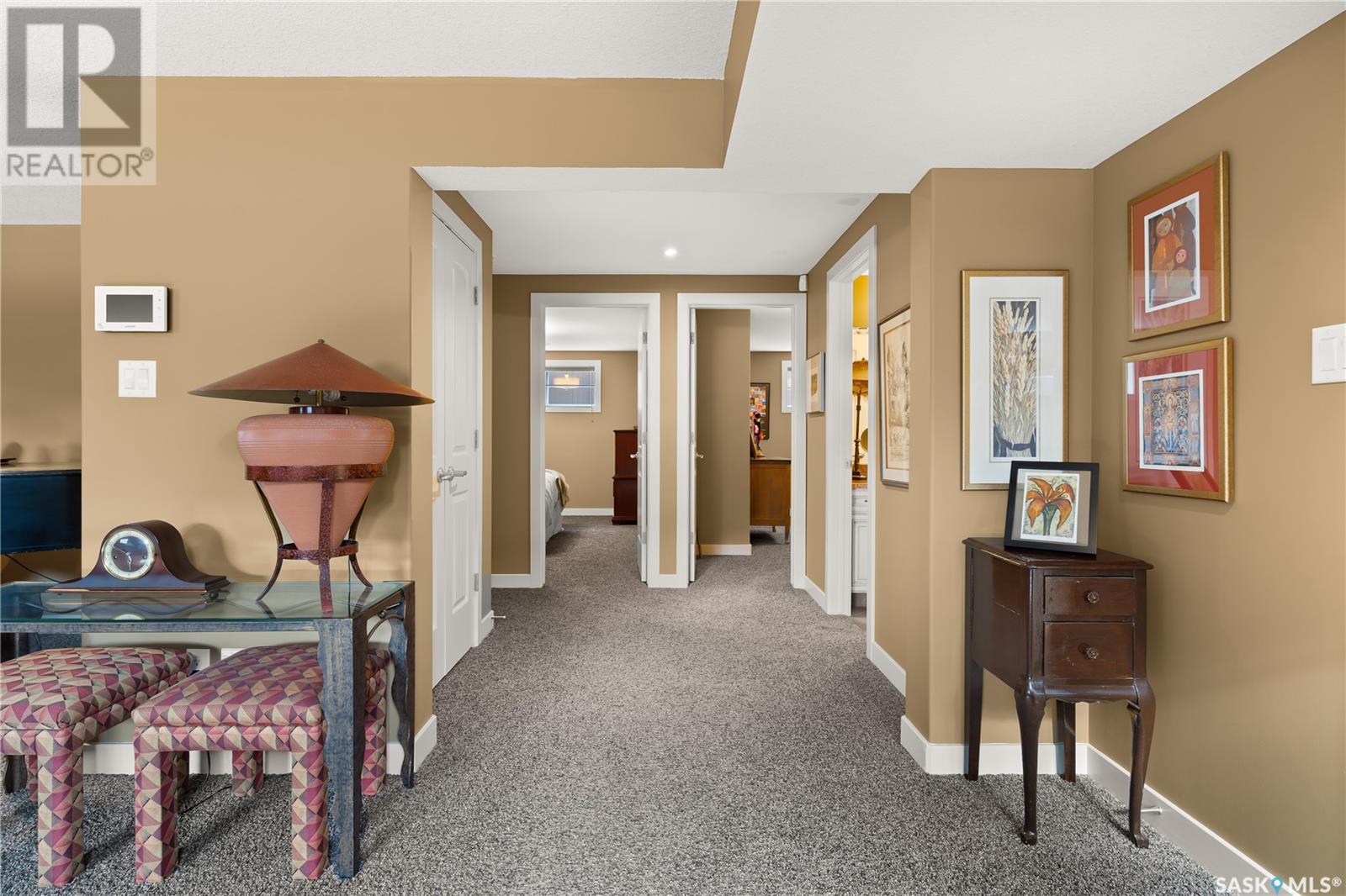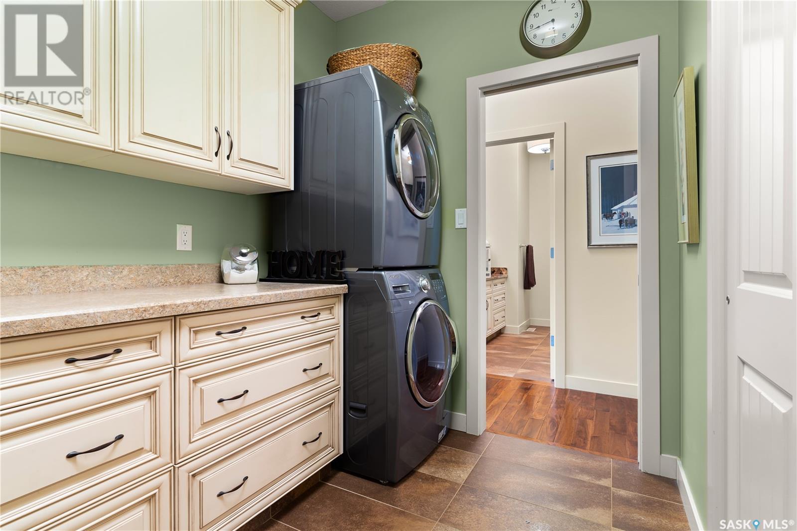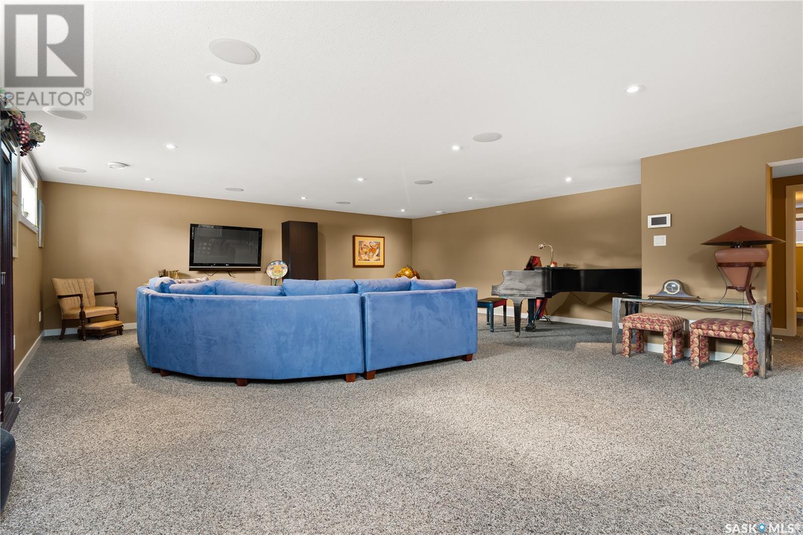 A rare opportunity to own a custom executive home in The Creeks built by Fiorante with all the bells and whistles! Stunning street appeal with a circular aggregate concrete driveway to the 1835 sq ft bungalow with a triple finished garage & oversized 8 ft front doors with Kocom intercom system & camera. Upon entry the spacious foyer gives you the first glimpse of this amazing home. The open plan of the kitchen, living room, & dining room is beautiful with tropical hardwood floors flowing throughout the space. The floor to ceiling Tyndall stone fireplace has one piece of polished Tyndall stone hearth and a unique 49x49 napoleon gas fire. The kitchen has antiqued cabinets, a huge island, granite countertops & backsplash, Wolf stove top, Fisher & Paykel dishwasher, & corner pantry. The dining area has a garden door leading to the Trex deck with aluminum railing and a beautifully landscaped yard with PVC fencing. There are 3 bedrooms up; the 2nd and 3rd bedrooms have been professionally converted into a walk-in dressing room and study which can easily be converted back to 2 bedrooms if desired. The primary bedroom has an impressive ensuite that includes a deep soaker tub with colored mood lighting, dual vanities, granite countertops, 5 ft custom tile & glass shower with river rock base, toilet & bidet. The walk in closet is conveniently located off the ensuite. The laundry room has an abundance of storage & leads to the triple car garage that is insulated, dry walled and painted. Control panels for audio are located in each room & there is a 6 zone multiple audio system, docking stations & the basement has an impressive 7.1 system. Down to the basement that was professionally finished by the builder, is a huge rec room, a phenomenal sound system, massive under stair storage, 2 further bedrooms, a large bathroom & a Texas sized mechanical room with HRV system. House was built on piles, upgraded Richardson’s lighting, Regina Drapery blinds throughout. (id:22211)