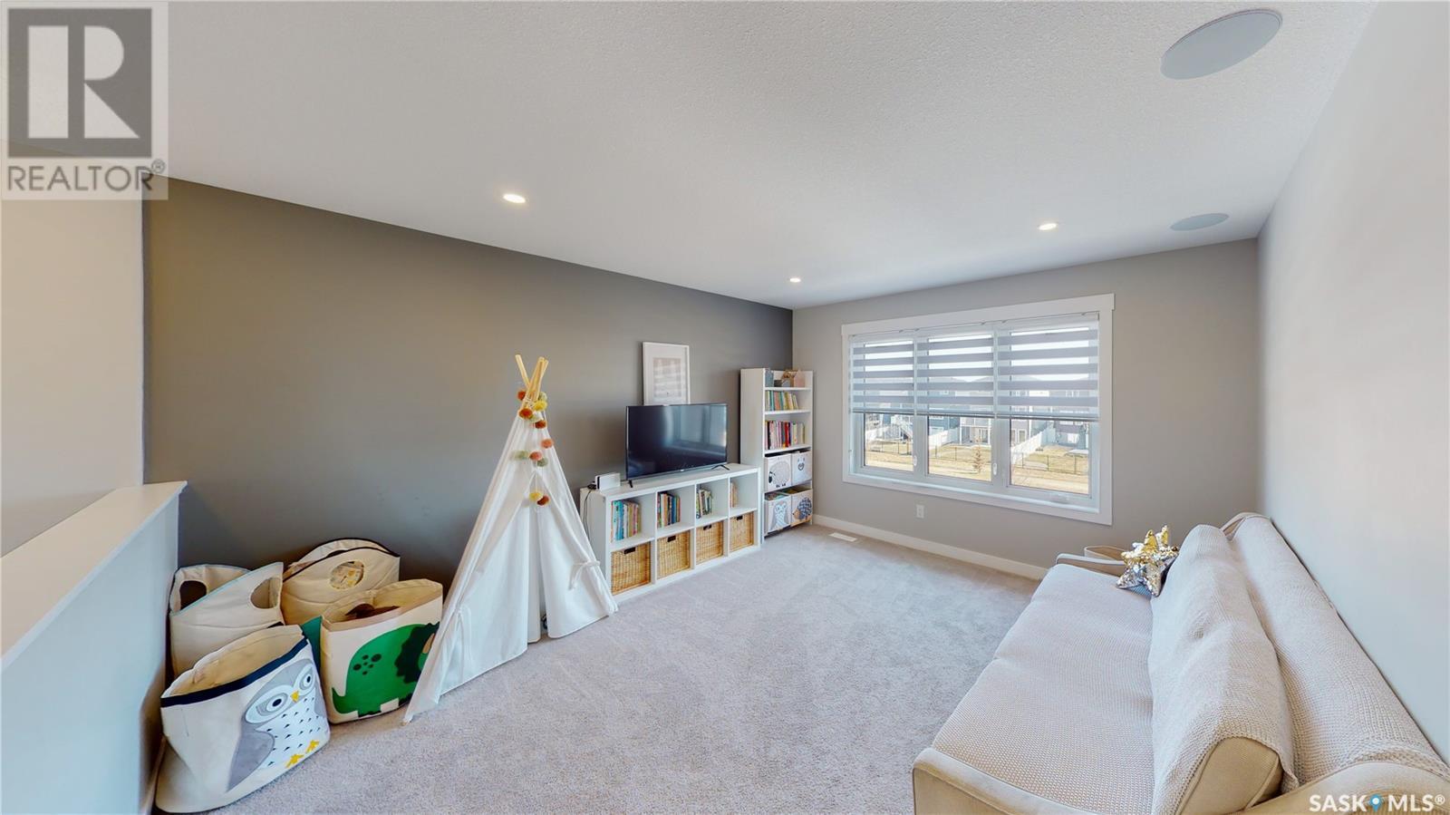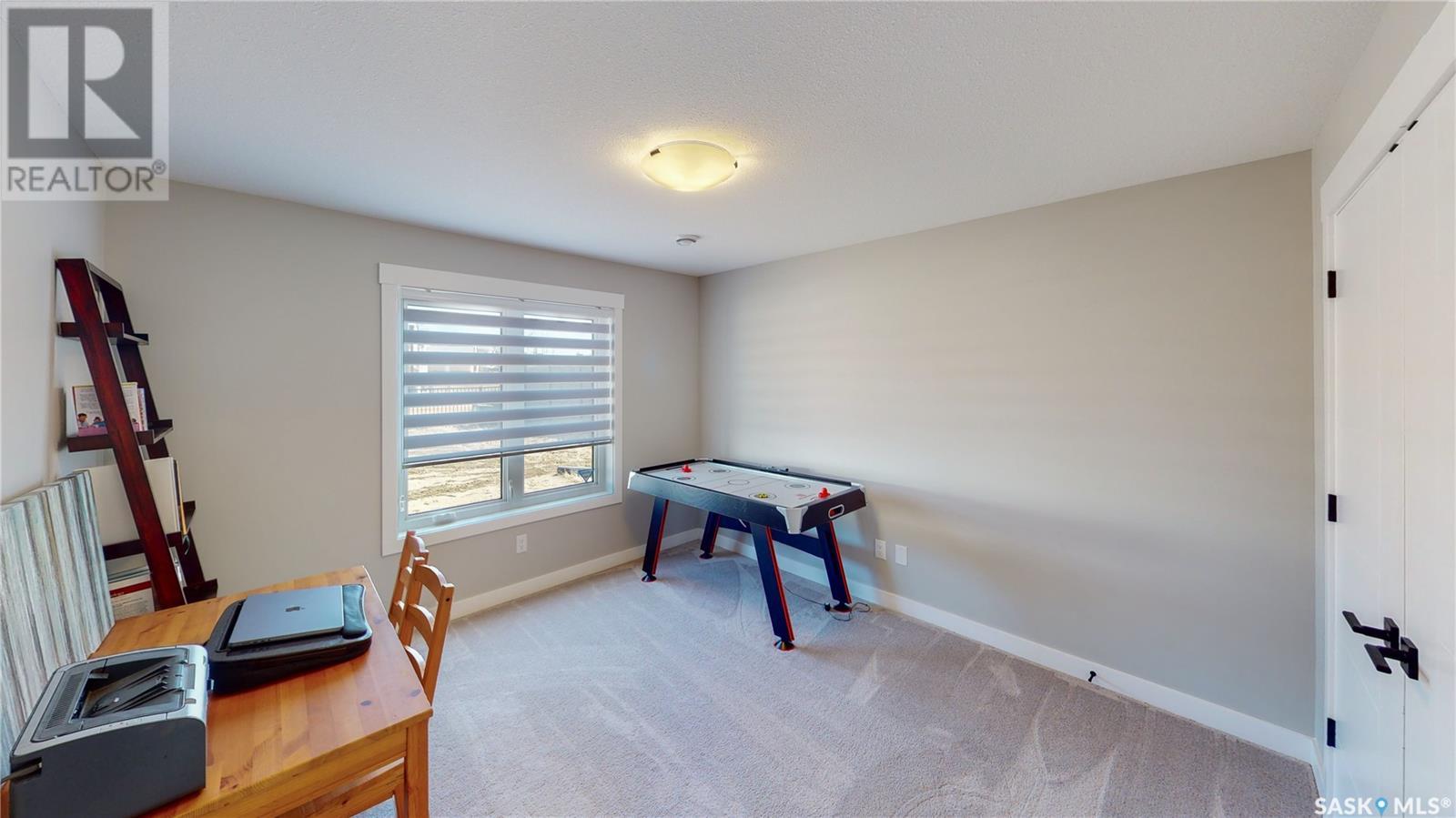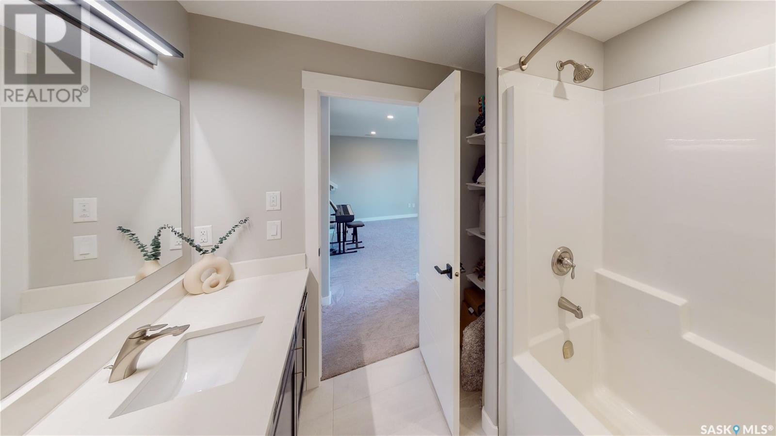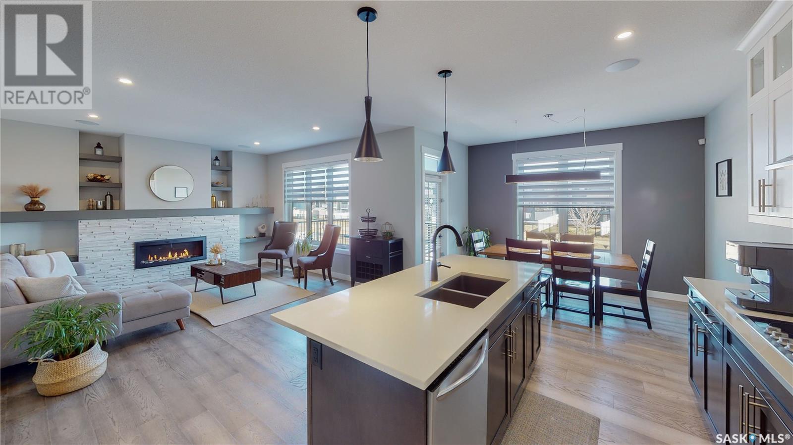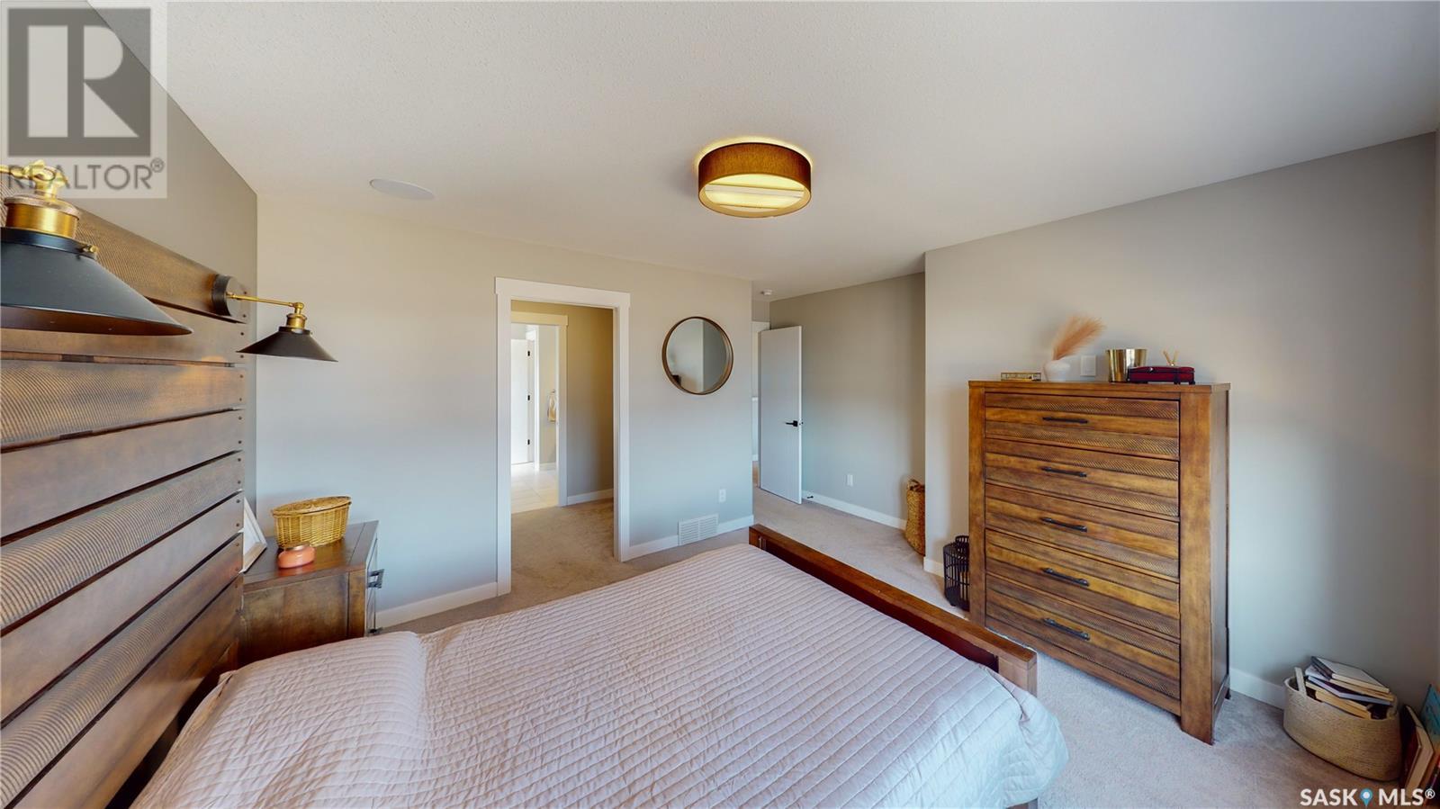 Looking for a beautifully crafted walk-out two-story home backing a walking path? Welcome to 4846 Greenview Cres E. in the very desirable neighborhood of the Greens On Gardiner. This Deveraux home built in 2018 generously offers 1918 sq ft (plus the basement) & is overflowing with space, warm natural light from the east exposure, & offers 5 bedrooms, 4 bathrooms, a bonus room, an oversized dbe garage & more! Upon entry, the foyer welcomes you into a large living room where a gas fireplace w’ stacked stone highlights a beautiful mantle, modern shelving & spacious design paired with the h-wood flooring. The area naturally opens to a lovely dining area with access to the patio. The kitchen offers quartz counters, upgraded cabinets, plenty of counter space, an eat-up island, & a walk-thru pantry that leads to a tiled mudroom w’ built-in cabinets (direct entry to garage). Completing the main floor is a 2 pc bath. Heading upstairs, the bonus room is such a versatile room – make it a playroom, a den, or simply stated - another sitting area to relax as you enjoy the beautiful sunshine. The primary bedroom is wonderfully designed with a walk thru closet leading to a spa-like ensuite with a soaker tub, shower, double quartz vanity & tiled flooring. Two additional bedrooms, another tiled full bath & an upstairs laundry room complete the 2nd level. The walk-out basement is fully developed with 2 more bedrooms, another full bath, a rec room, & utility/storage areas. The yard is open for your own ideas – plenty of room for a pool, trampoline, play structure, etc. It is partially fenced & backs the walking path that leads directly to the school & park area – fabulous for children to safely walk on their own. The location is superb - close to the popular & growing Acre 21 development featuring a grocery store, pharmacy, shopping, restaurants, clinics, & more! Walk for a coffee & enjoy all the paths & parks. Contact the sales professional to learn more. Immediate possession avail. (id:22211)